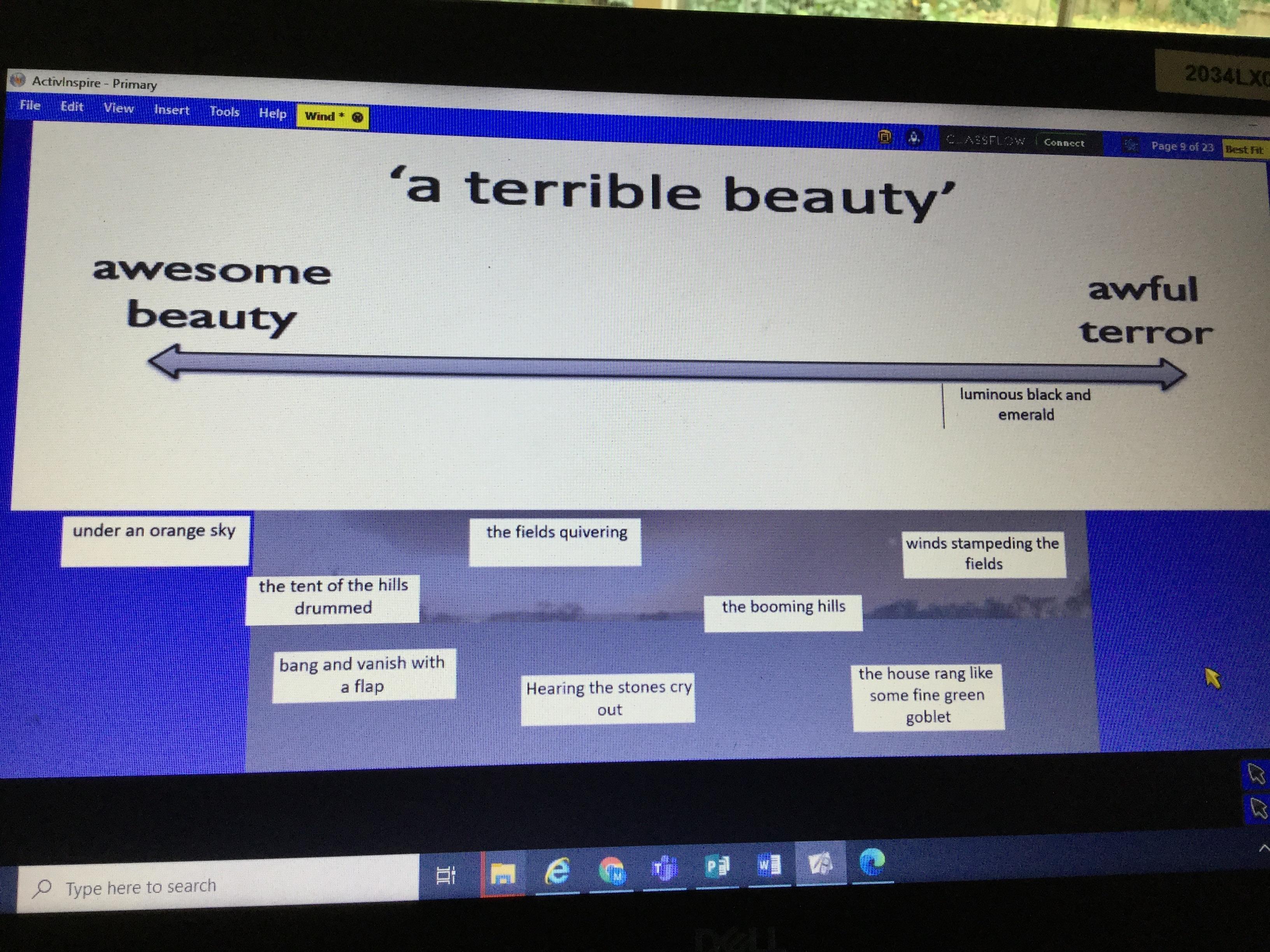 In groups of three we created a continuum line titled' a terrible beauty'