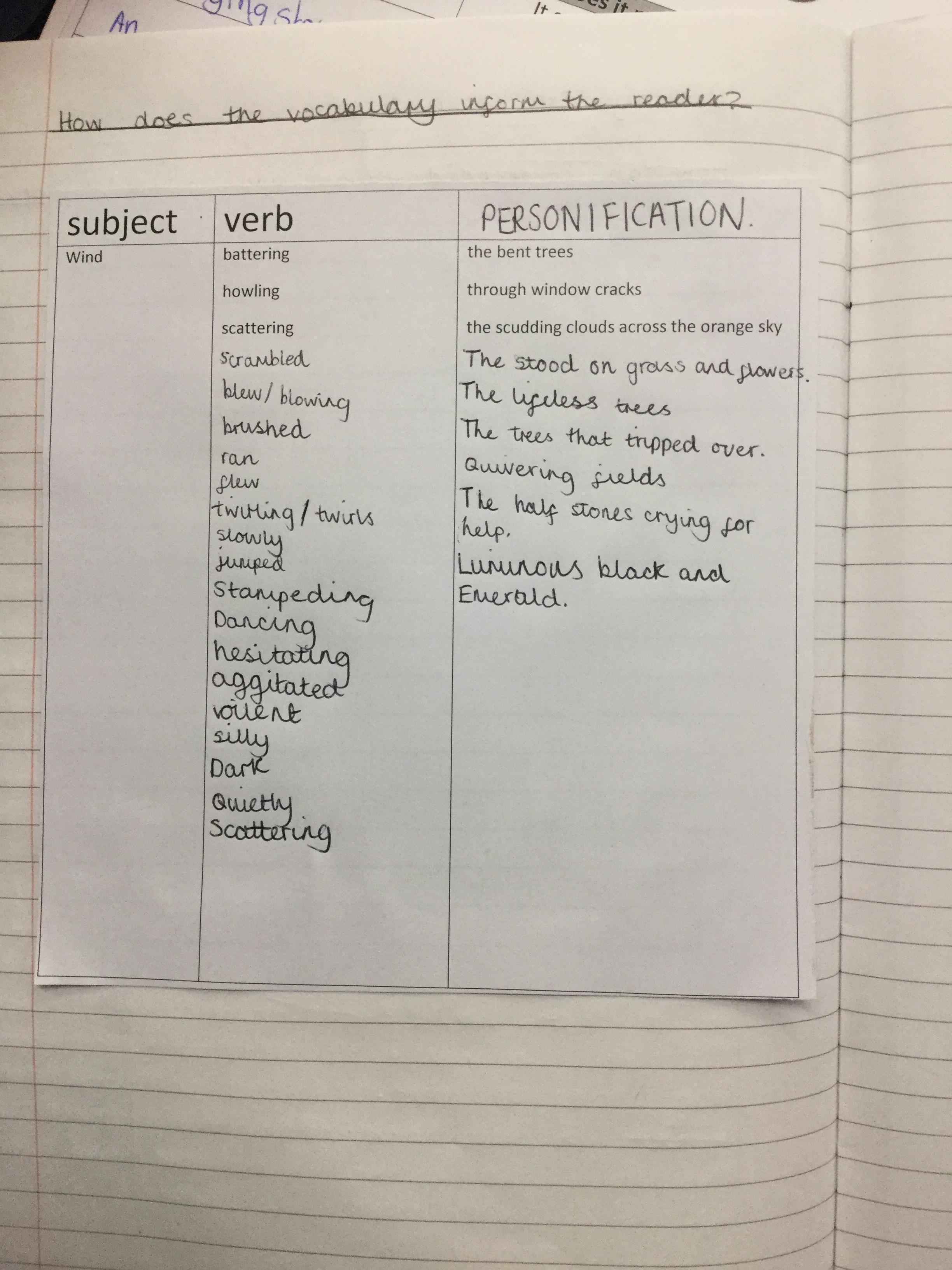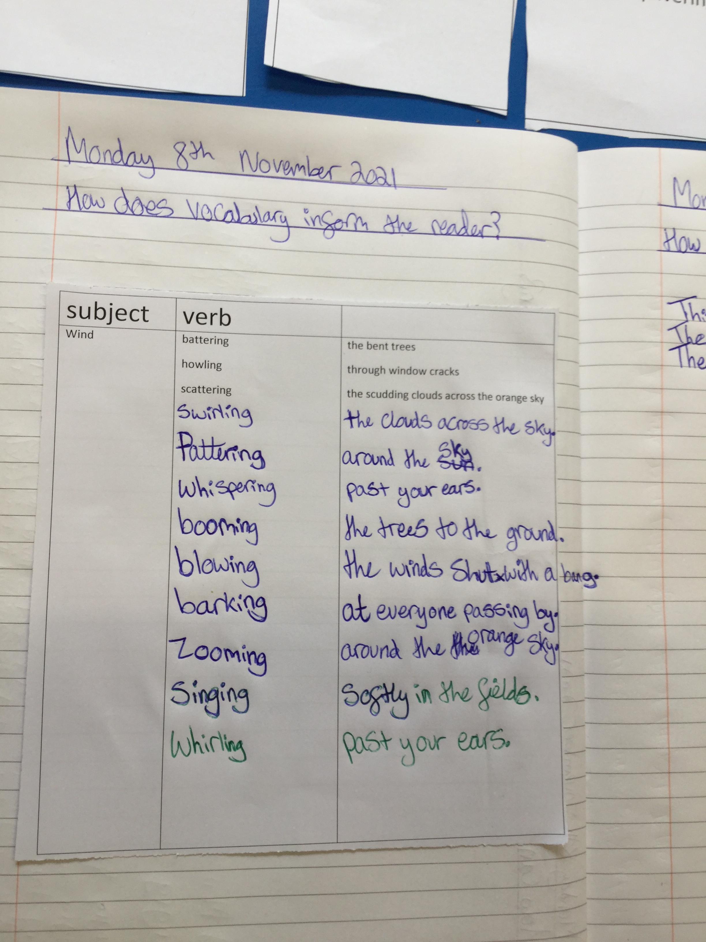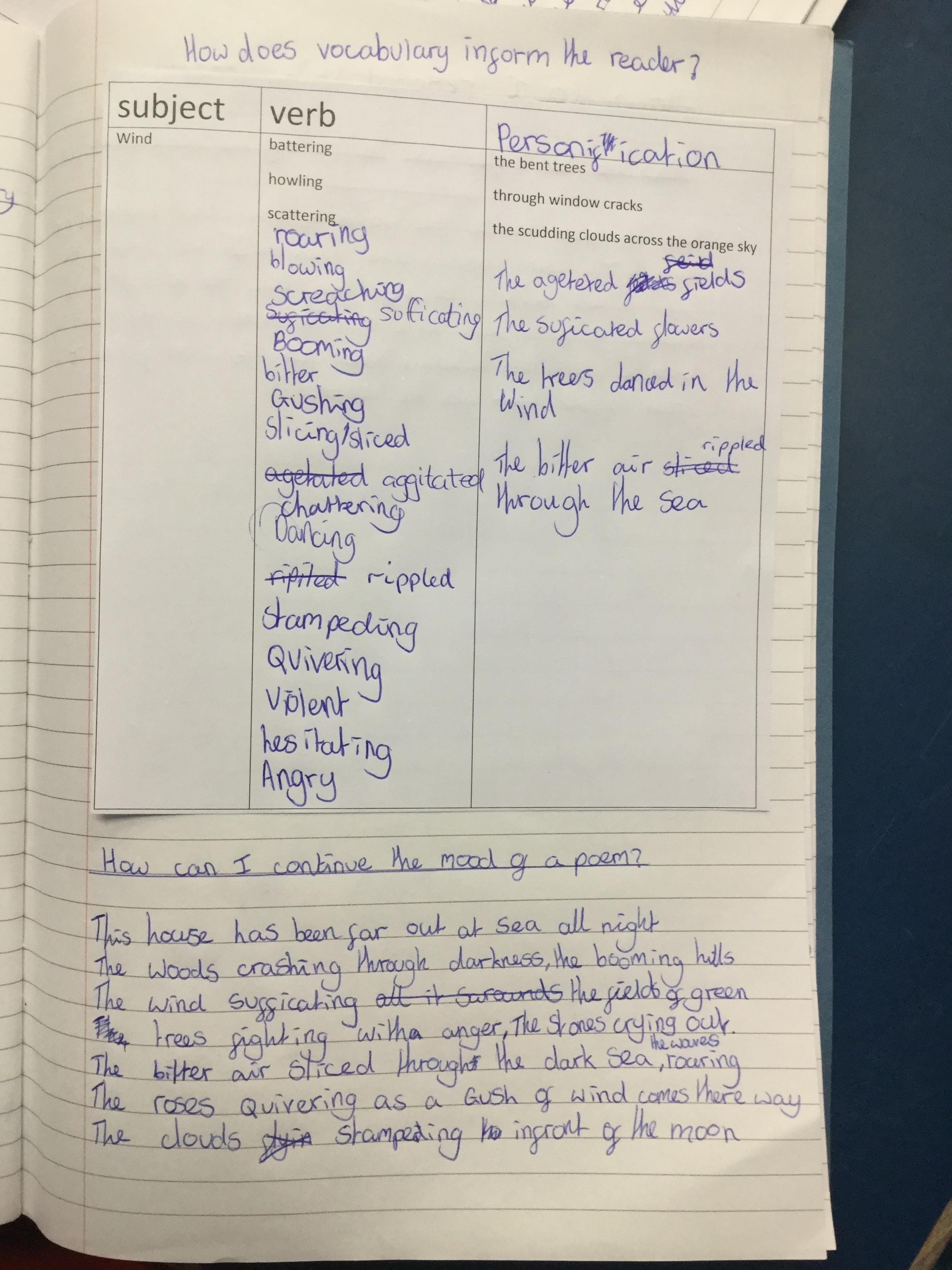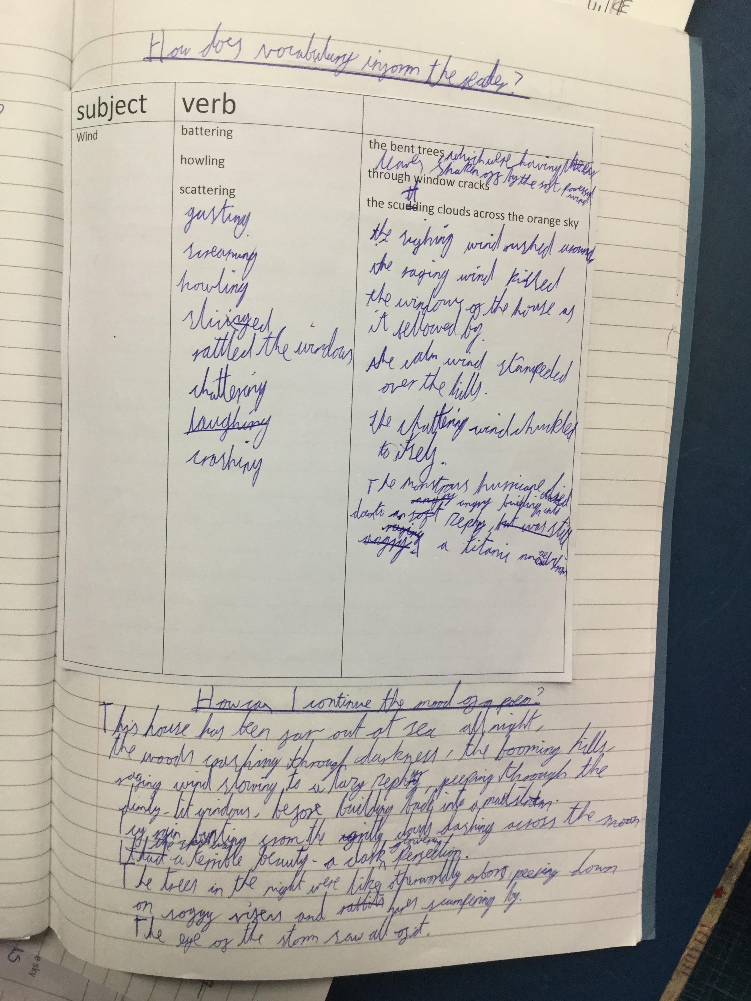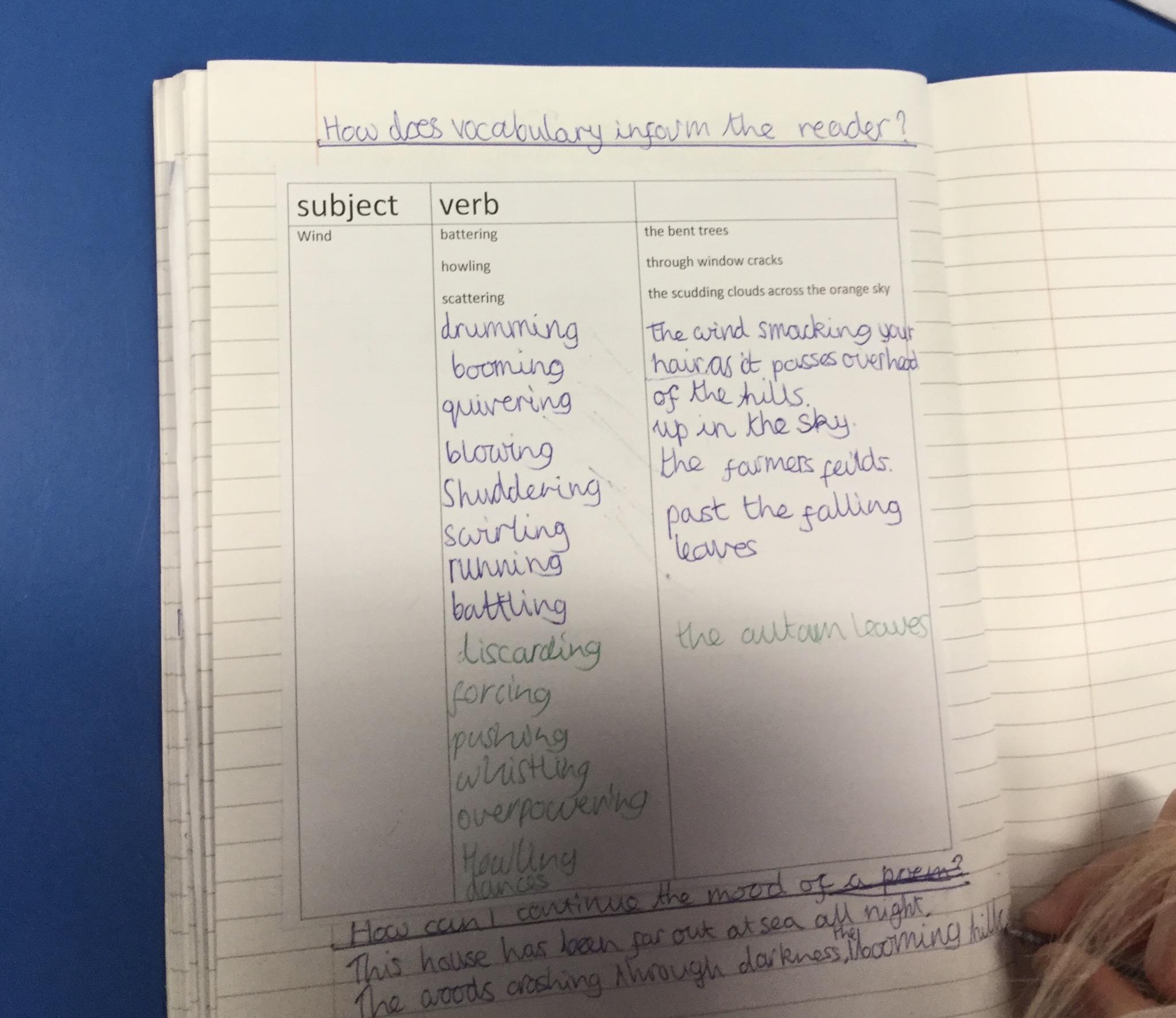 Next we thought about the power of verbs and how they could create mood and atmosphere.