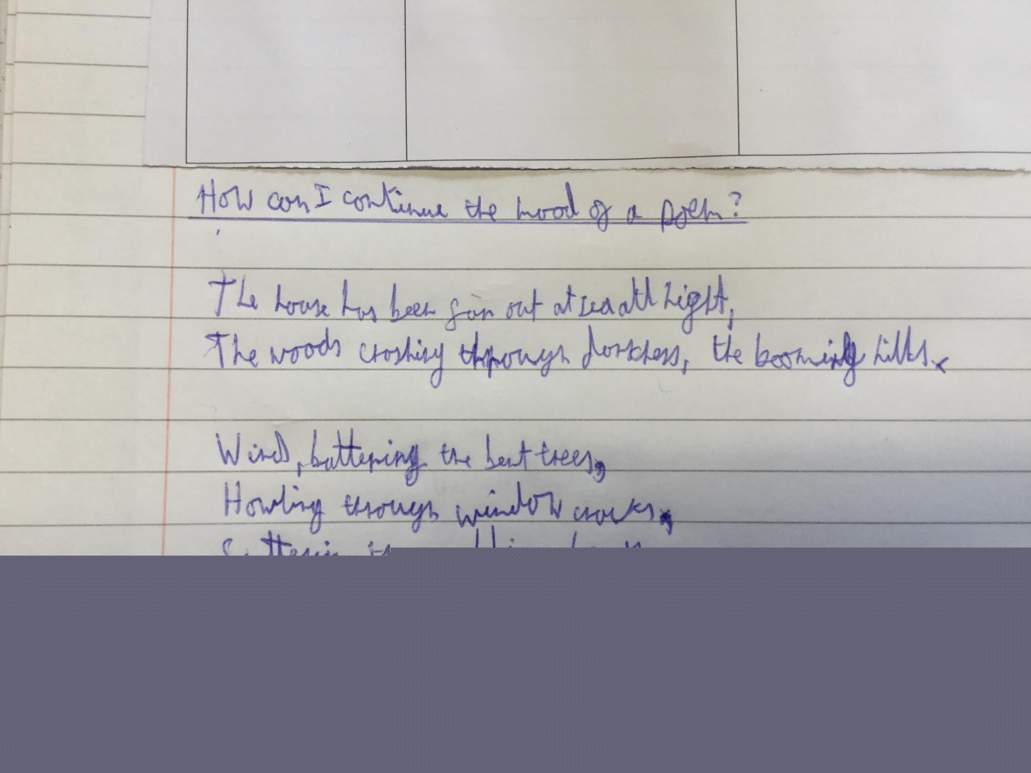 We then looked at the first two lines of the poem and completed the verse using our own ideas.