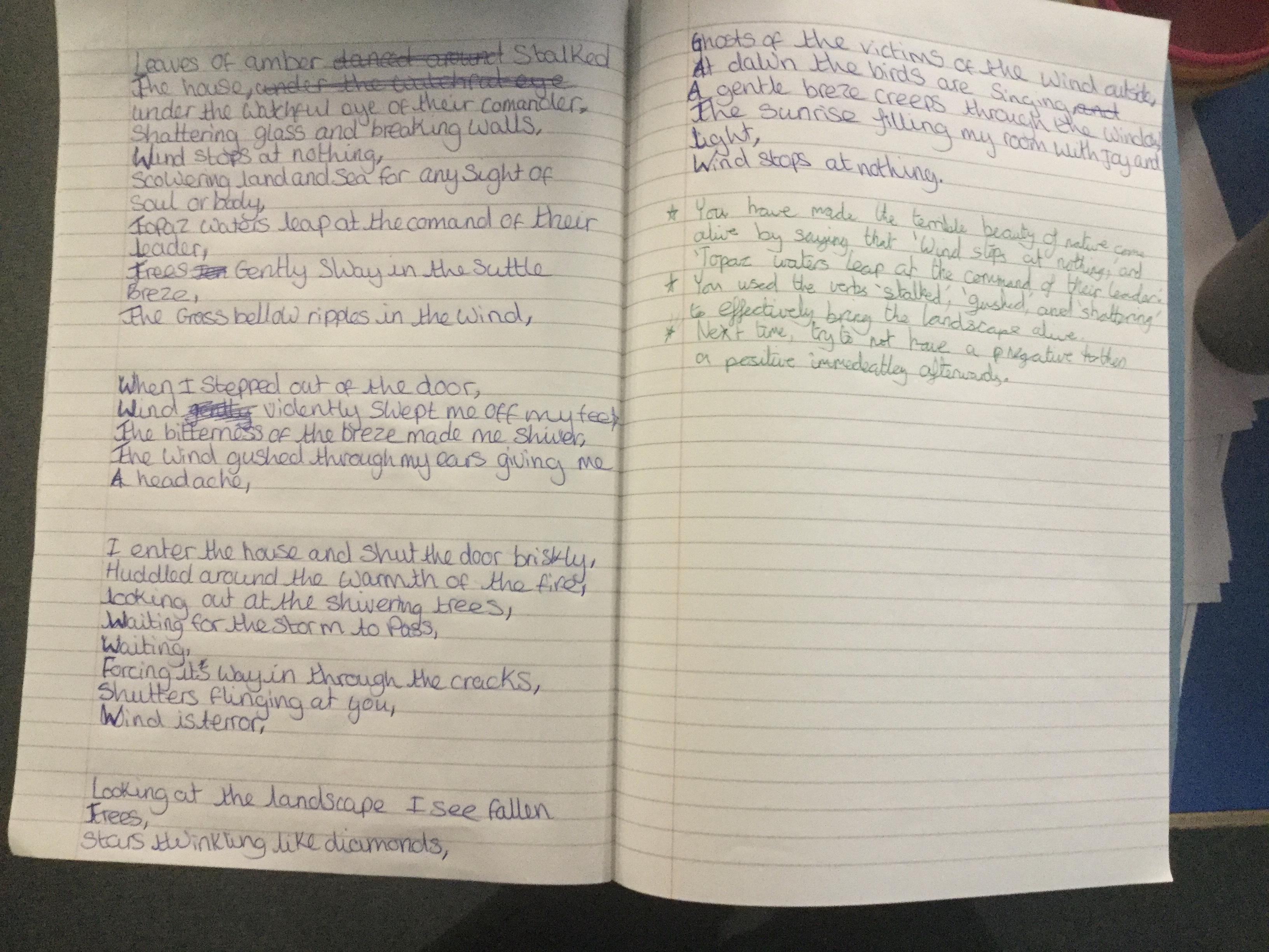 We then planned, wrote and peer assessed our own poems.