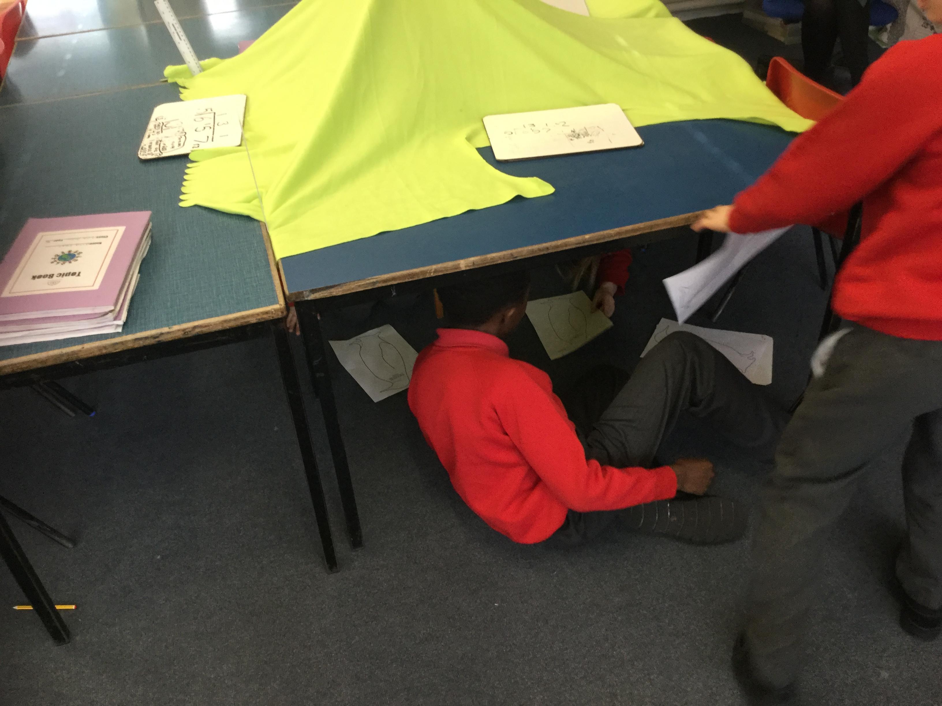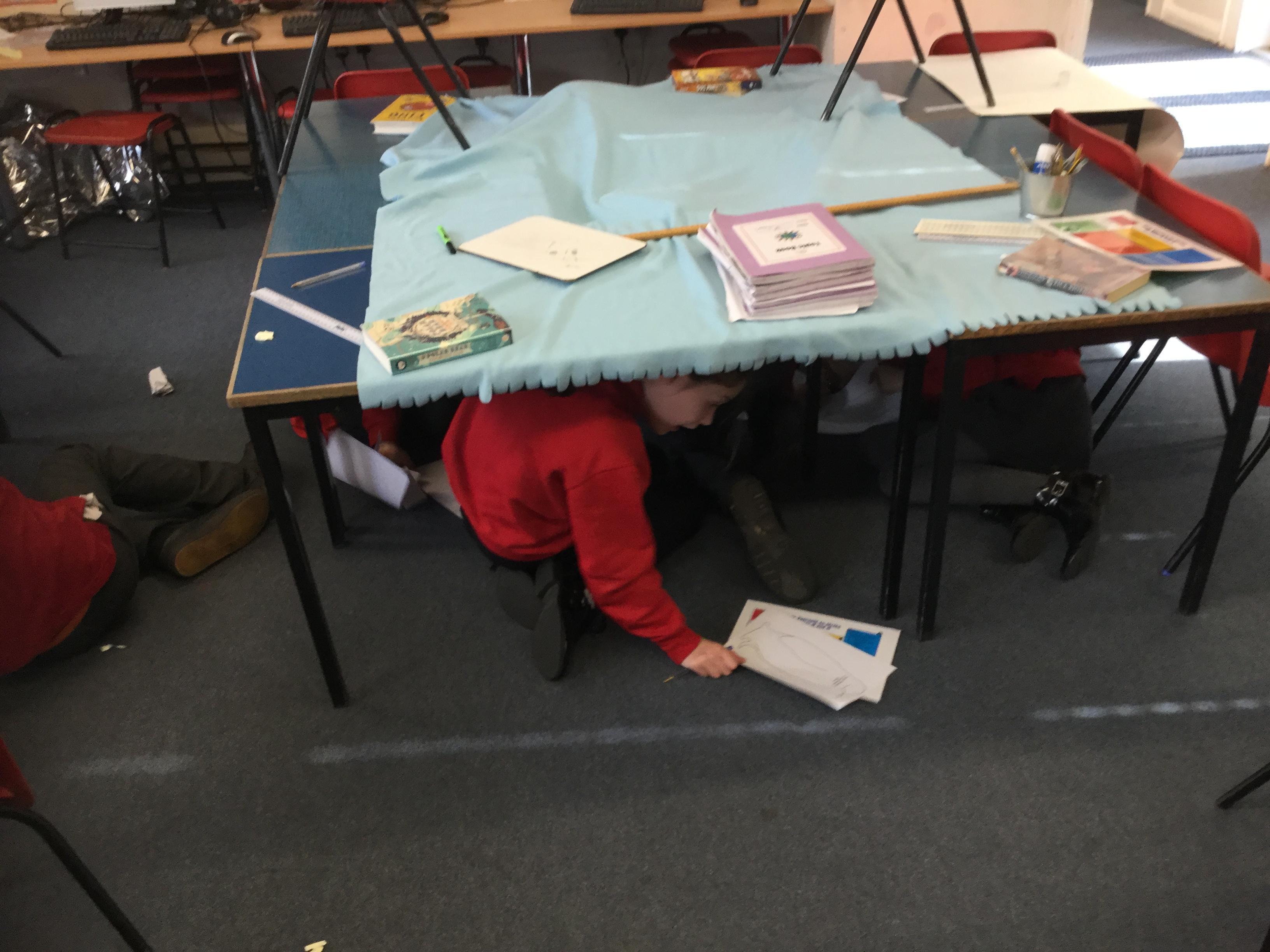 Trapped in Antarctica, Year 5 had to build a shelter in the classroom to protect them from the environment. 2 at a time they went on an exploration to hunt for clues about their new location, Antarctica.