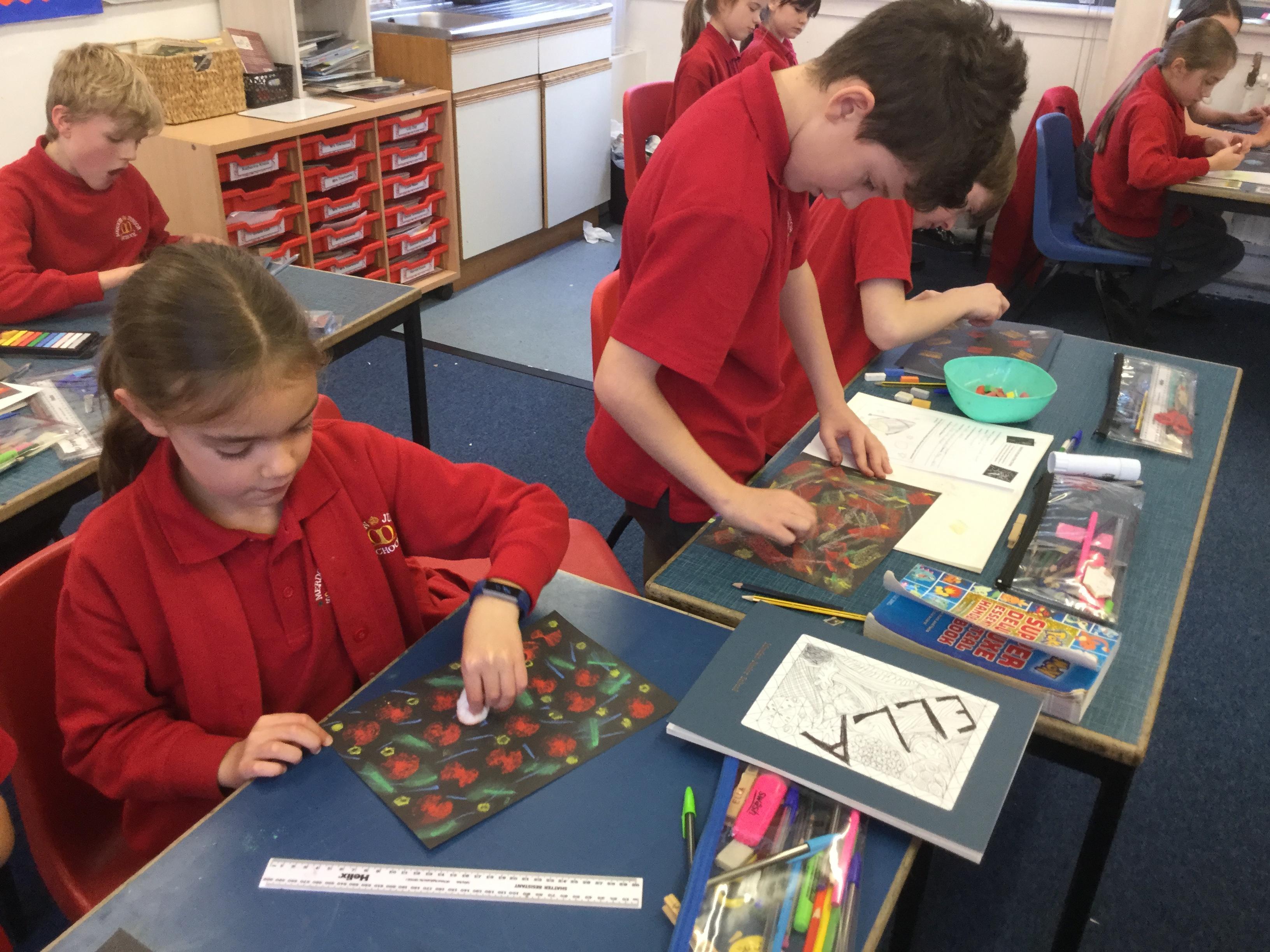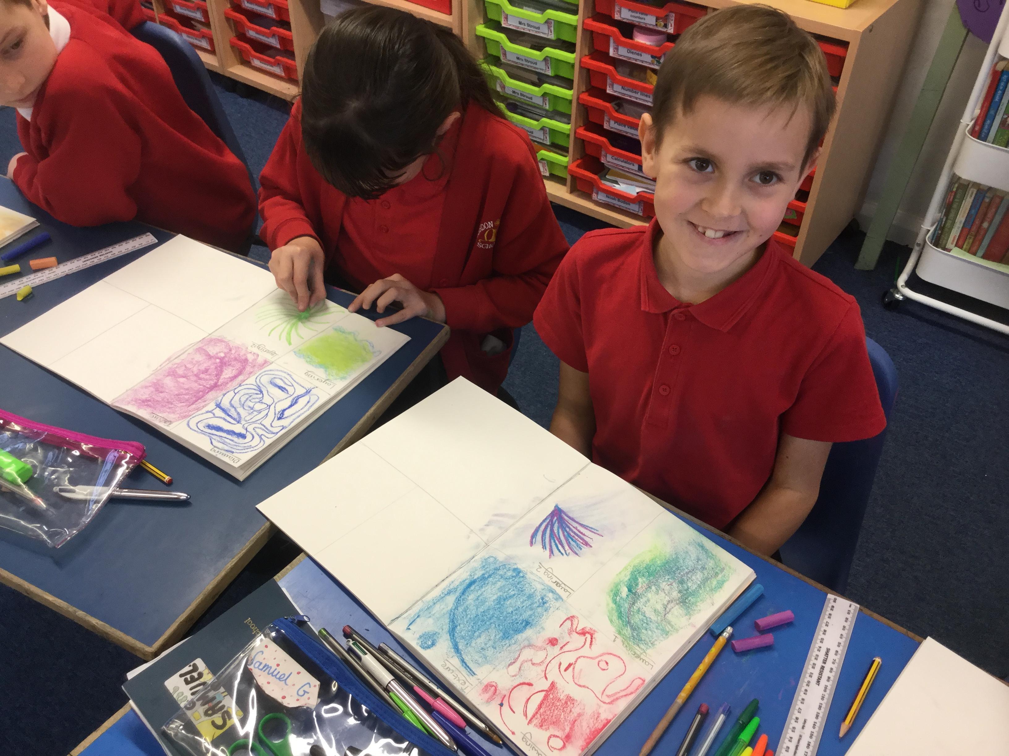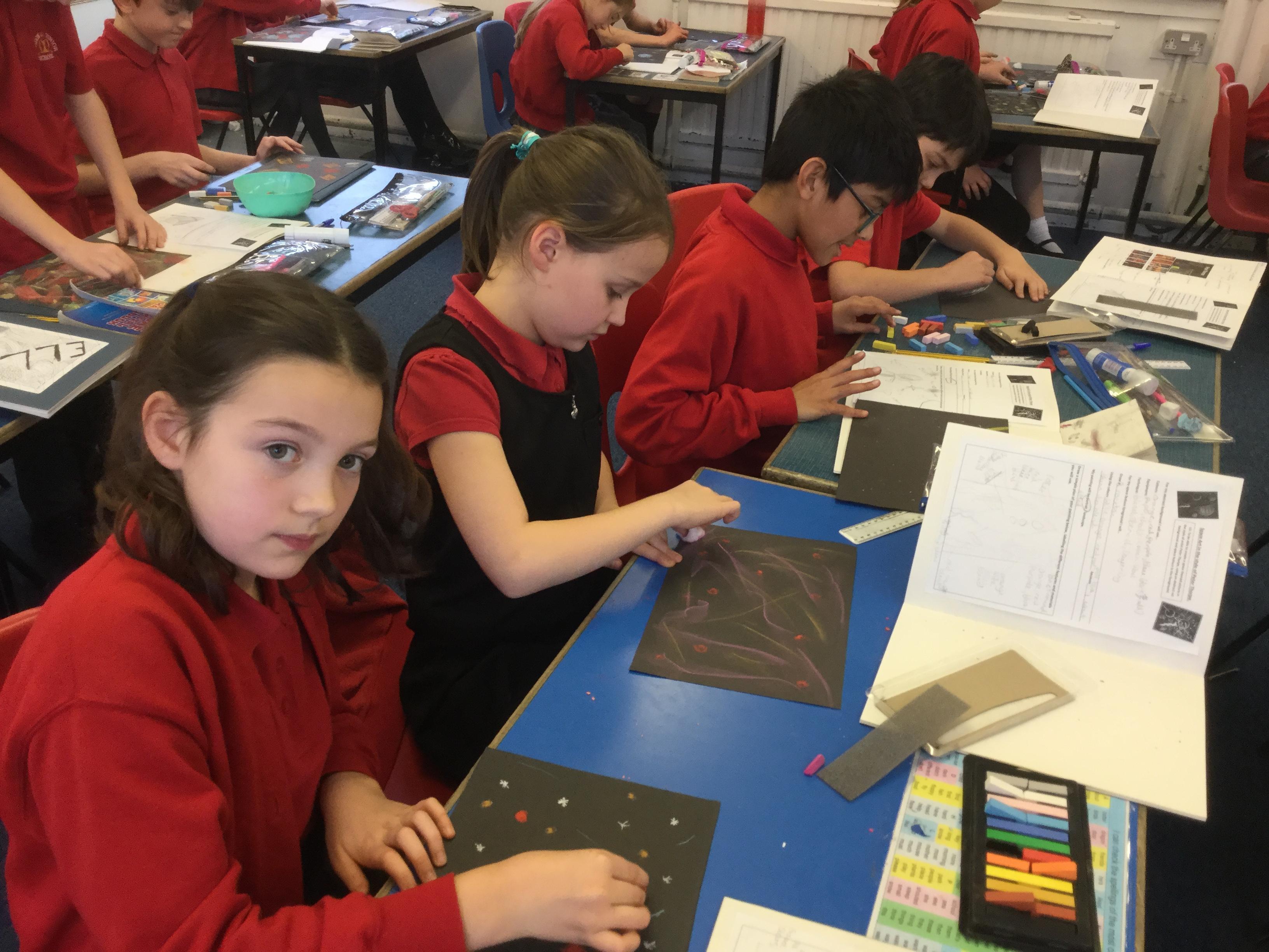 This half term, Year 5 will be learning about Peter Thorpe and his abstract art with the theme of Space. We will be using chalk pastels over the next few weeks to create our artwork. Our first stage is to practice the techniques of pastel drawing.