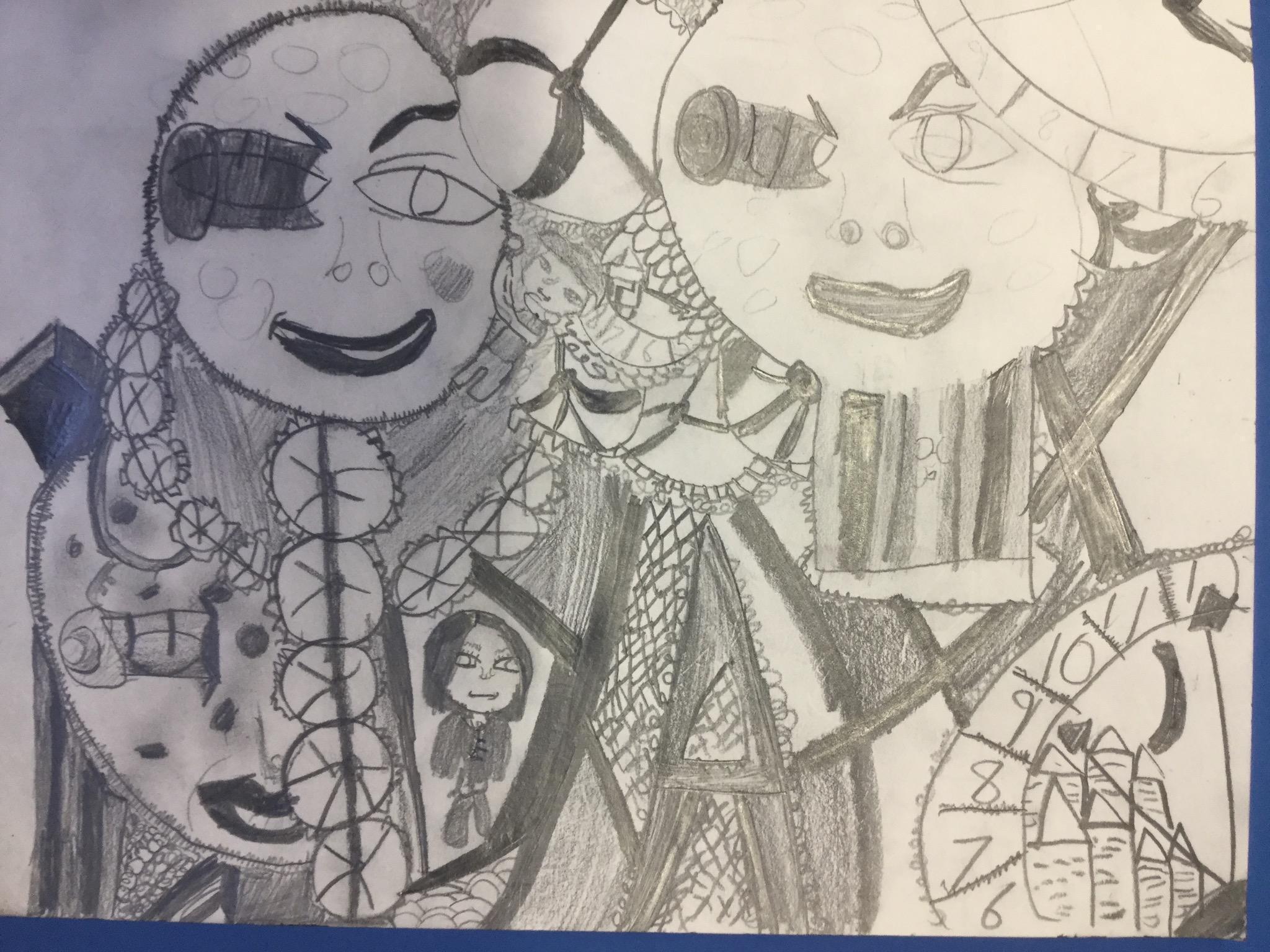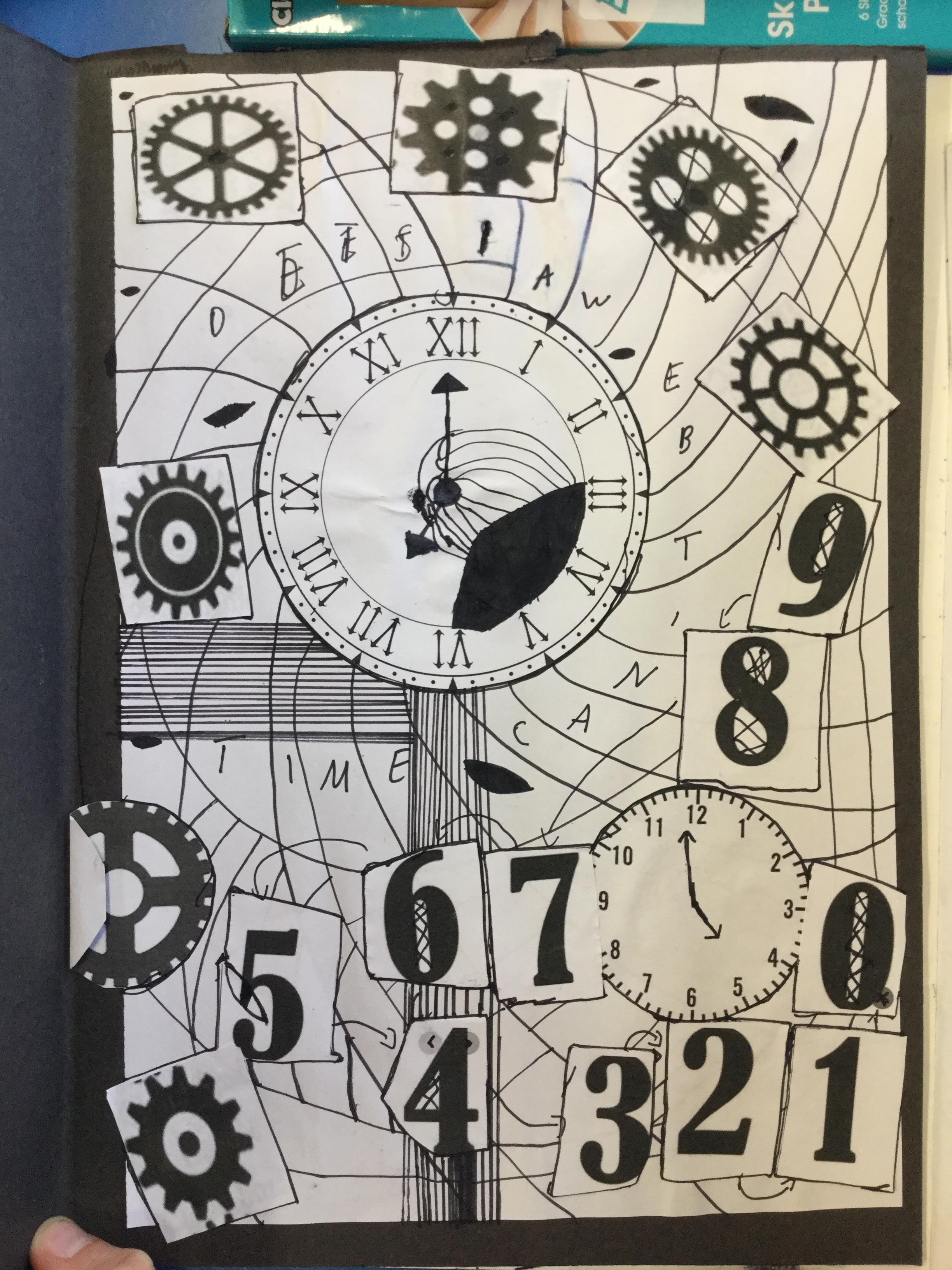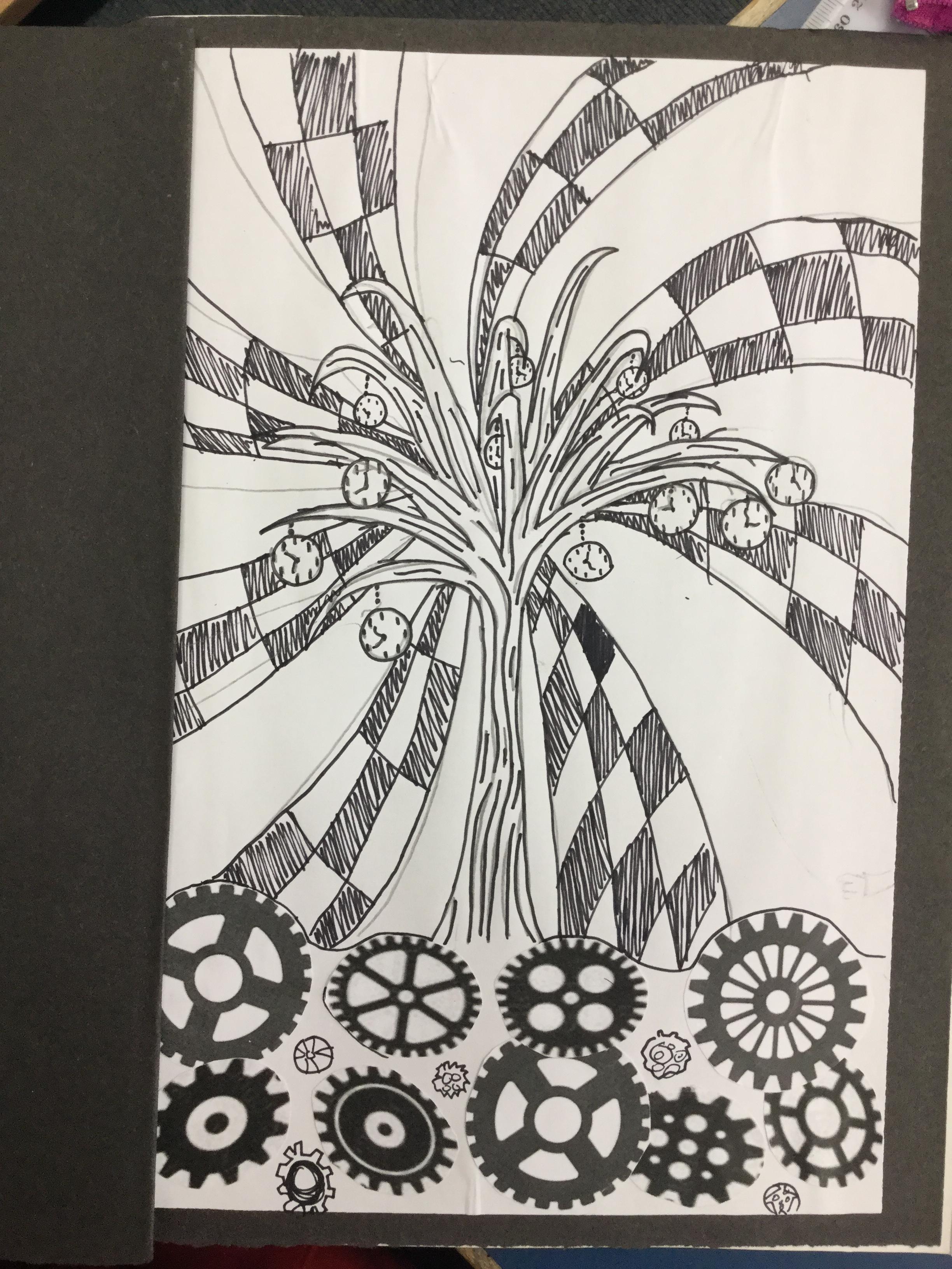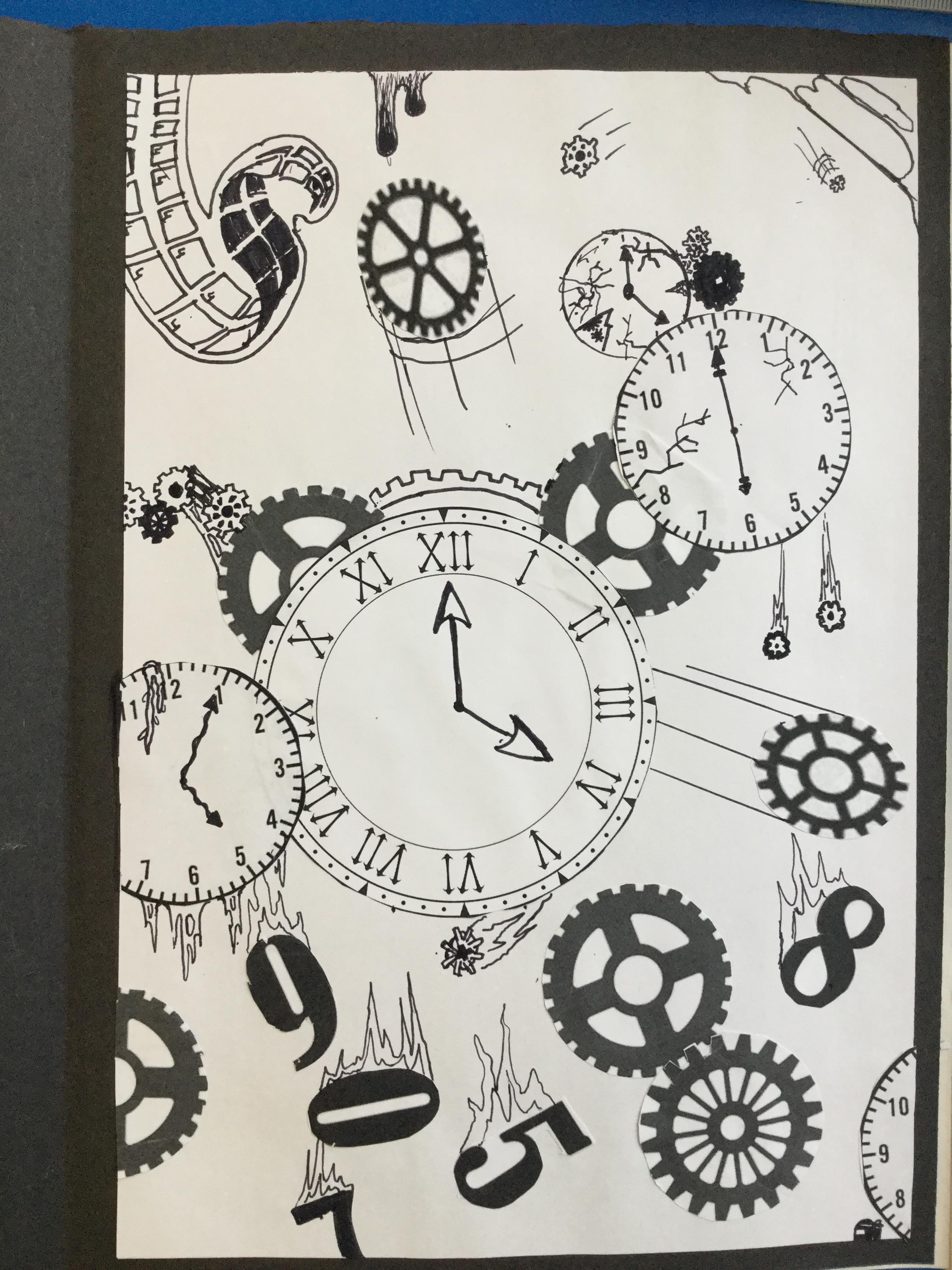 After discussing the symbolism of clocks through The Invention of Hugo Cabret, we created zen doodles related to time and clocks.