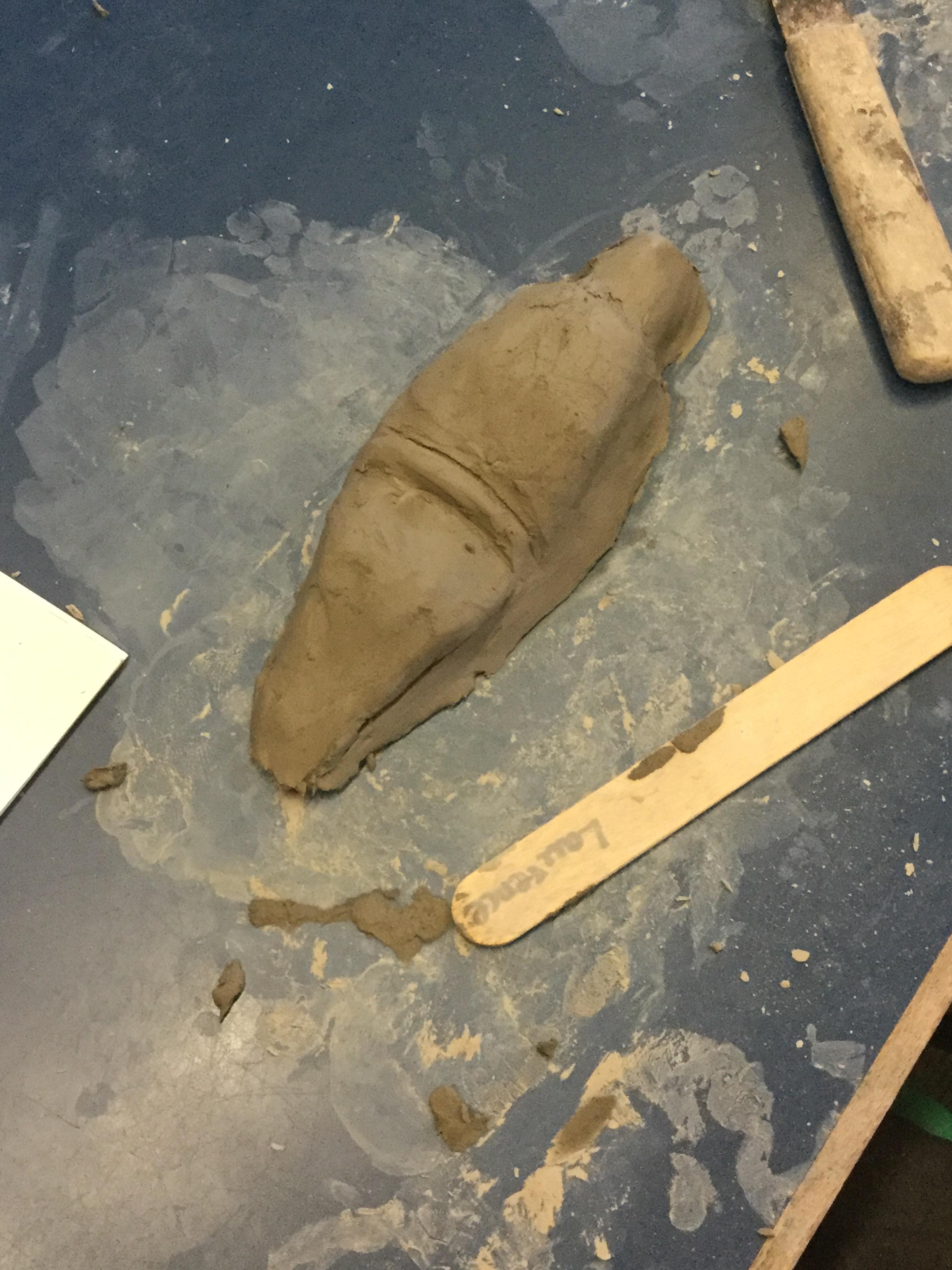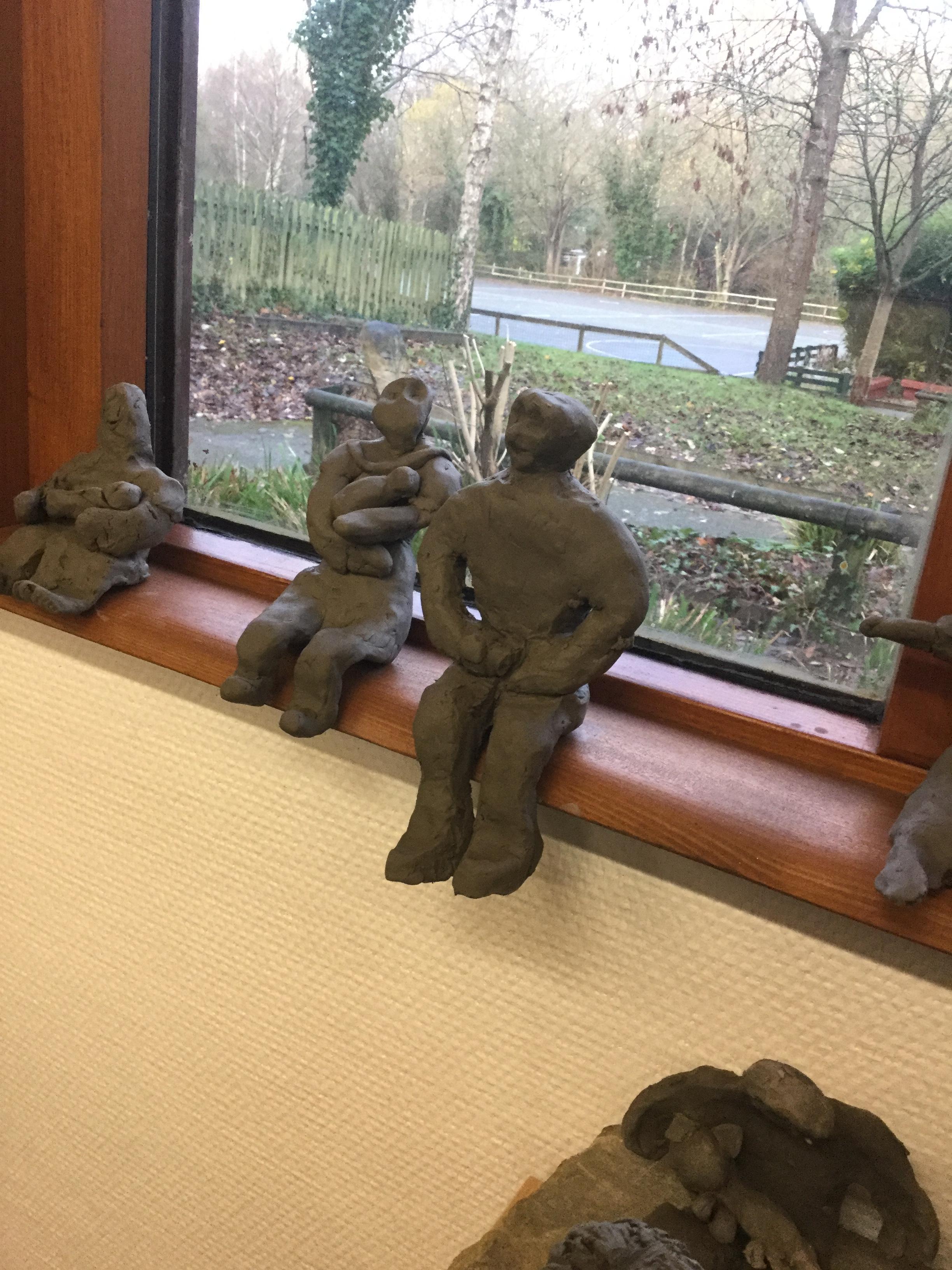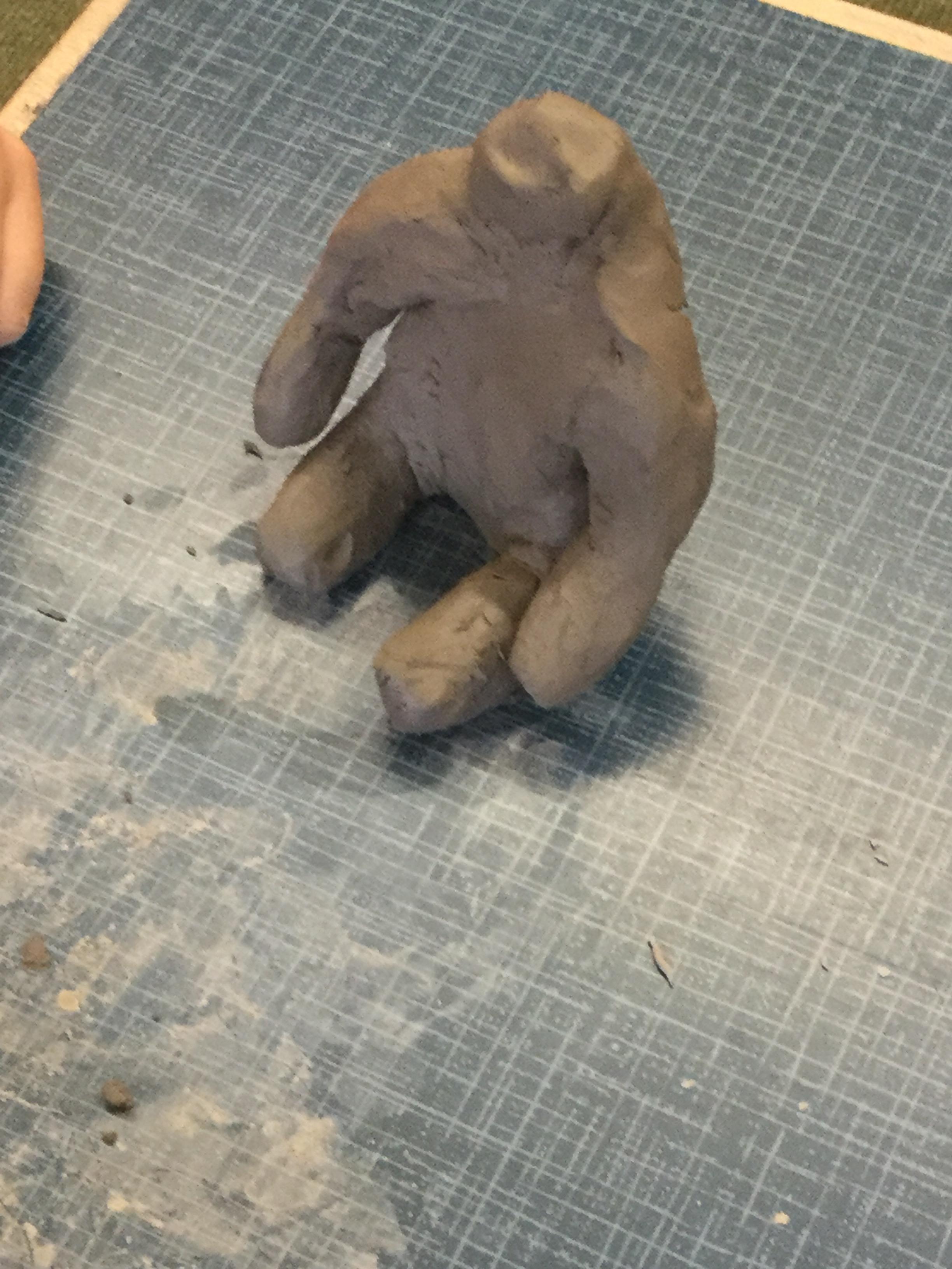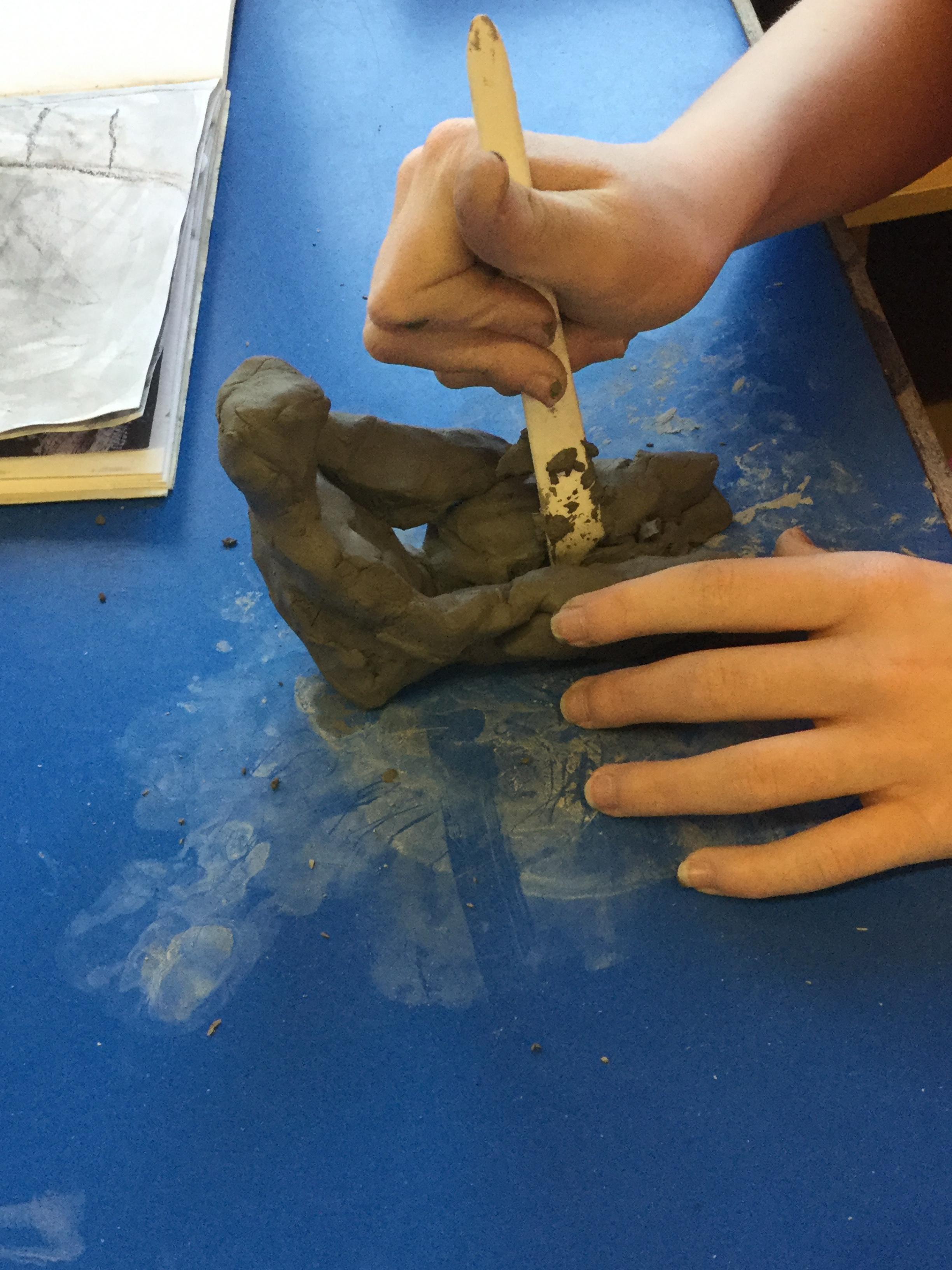 Designing our clay figures in the style of Henry Moore’s underground shelter figures.