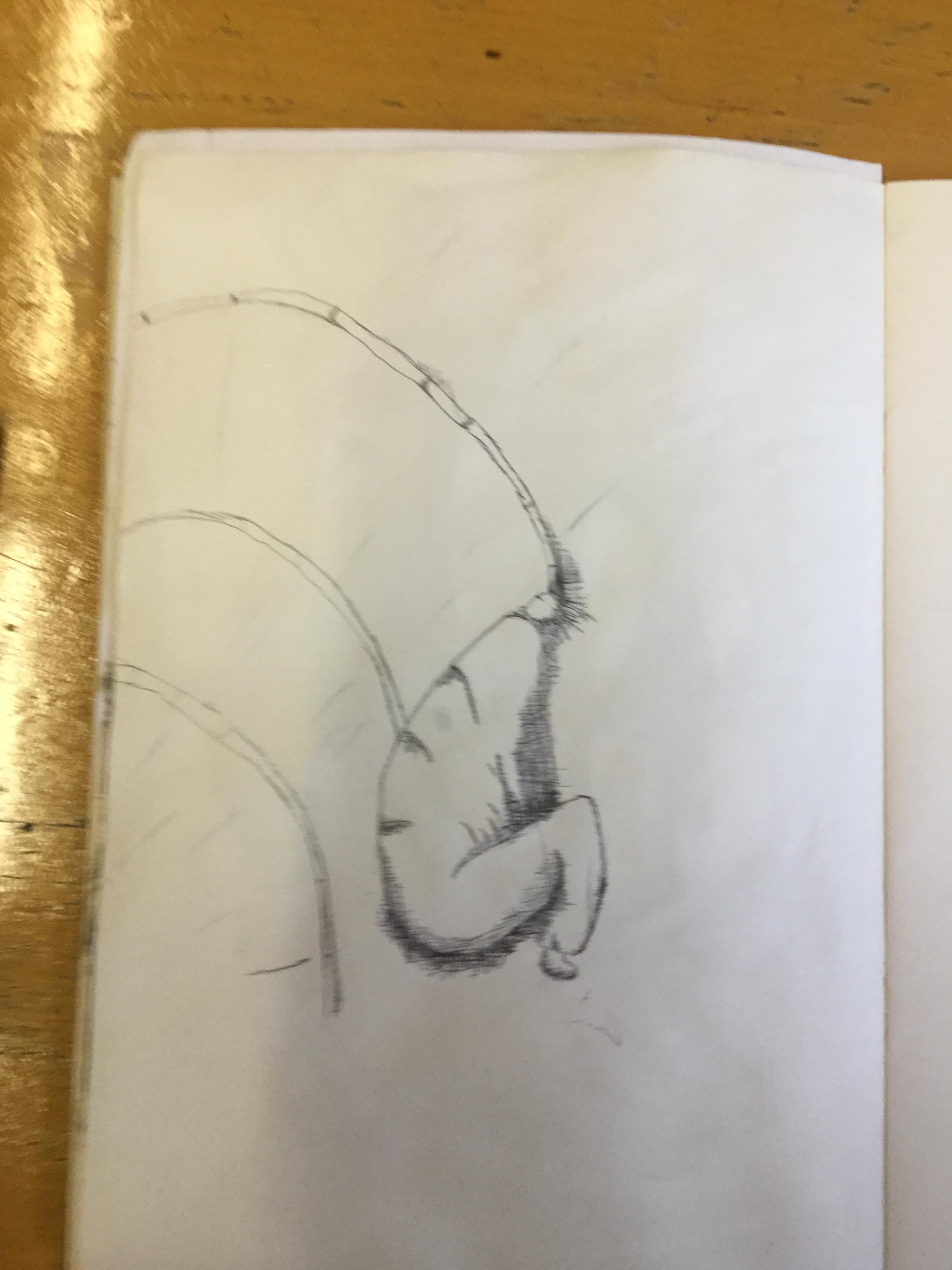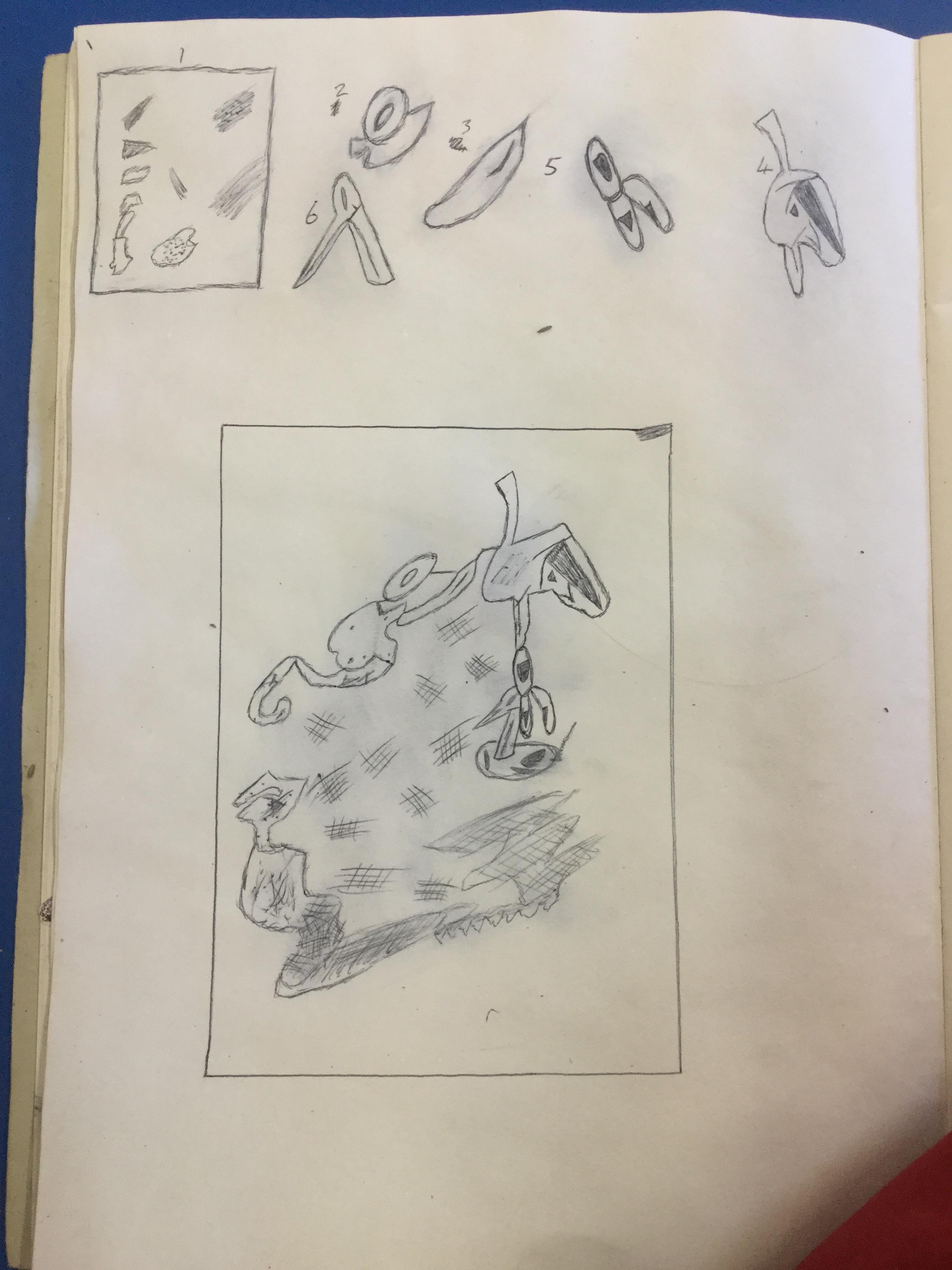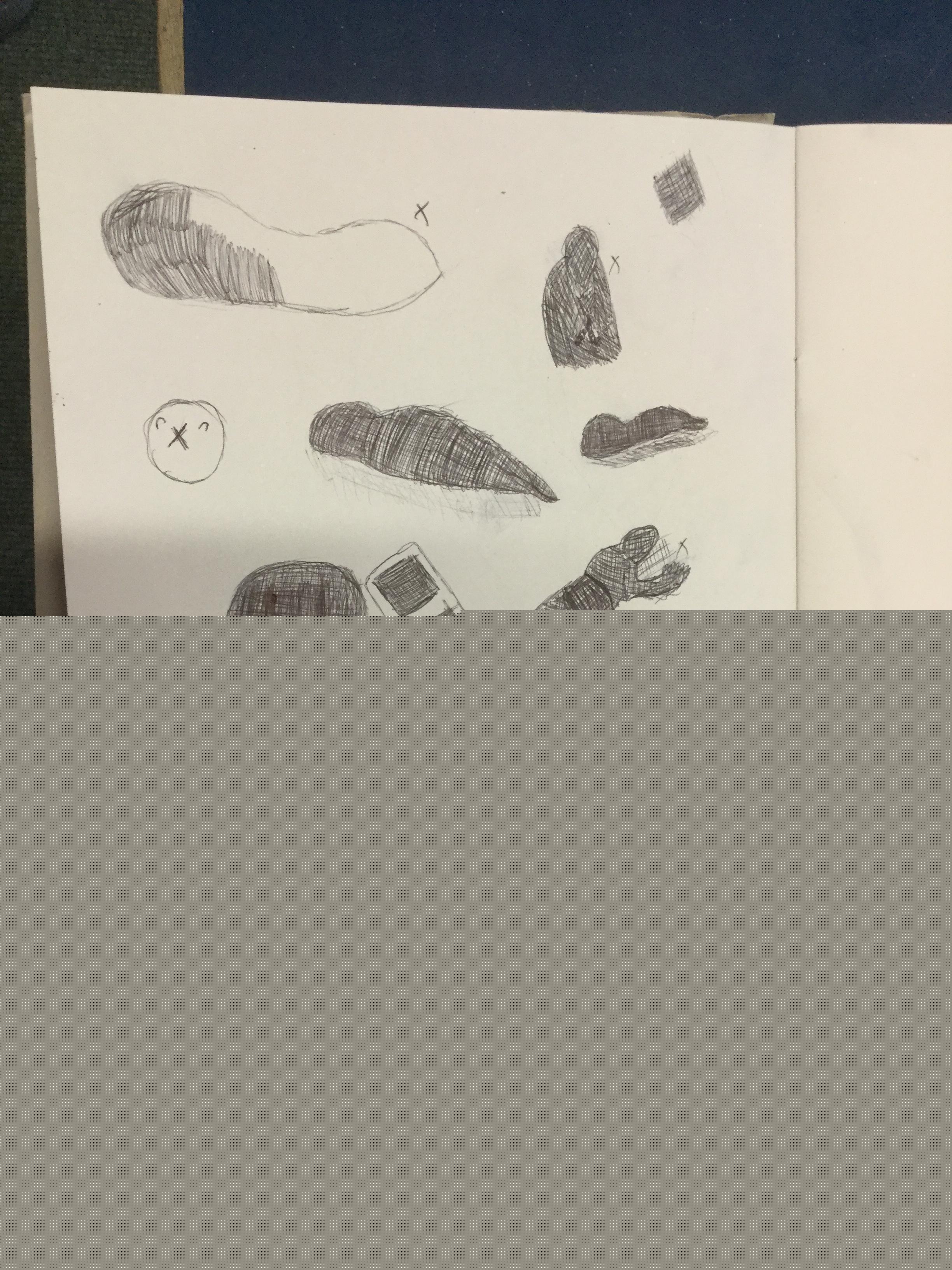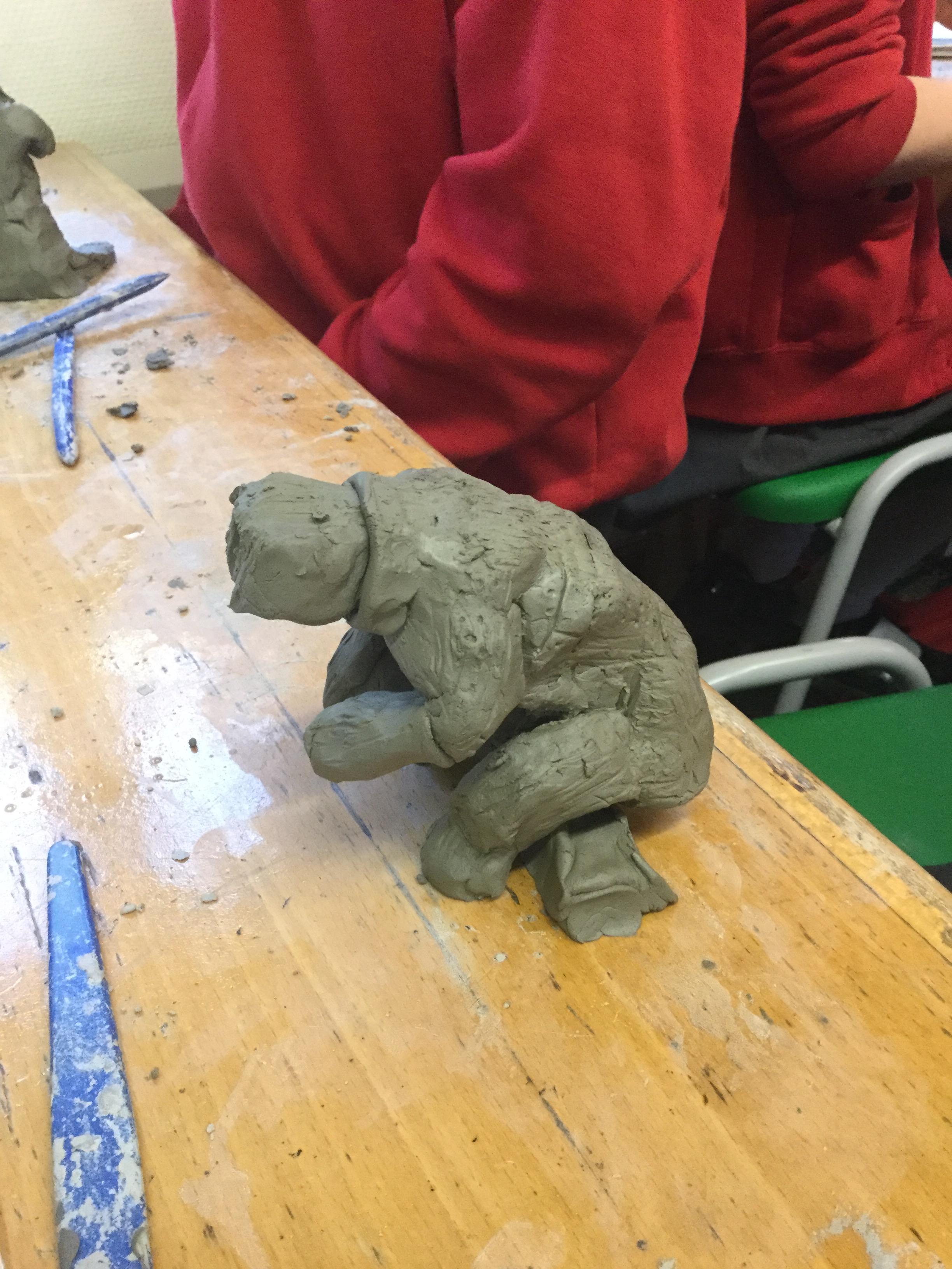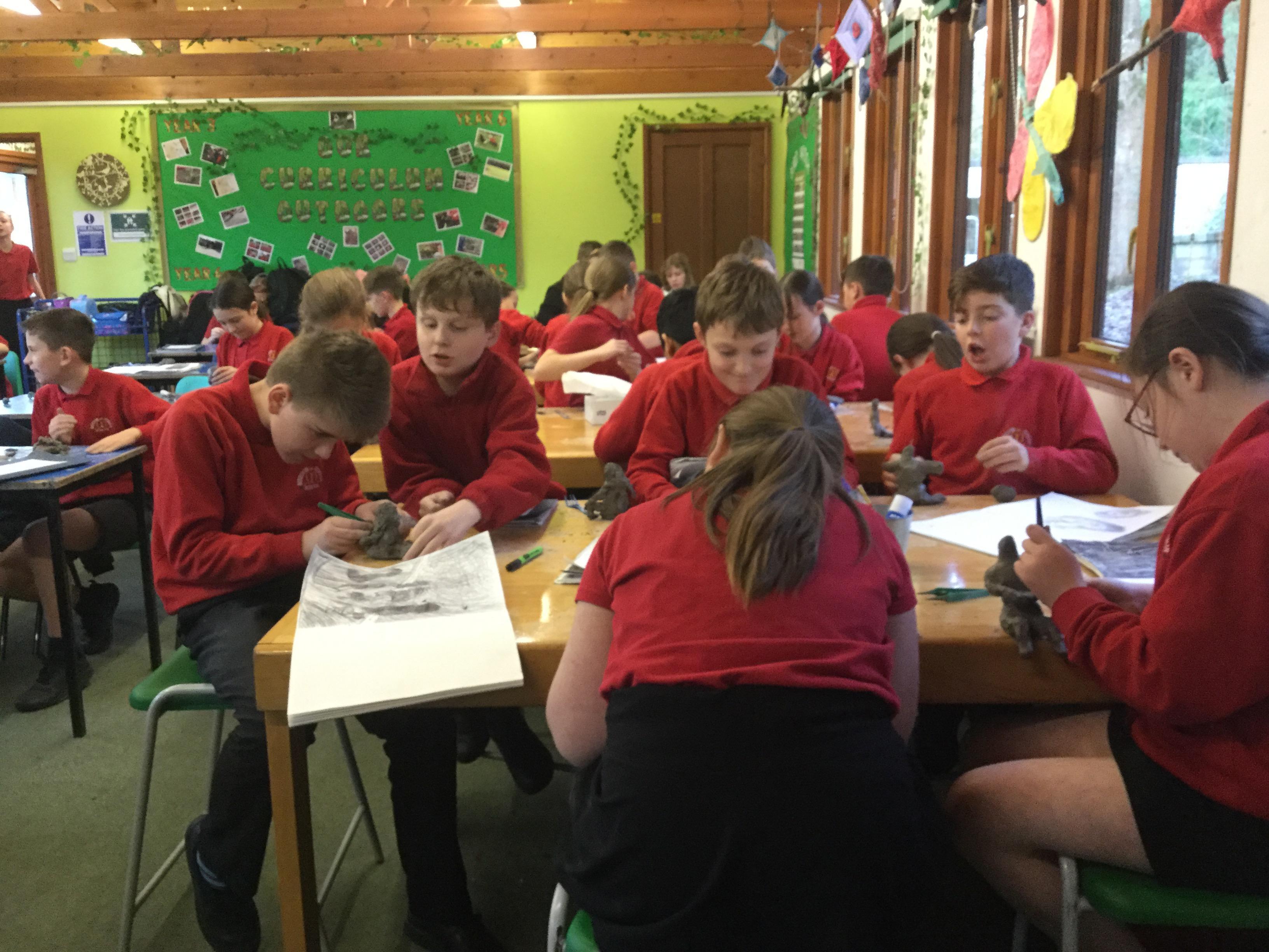 Designing our clay figures in the style of Henry Moore’s underground shelter figures.