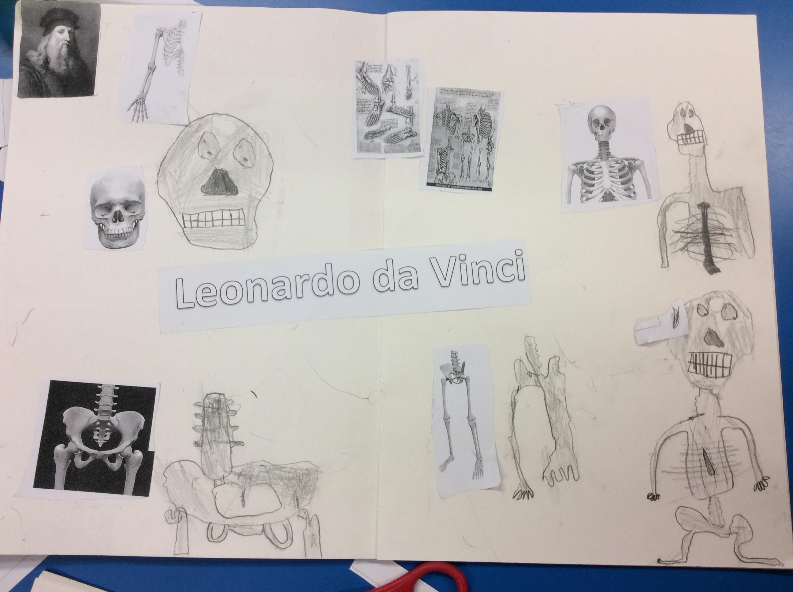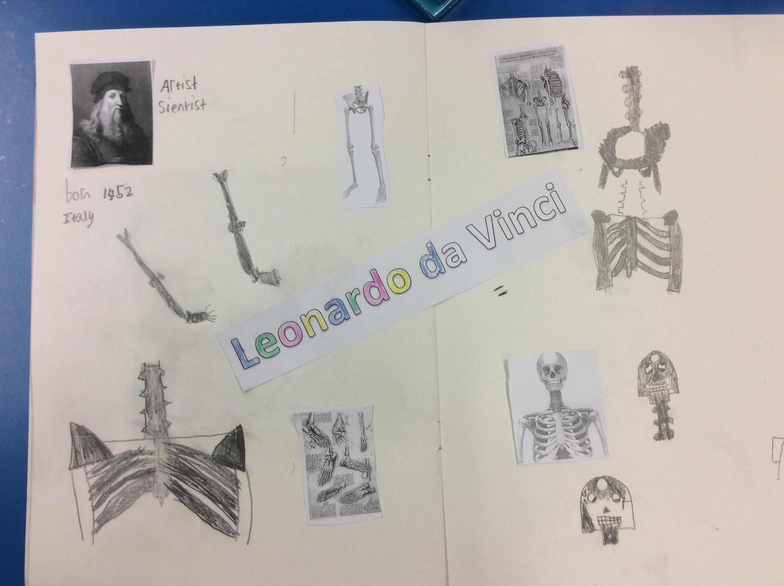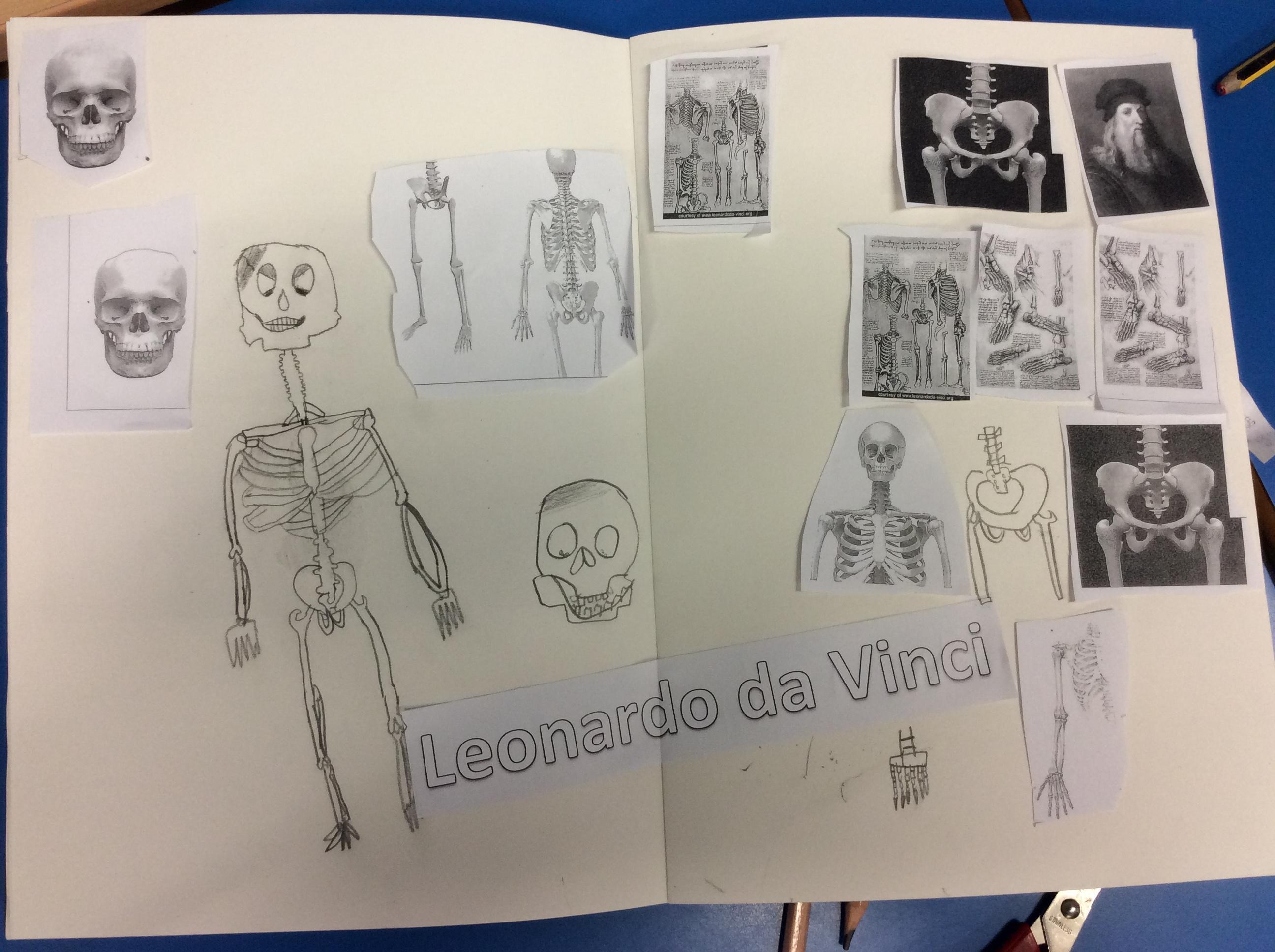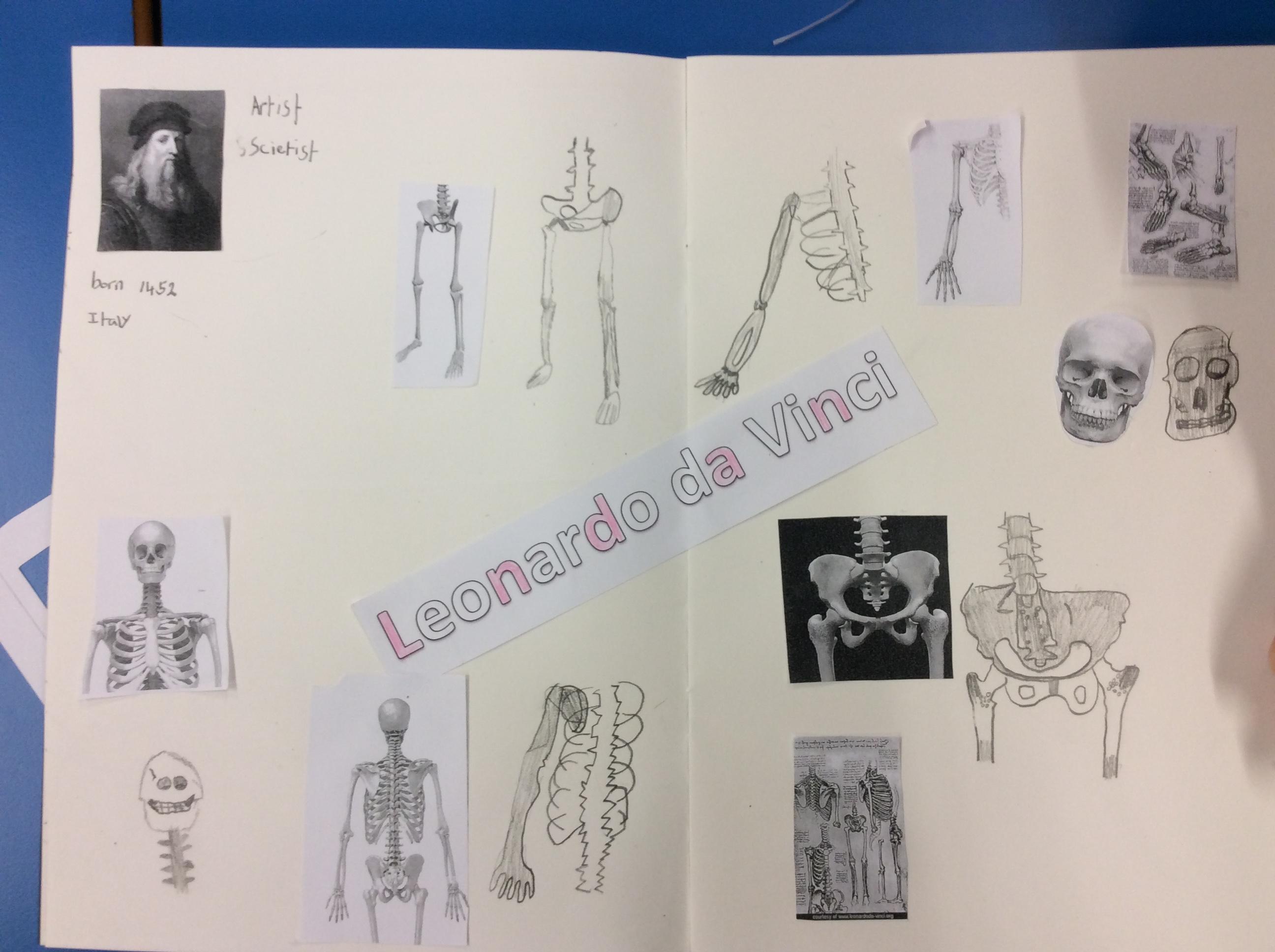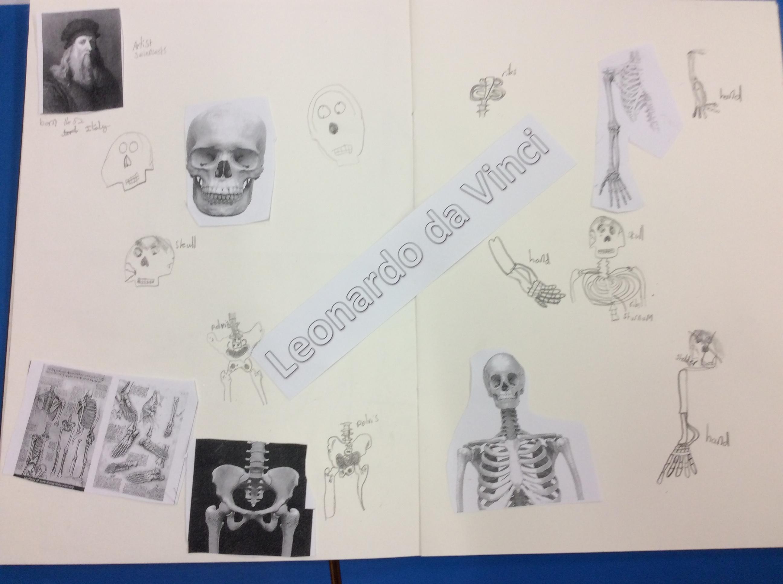 Da Vinci used his sketch books to record his observations. He looked closely at the skeletons of us and. We tried to make careful drawings in our sketchbooks using our special sketching pencils.