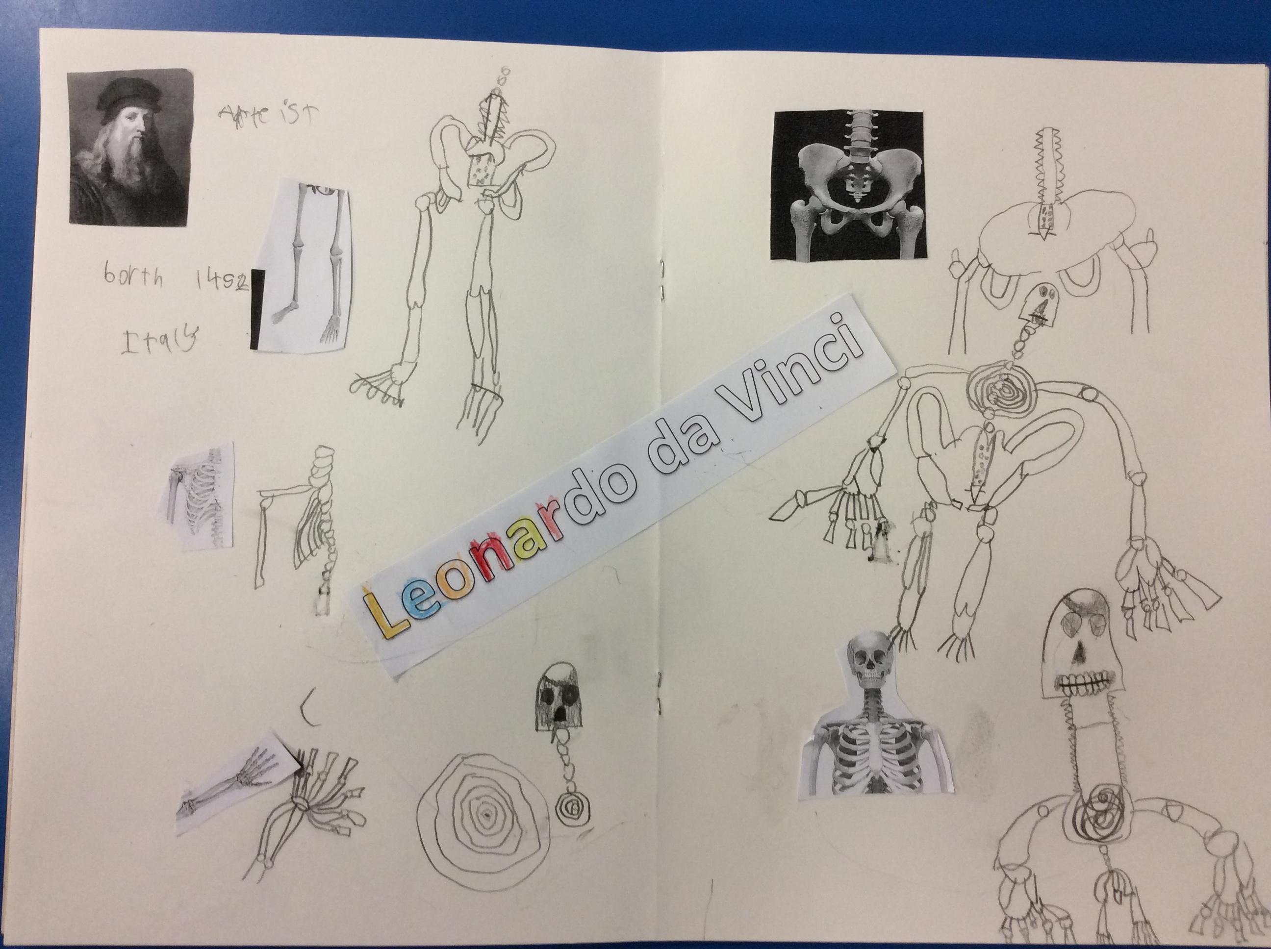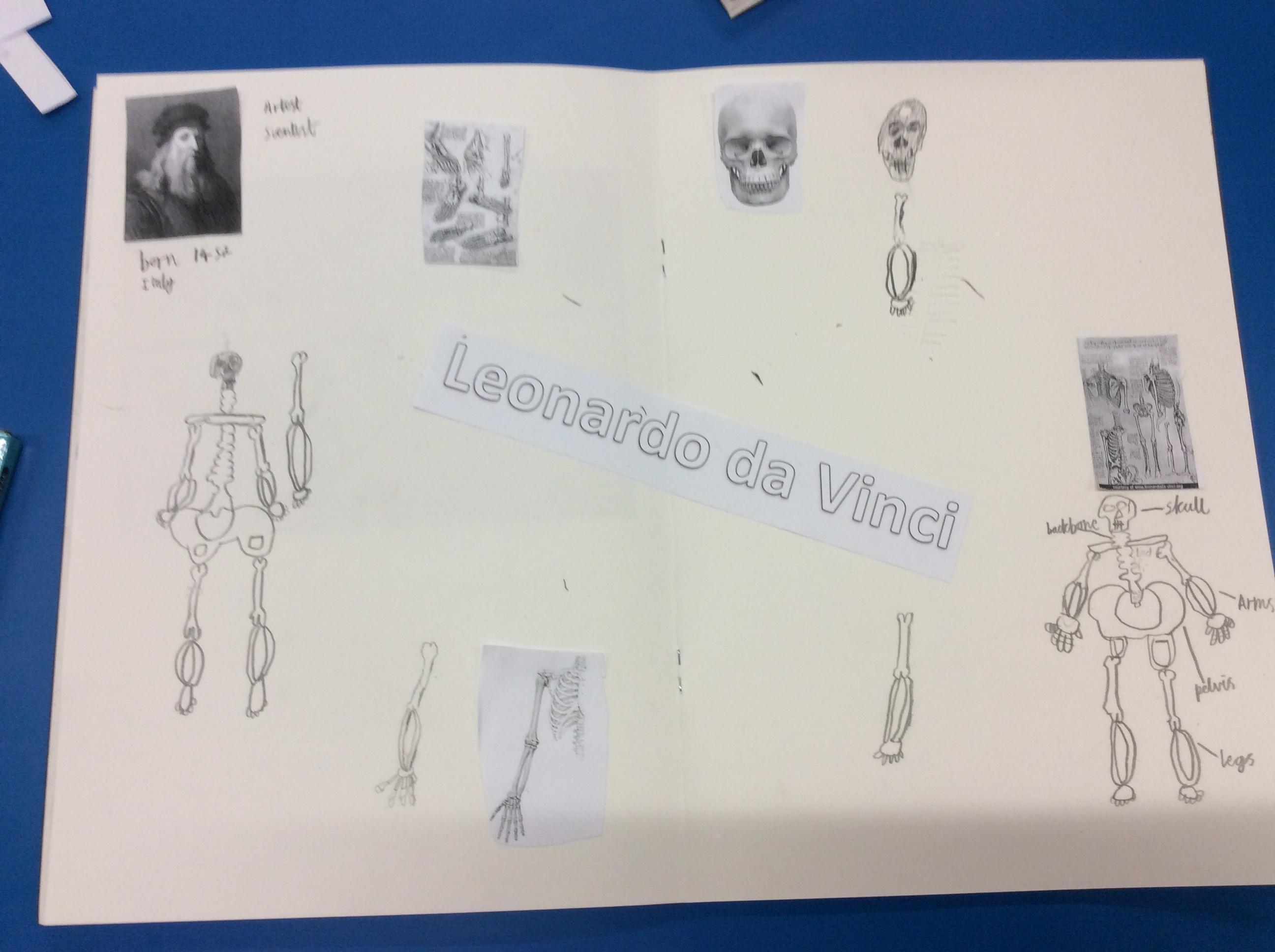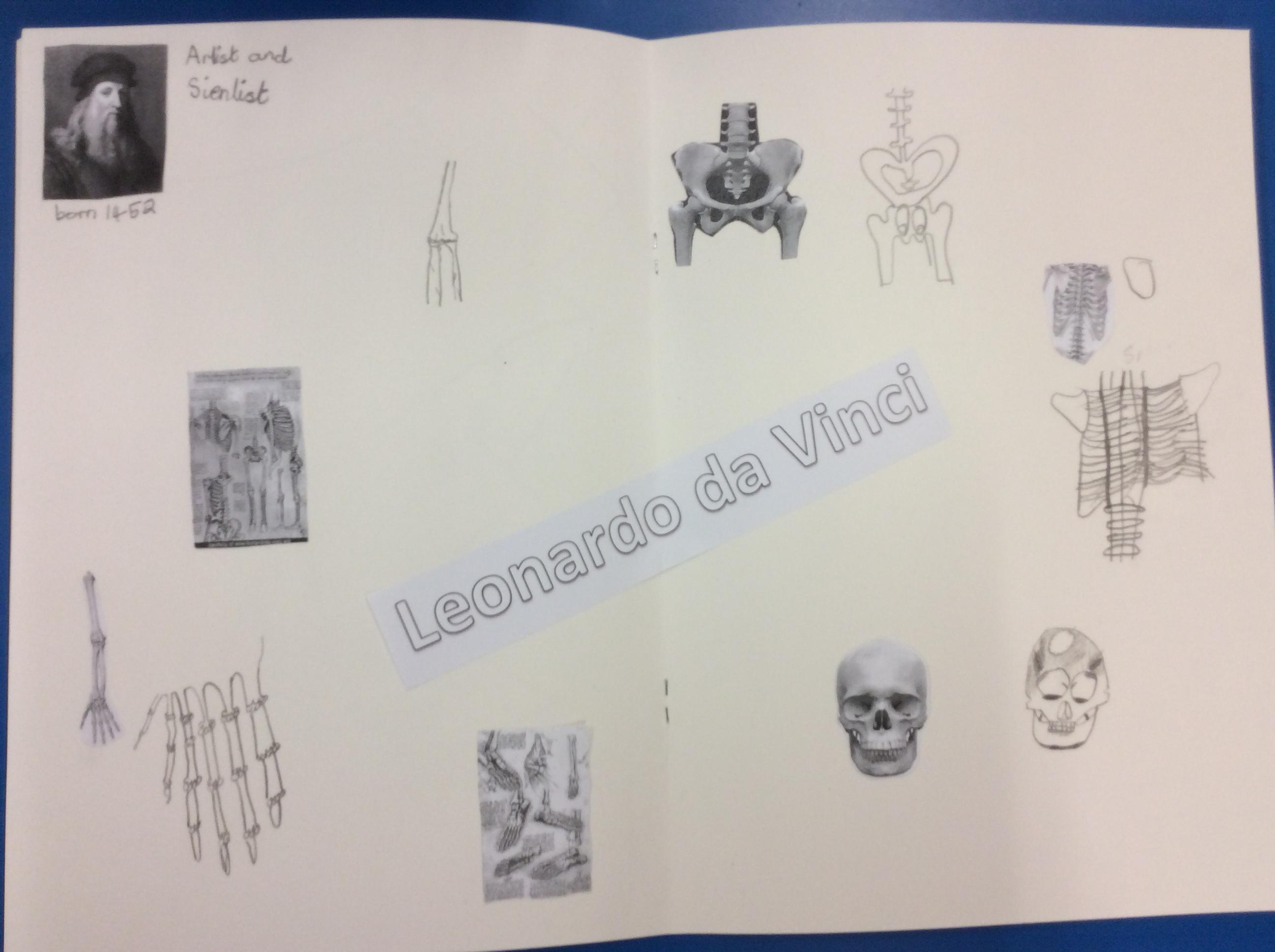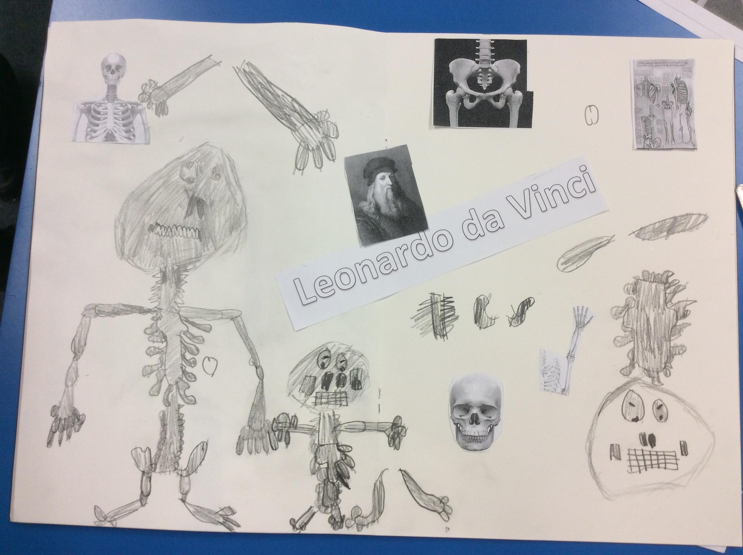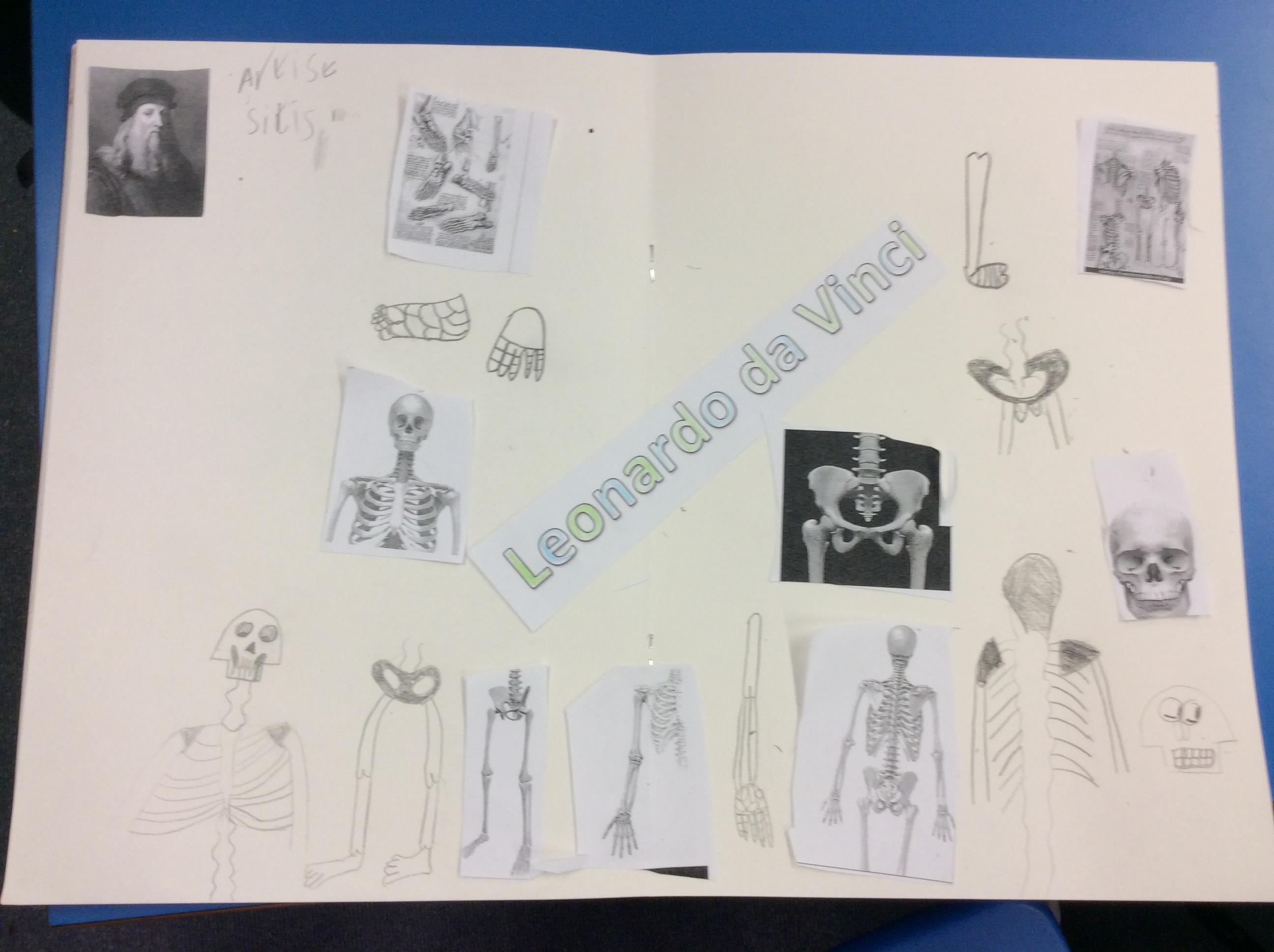 Da Vinci used his sketch books to record his observations. He looked closely at the skeletons of us and. We tried to make careful drawings in our sketchbooks using our special sketching pencils.