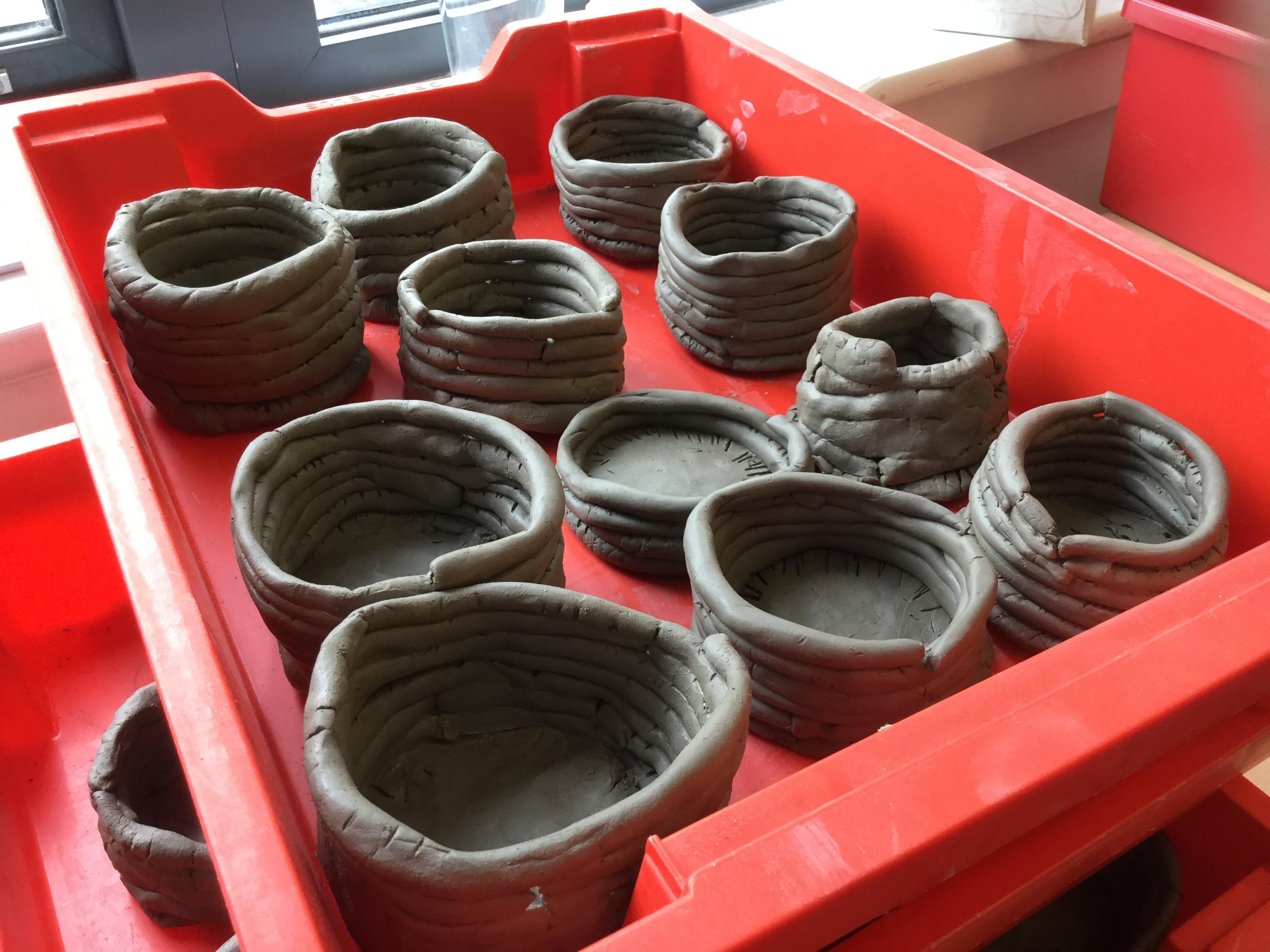 Today we learnt how to make a coil pot in clay. We had to use skills of squeezing, scoring, joining and smoothing in order to create these pots....
