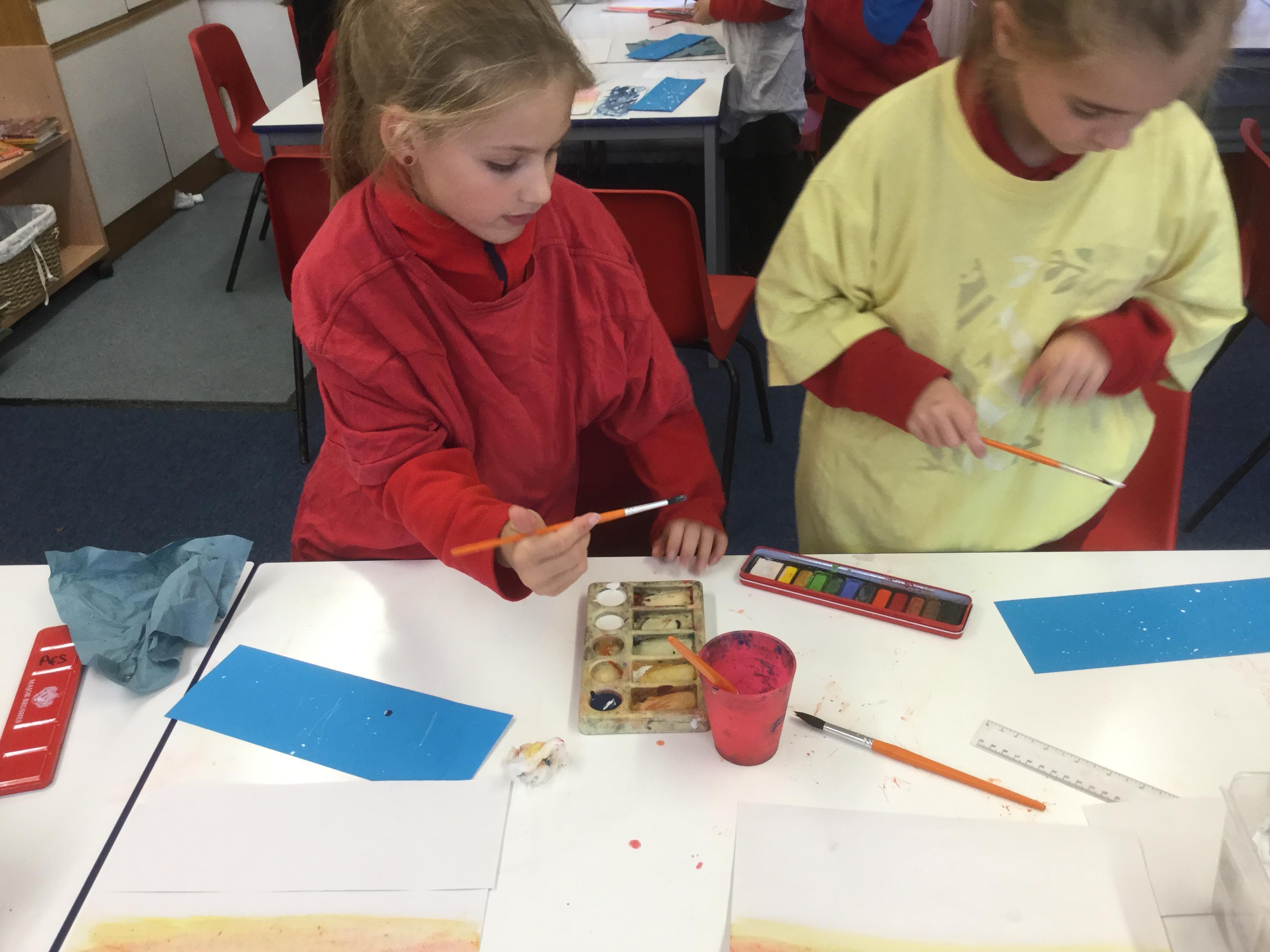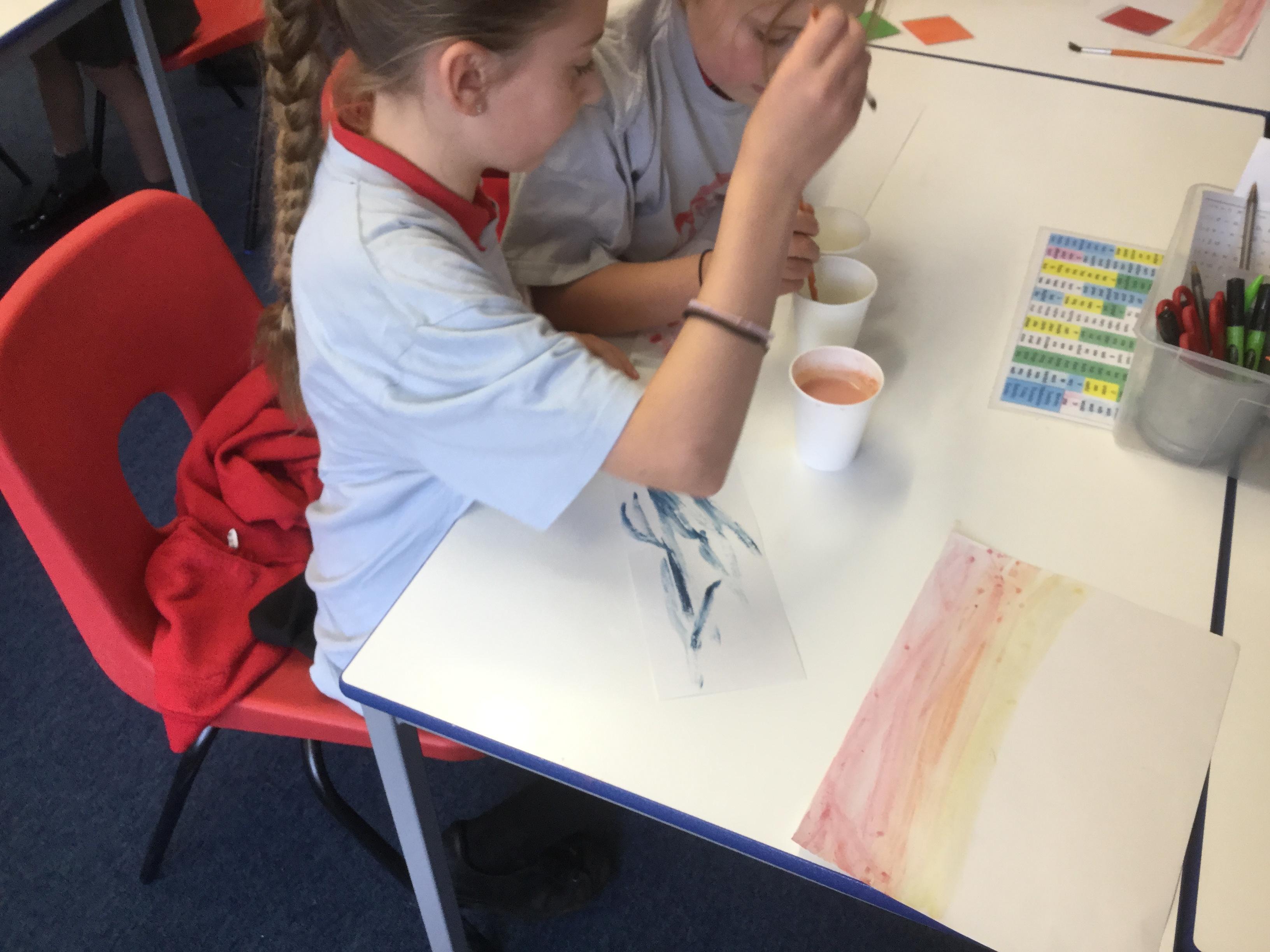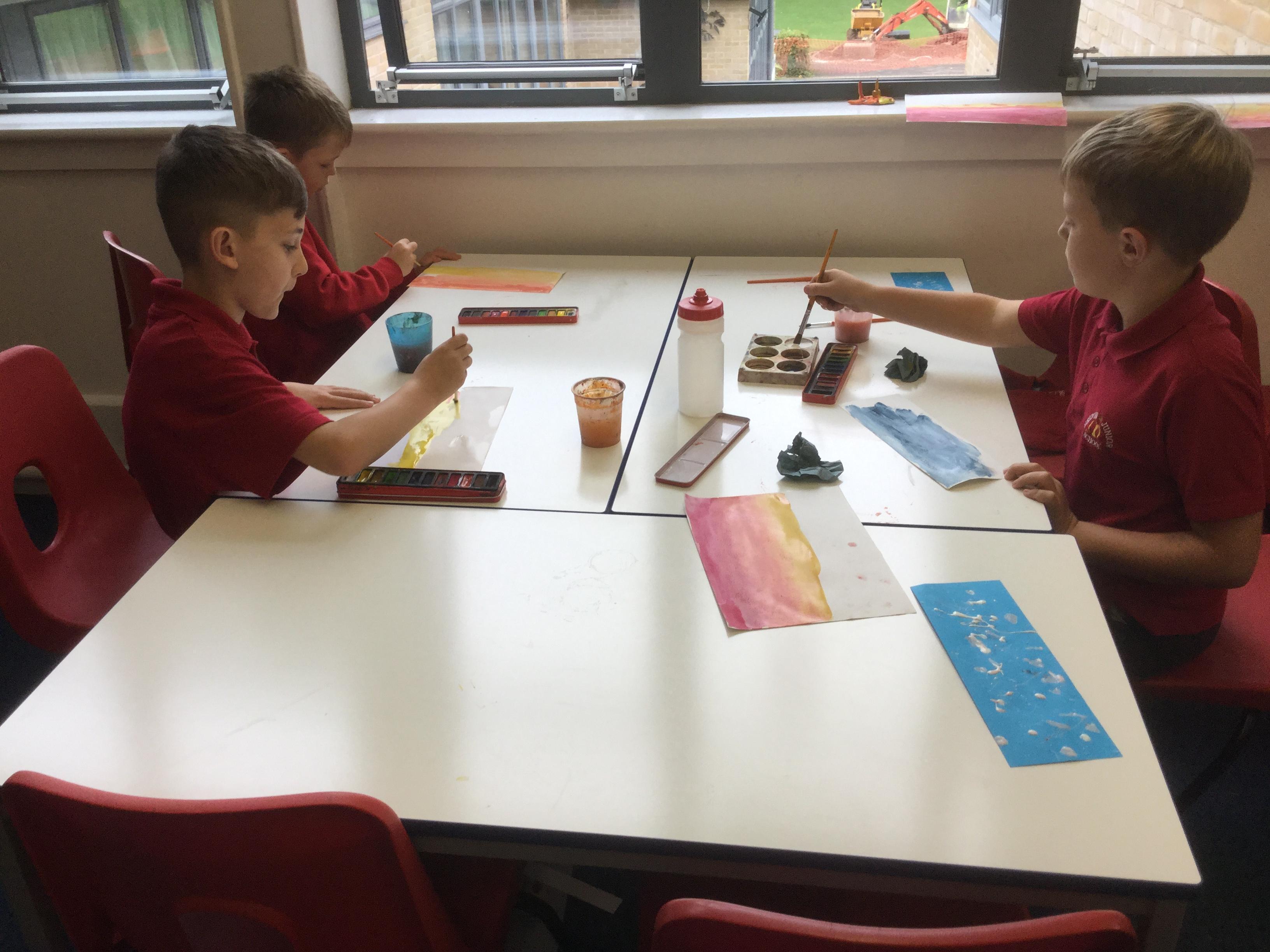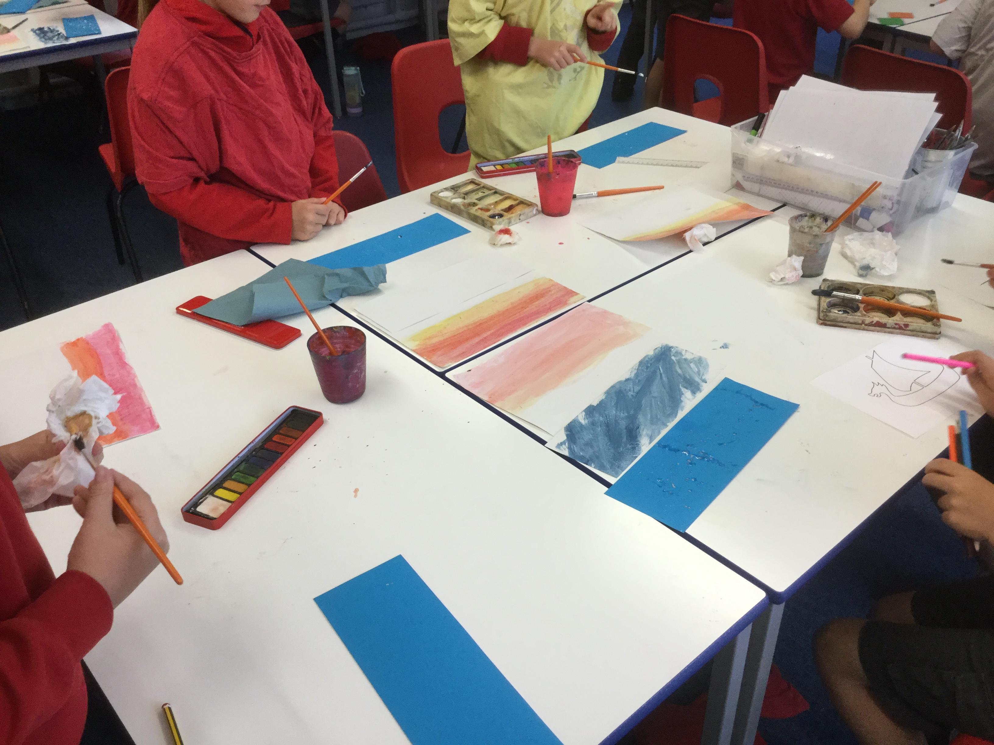 Today we made painting collages depicting a Viking ship sailing on the seas. We used different techniques to create the different effects of the sky and waves.