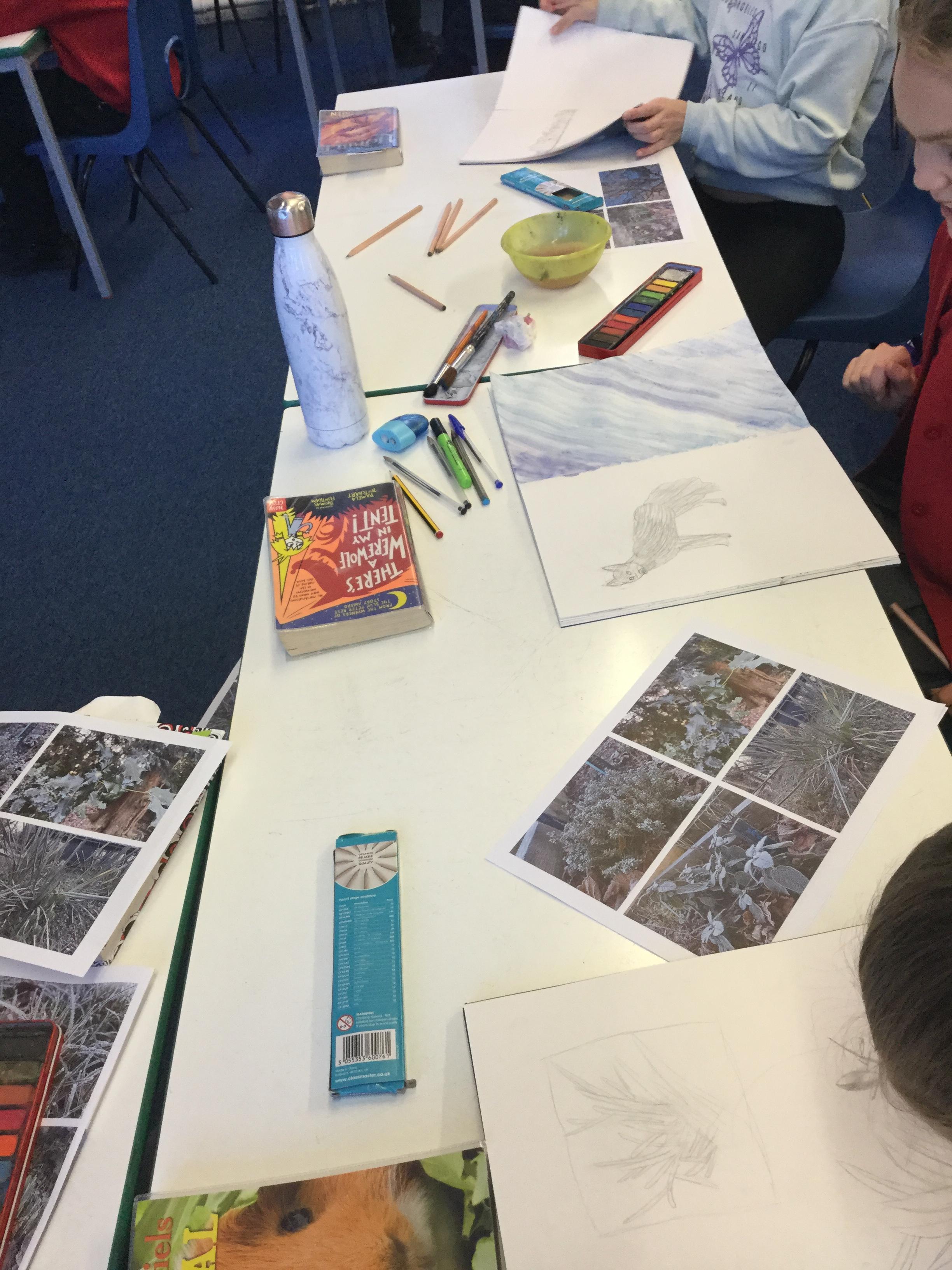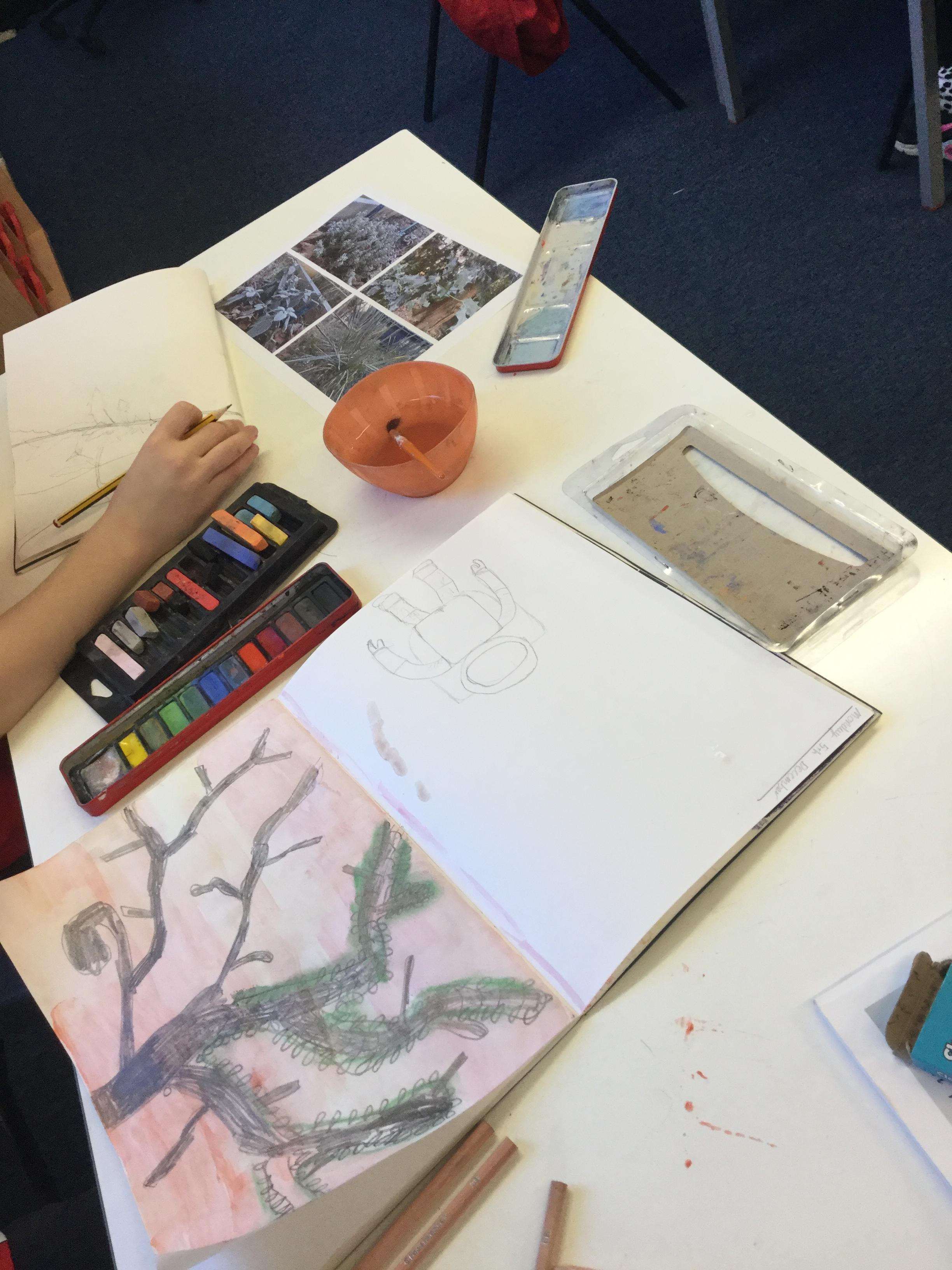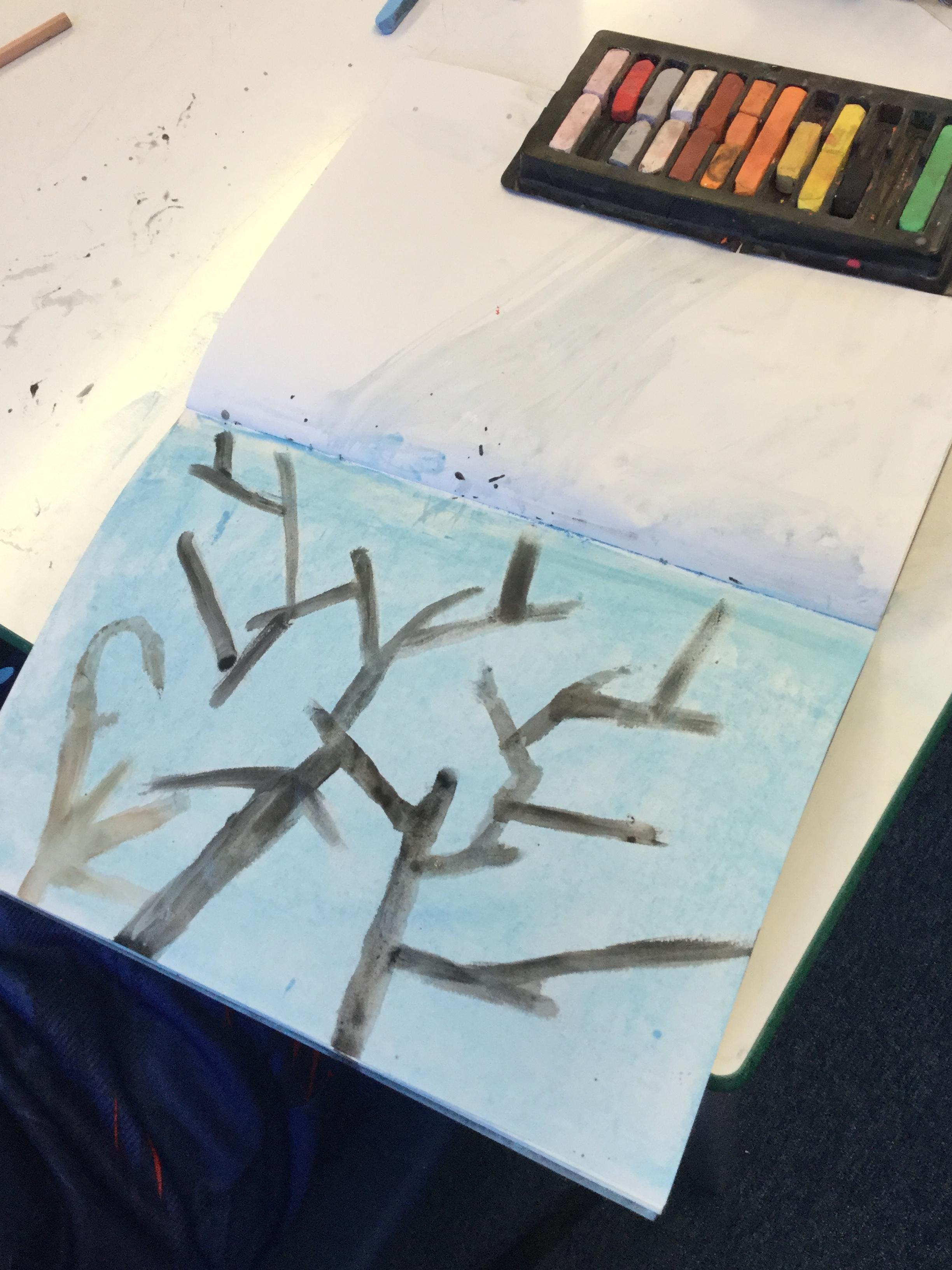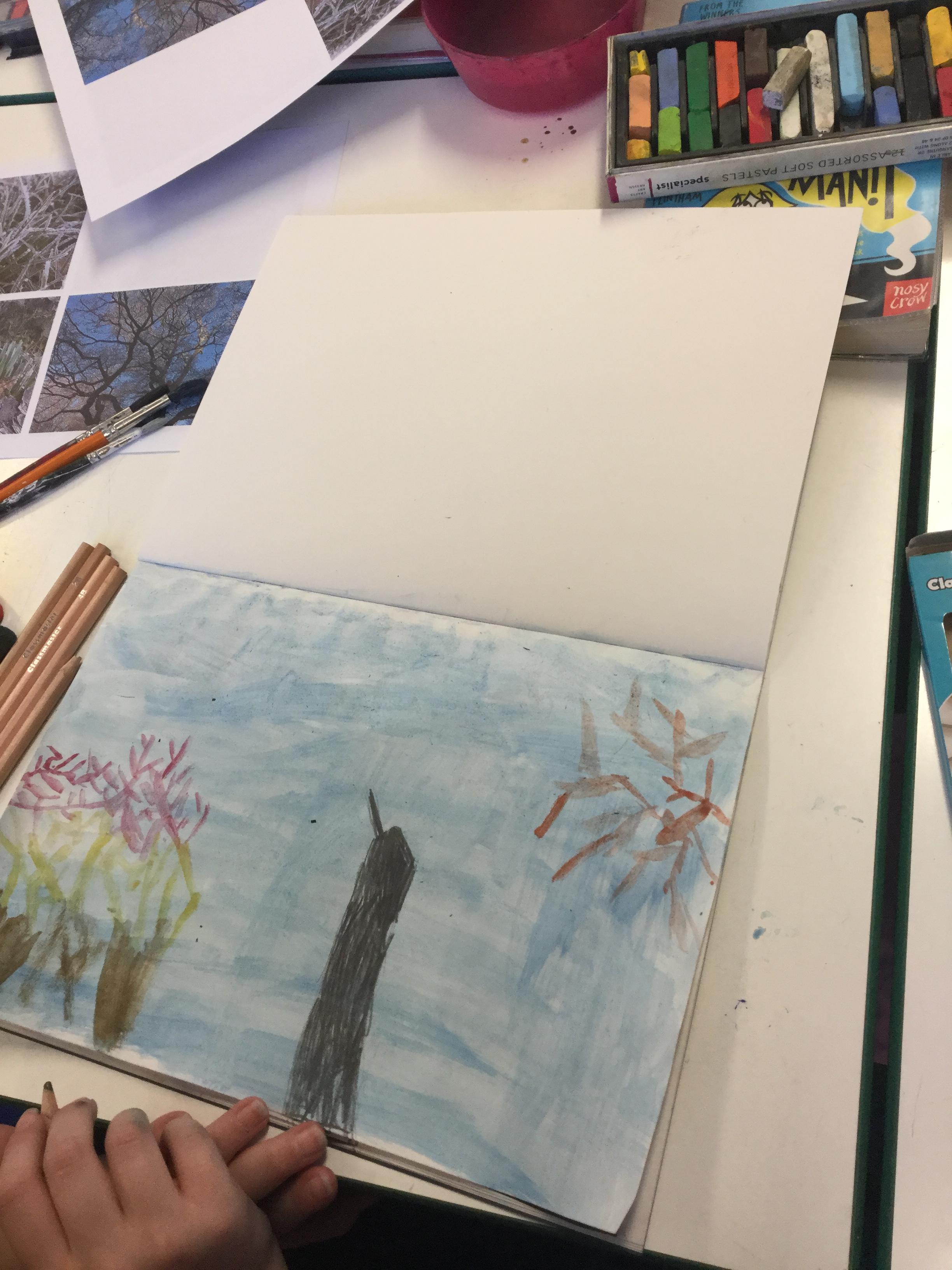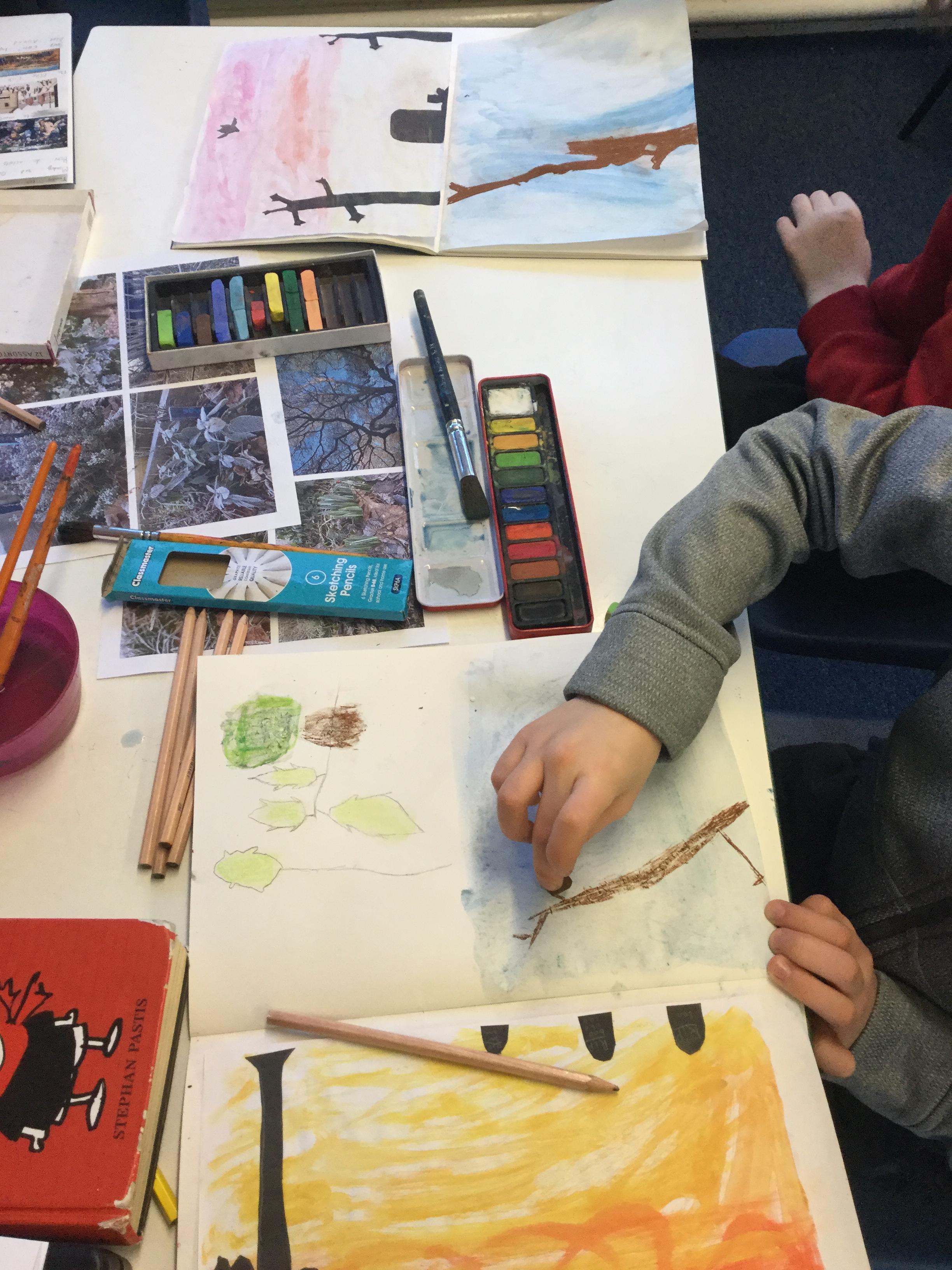 Mr Leigh took some photographs around the school grounds of the frosty conditions. We asked the children to use these pictures to inspire their artwork - they could choose to use sketching pencils, watercolours or pastels.