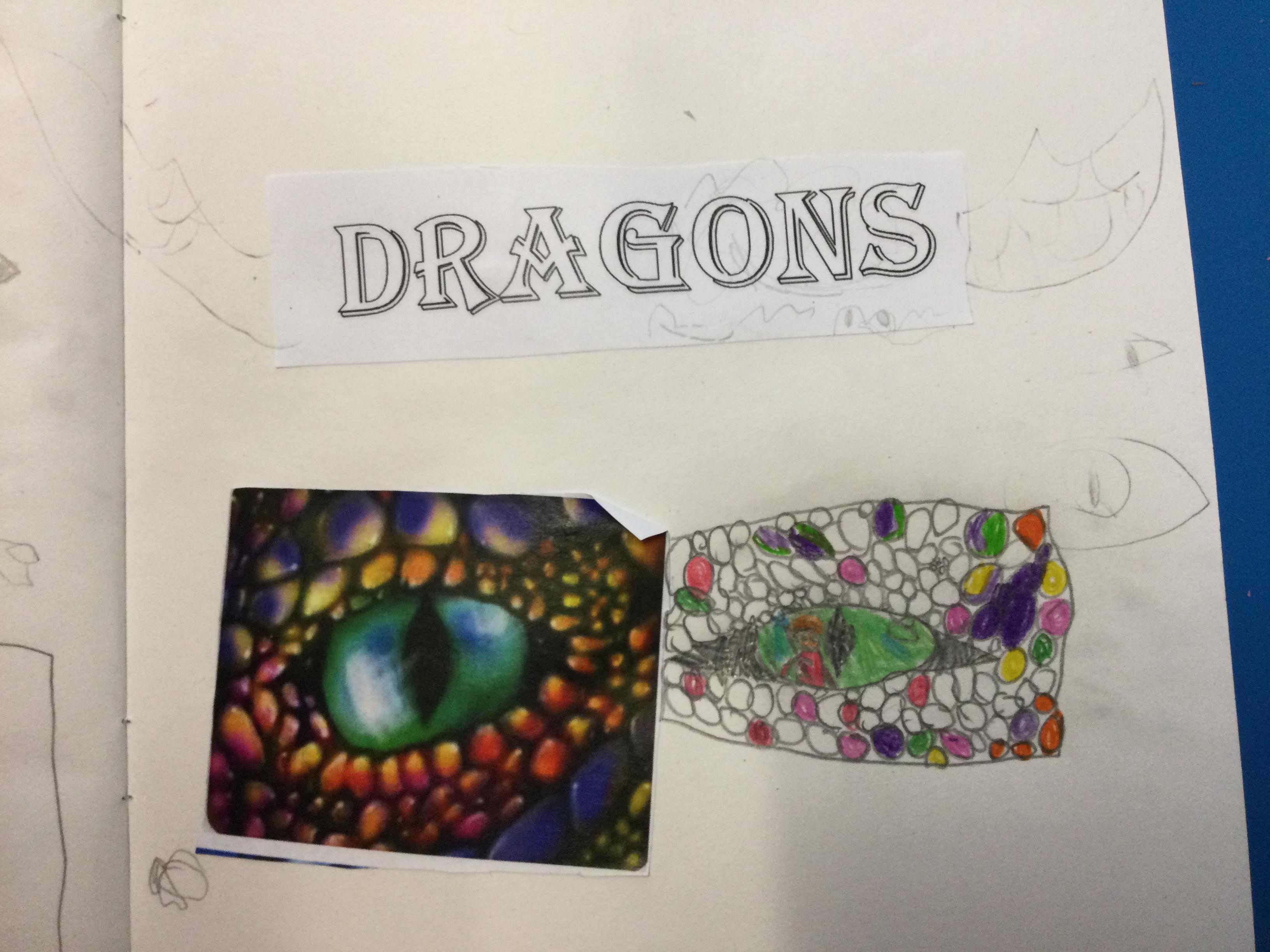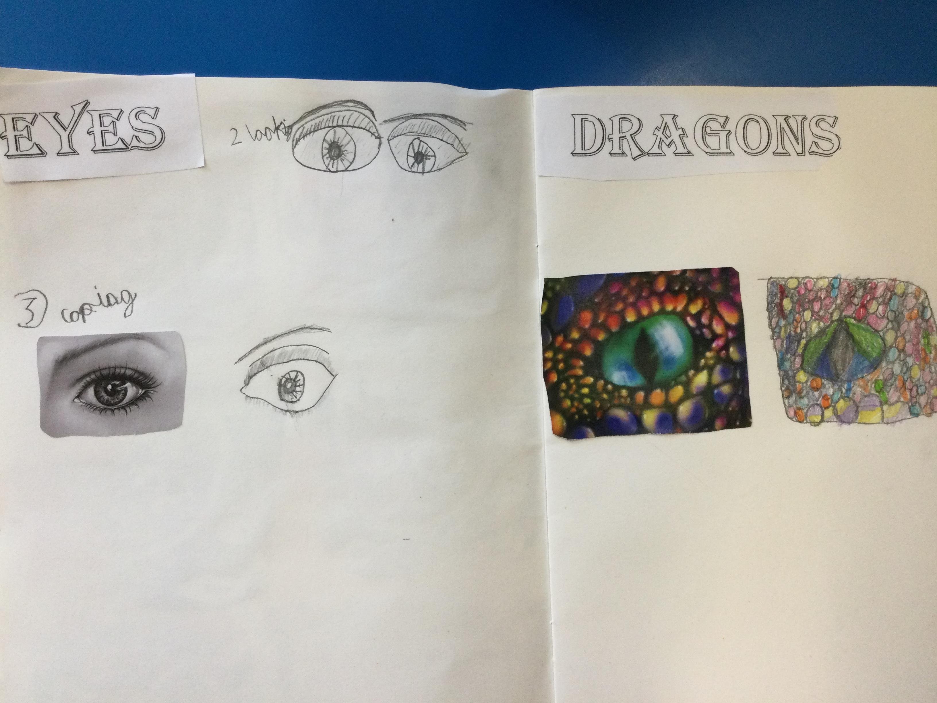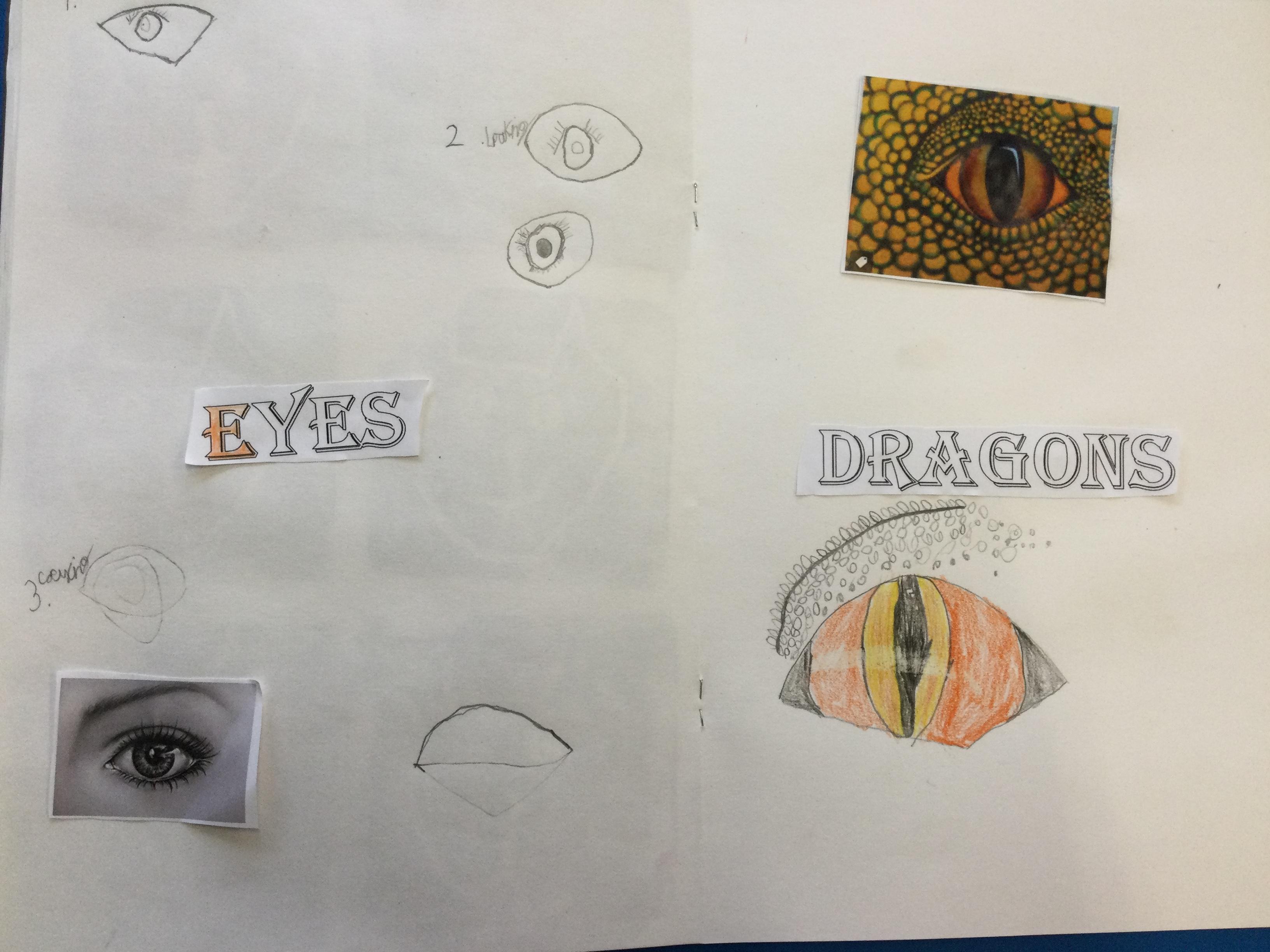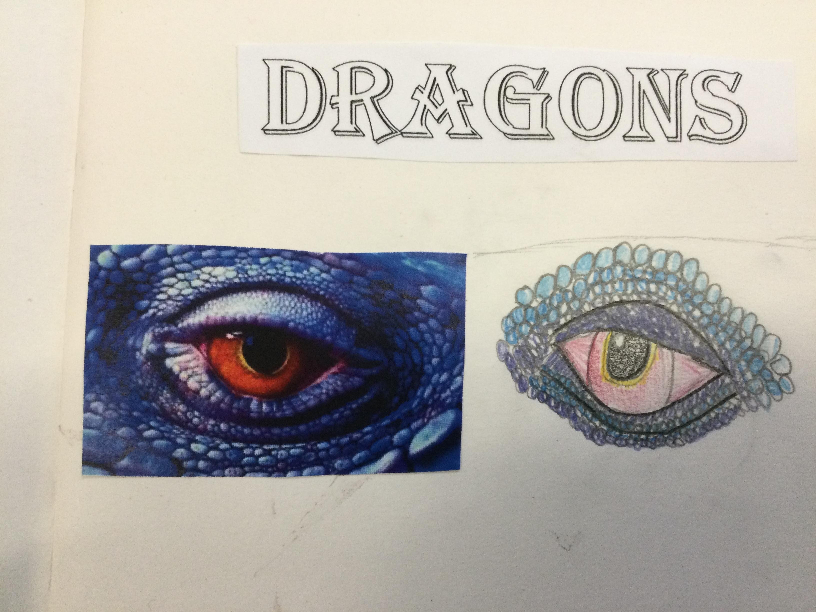 After looking at pictures of reptile eyes and picture of what dragon eyes might look like, we chose some images to try to draw.