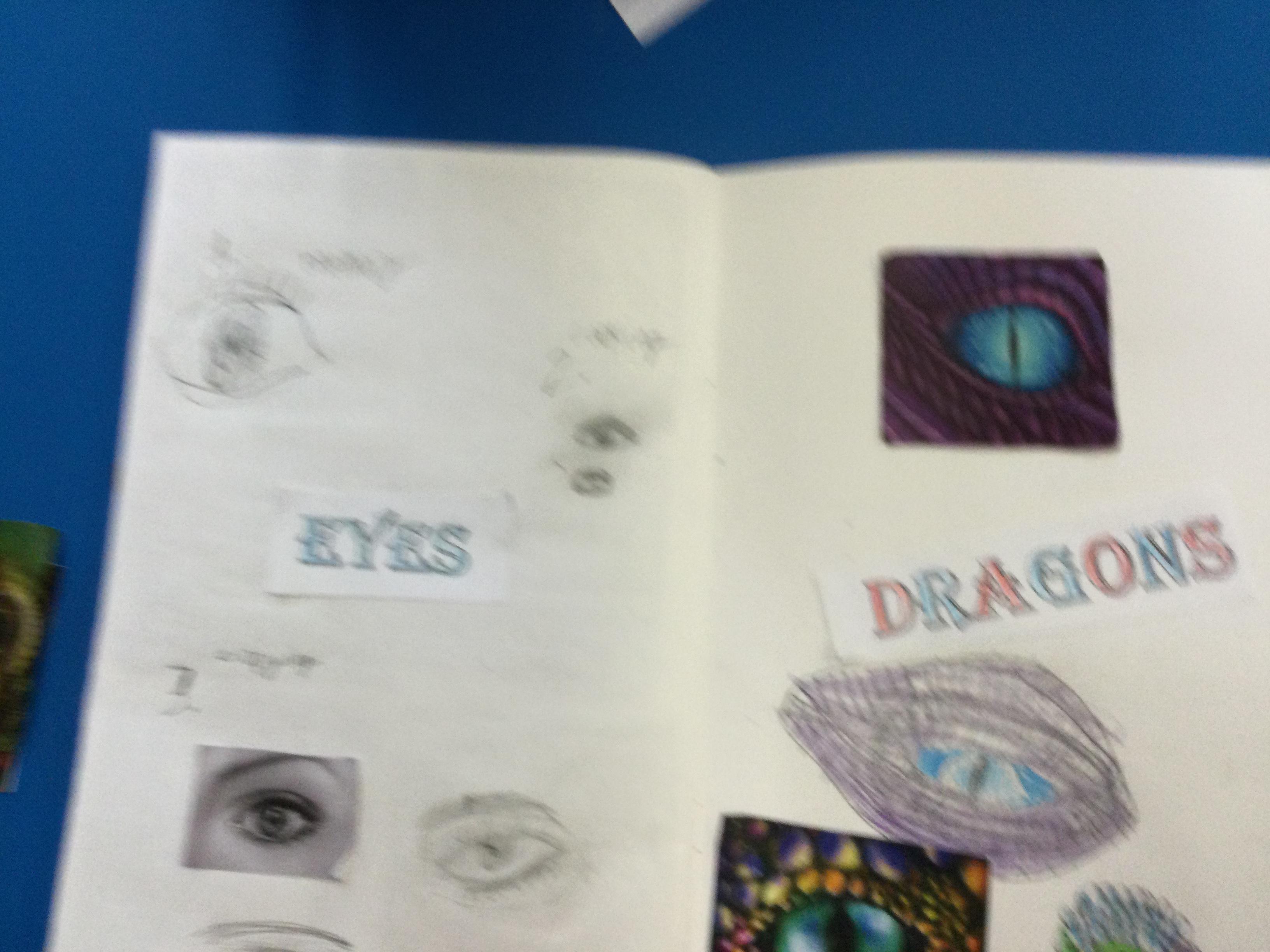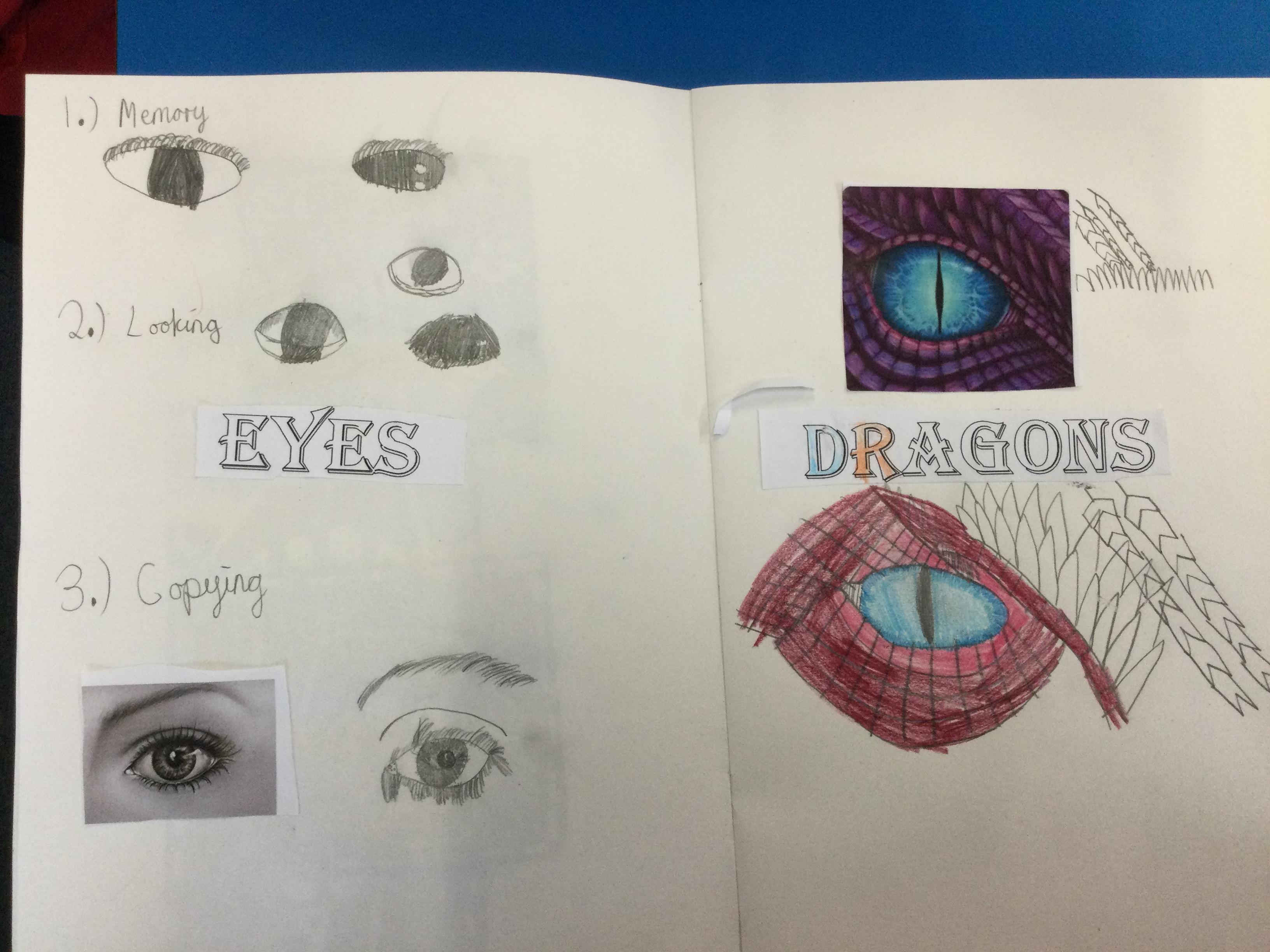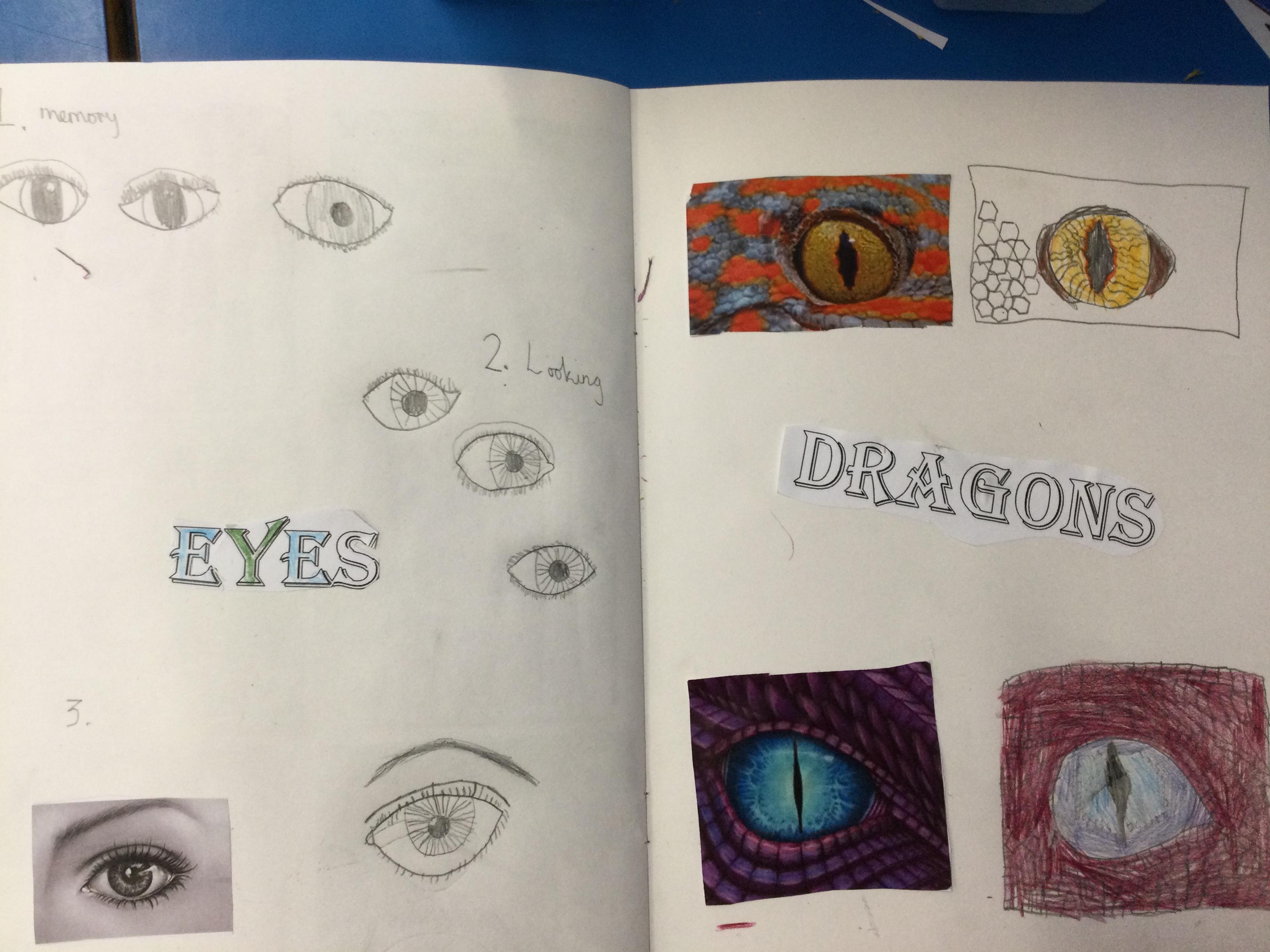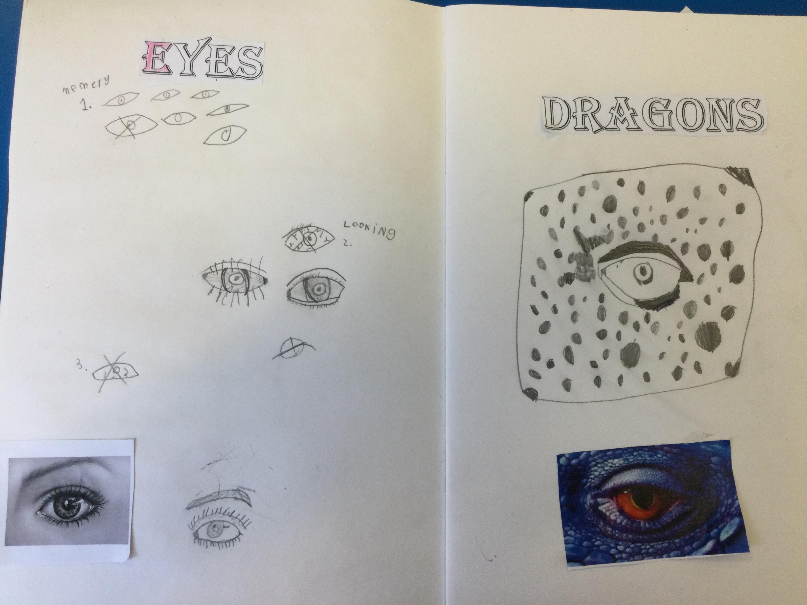 After looking at pictures of reptile eyes and picture of what dragon eyes might look like, we chose some images to try to draw.