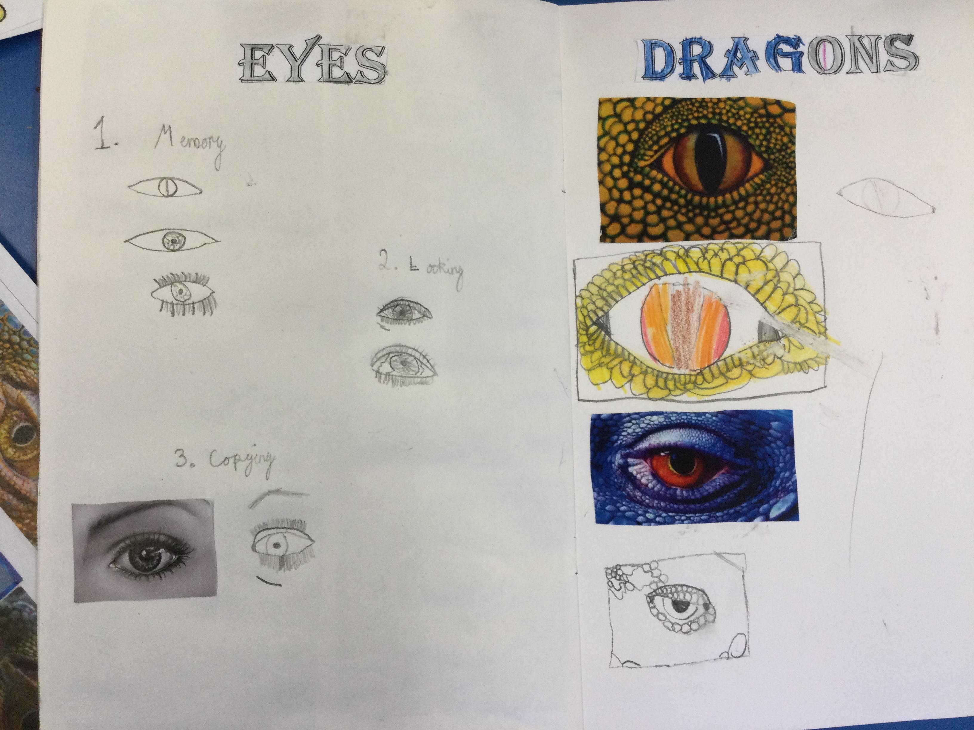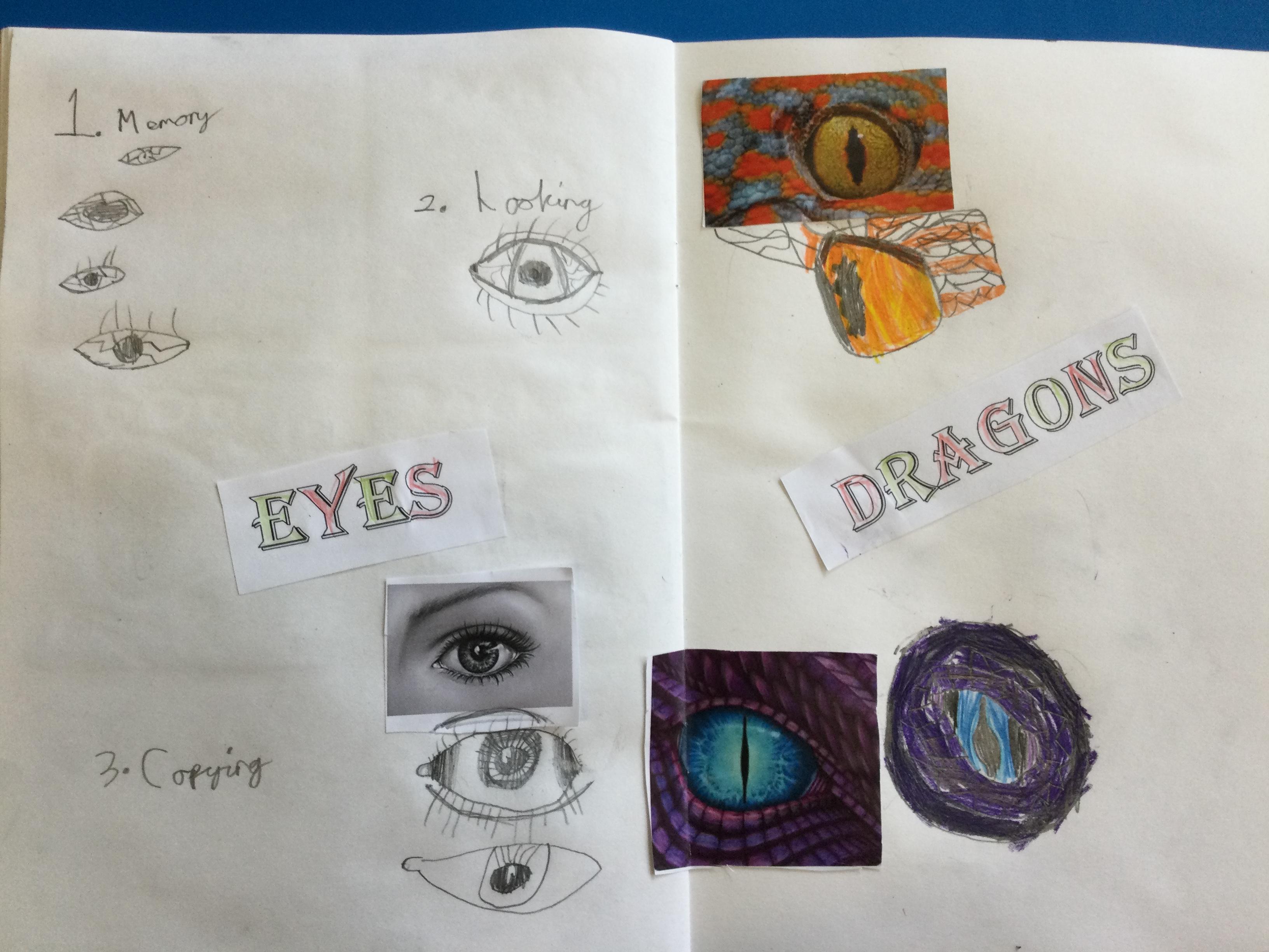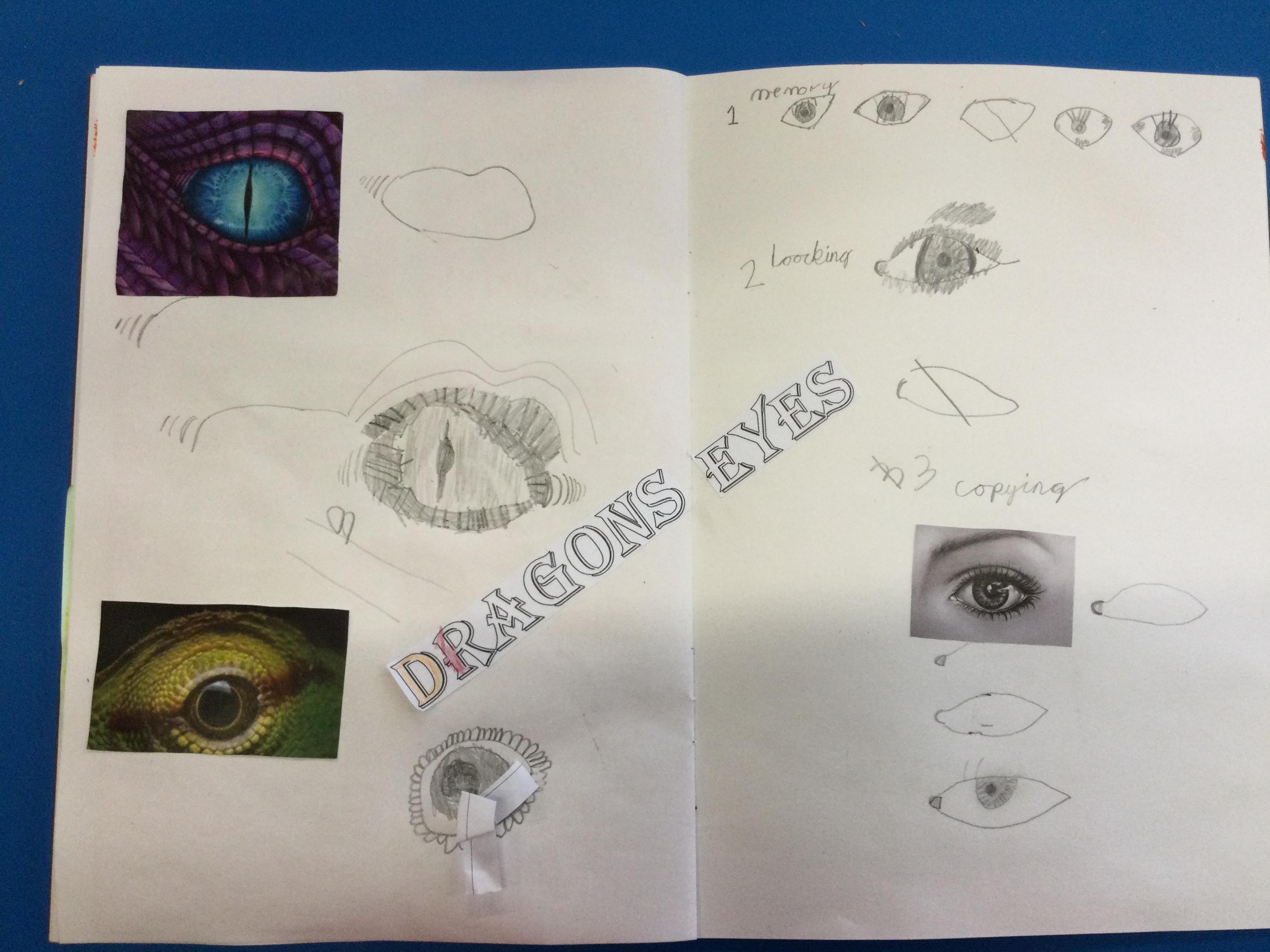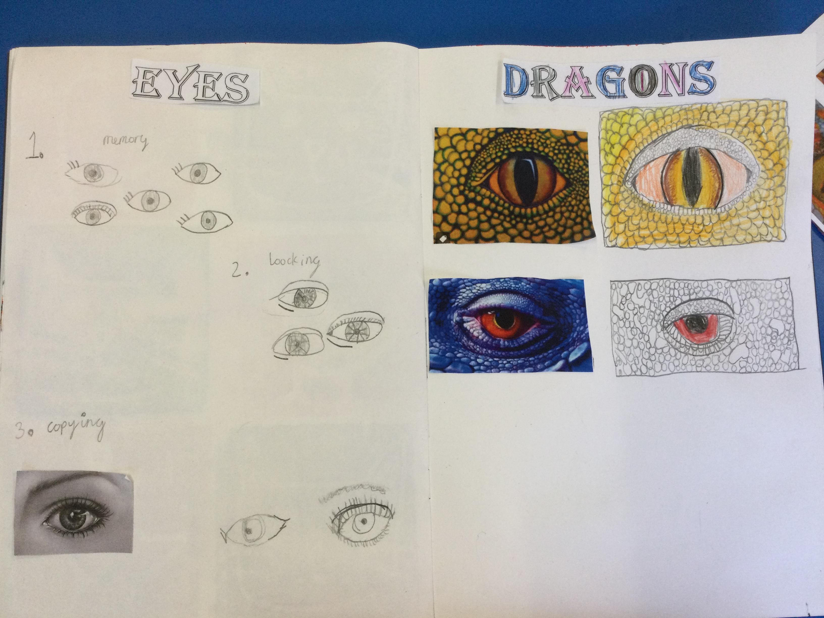 After looking at pictures of reptile eyes and picture of what dragon eyes might look like, we chose some images to try to draw.