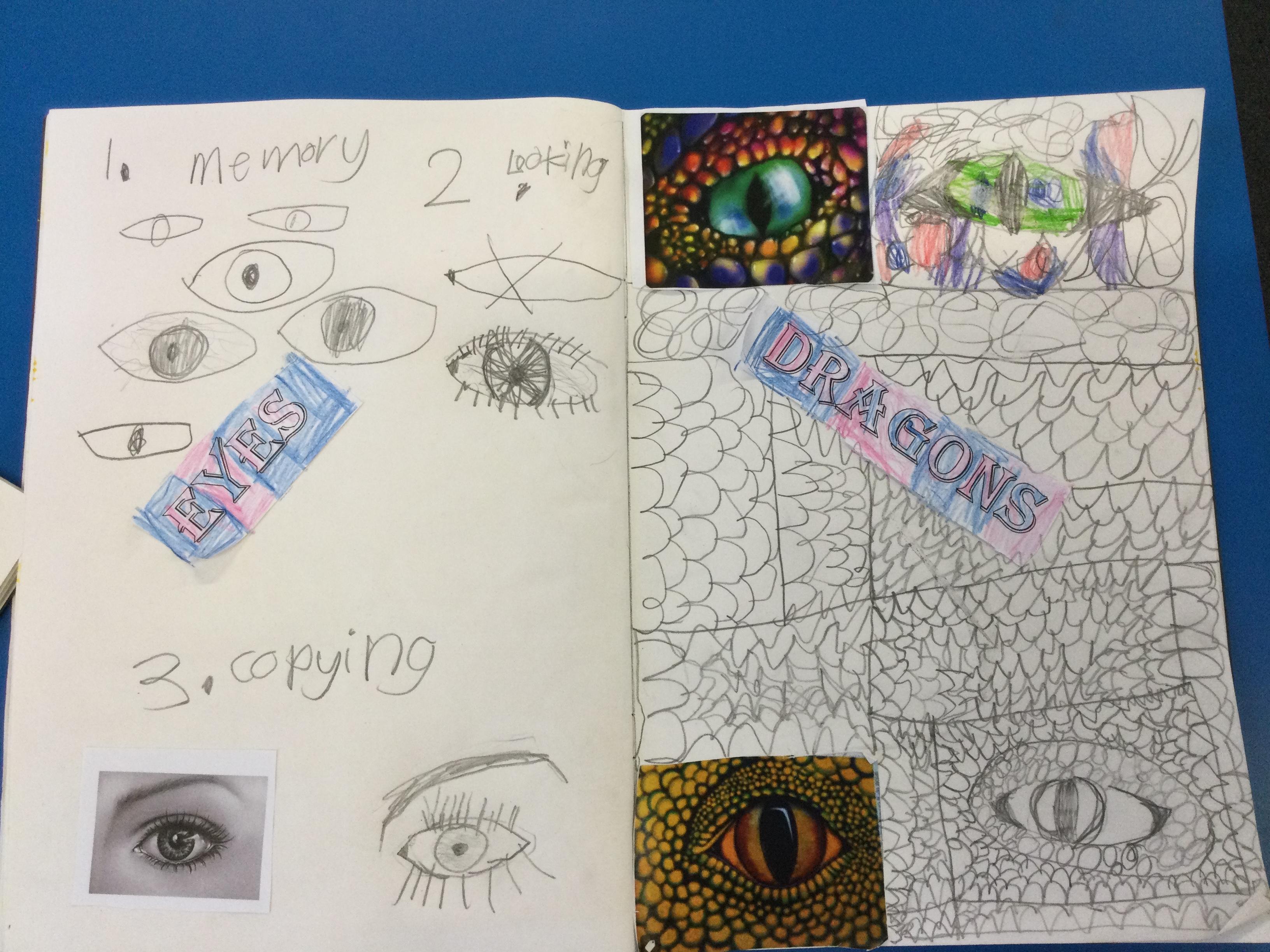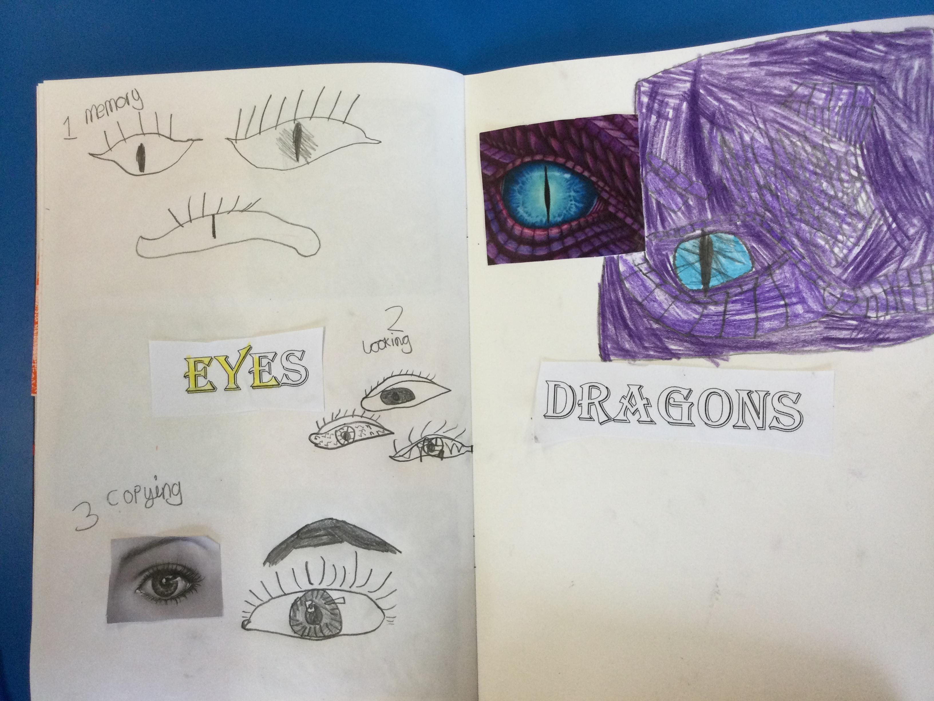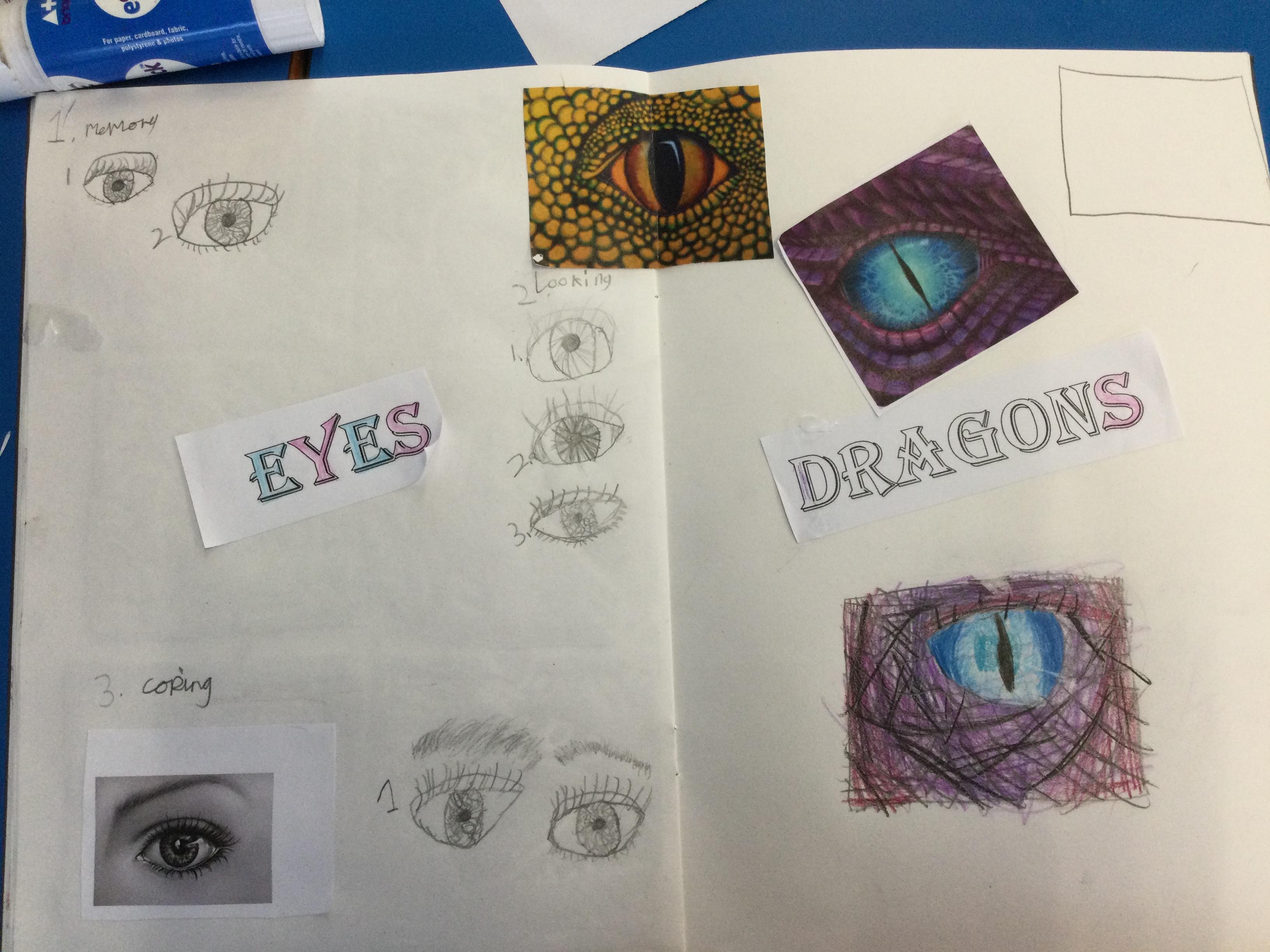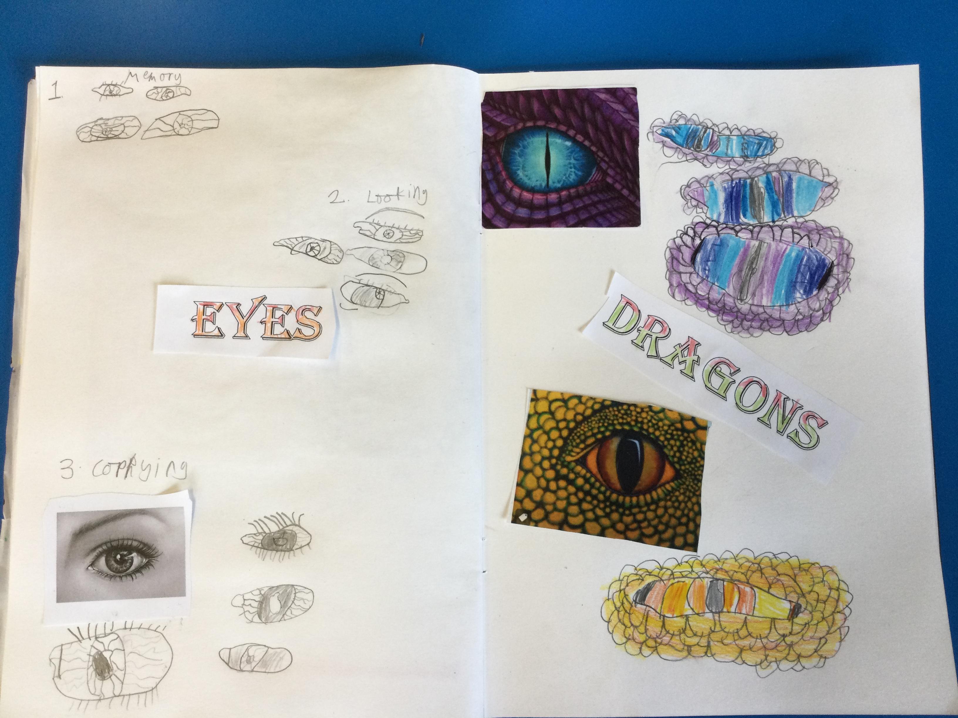After looking at pictures of reptile eyes and picture of what dragon eyes might look like, we chose some images to try to draw.