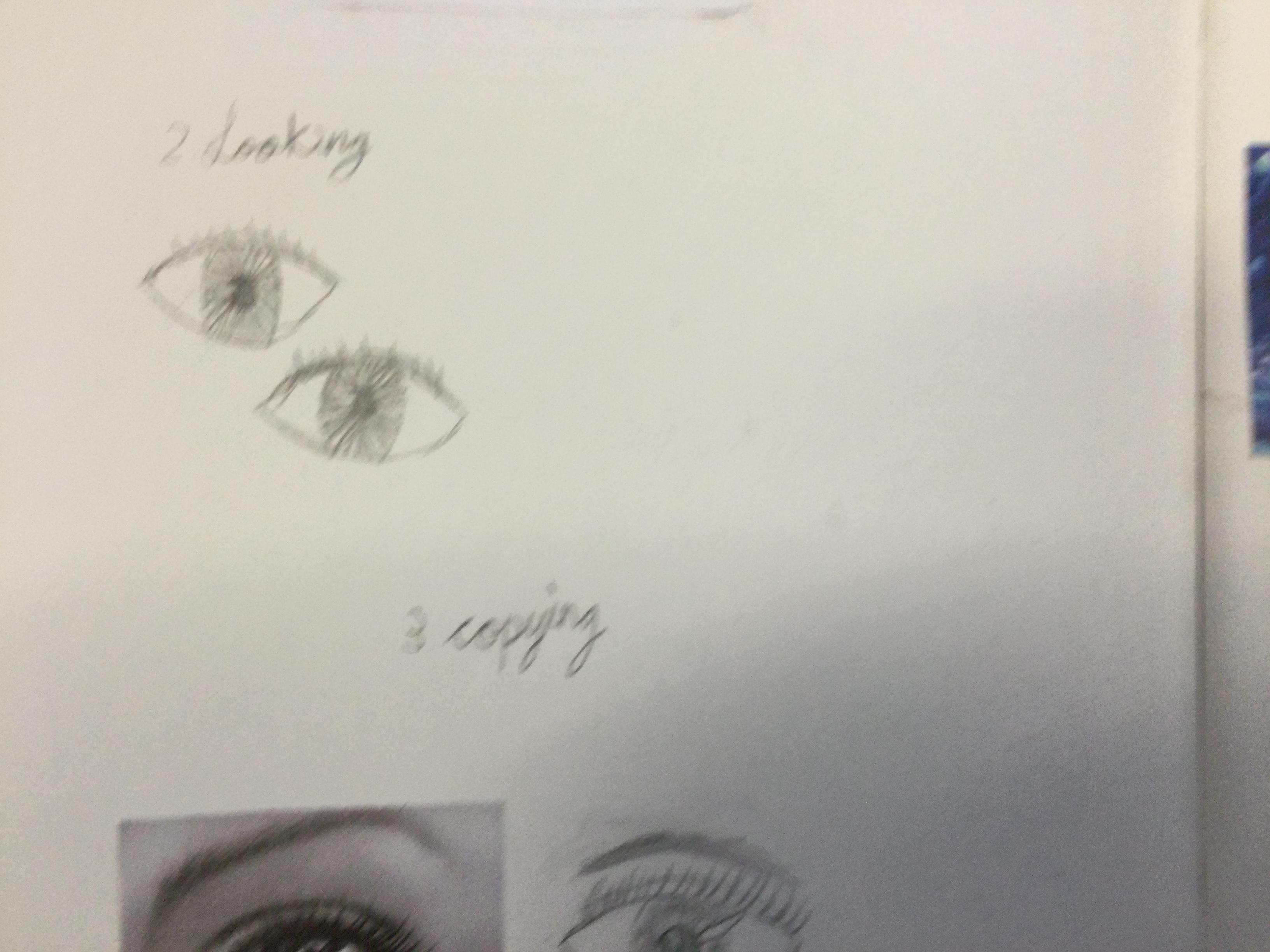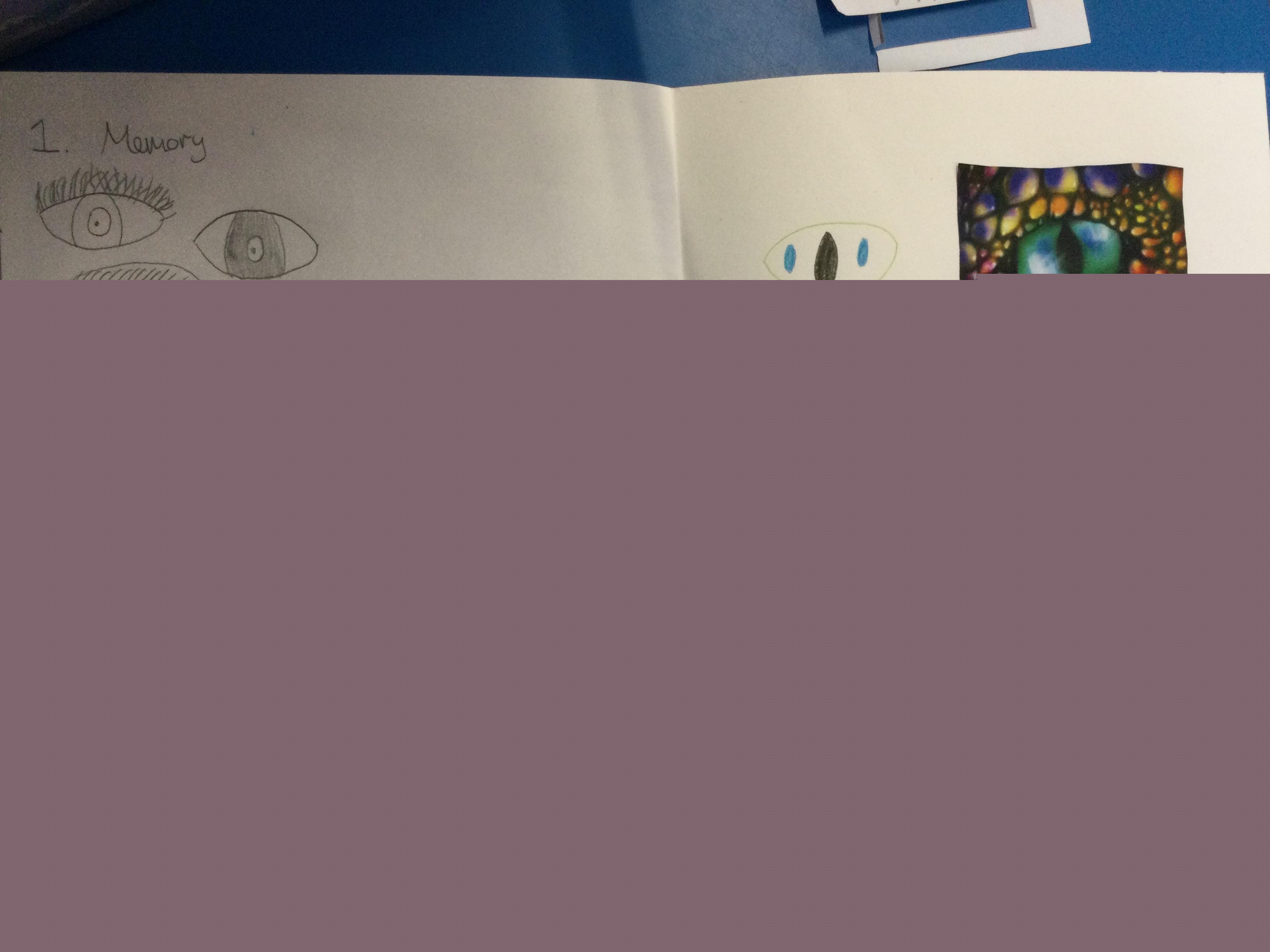 We started our learning with some sketchbook work.  We had a go at drawing human eyes from memory, then by looking closely into our friend’s eyes and finally by copying a artist’s pencil sketch.  We were pleased with how much we improved.