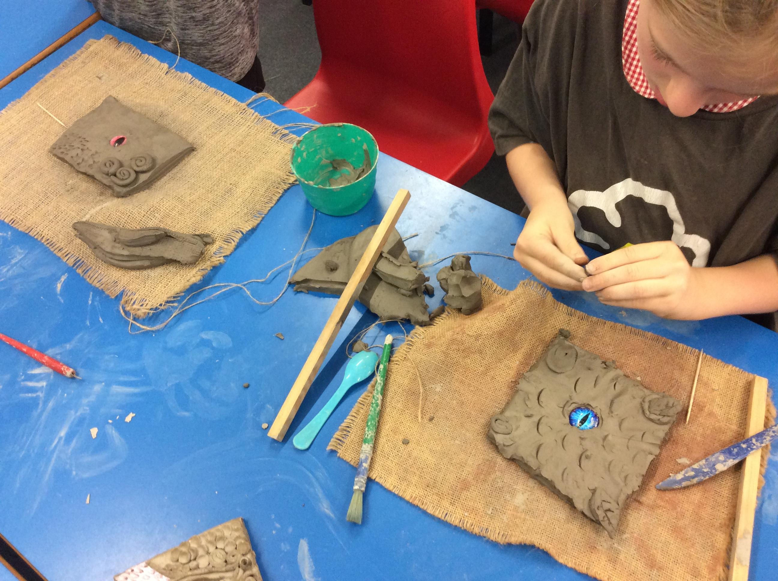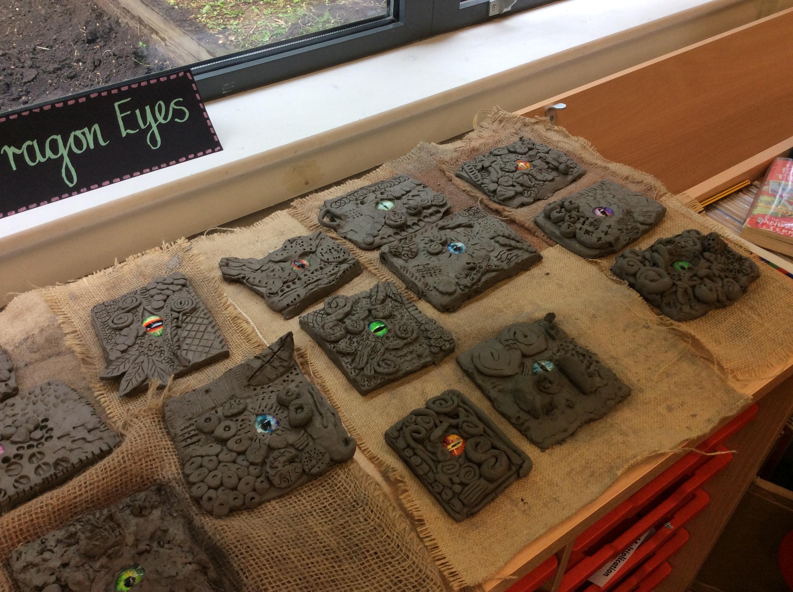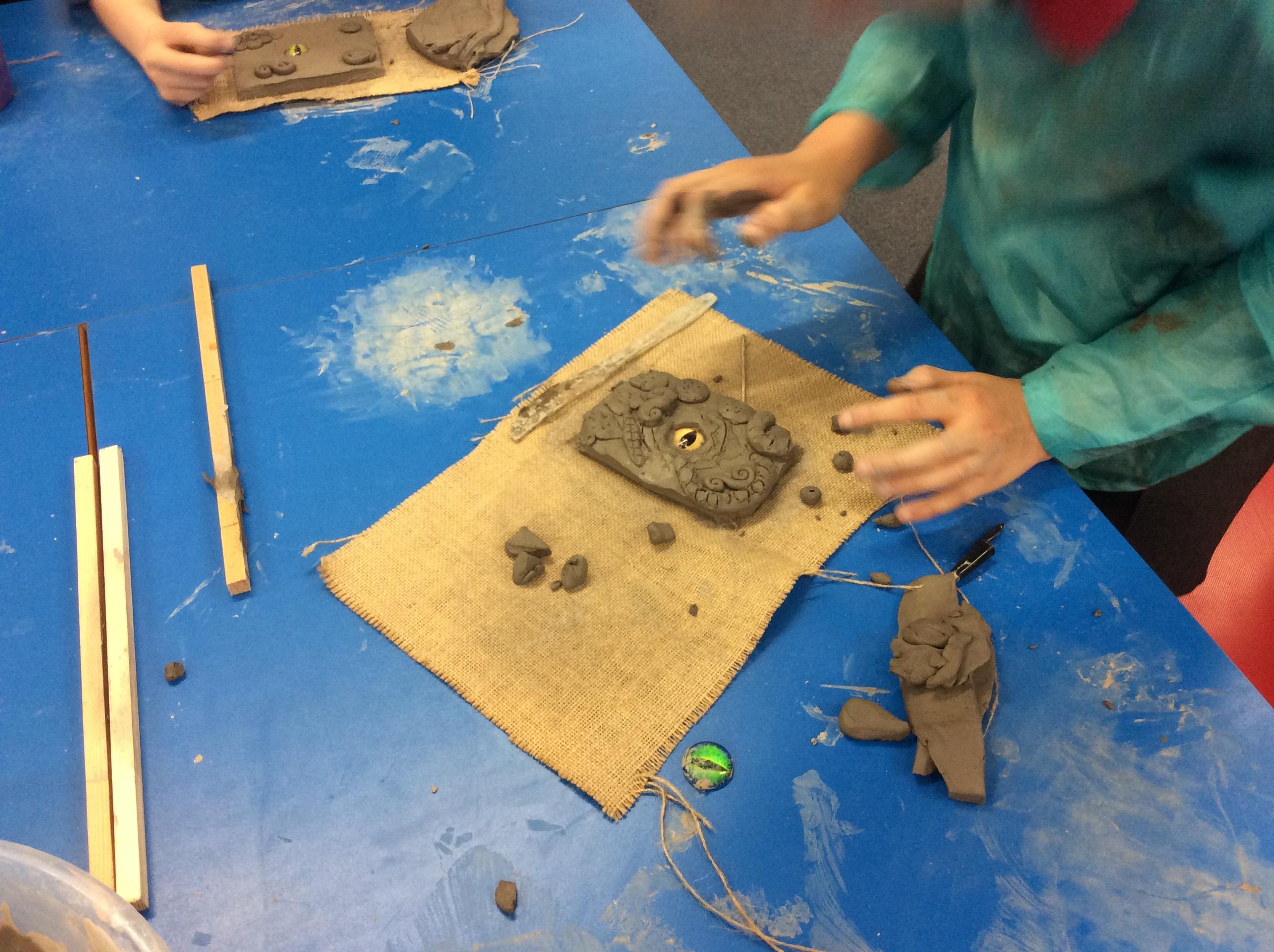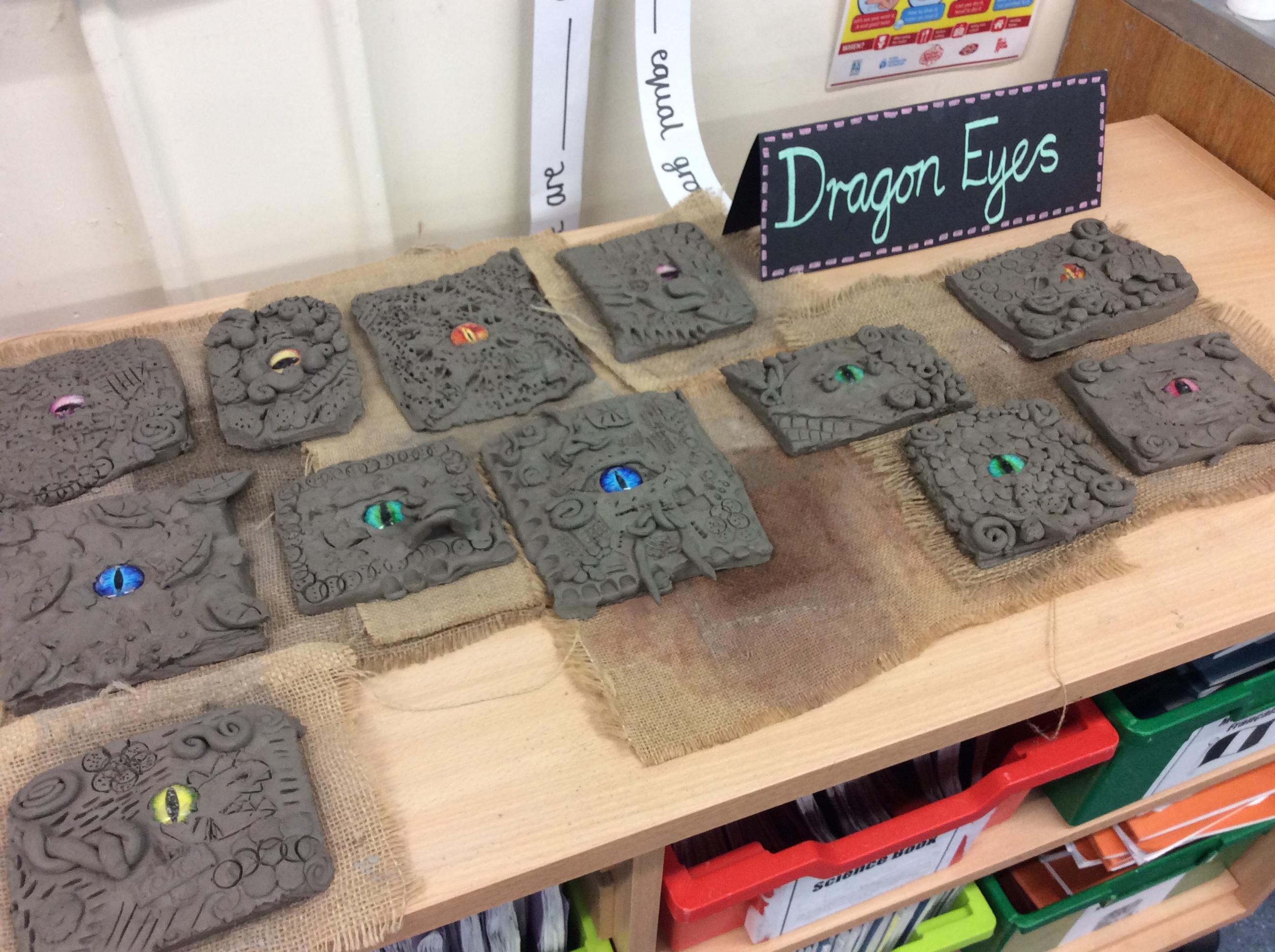 We practiced some of the skills we would need to create our own clay dragon eyes.