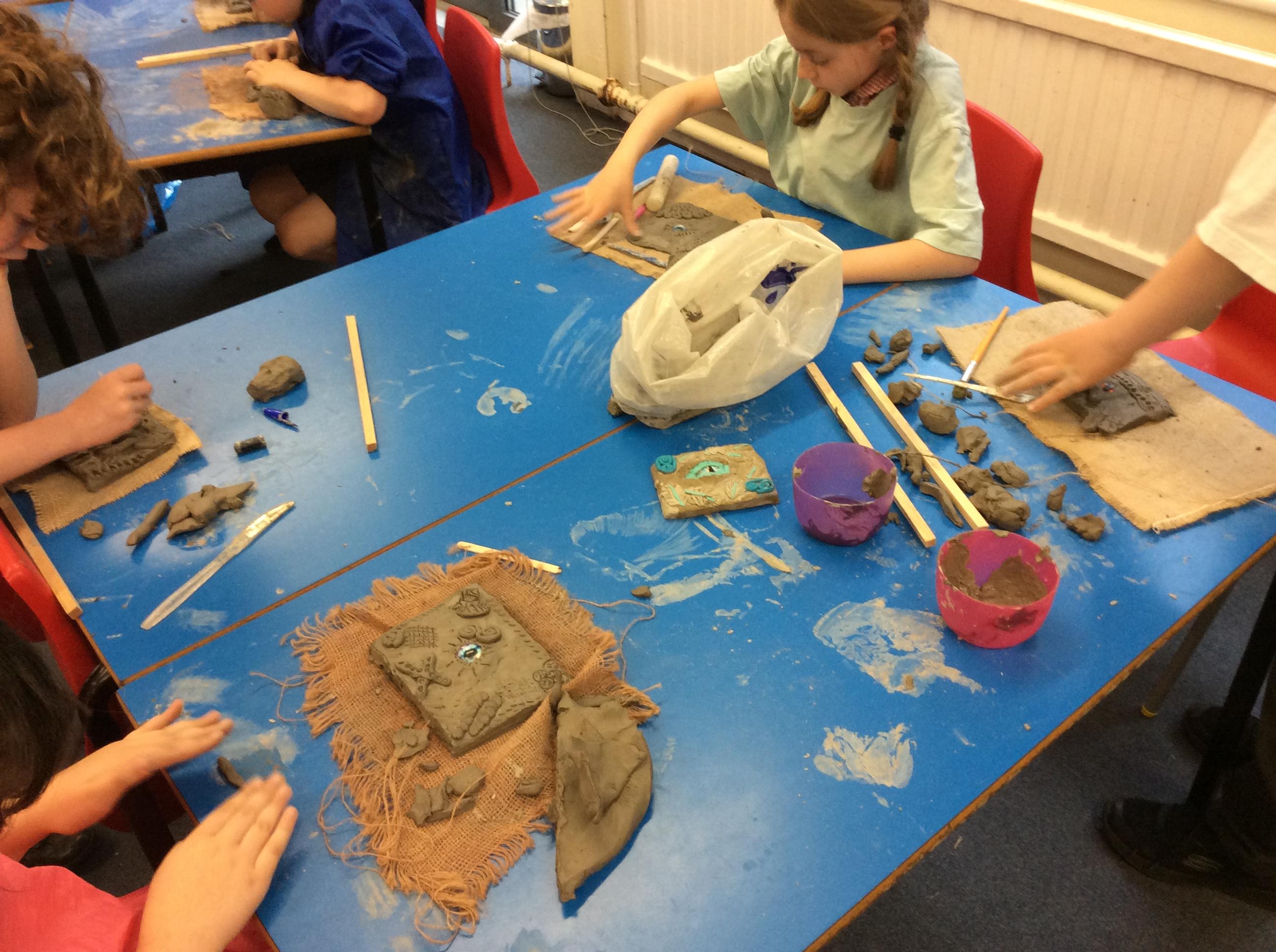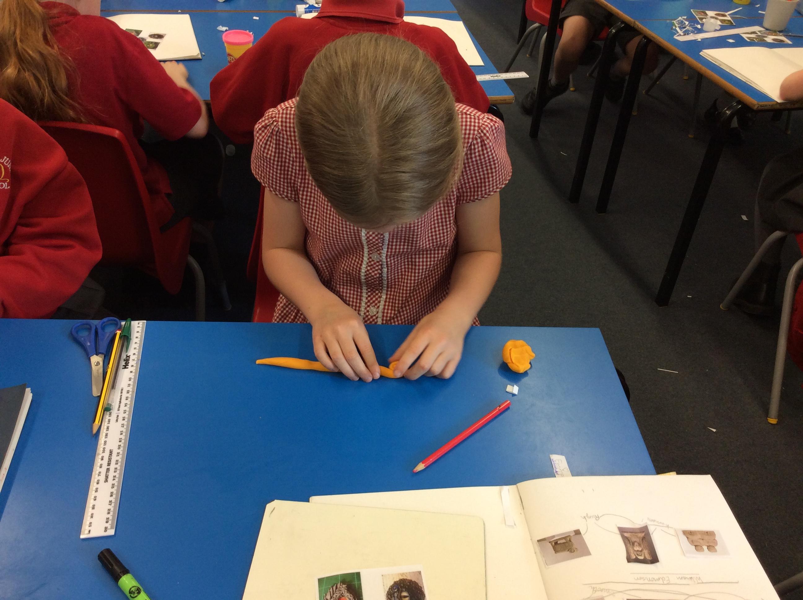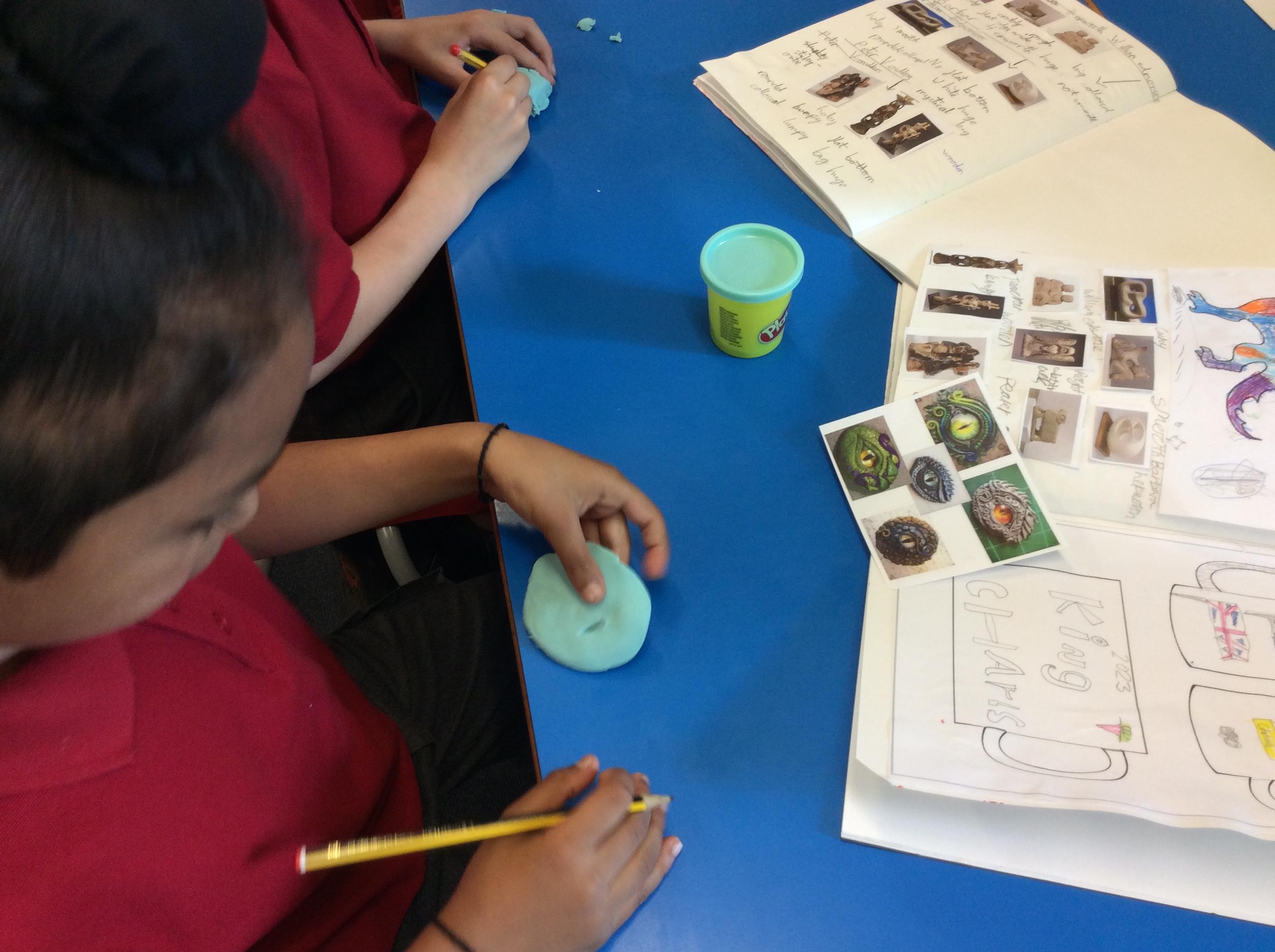 We practiced some of the skills we would need to create our own clay dragon eyes.