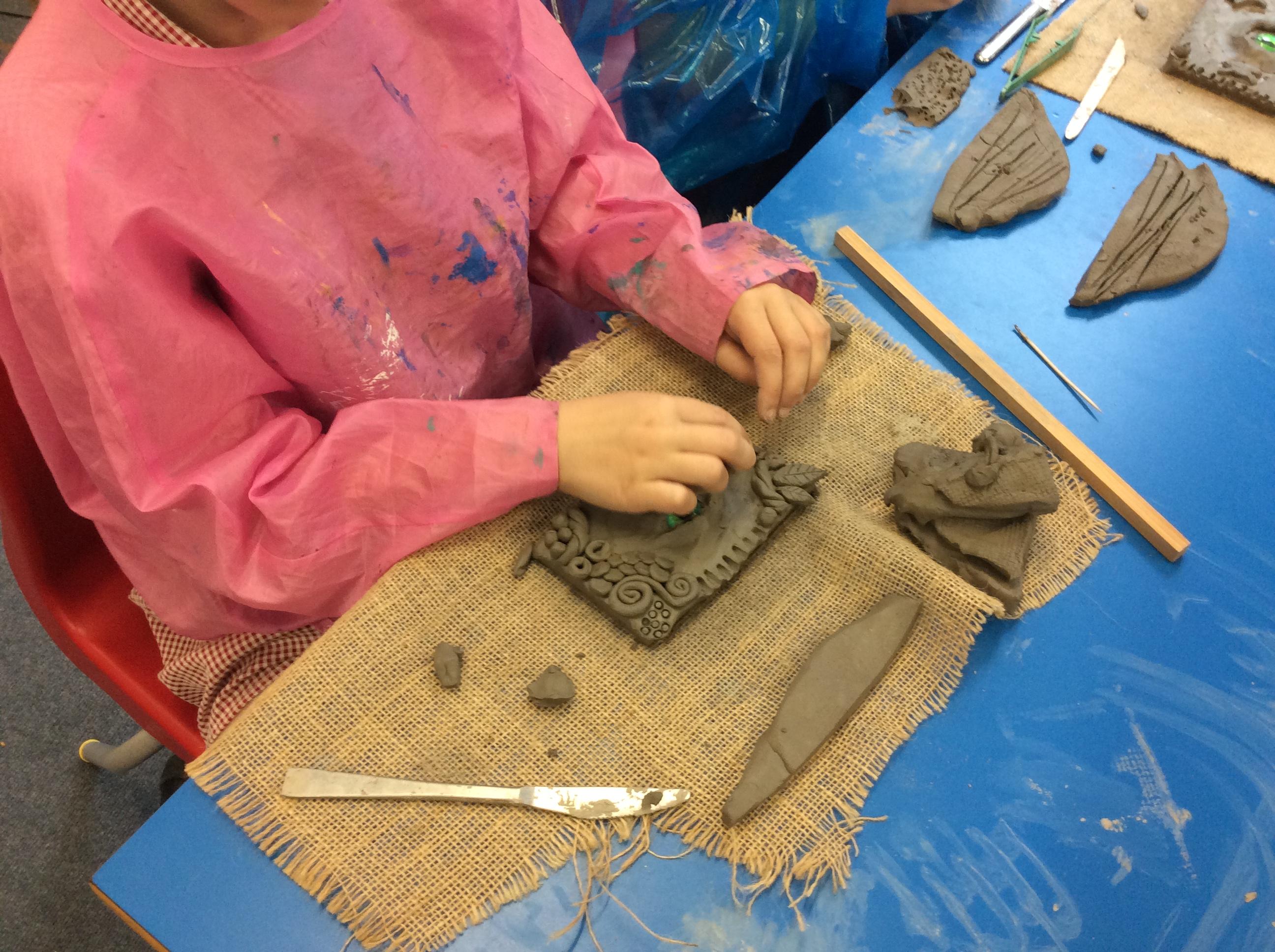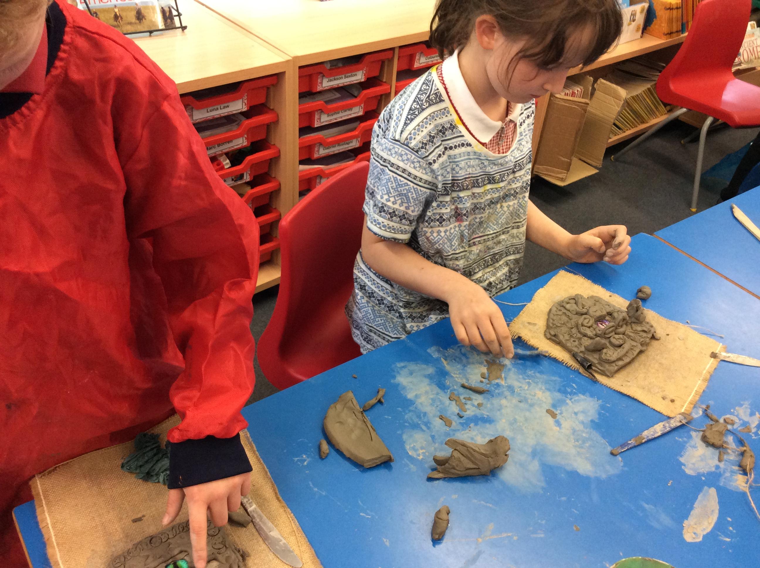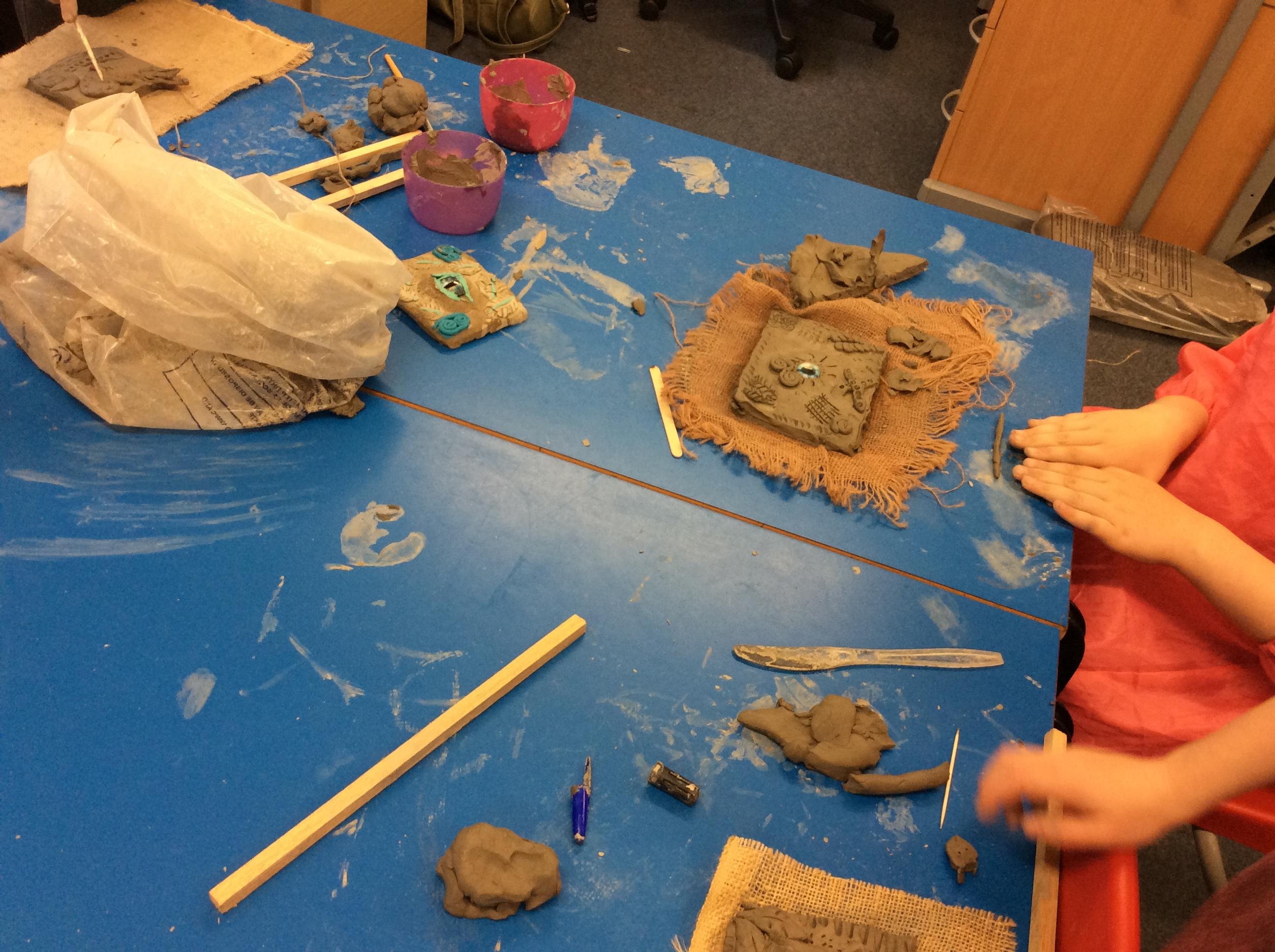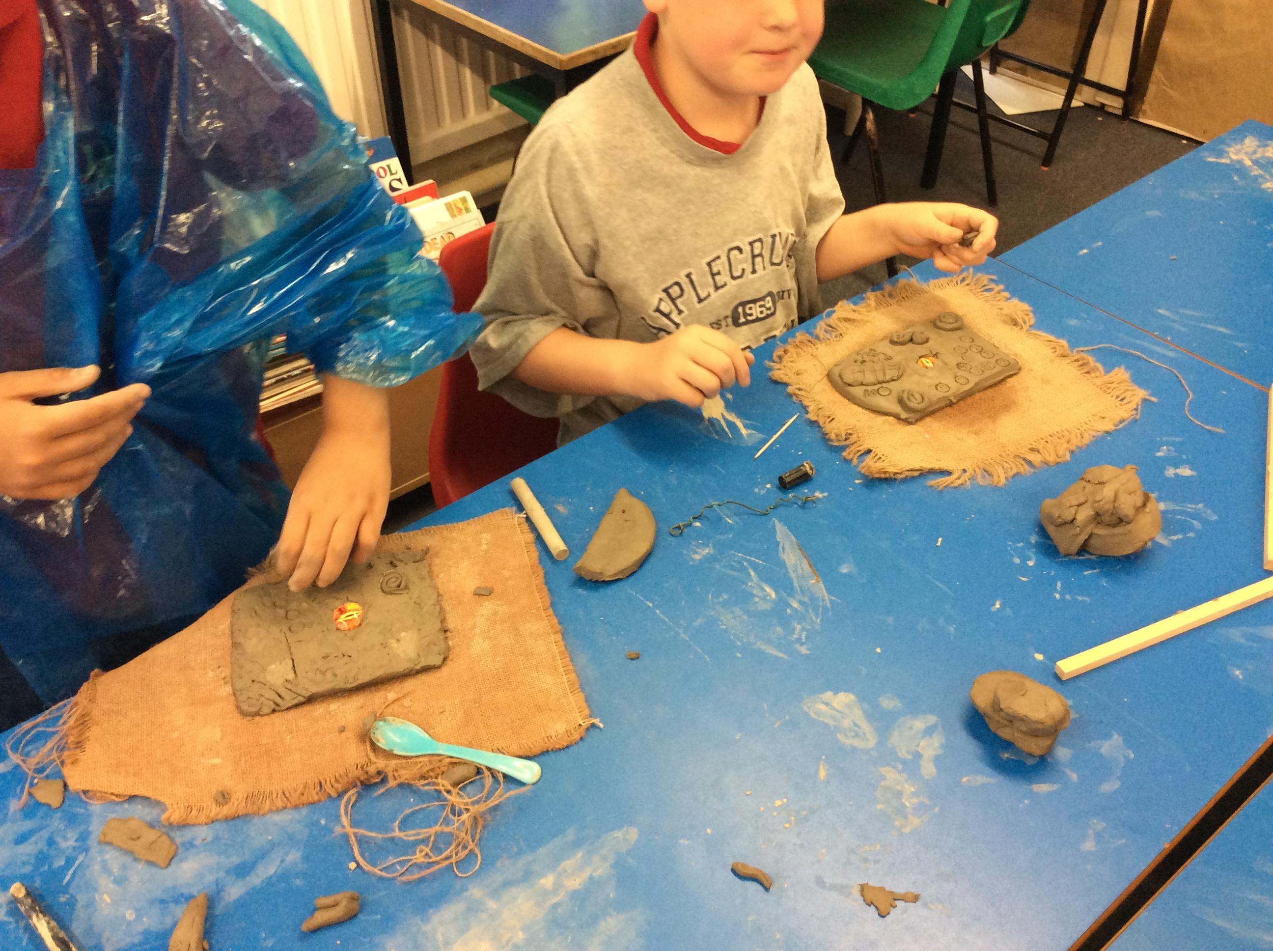 We practiced some of the skills we would need to create our own clay dragon eyes.