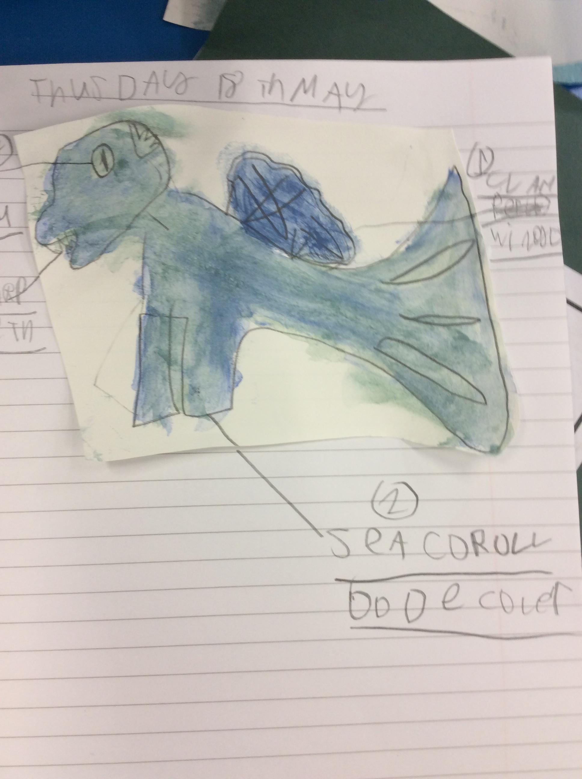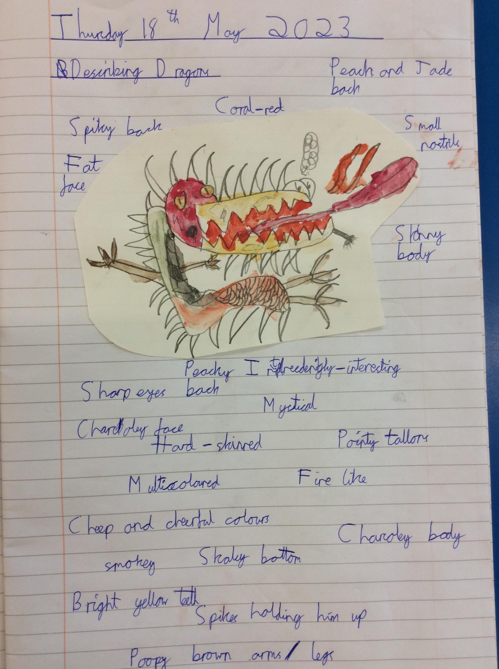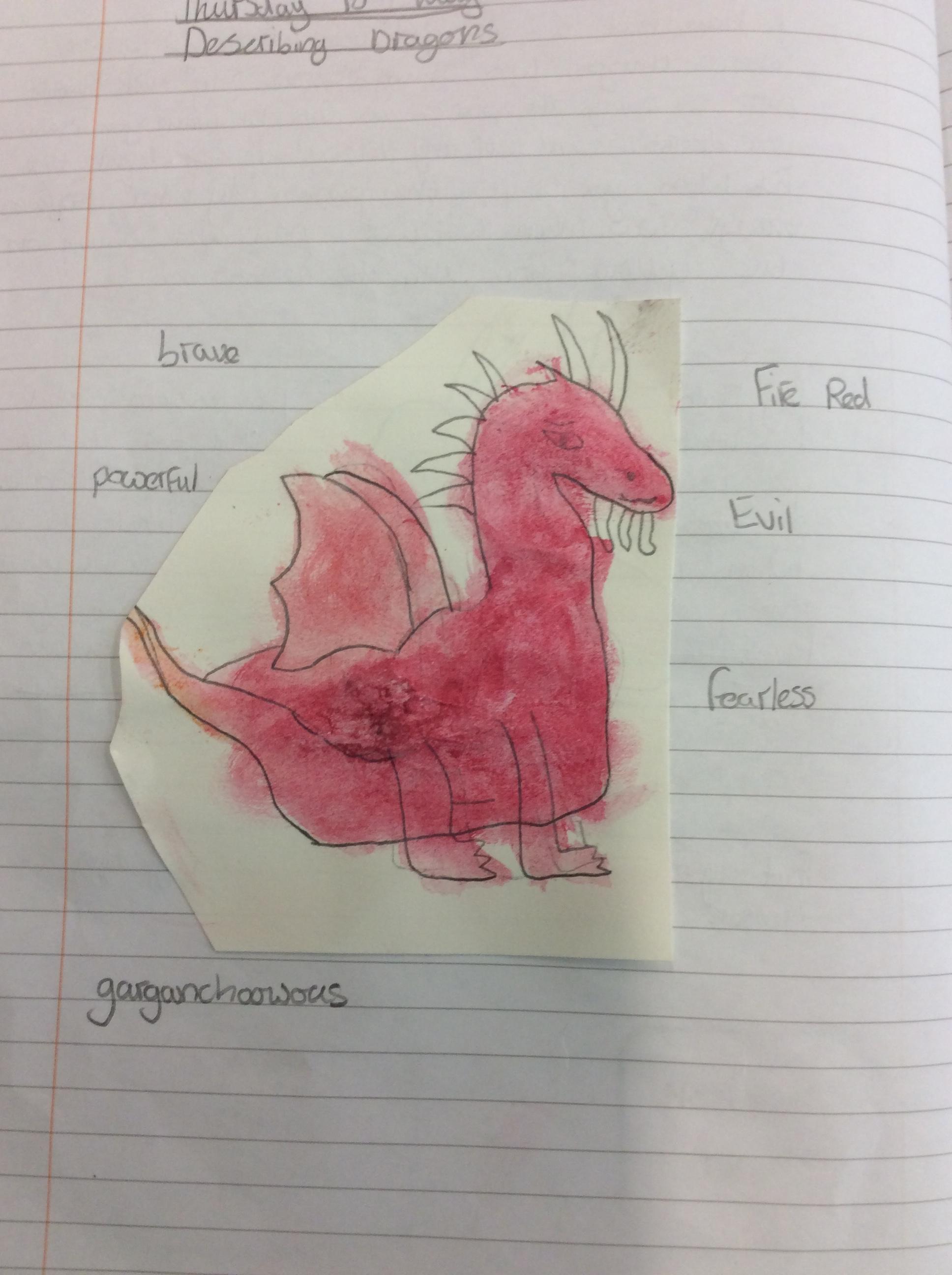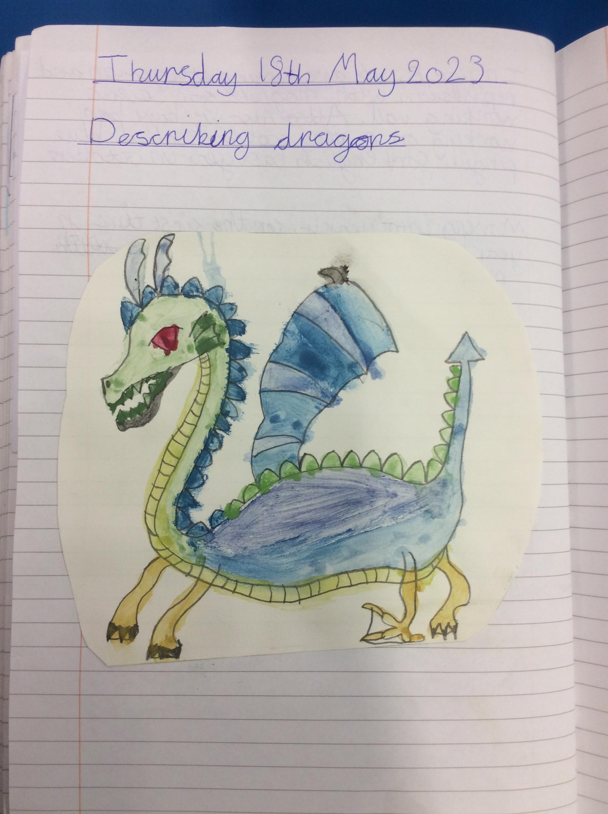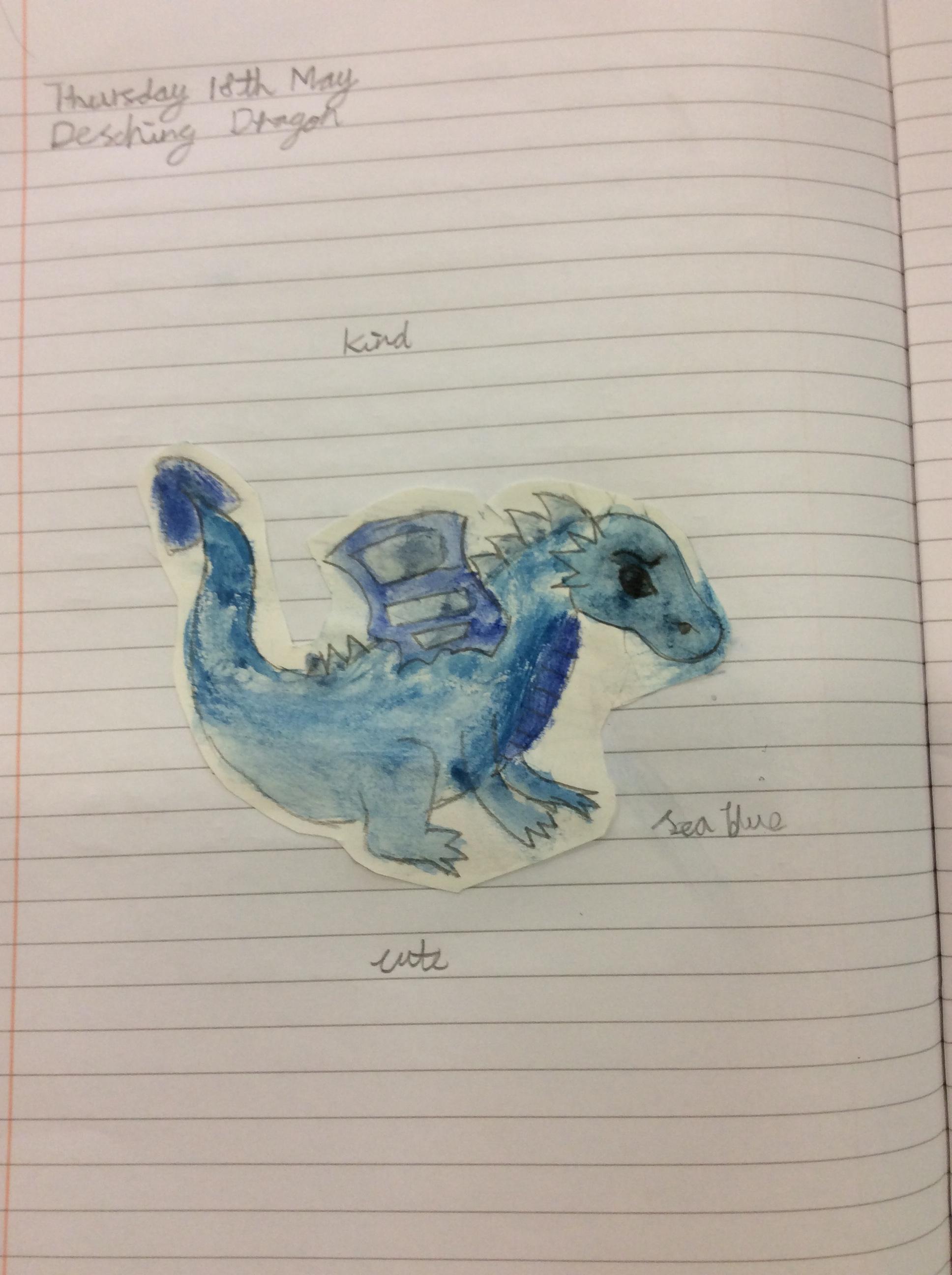We created our own dragons to write descriptions for.  We used watercolours and coloured pencils to add colour.