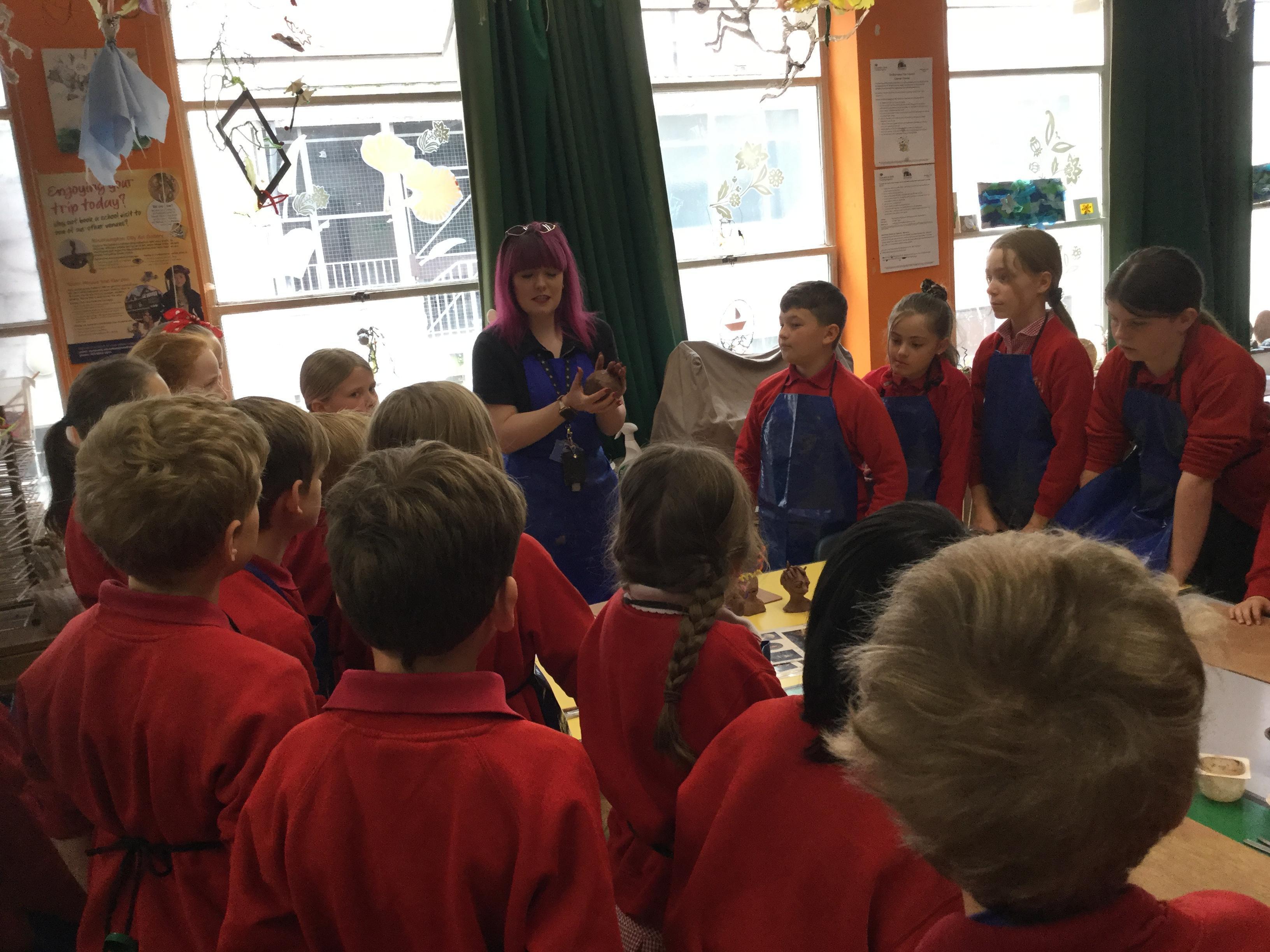 Today , Year 5 had a wonderful day at the Southampton City Art Museum. We started by hearing the story of Perseus and told through a series of paintings. We then made Medusa heads out of clay, taught by an in-house artist who shared all her expertise and helped the children produce some incredible results. After lunch, we went into the main museum ourselves and carried out various activities to support both our Greek topic and our forthcoming Climate Week.