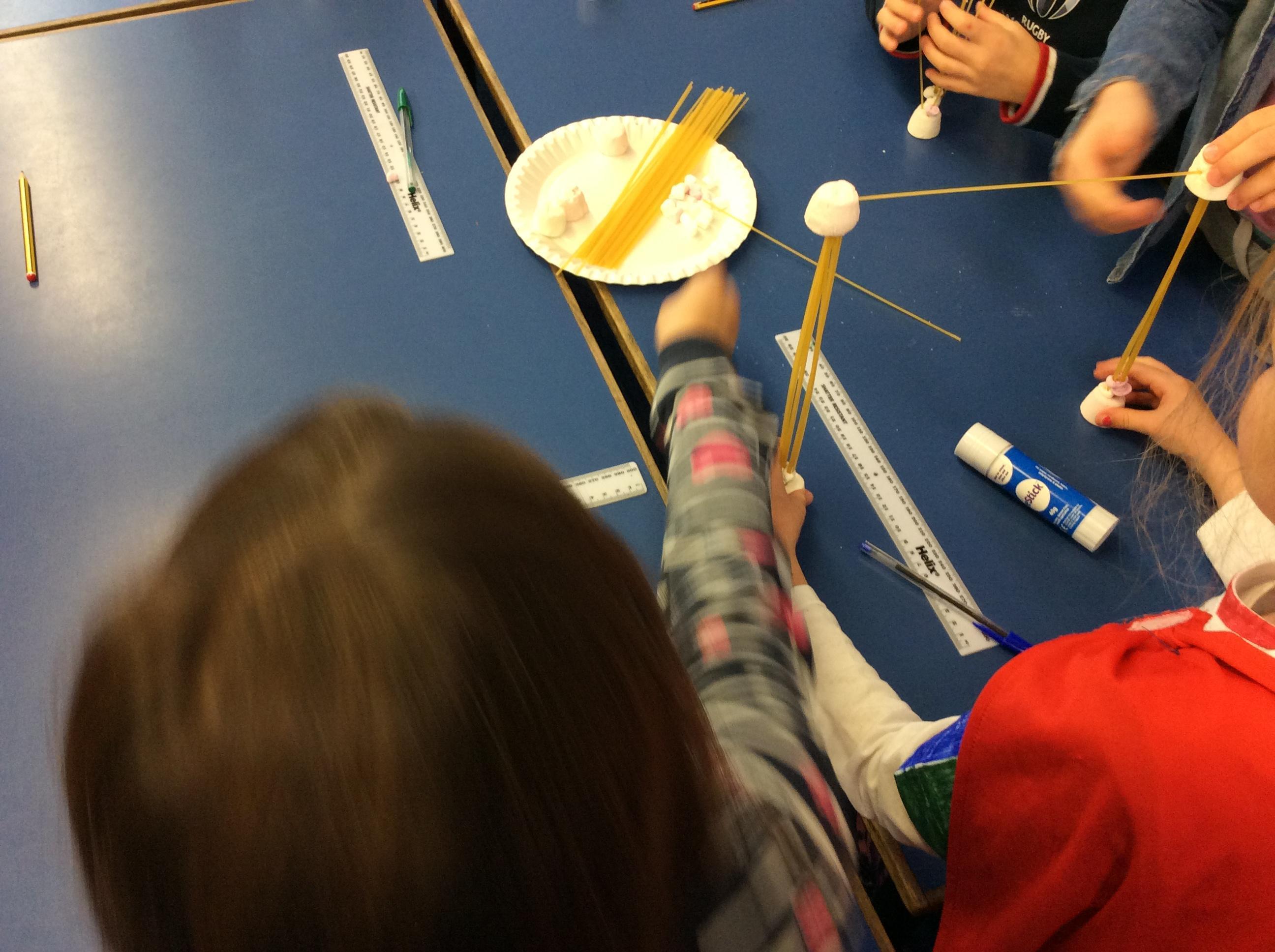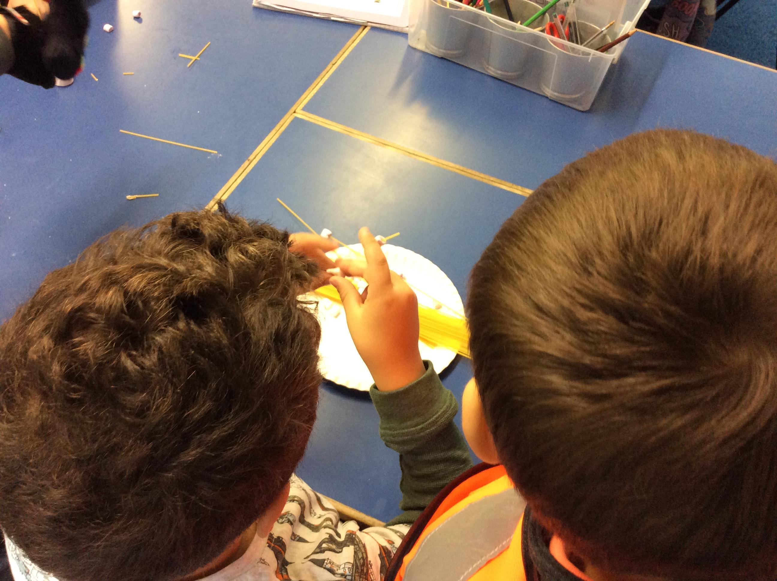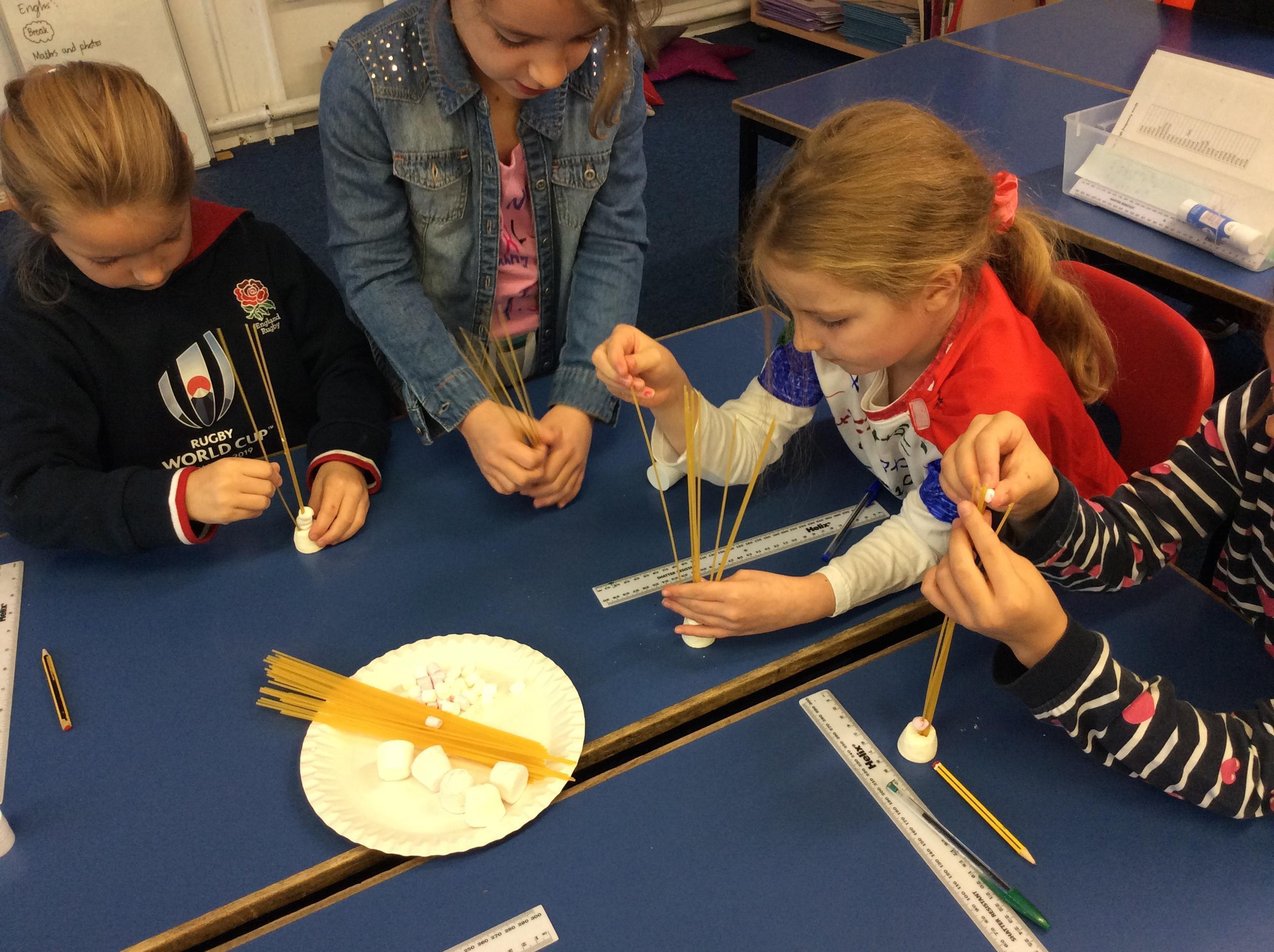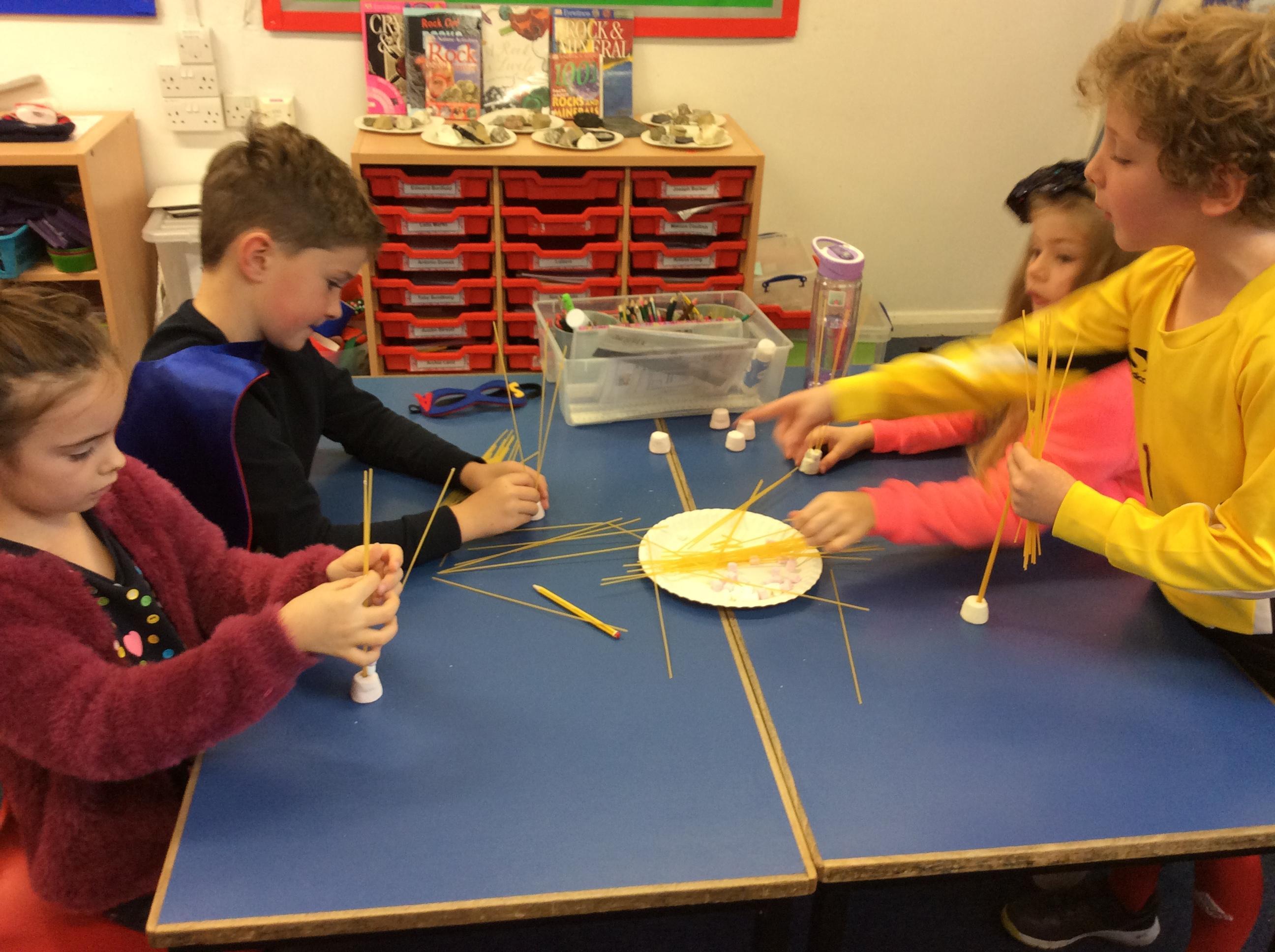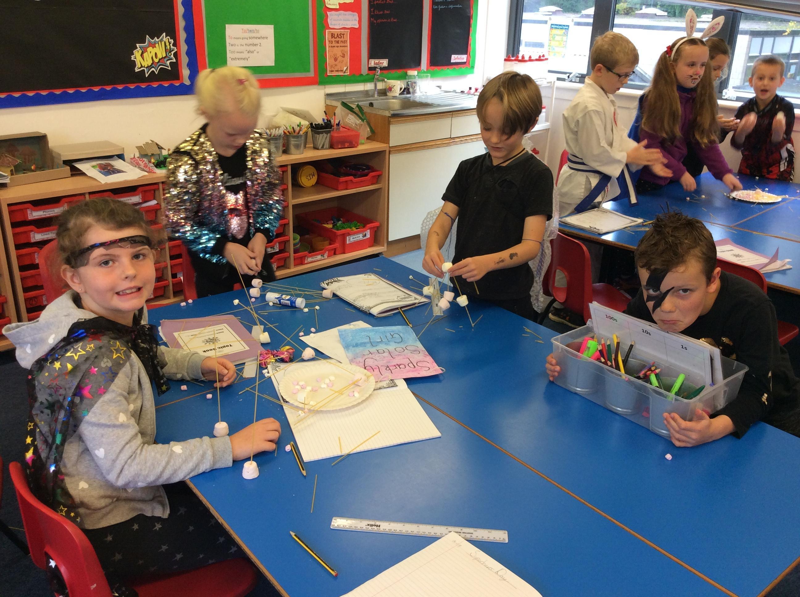 Our day started with creating a profile for our superhero, along with a badge and motto. Next, we had a challenge - we had to work in teams to build a tall tower using only marshmallows and dried spaghetti!