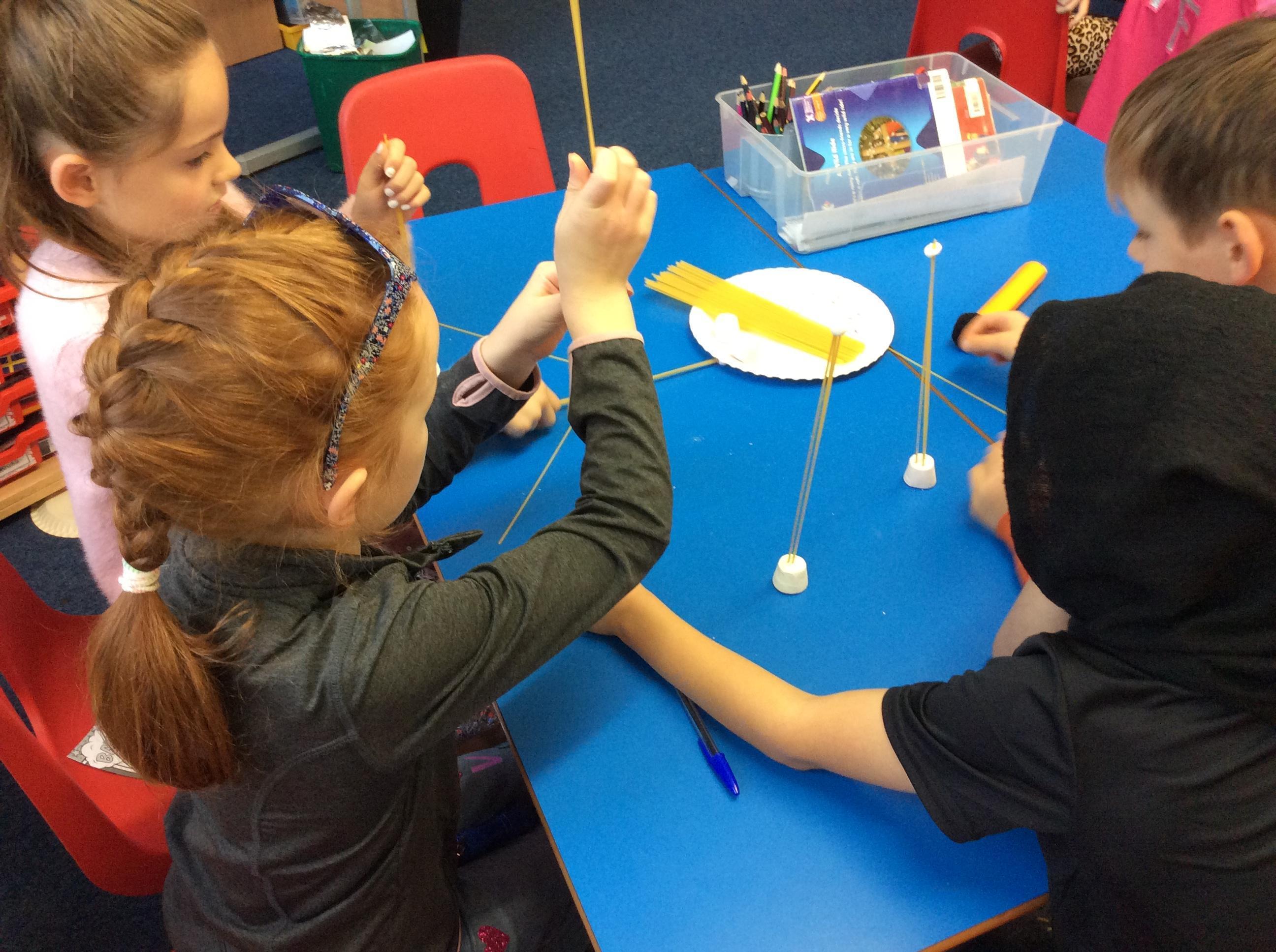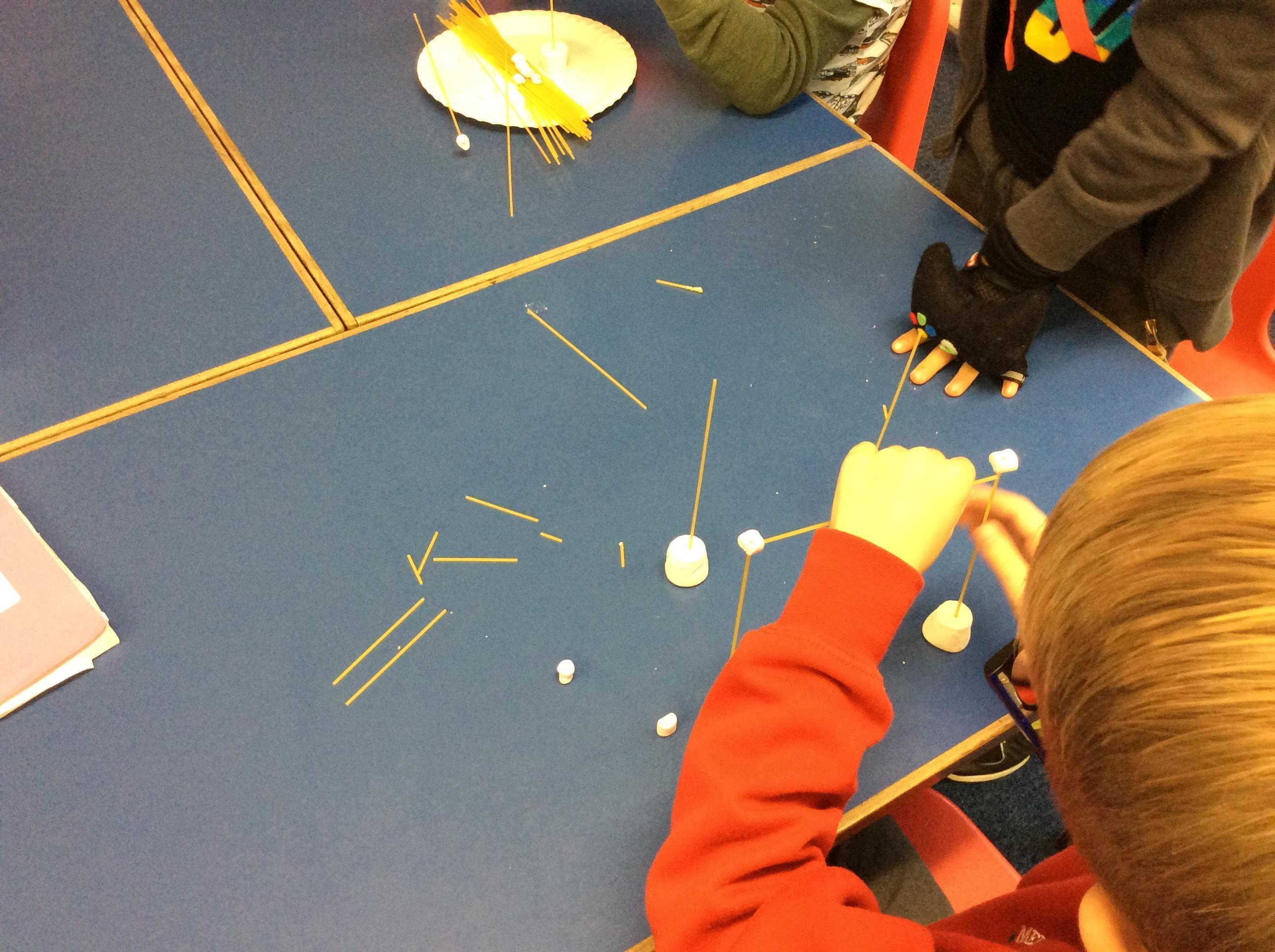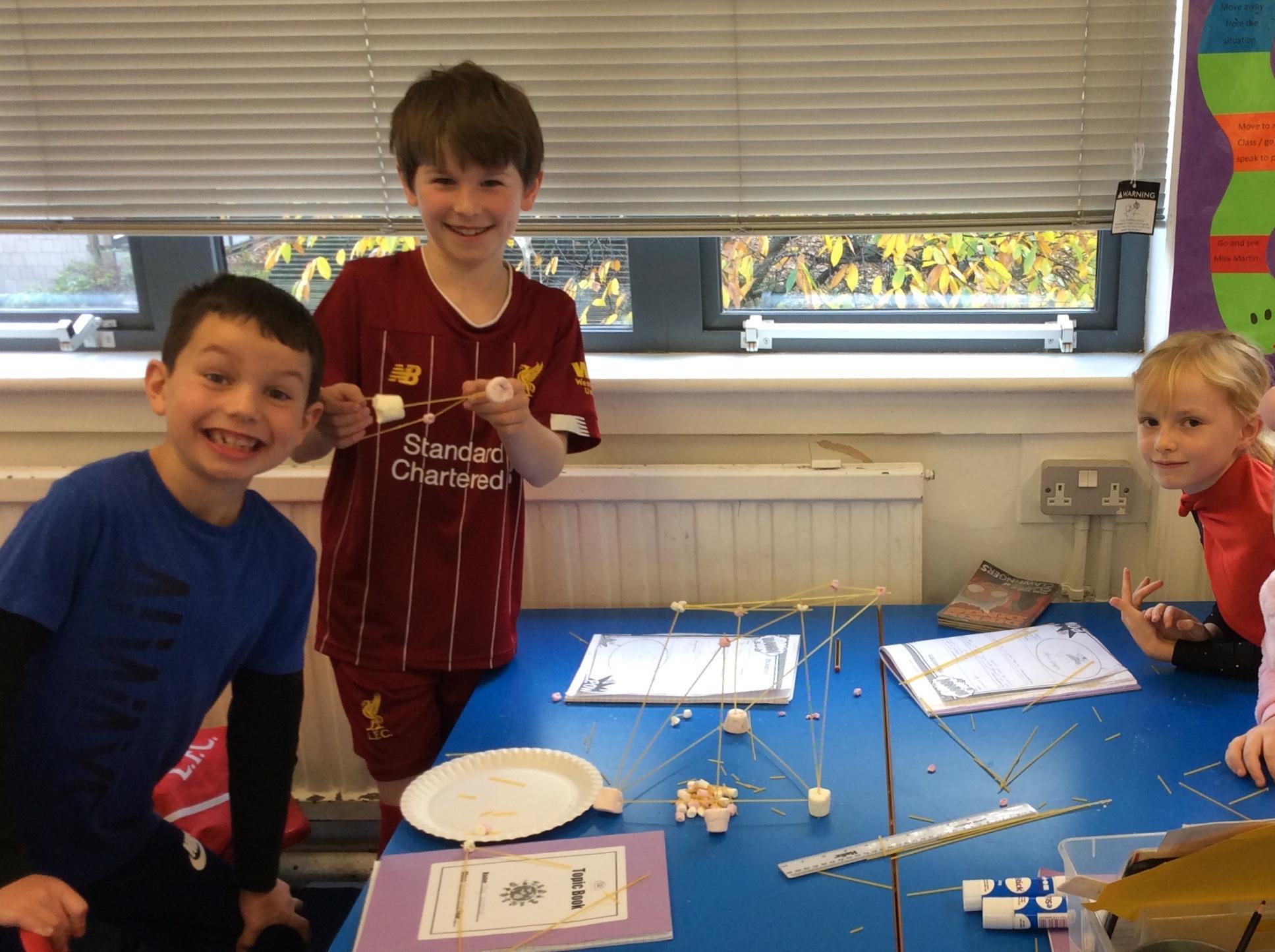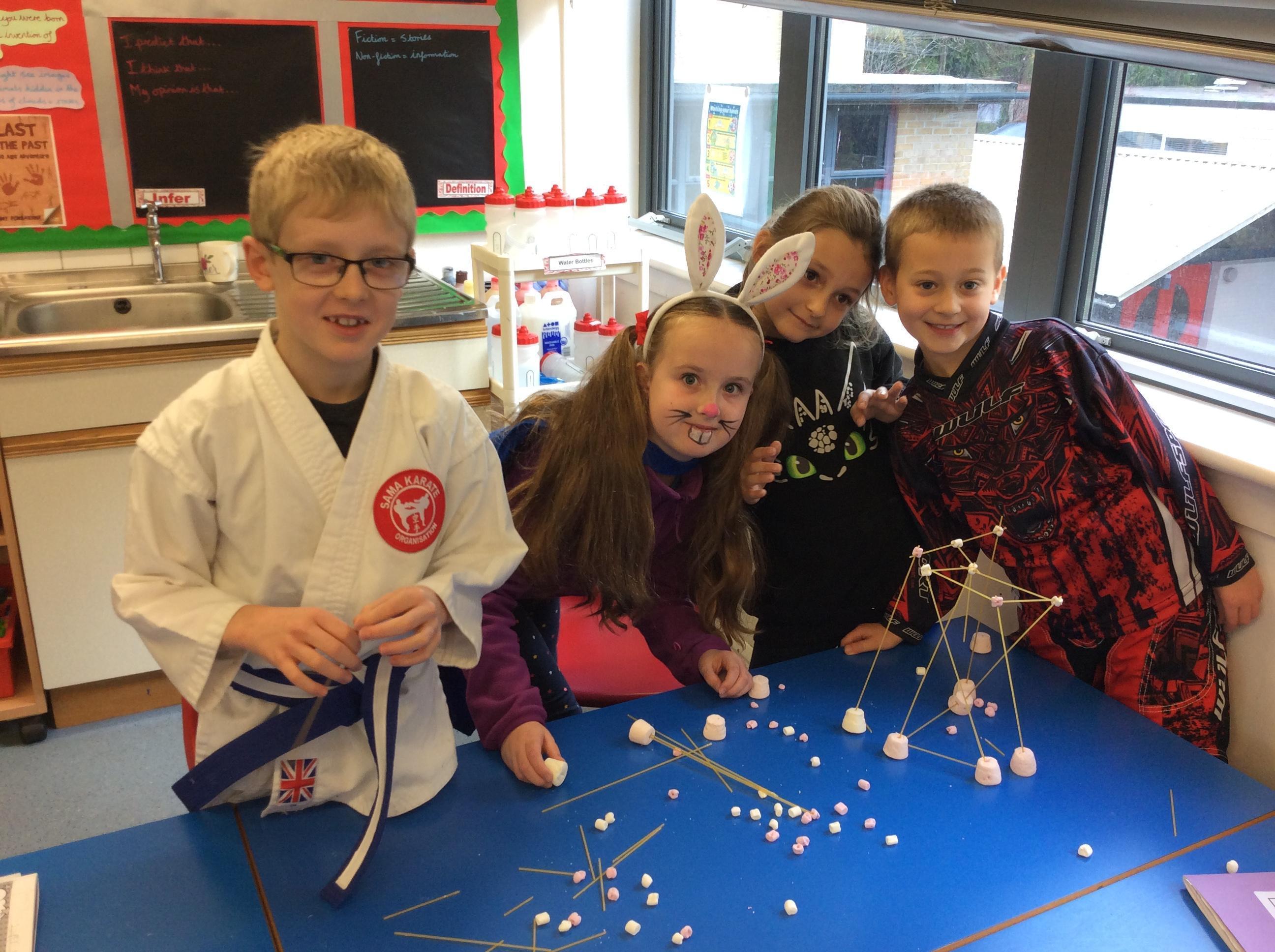Our day started with creating a profile for our superhero, along with a badge and motto. Next, we had a challenge - we had to work in teams to build a tall tower using only marshmallows and dried spaghetti!
