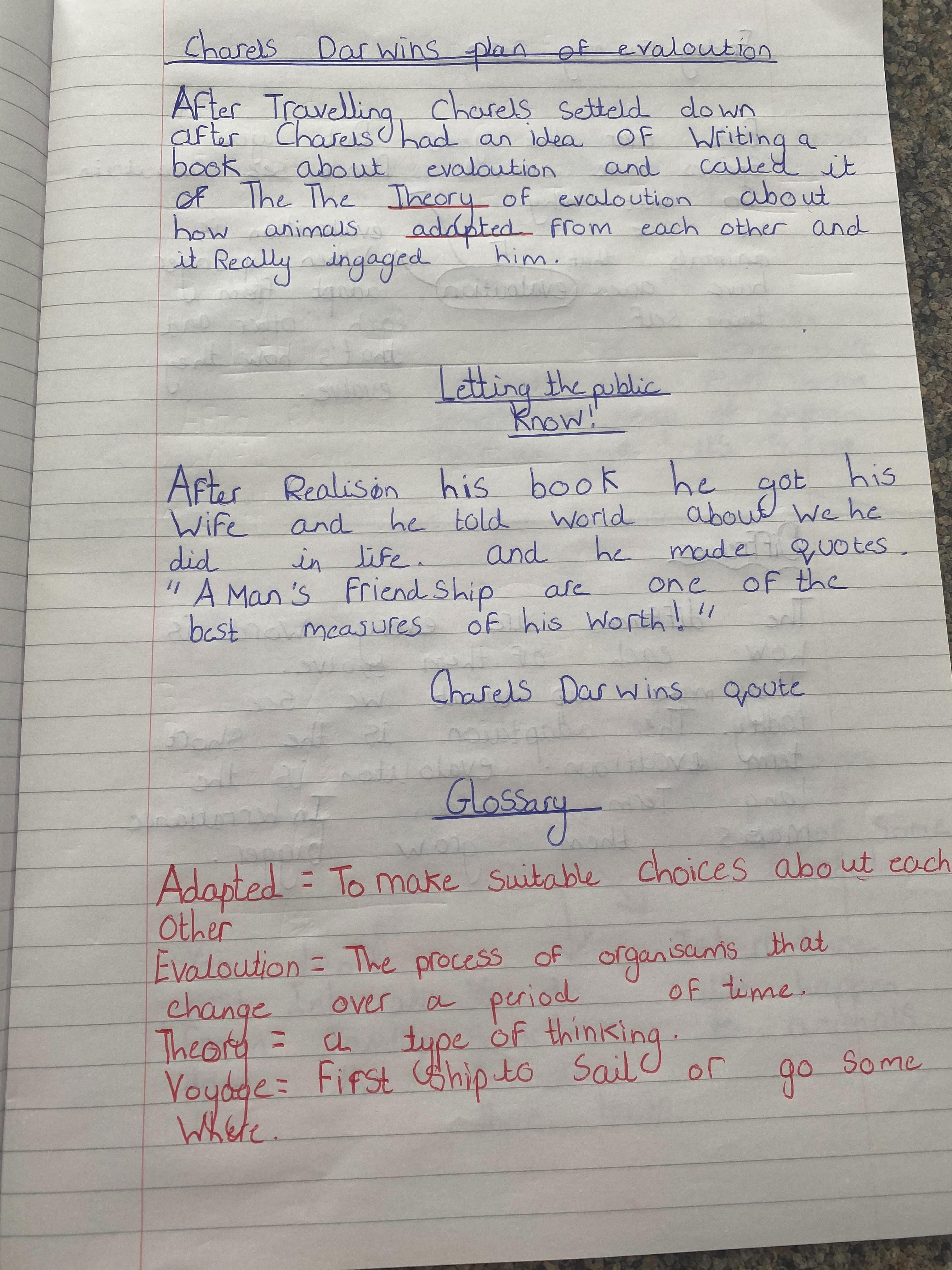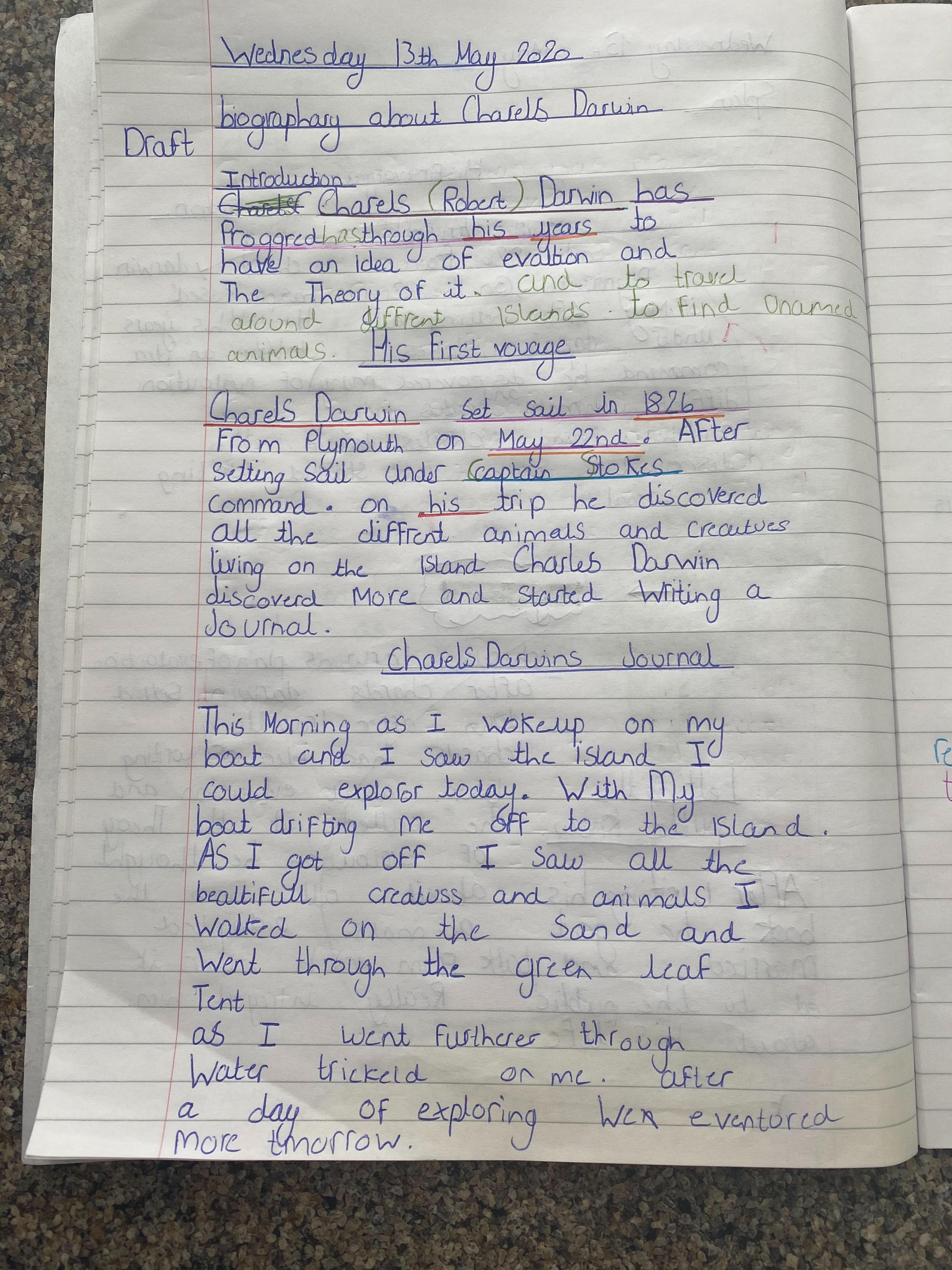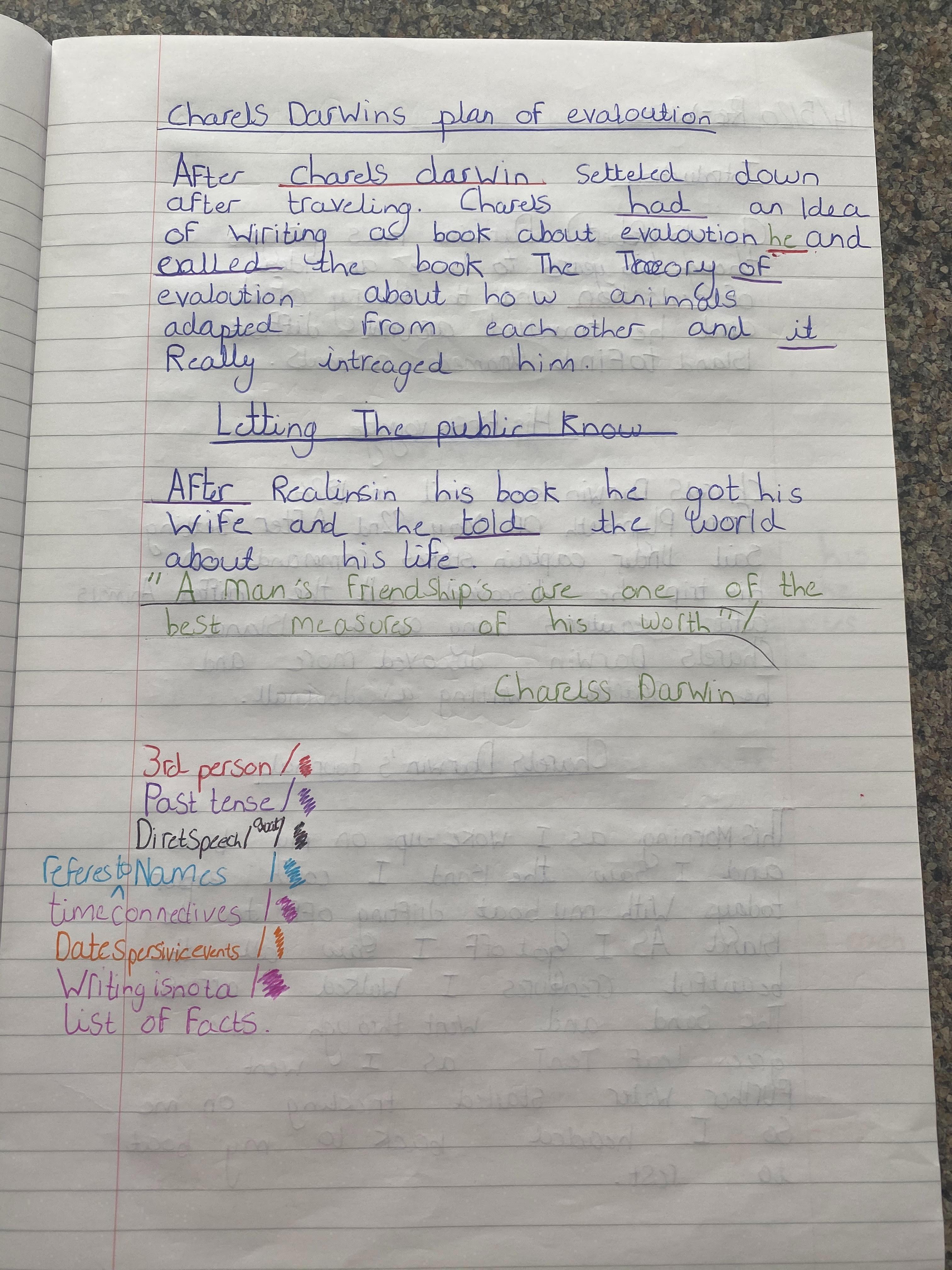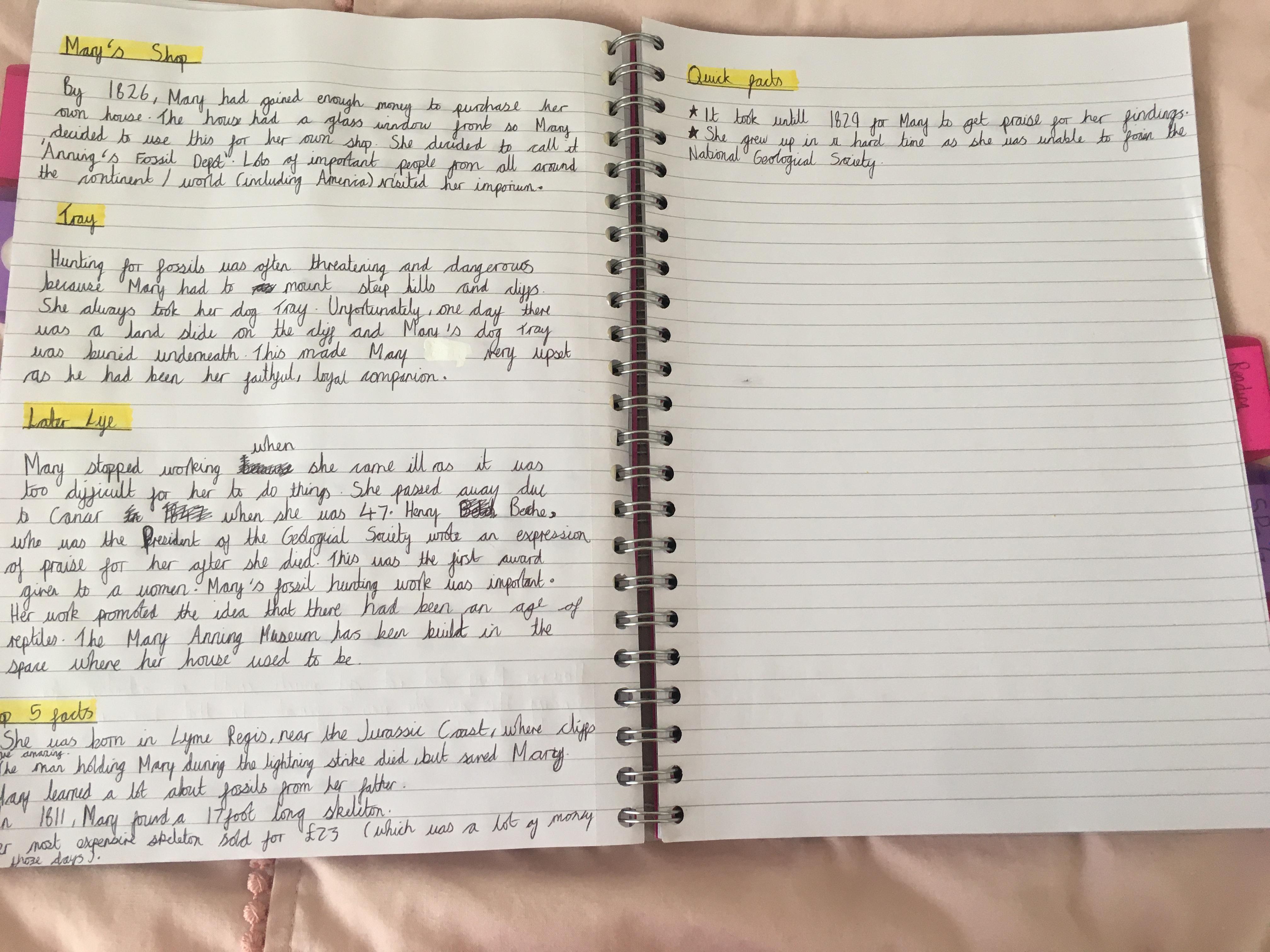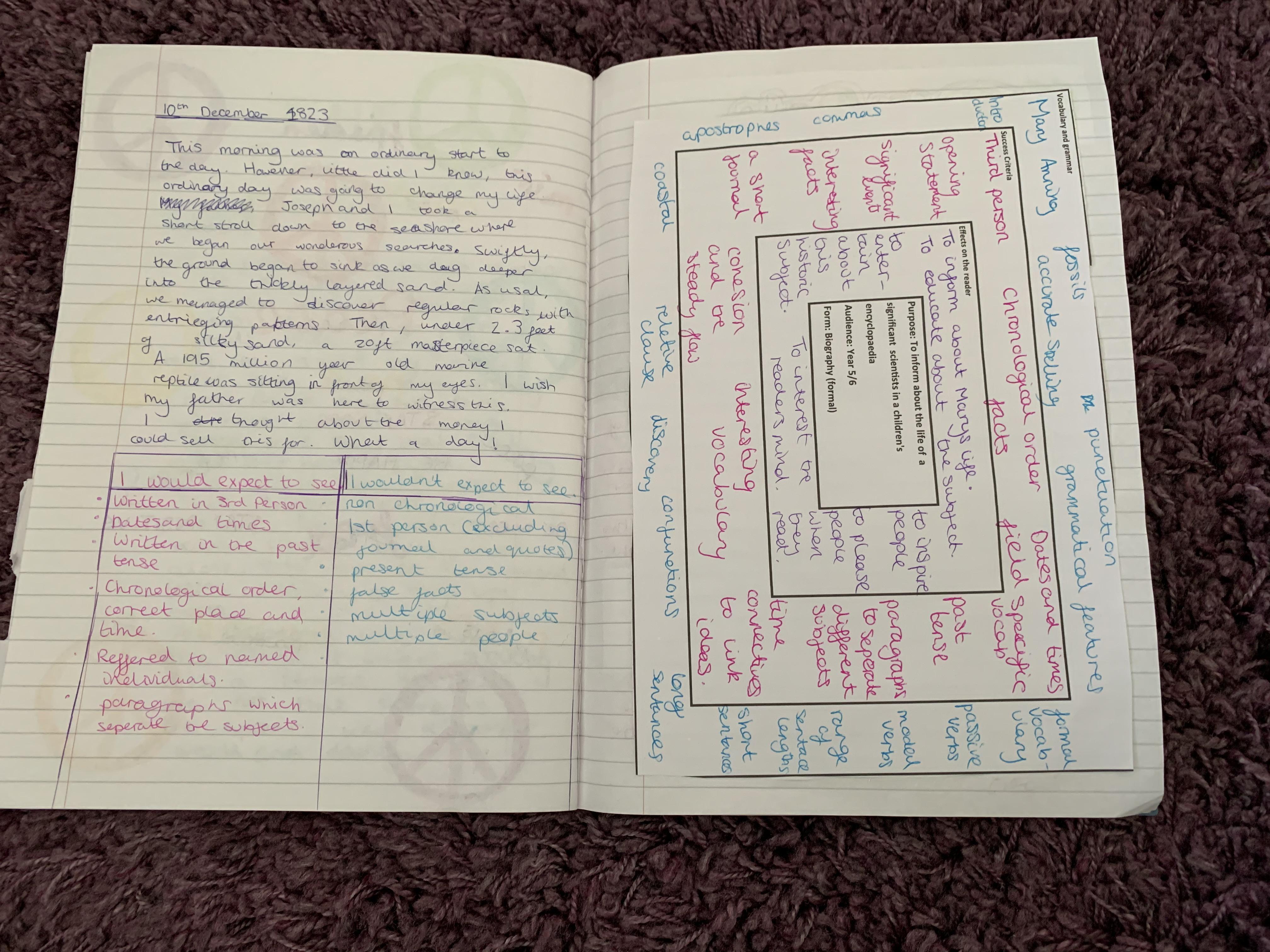 Megan biography showing planning, drafting and redrafting