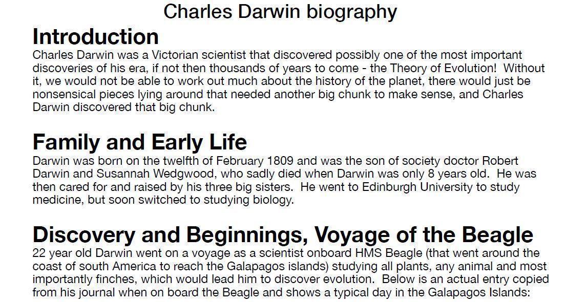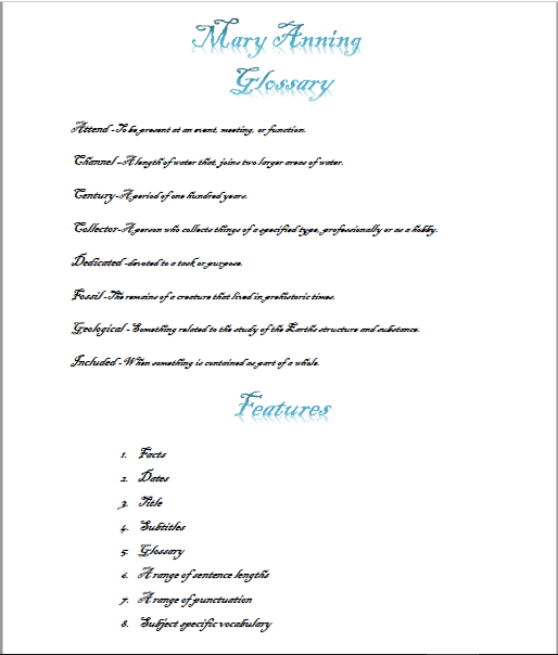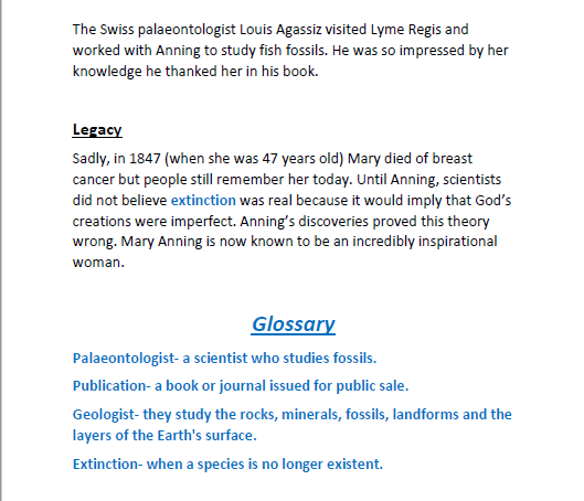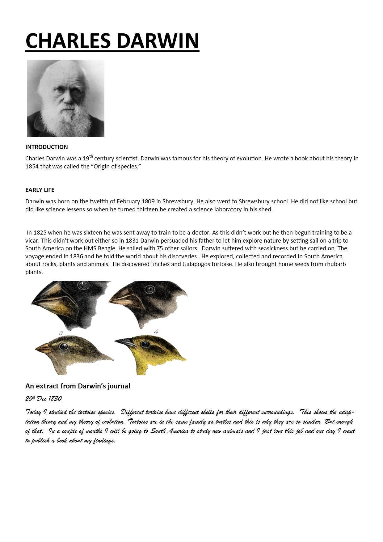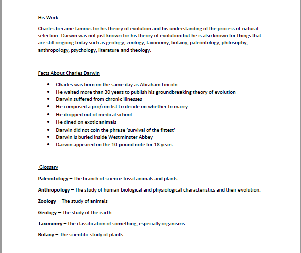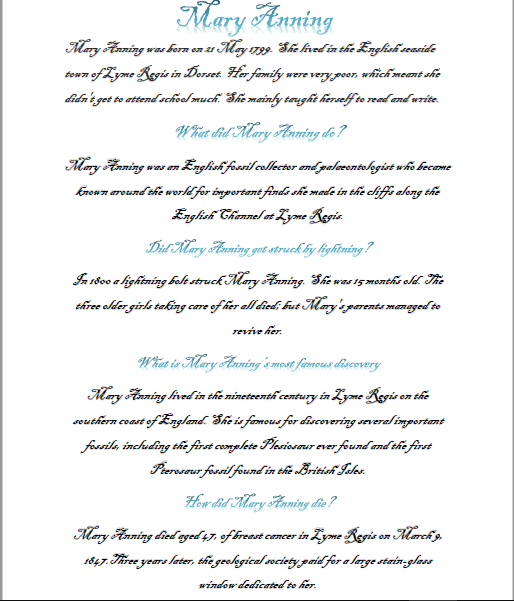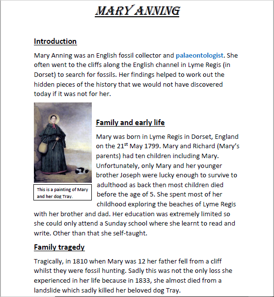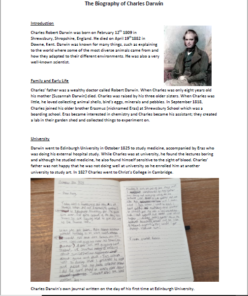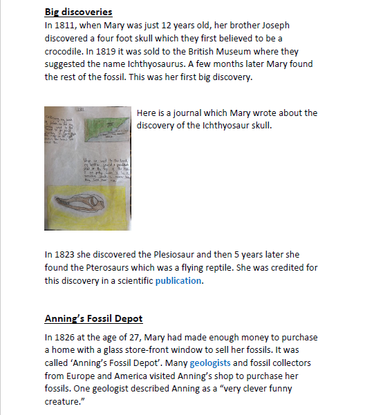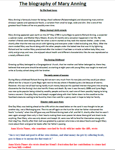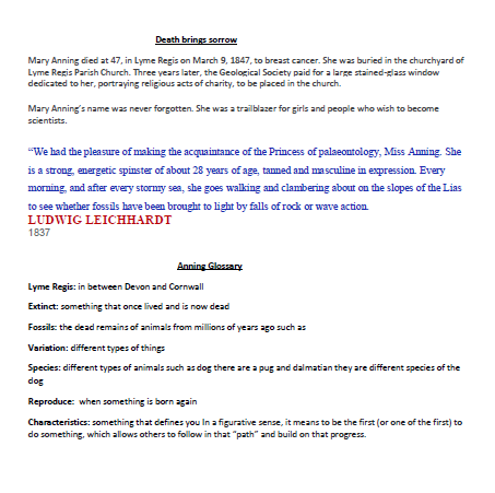Biographies on Charles Darwin and Mary Anning