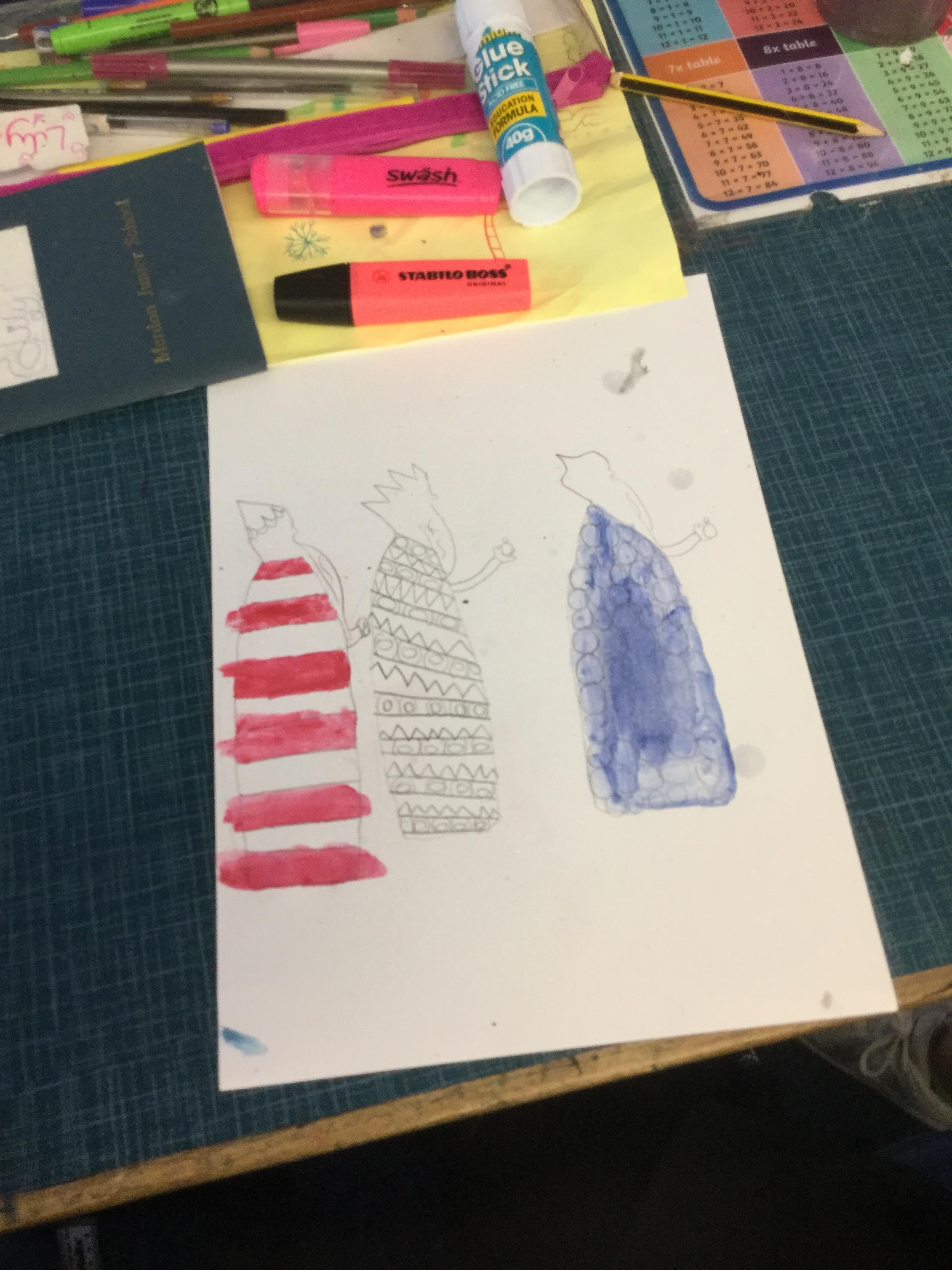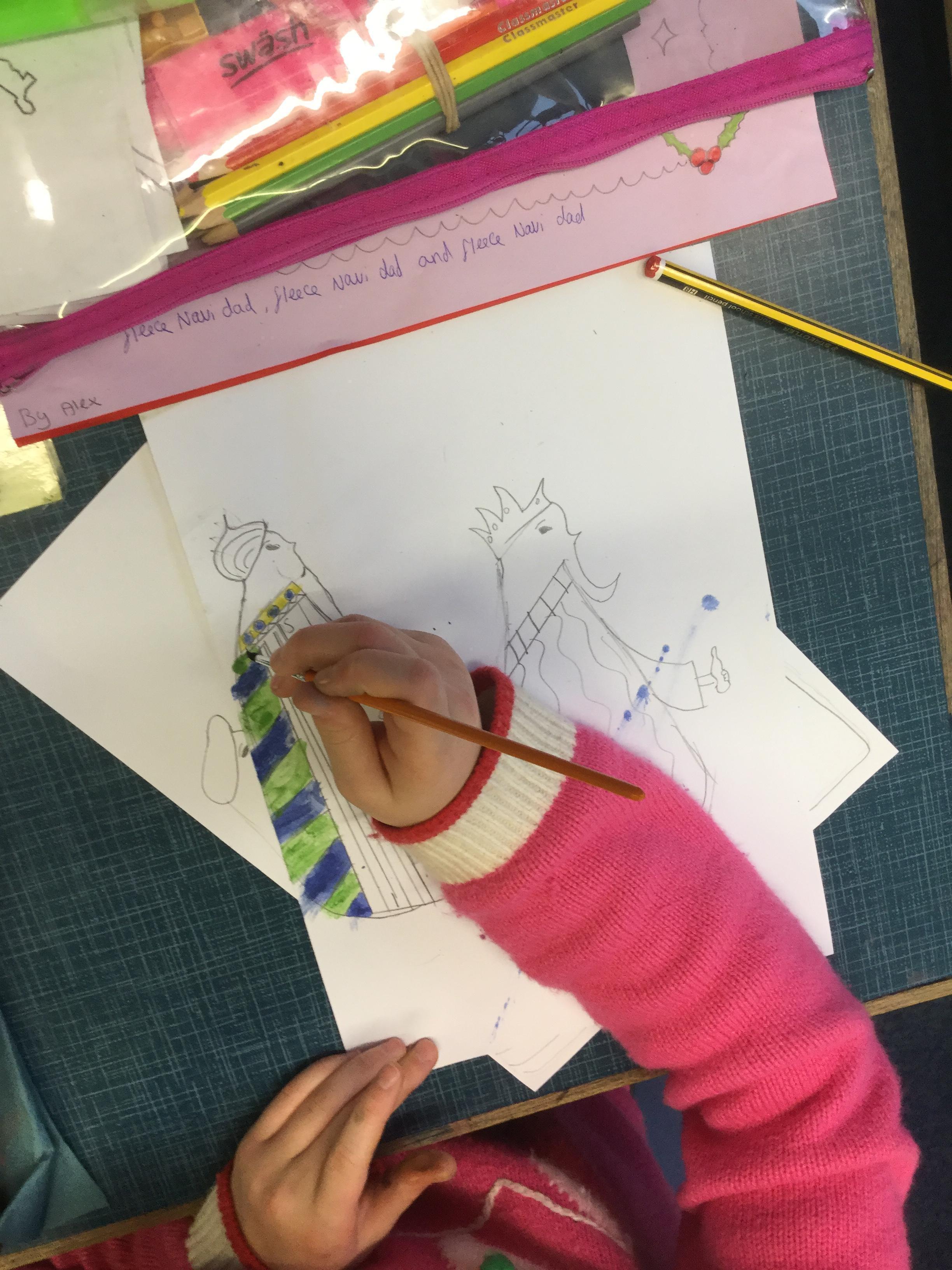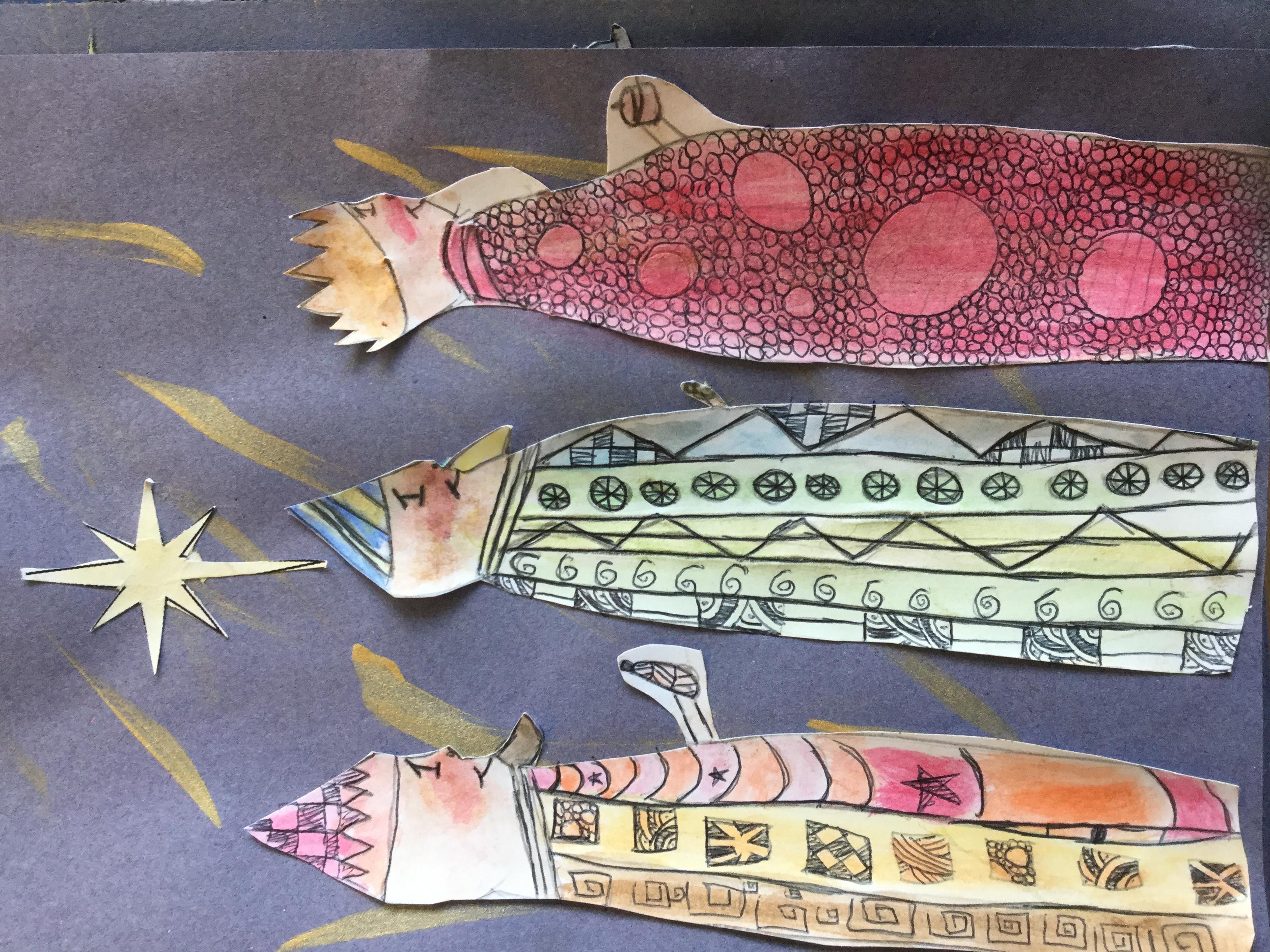 Today Year 5 looked at the term ‘prophecy’ and how it linked to the Christmas Story. We looked at extracts of the bible and how ‘prophecy’ linked the the wise men. The children discussed and thought about a modern time Christmas story and what it would be like to know things that happen in the future. To finish the day the children created cloaks for the wise men and created beautiful images.