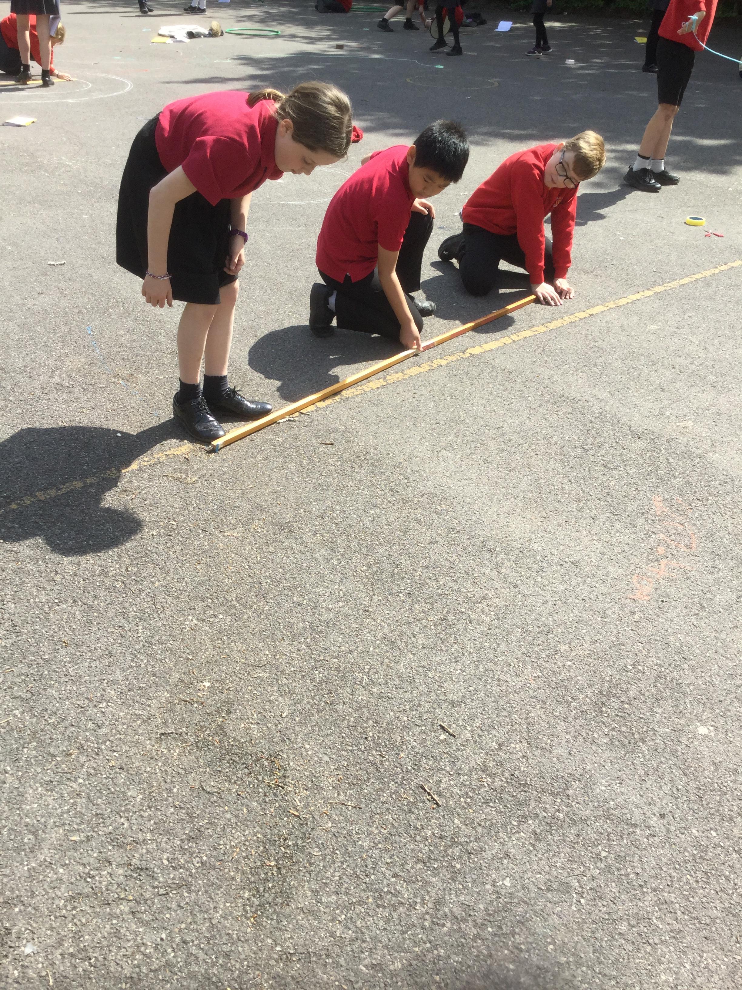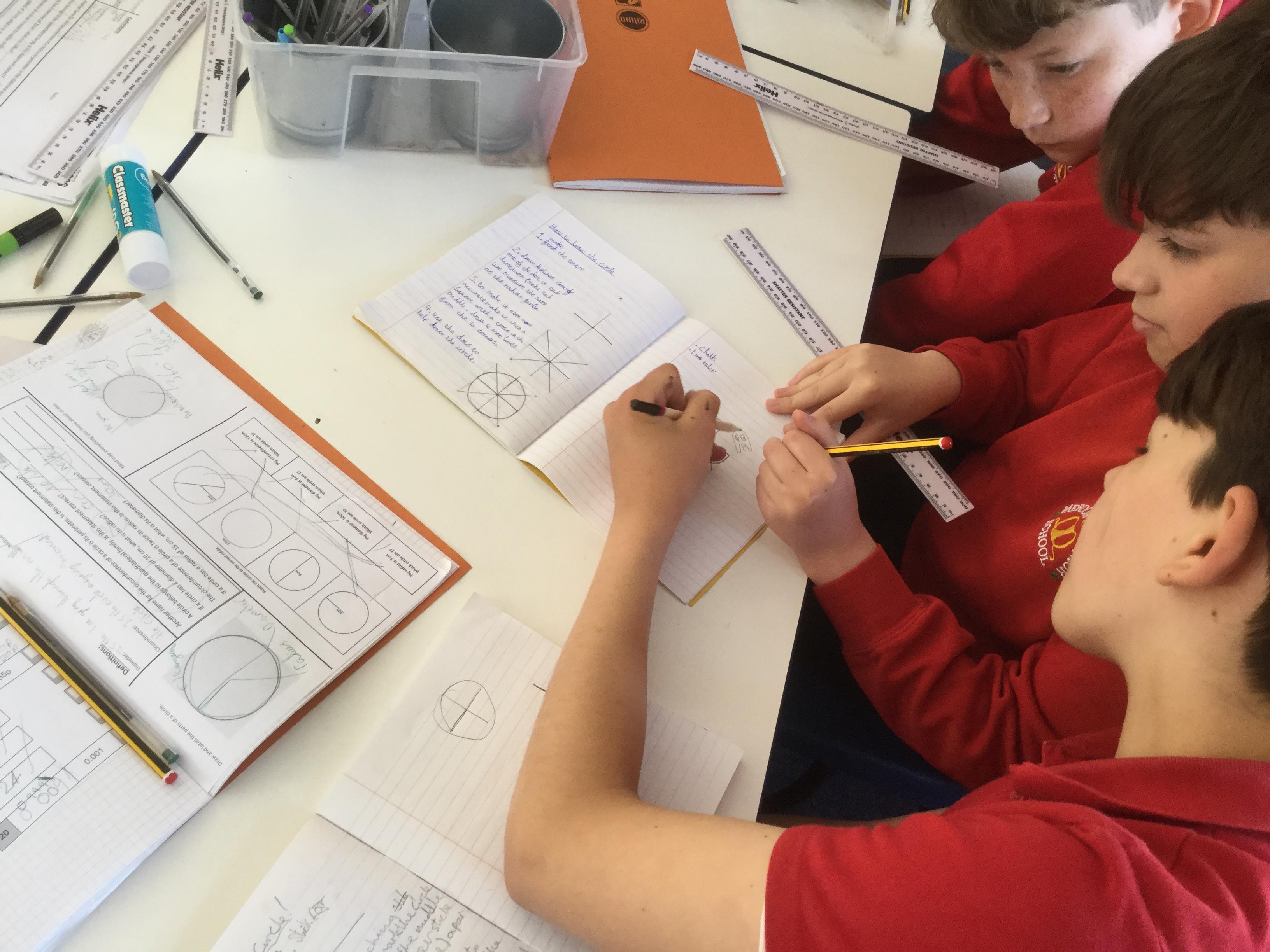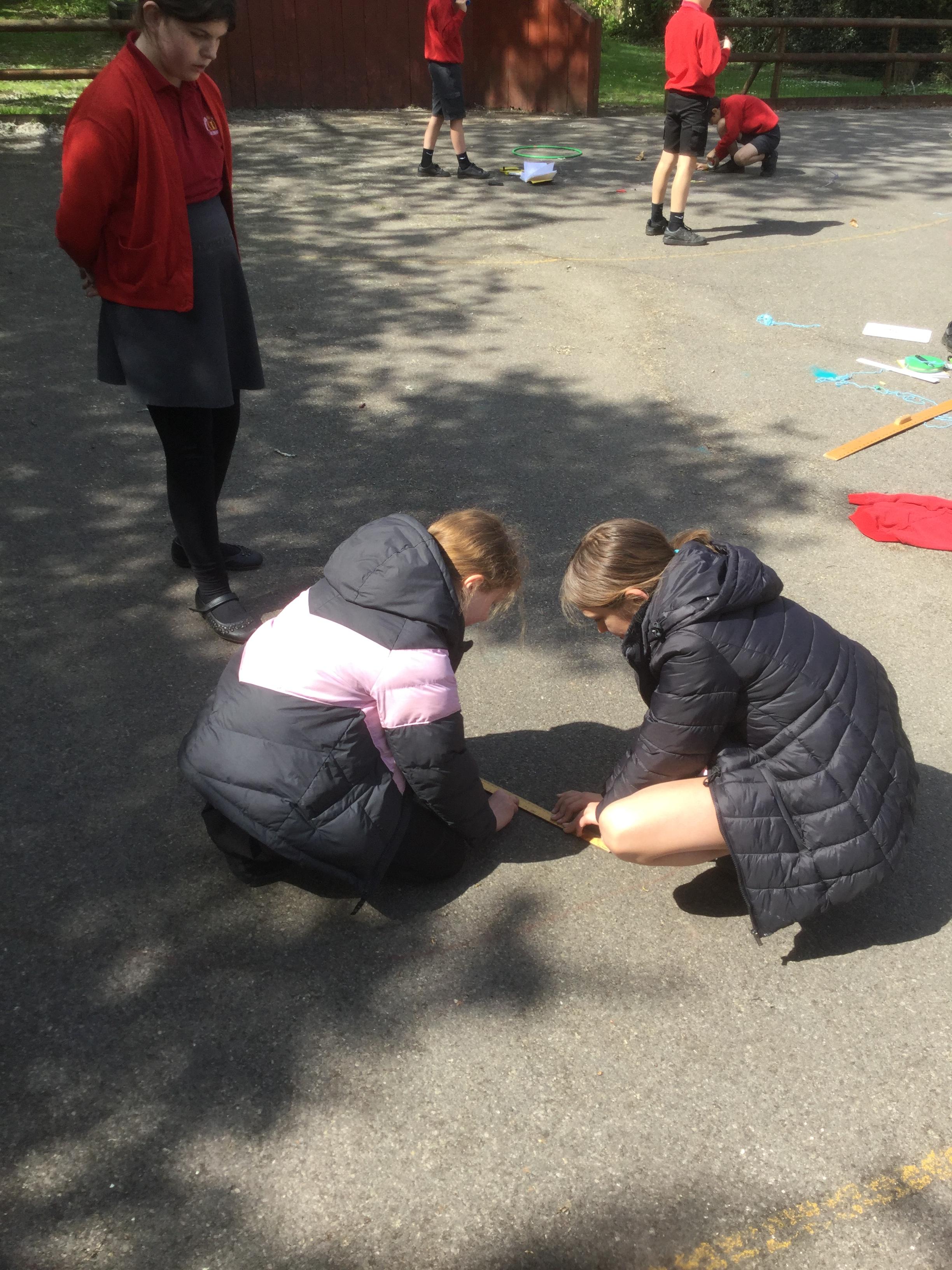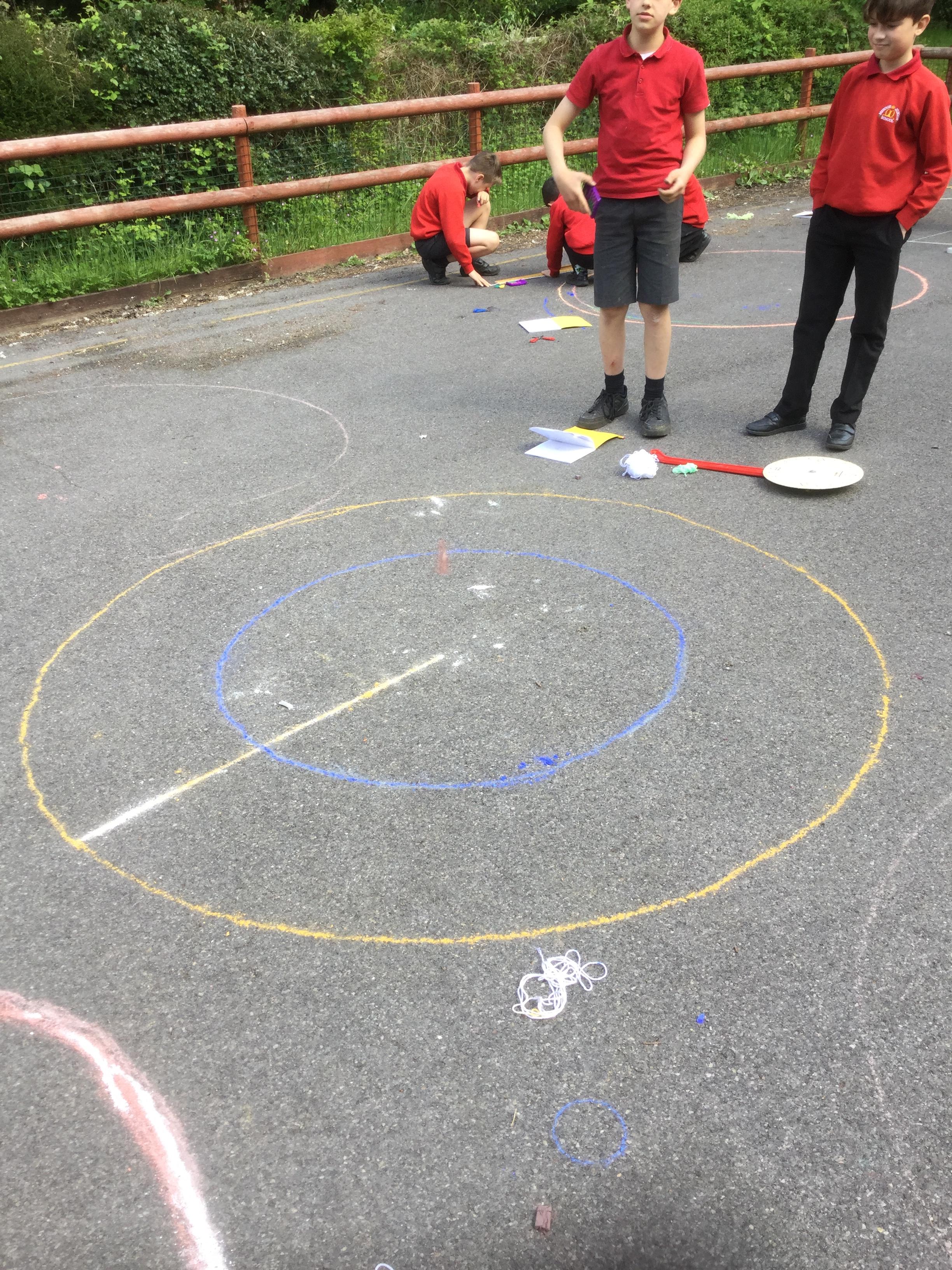 We were asked to accurately draw circles on the playground with a variety of radii. We had to think about how we may do this in terms of strategy, equipment and measurement. We were also told that we would be to find a way of measuring the circumference of the different circles to see if we could find a relationship between radius, diameter and circumference of circles.