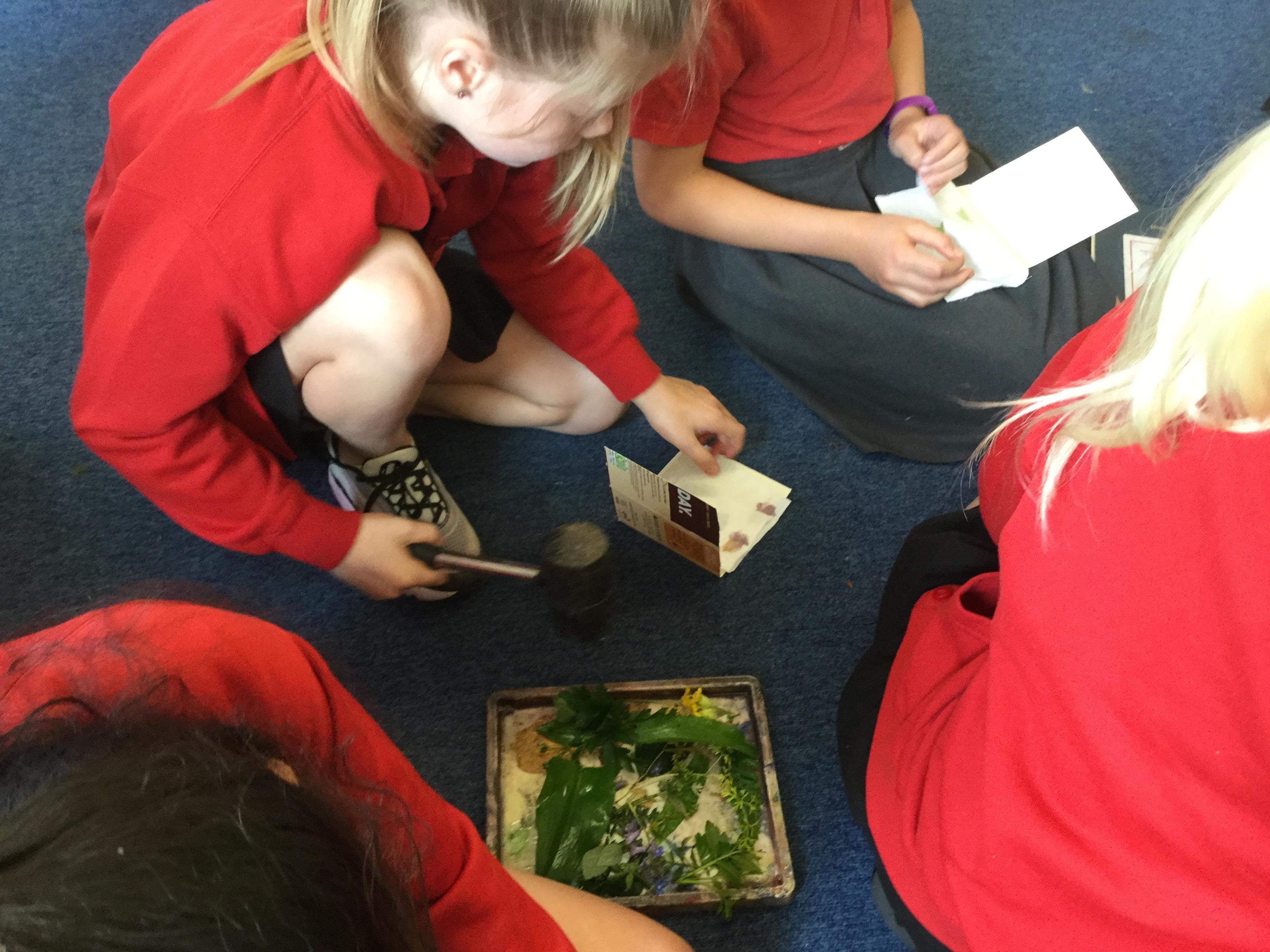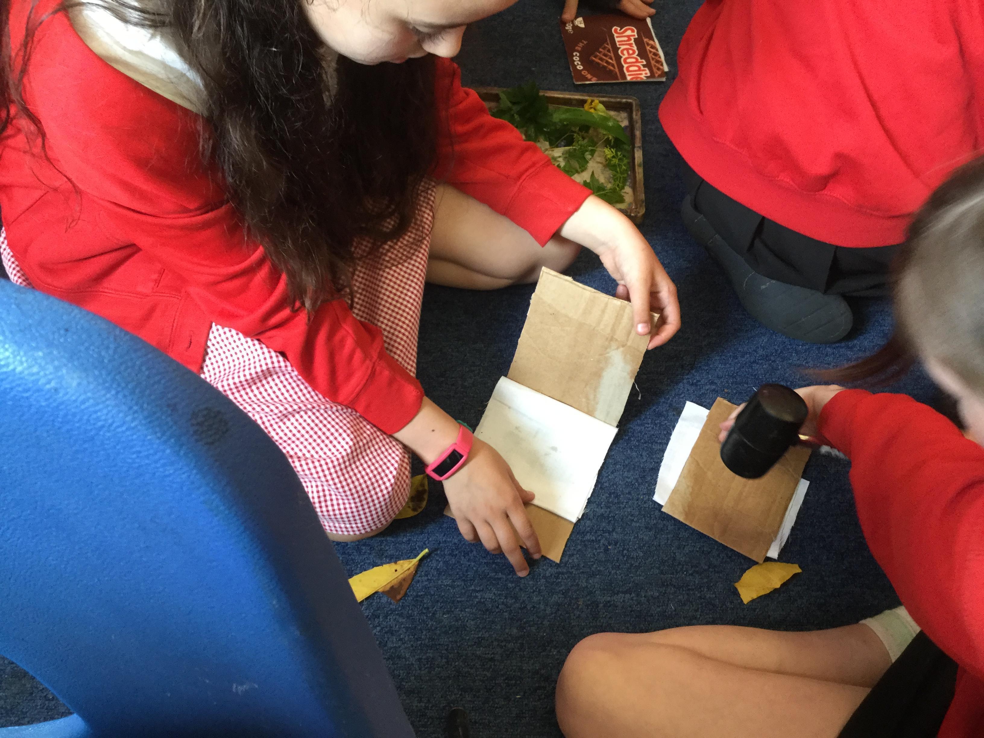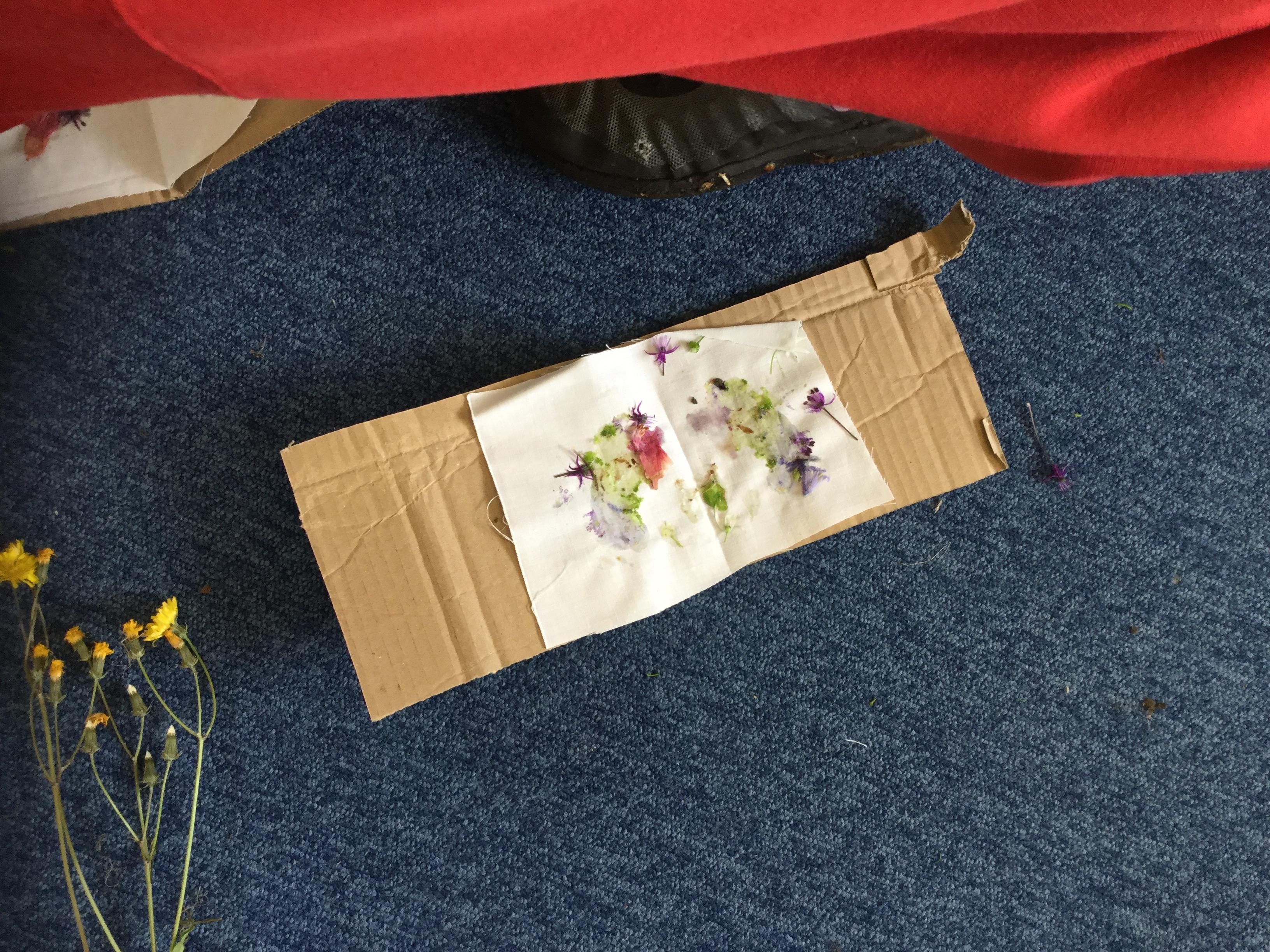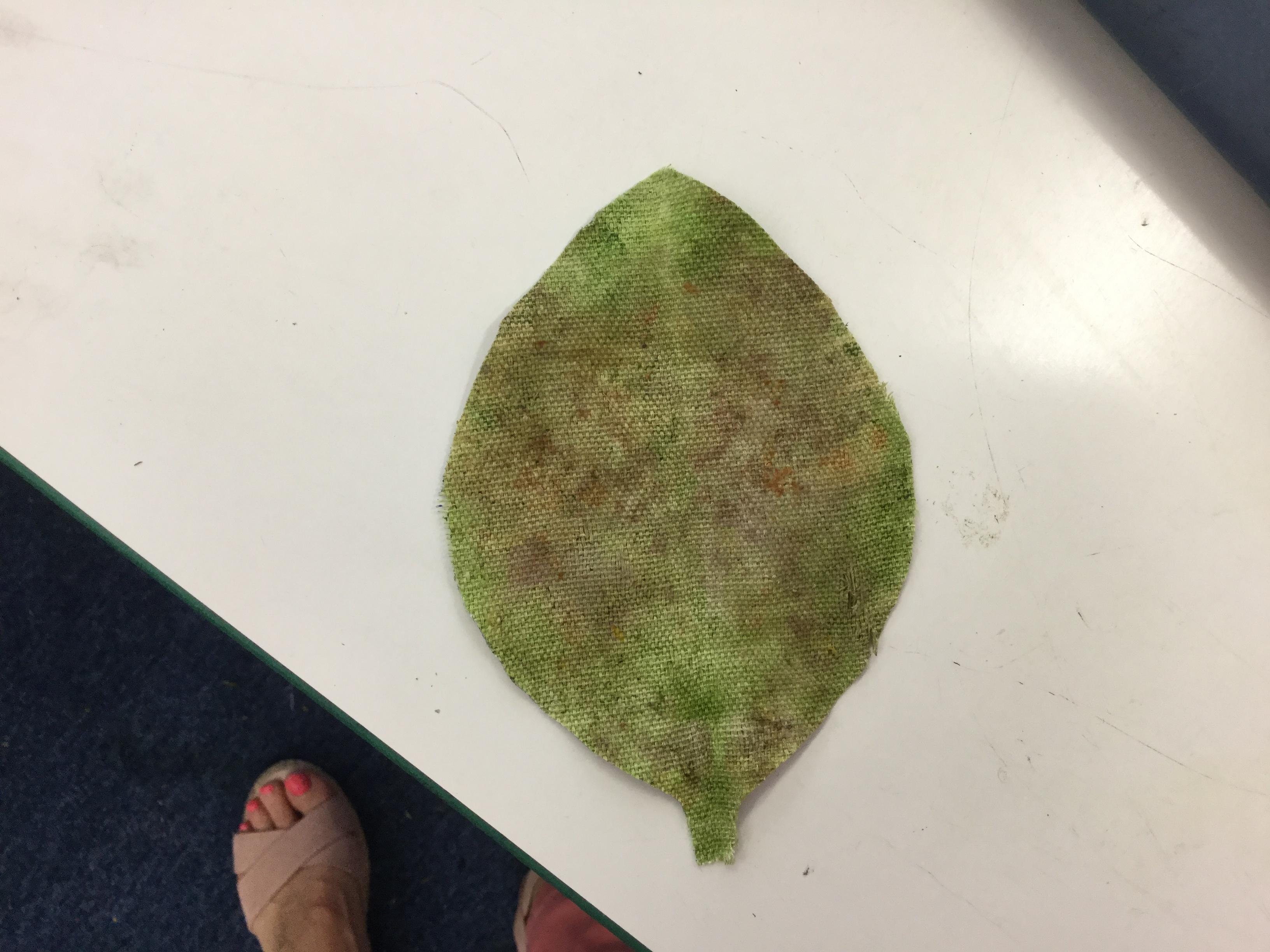 We are going to make the leaves for our collage but they will all be made using recycled or natural materials. We are using old bed sheets for the skin of our leaves. We are then dying the leaves by Hapa printing (a Japanese form of printing using leaves).
