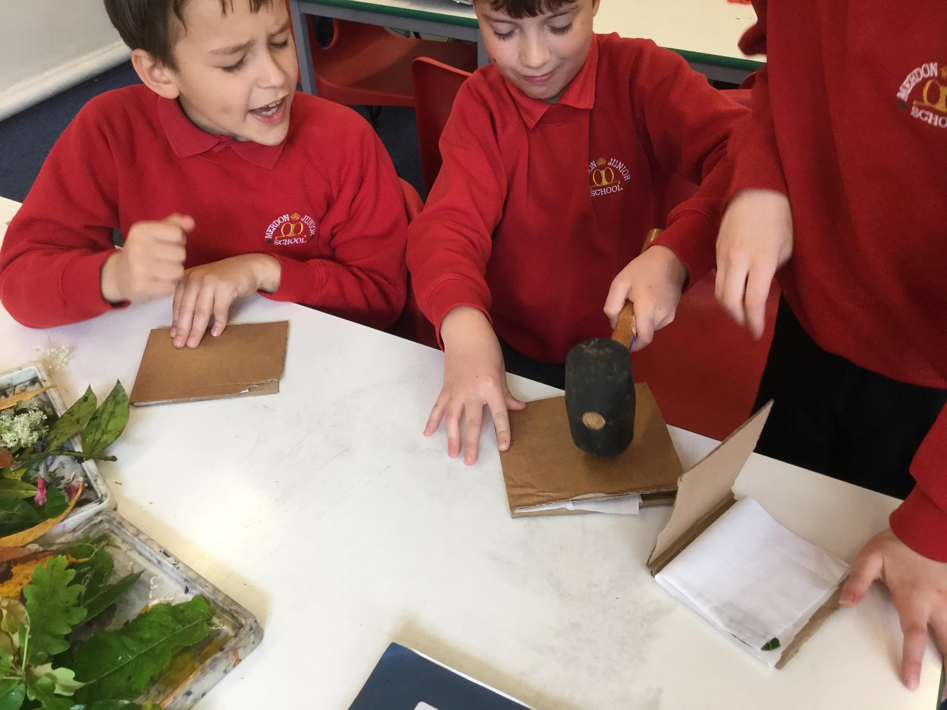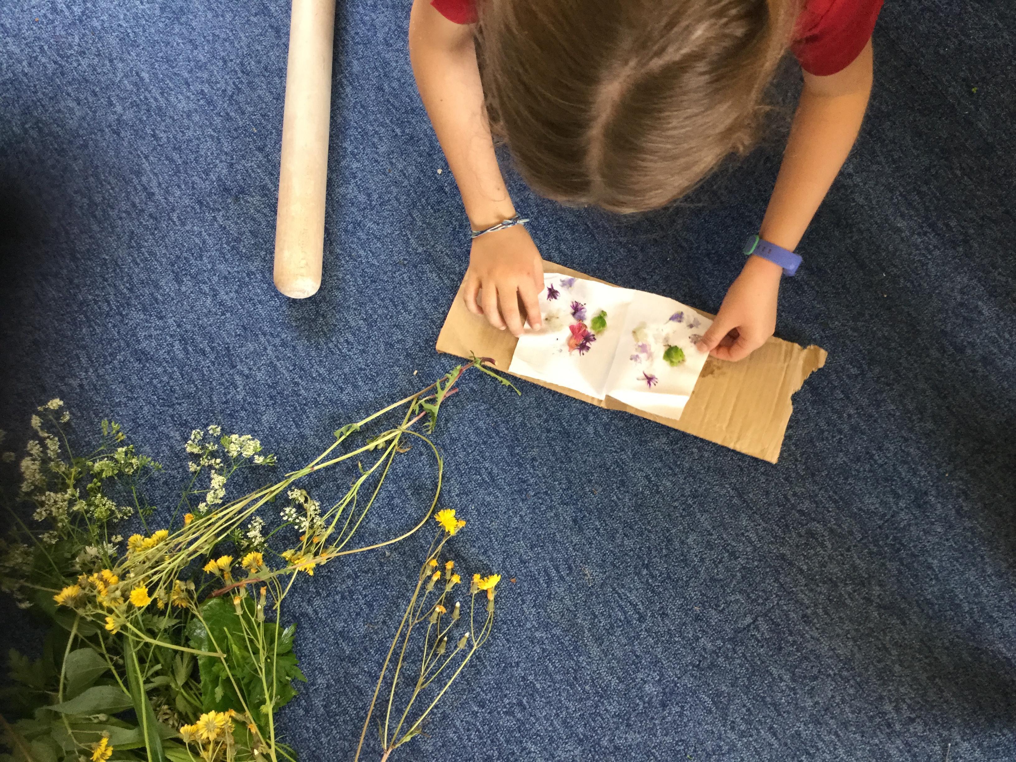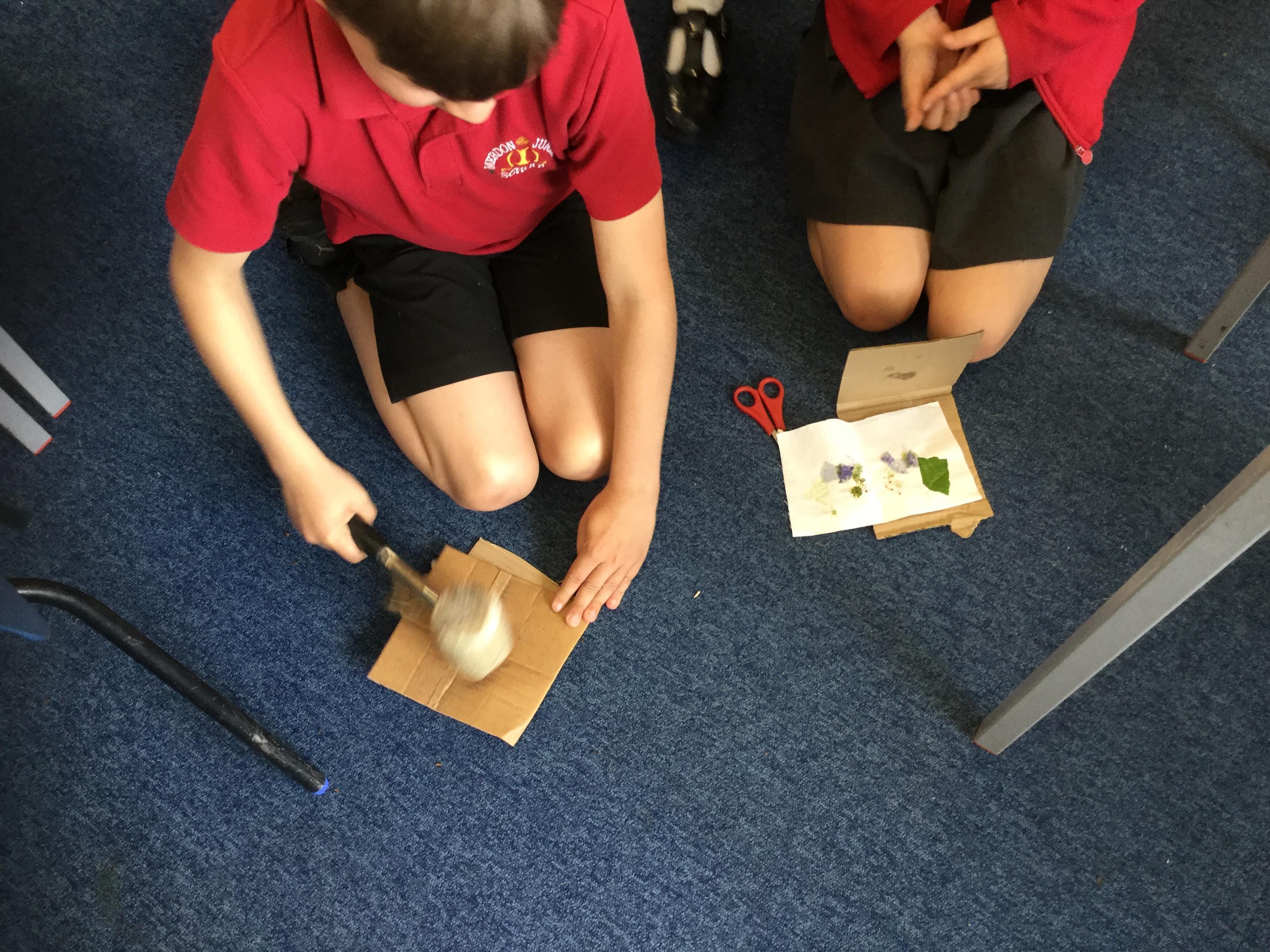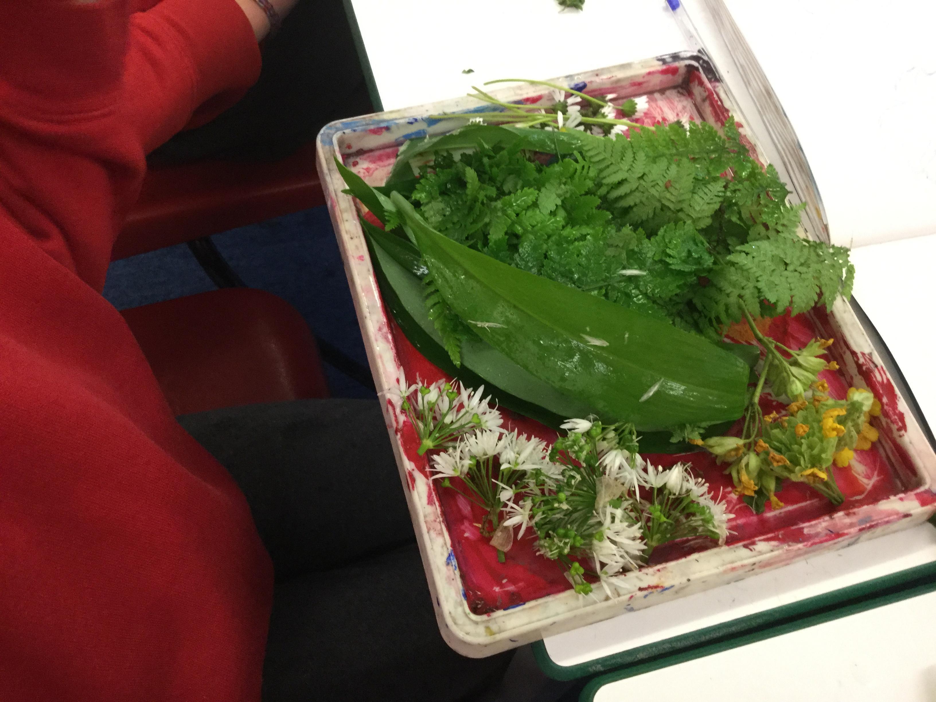 We are going to make the leaves for our collage but they will all be made using recycled or natural materials. We are using old bed sheets for the skin of our leaves. We are then dying the leaves by Hapa printing (a Japanese form of printing using leaves).