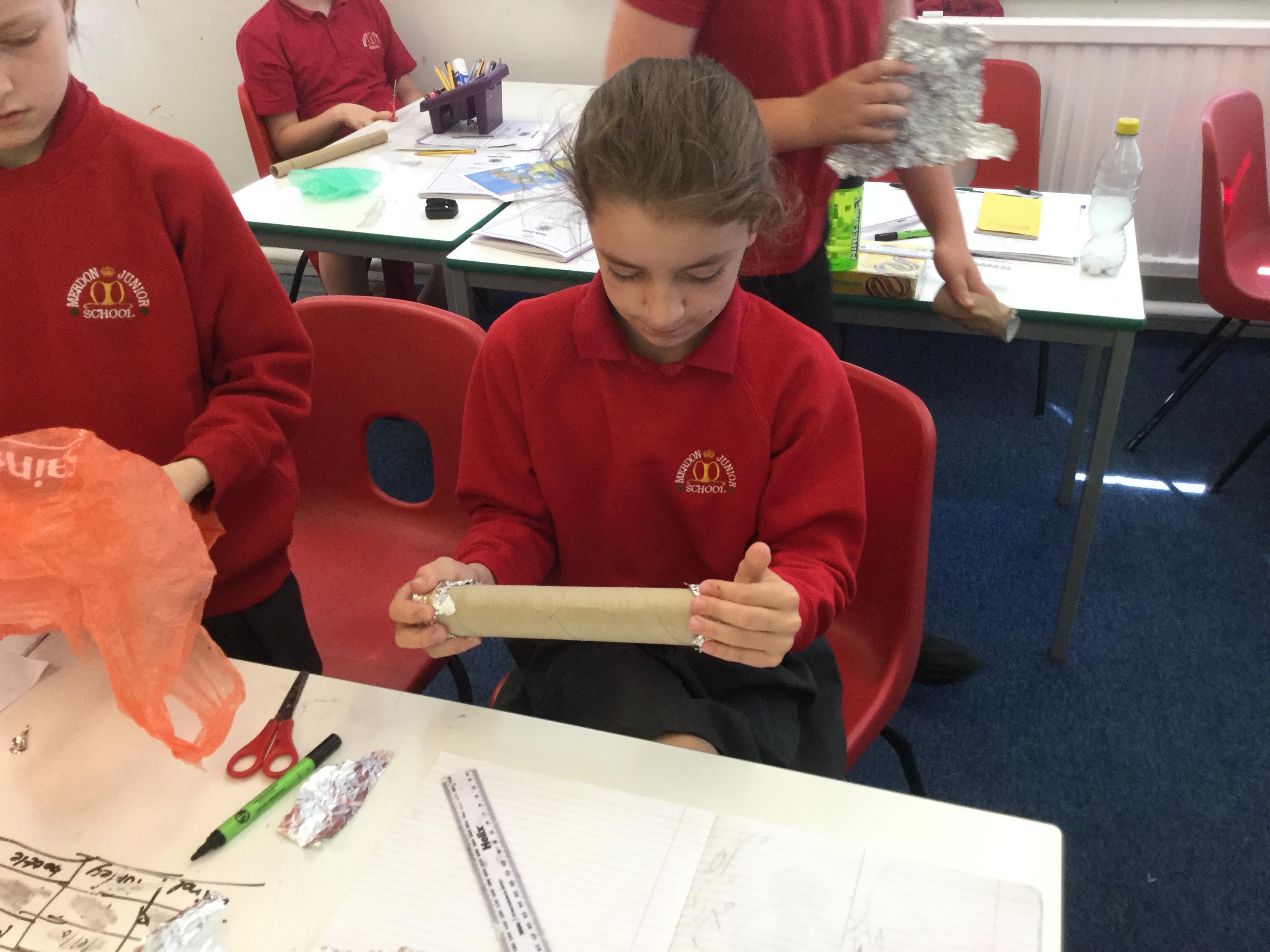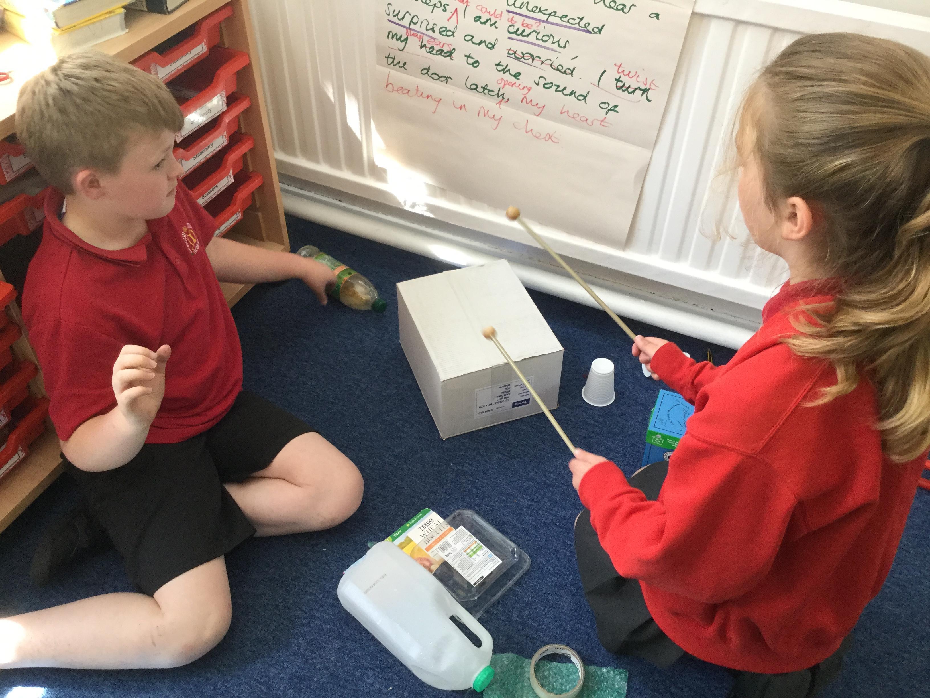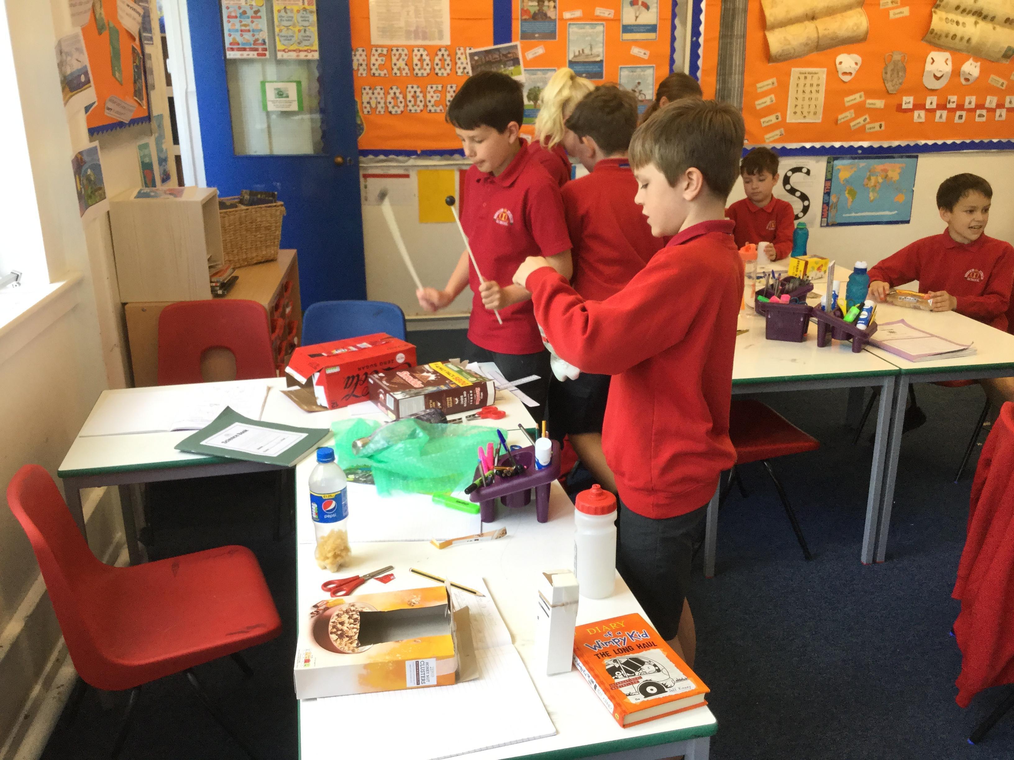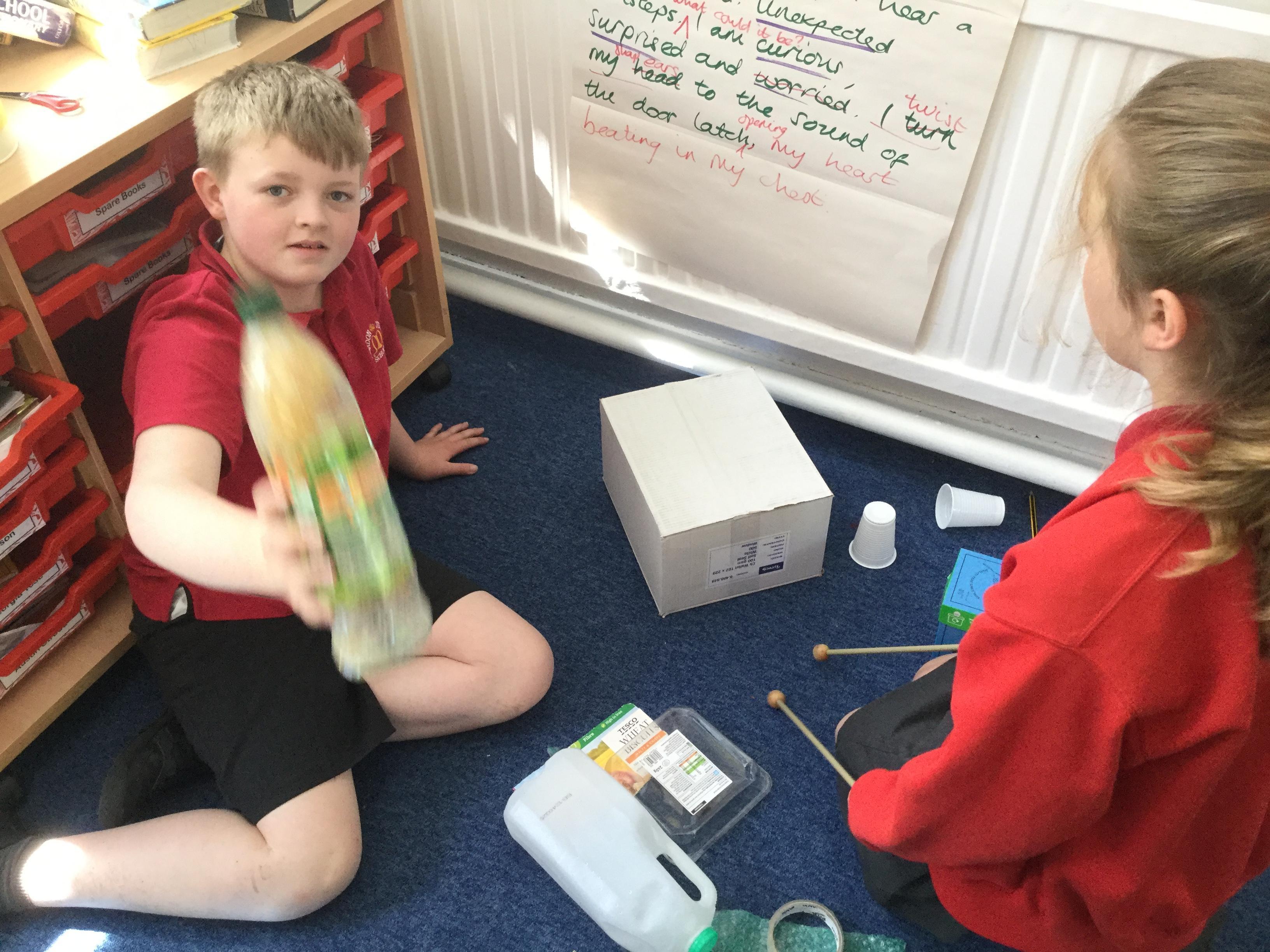 We made different instruments using a range of recyclable materials. We were then given an aspect of climate change that we had to represent as a piece of music in our groups. We played our composition to the rest of the class and they had to guess which aspect of climate change we were representing.