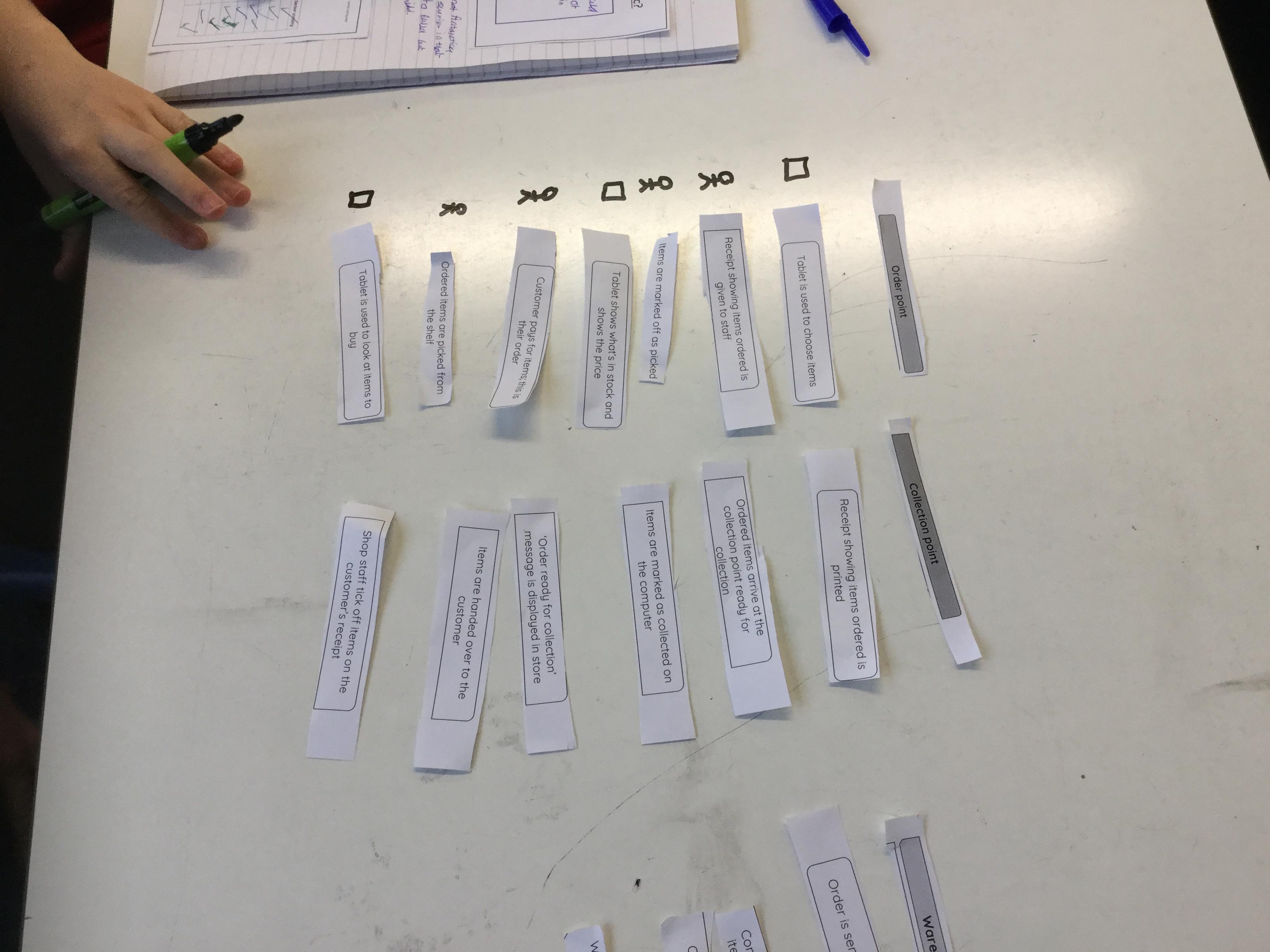 Today the children were asked to think about how a catalogue store, such as Argos, works. They had to order all the steps from a customer choosing an item up to when they received the item. Then they had to decide whether each process was completed by people or computer.