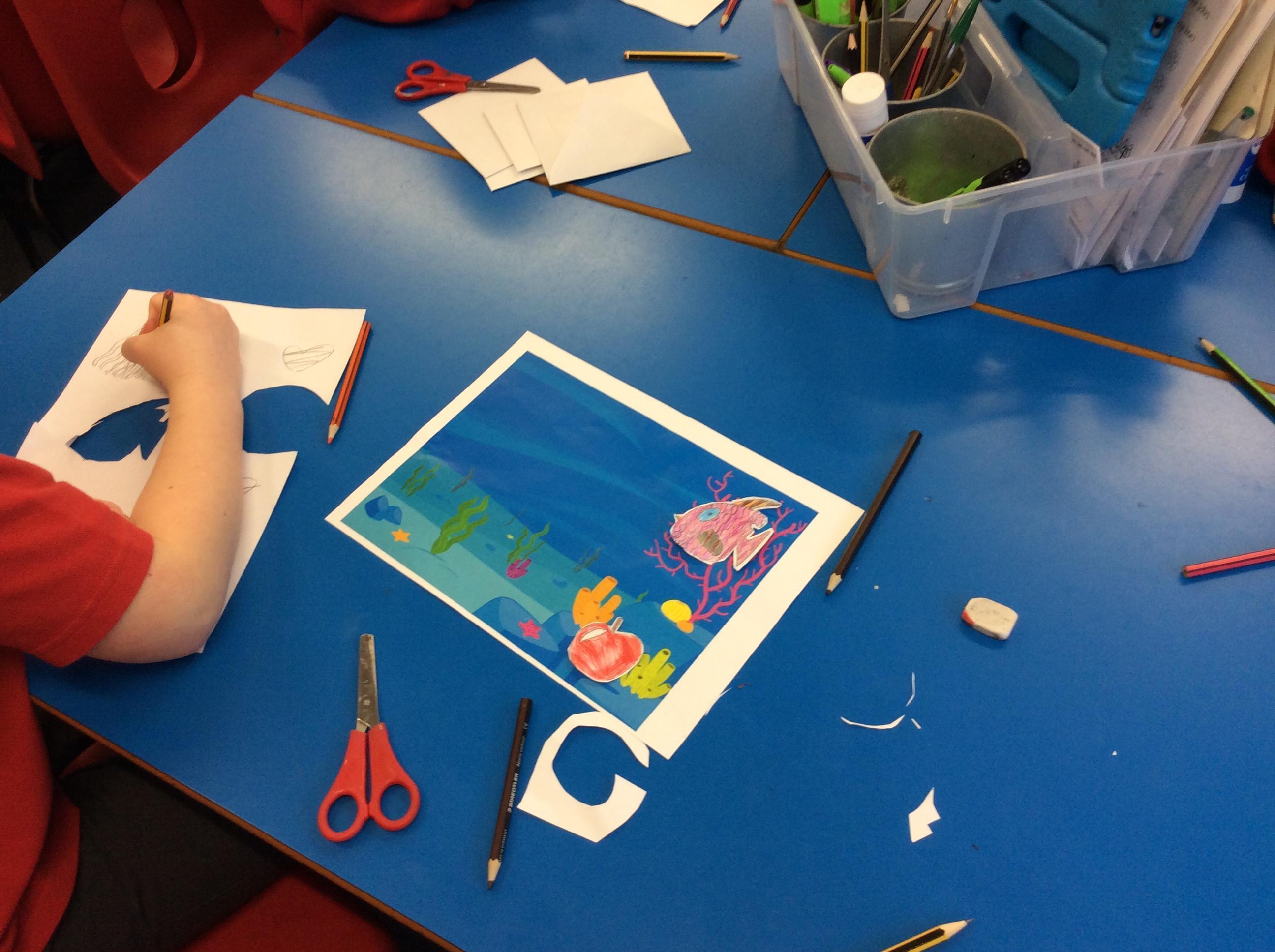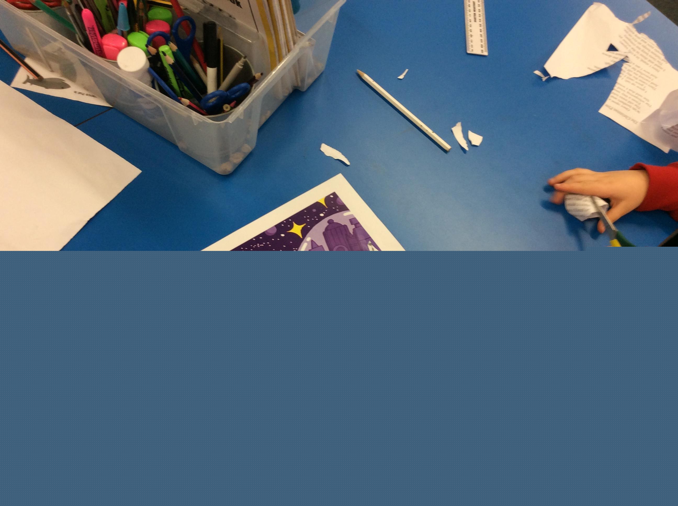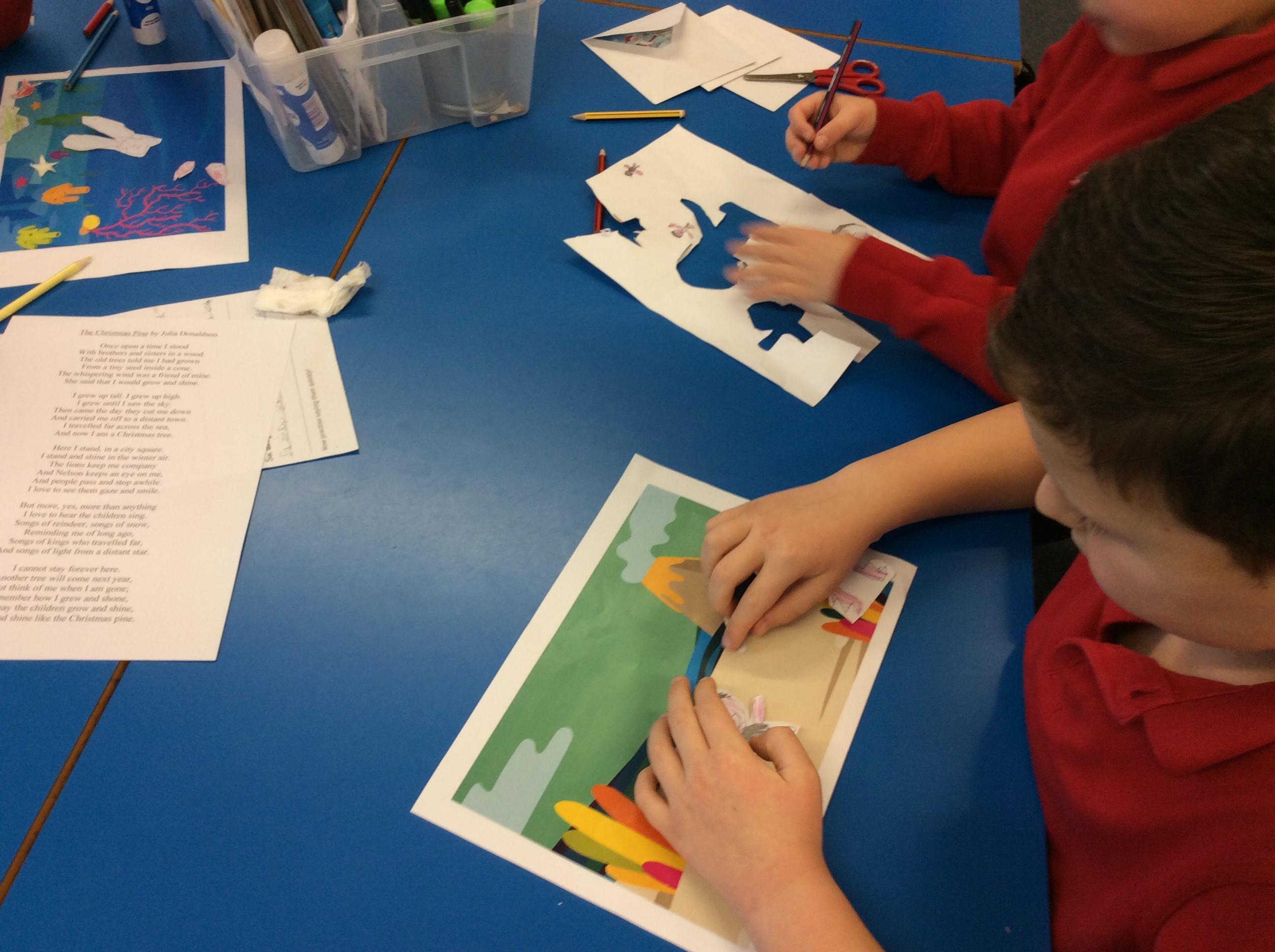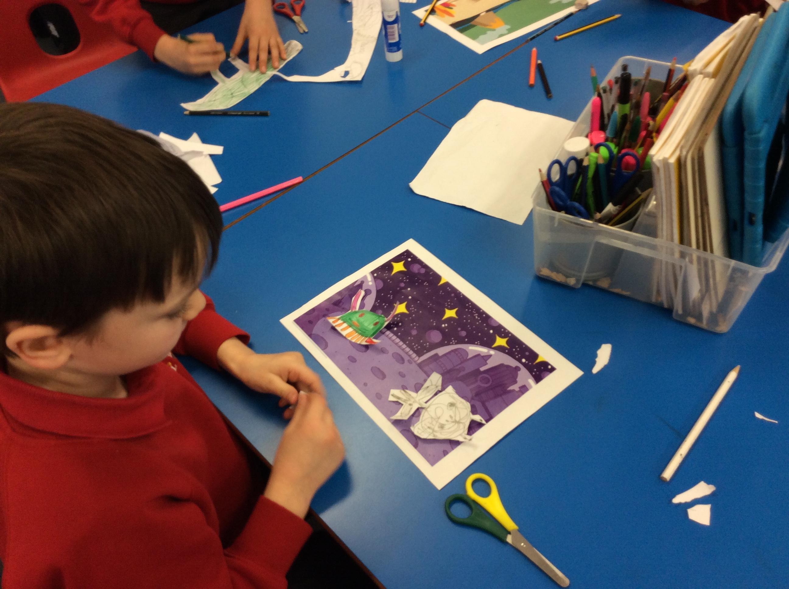 Next, we chose our backgrounds and printed them before carefully drawing, colouring and cutting out our characters.