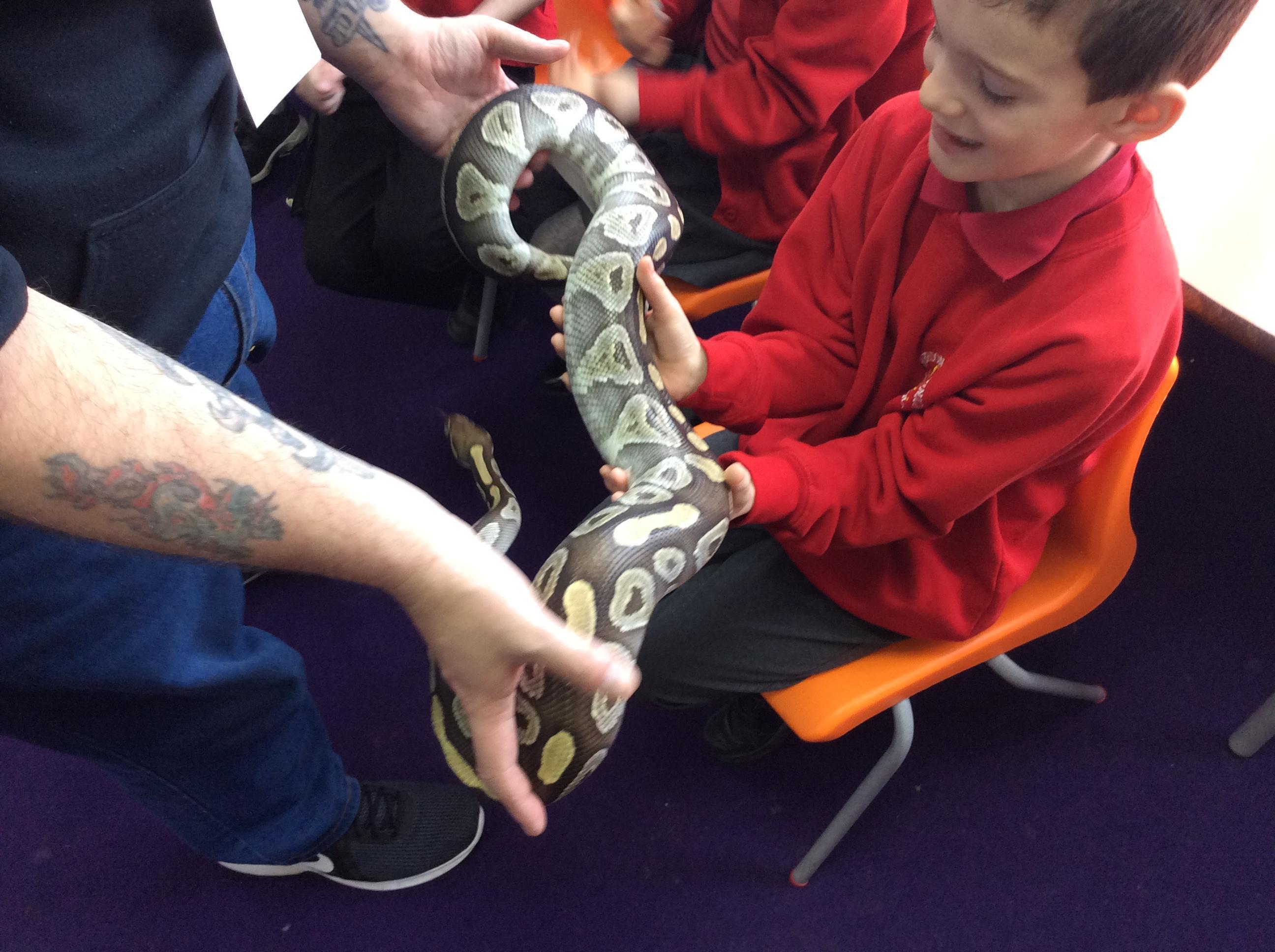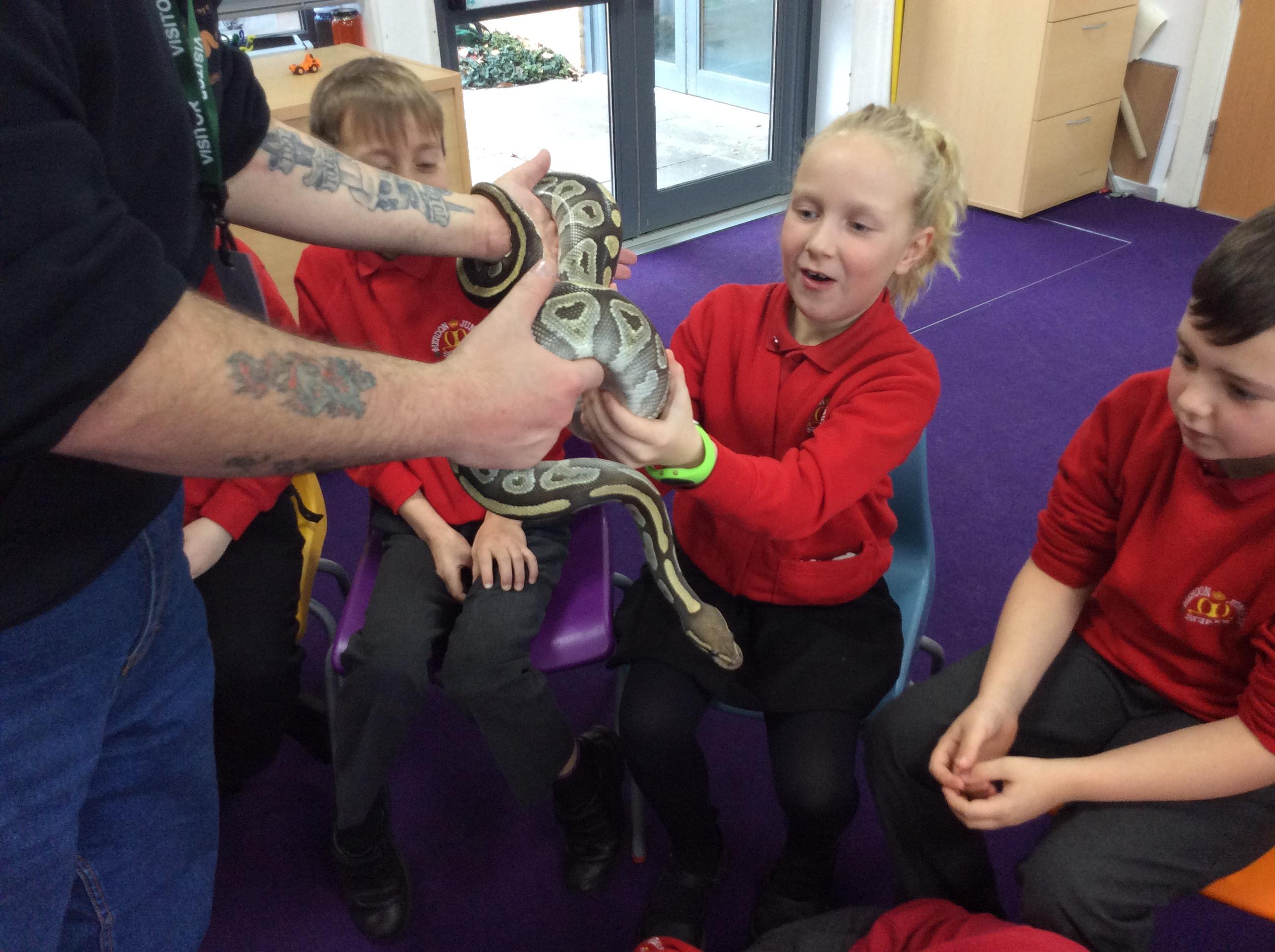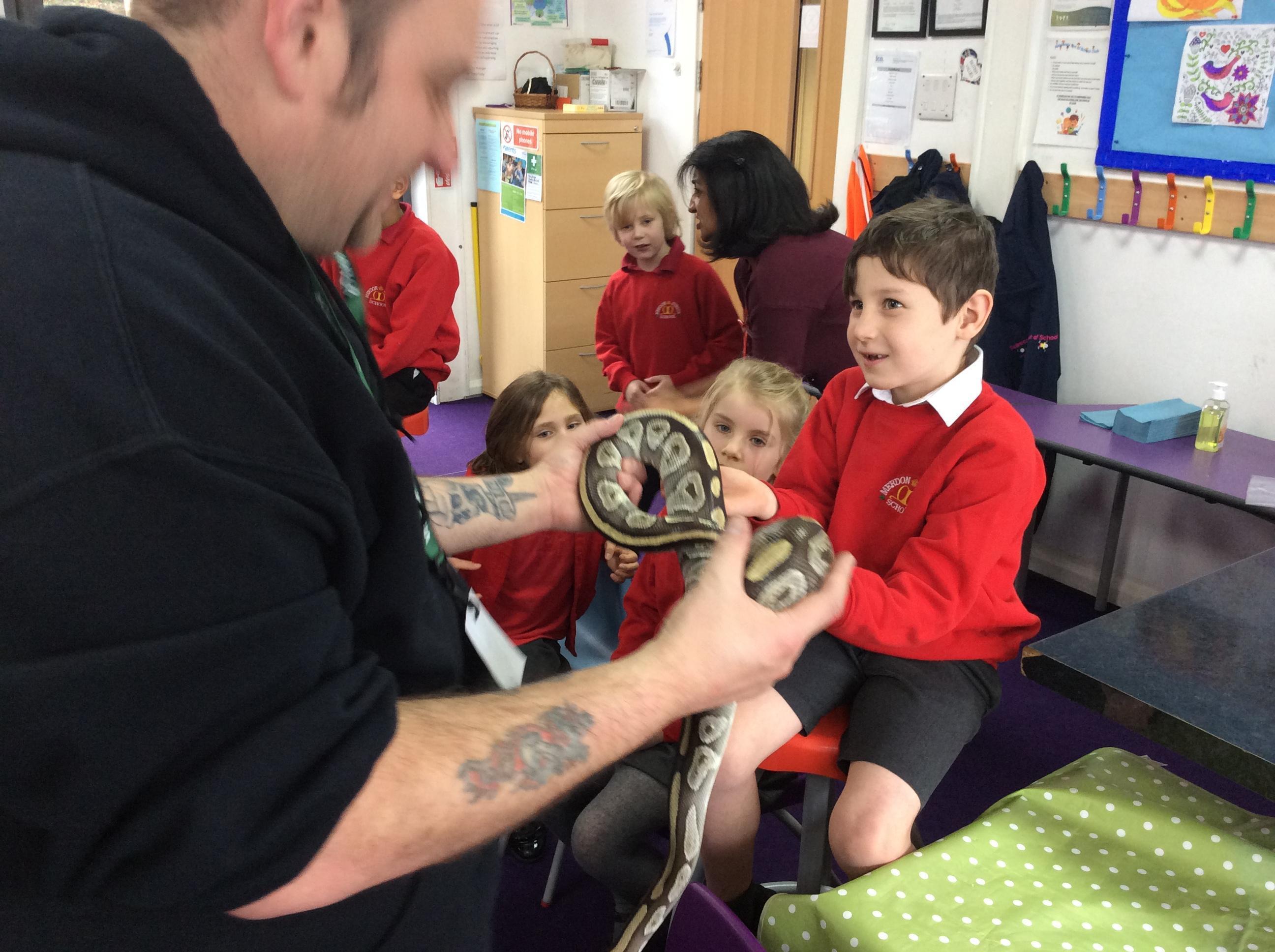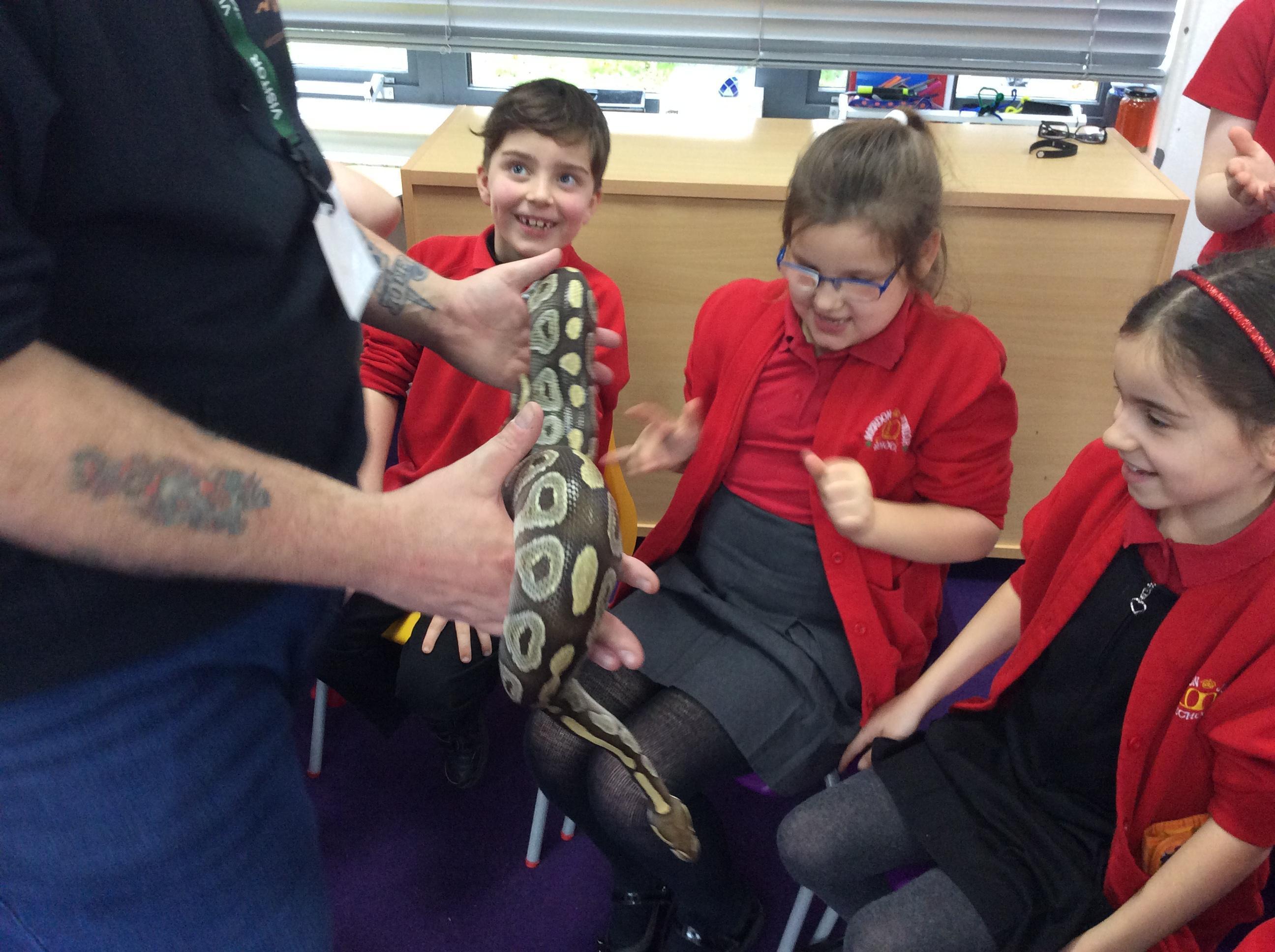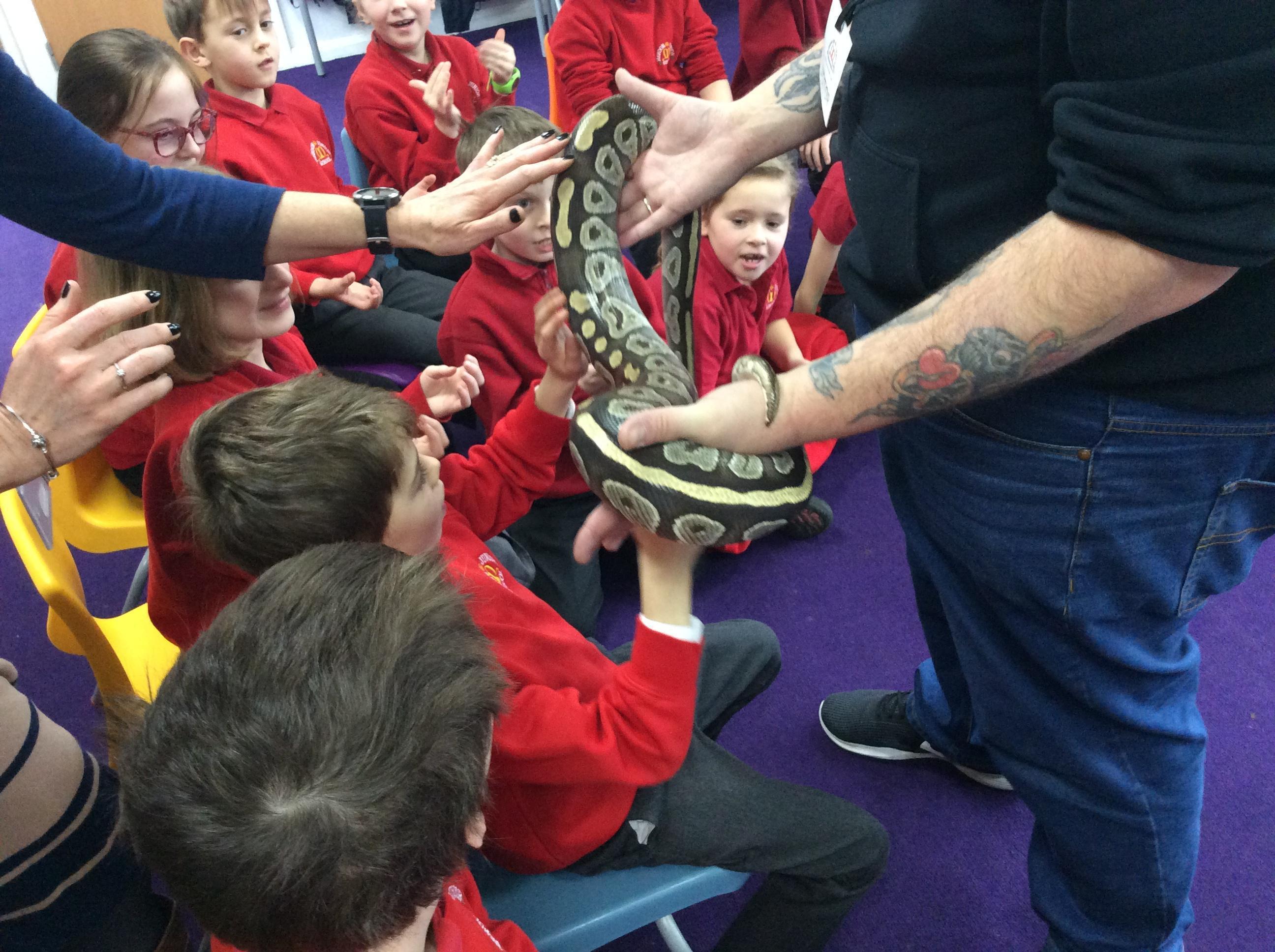 Today was an exciting day as Ian the Crazy Creatures man came to visit. We saw, held and touched lots of different animals and learnt lots about them. Look out for our writing based on the experience.