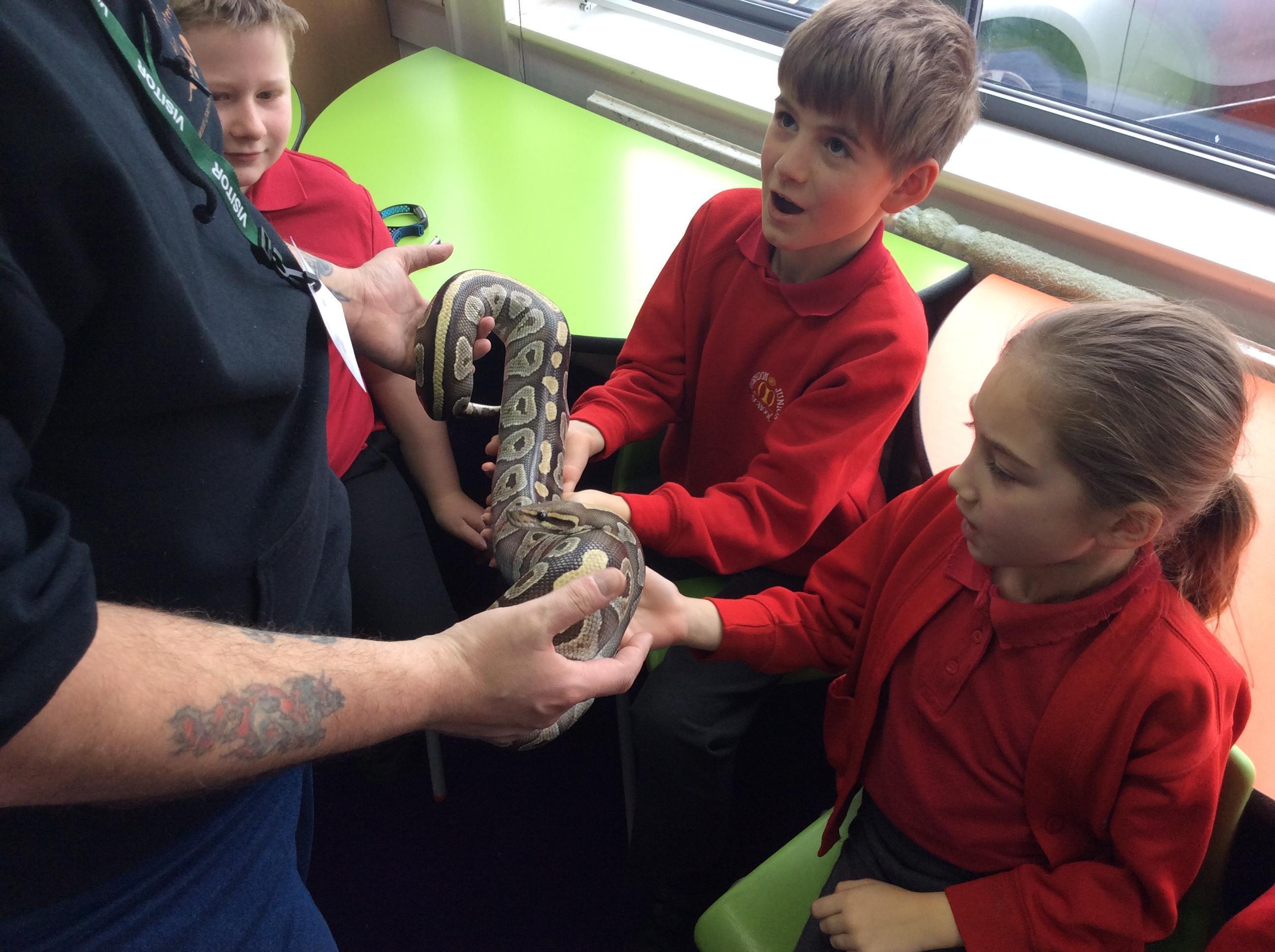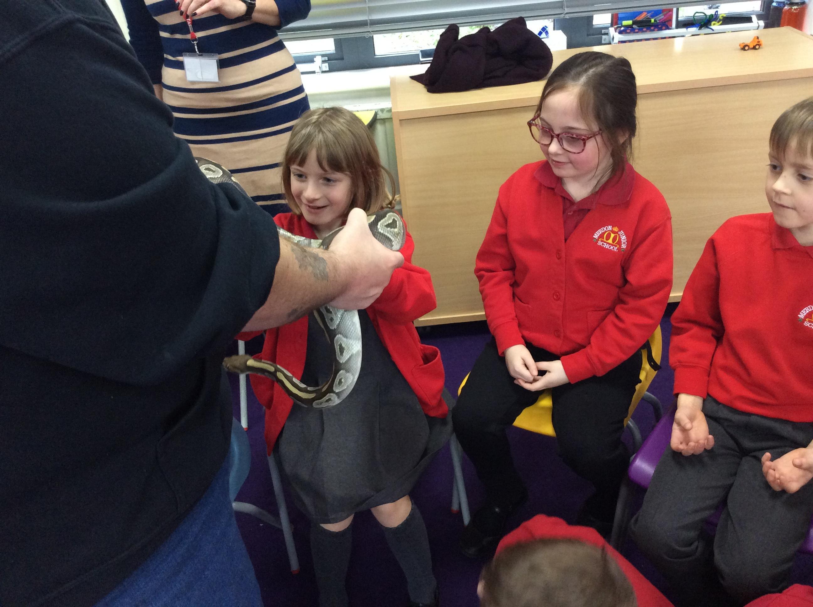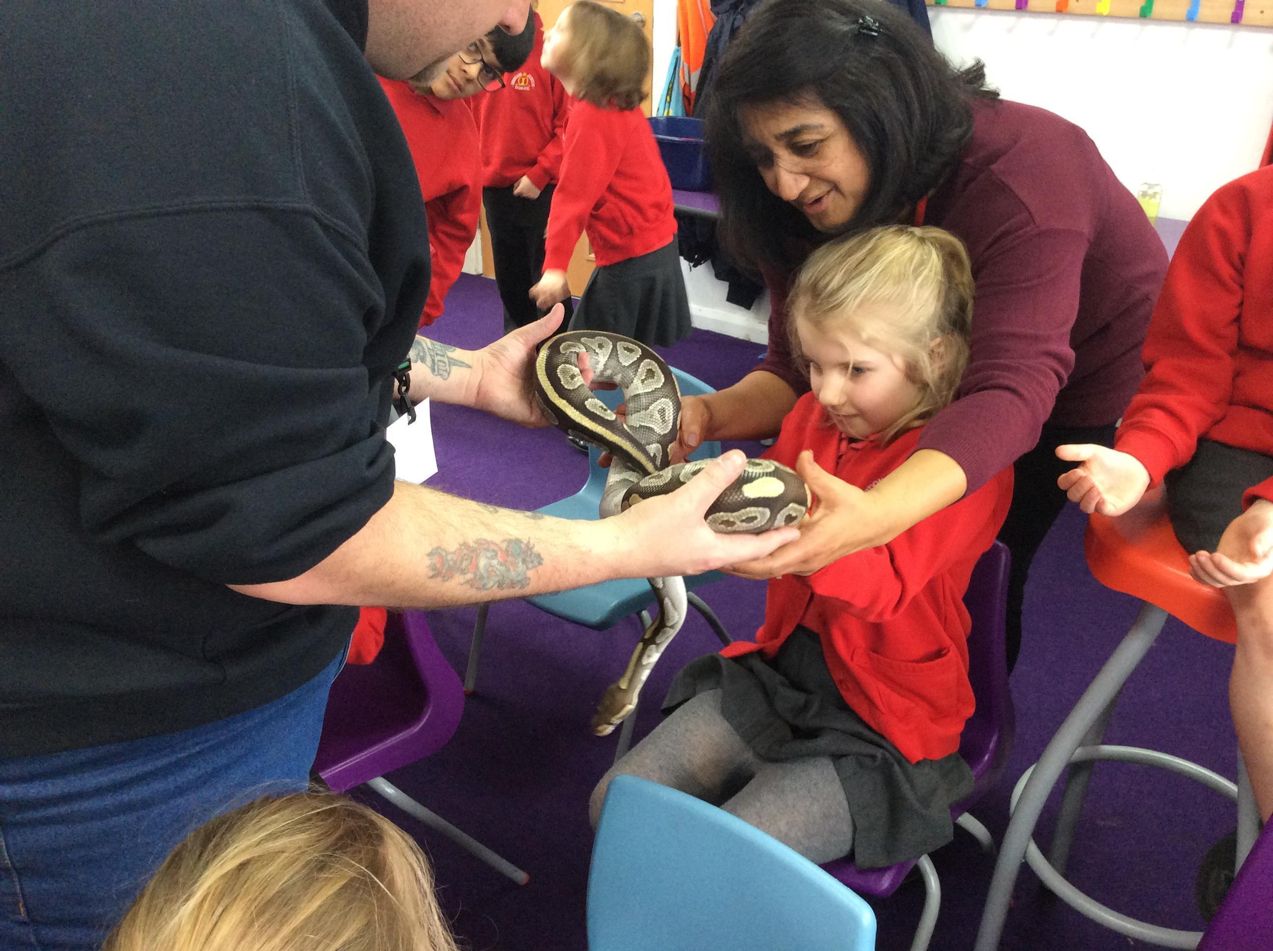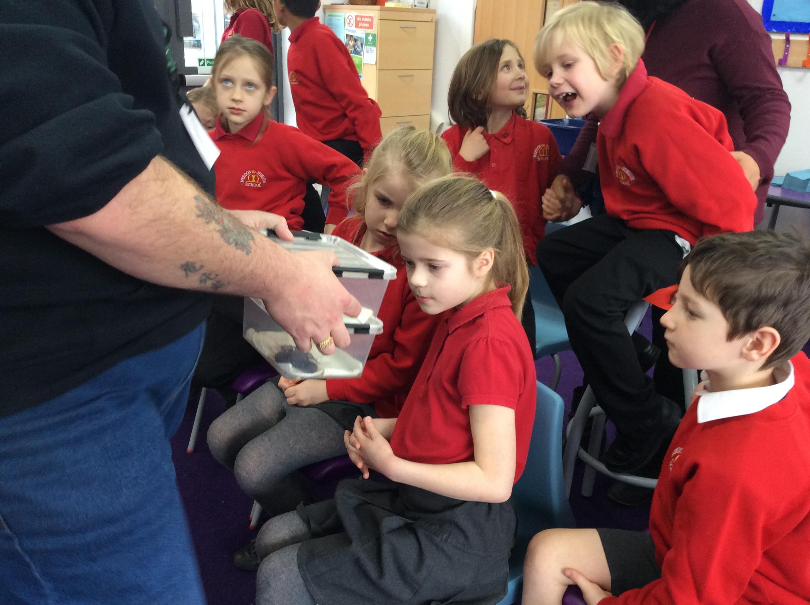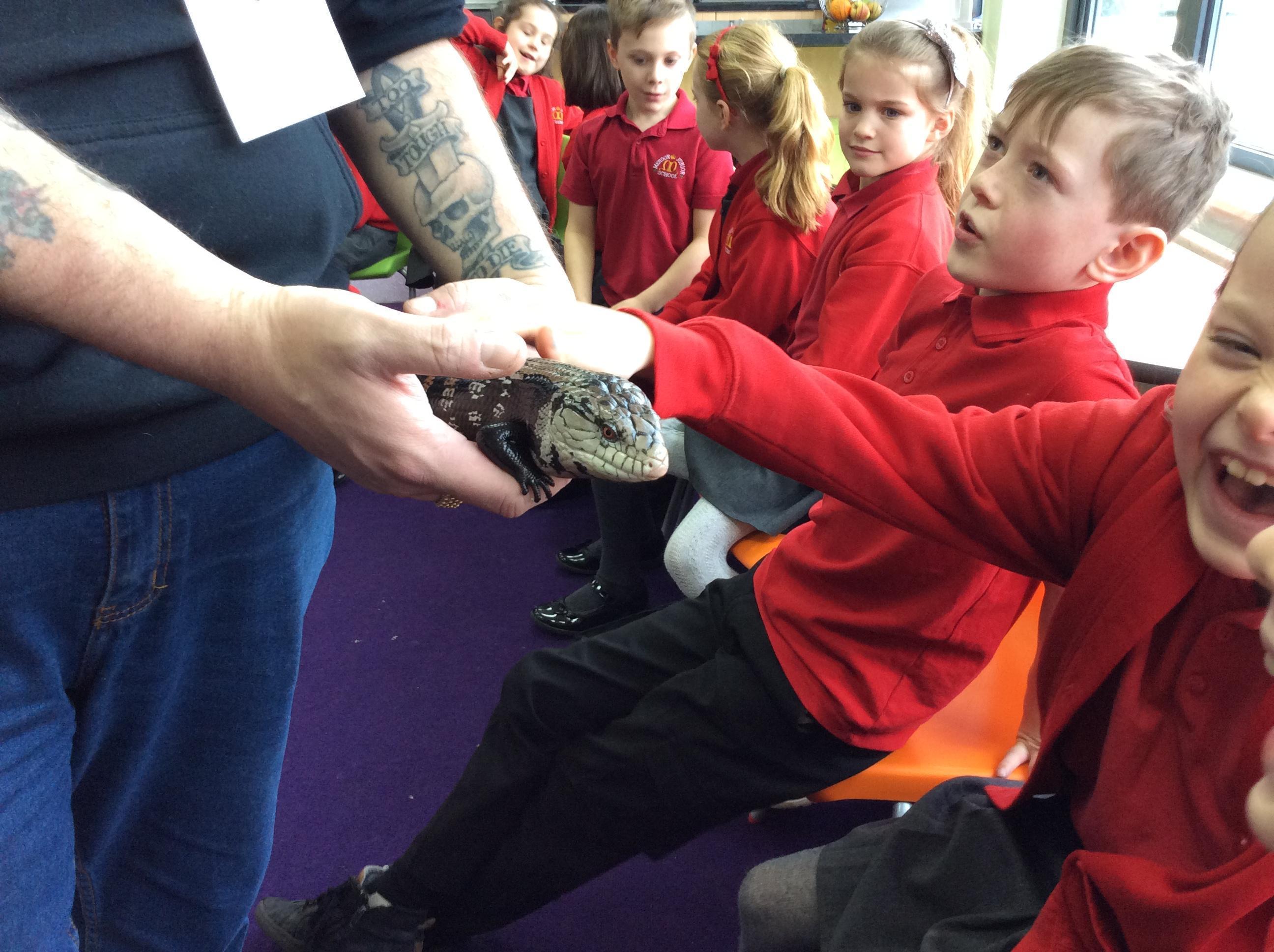 Today was an exciting day as Ian the Crazy Creatures man came to visit. We saw, held and touched lots of different animals and learnt lots about them. Look out for our writing based on the experience.