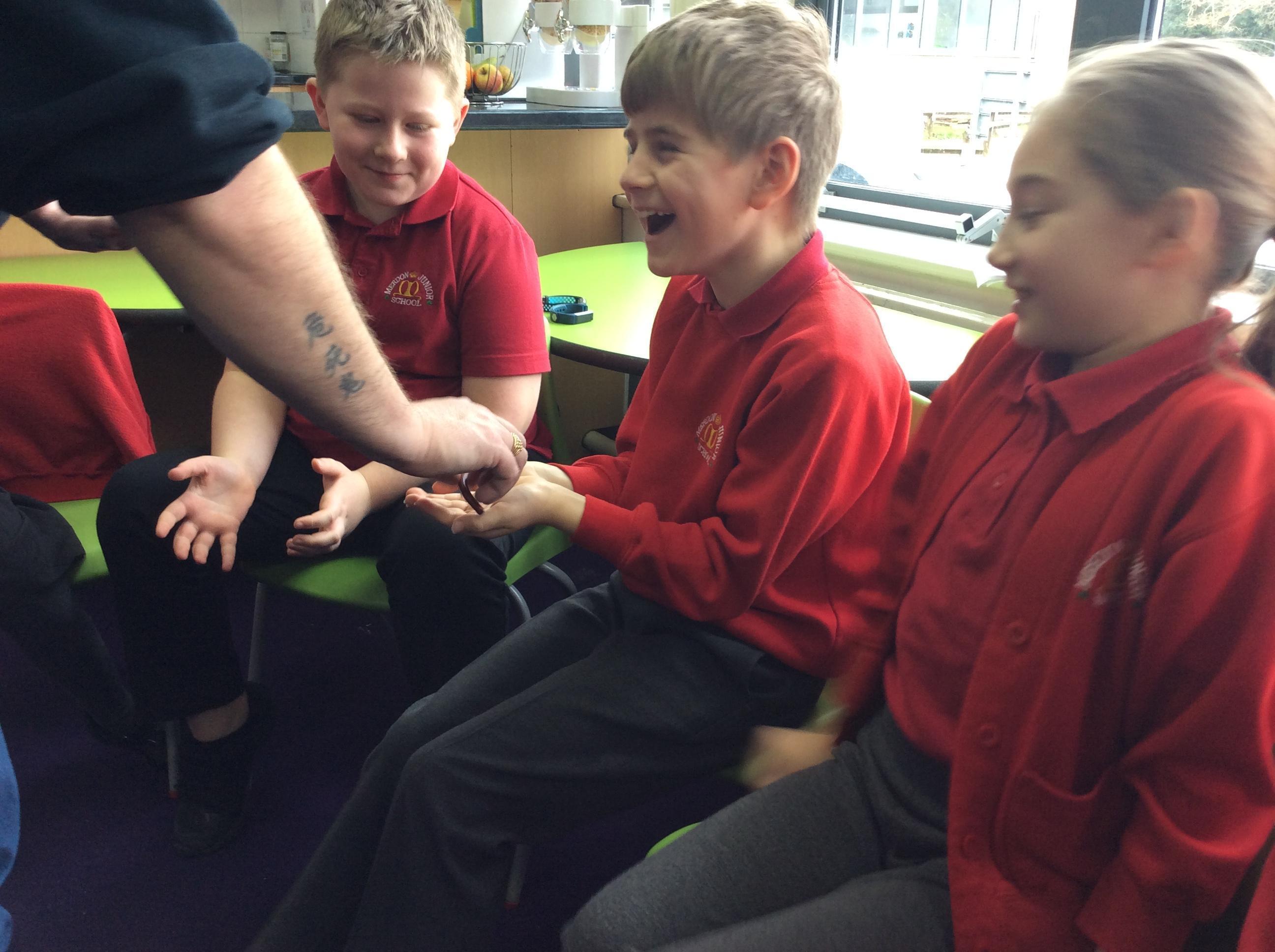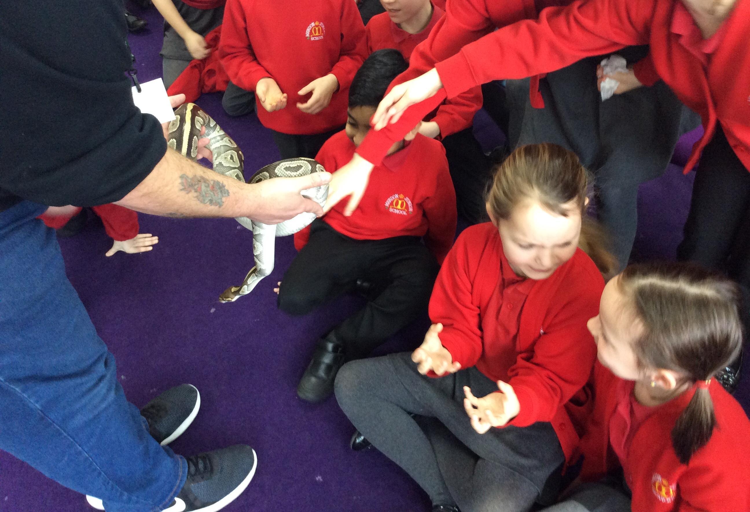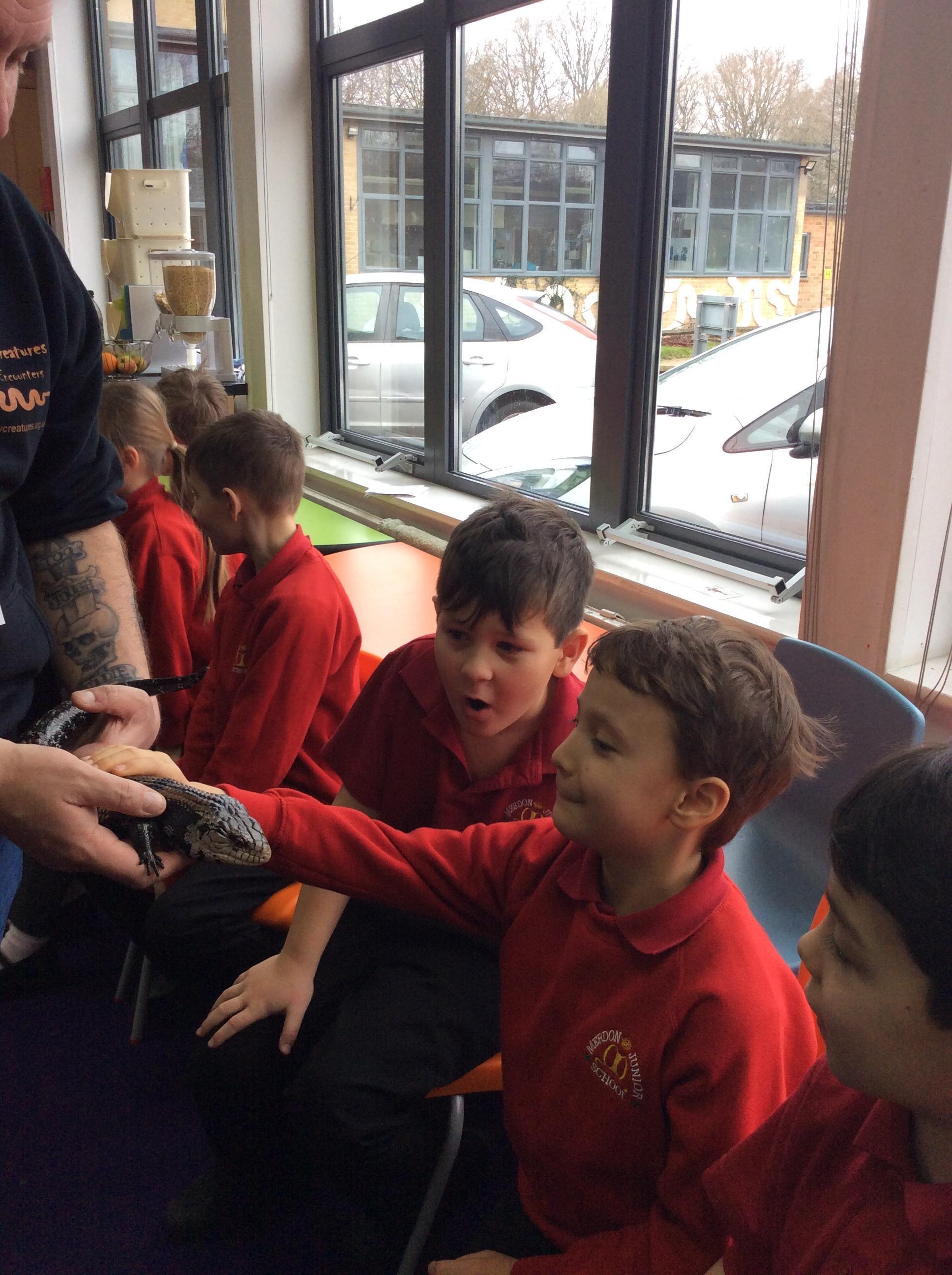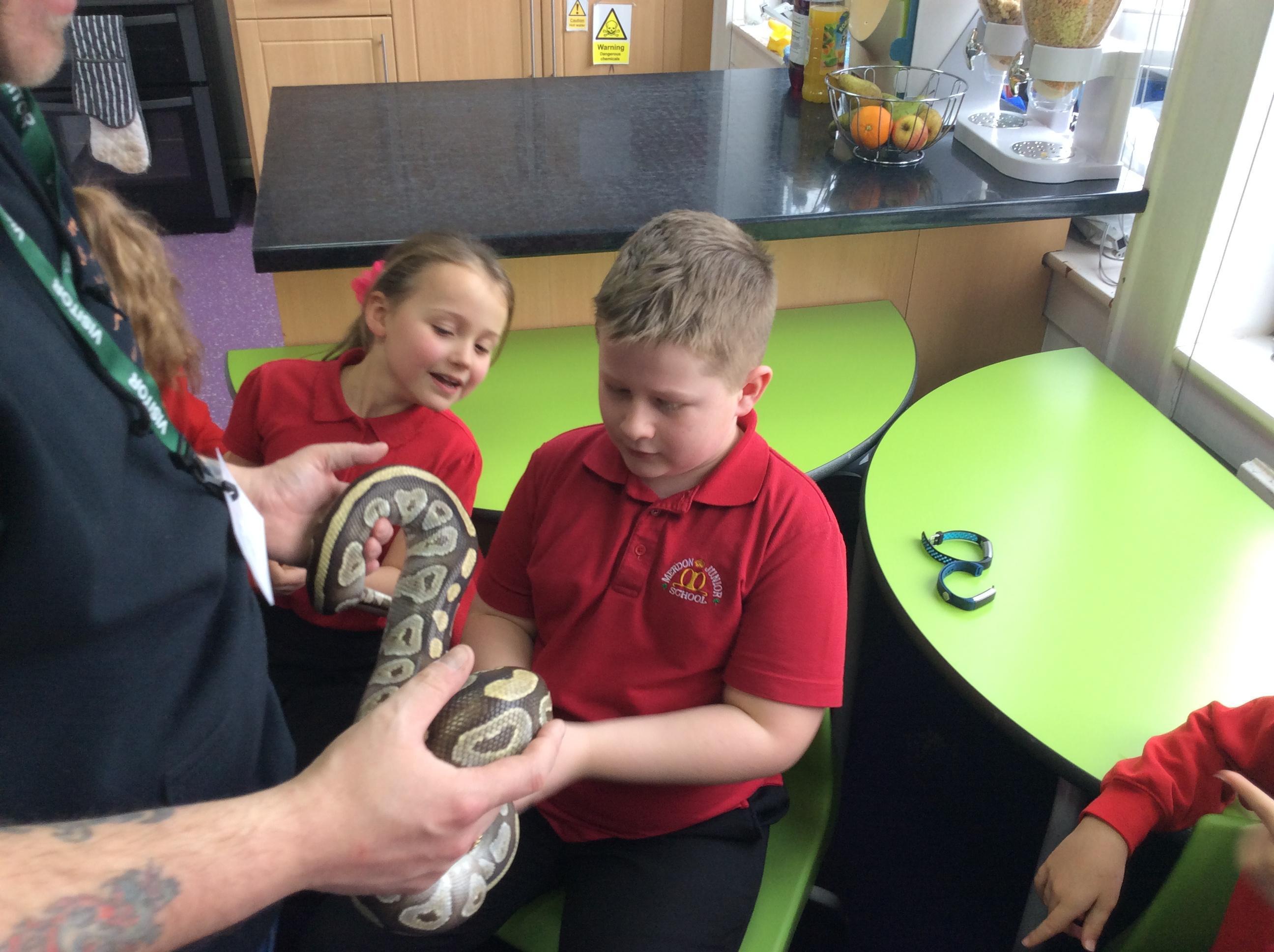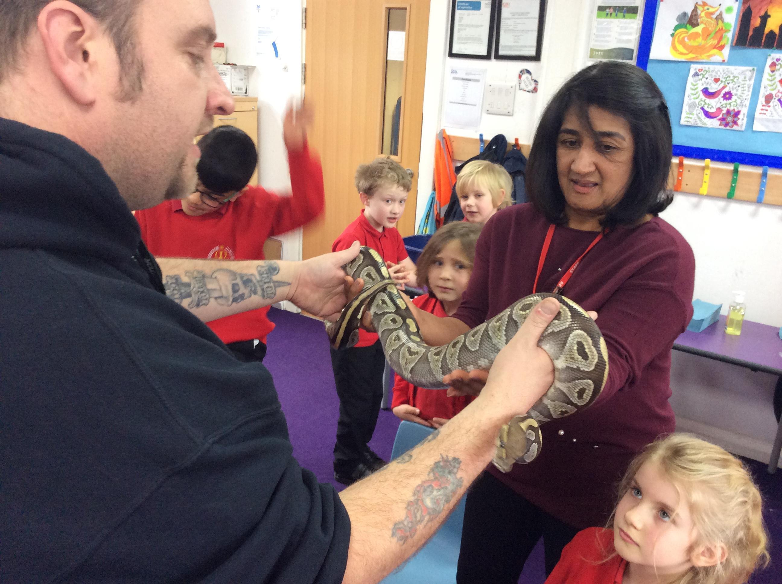 Today was an exciting day as Ian the Crazy Creatures man came to visit. We saw, held and touched lots of different animals and learnt lots about them. Look out for our writing based on the experience.