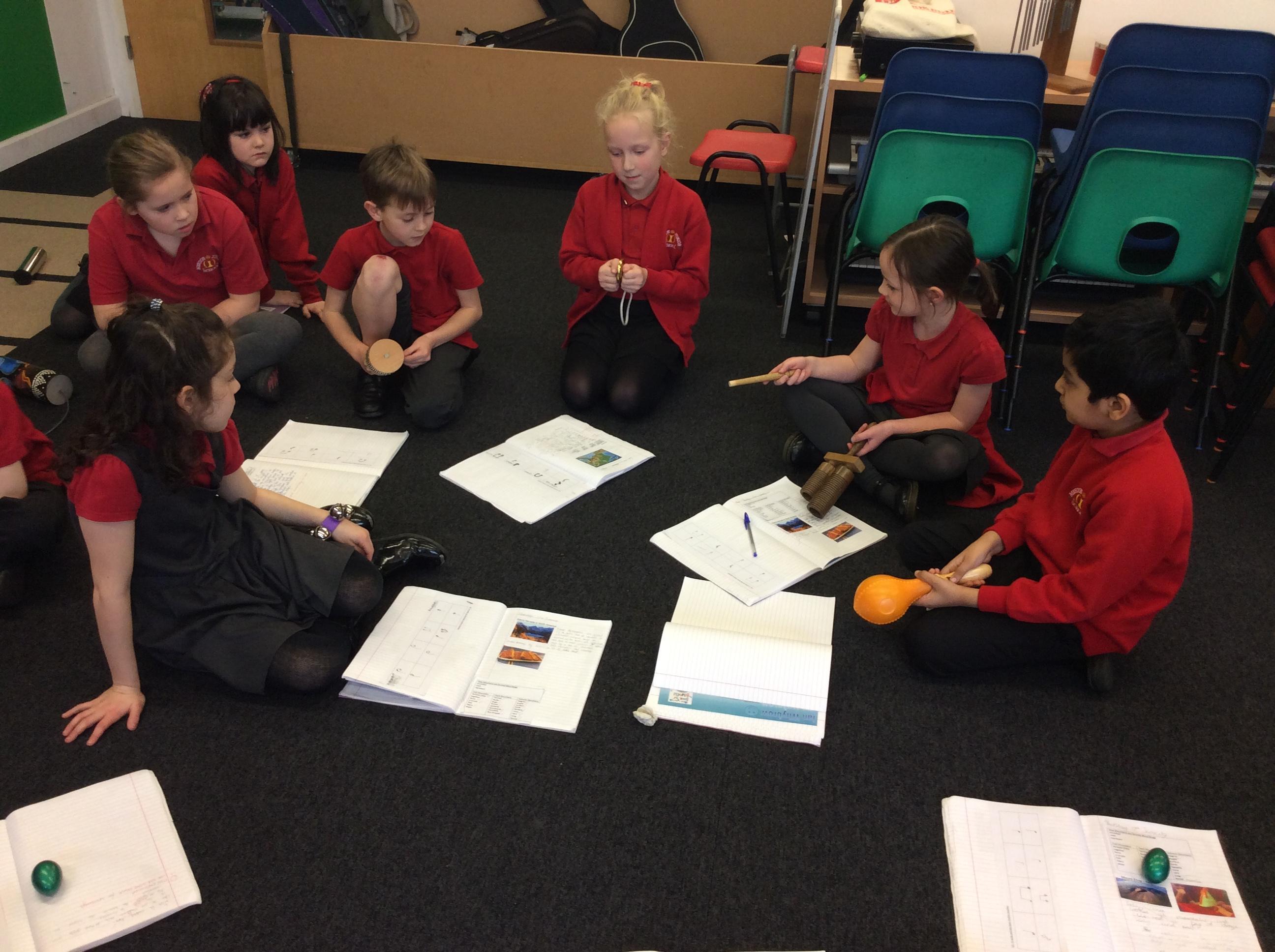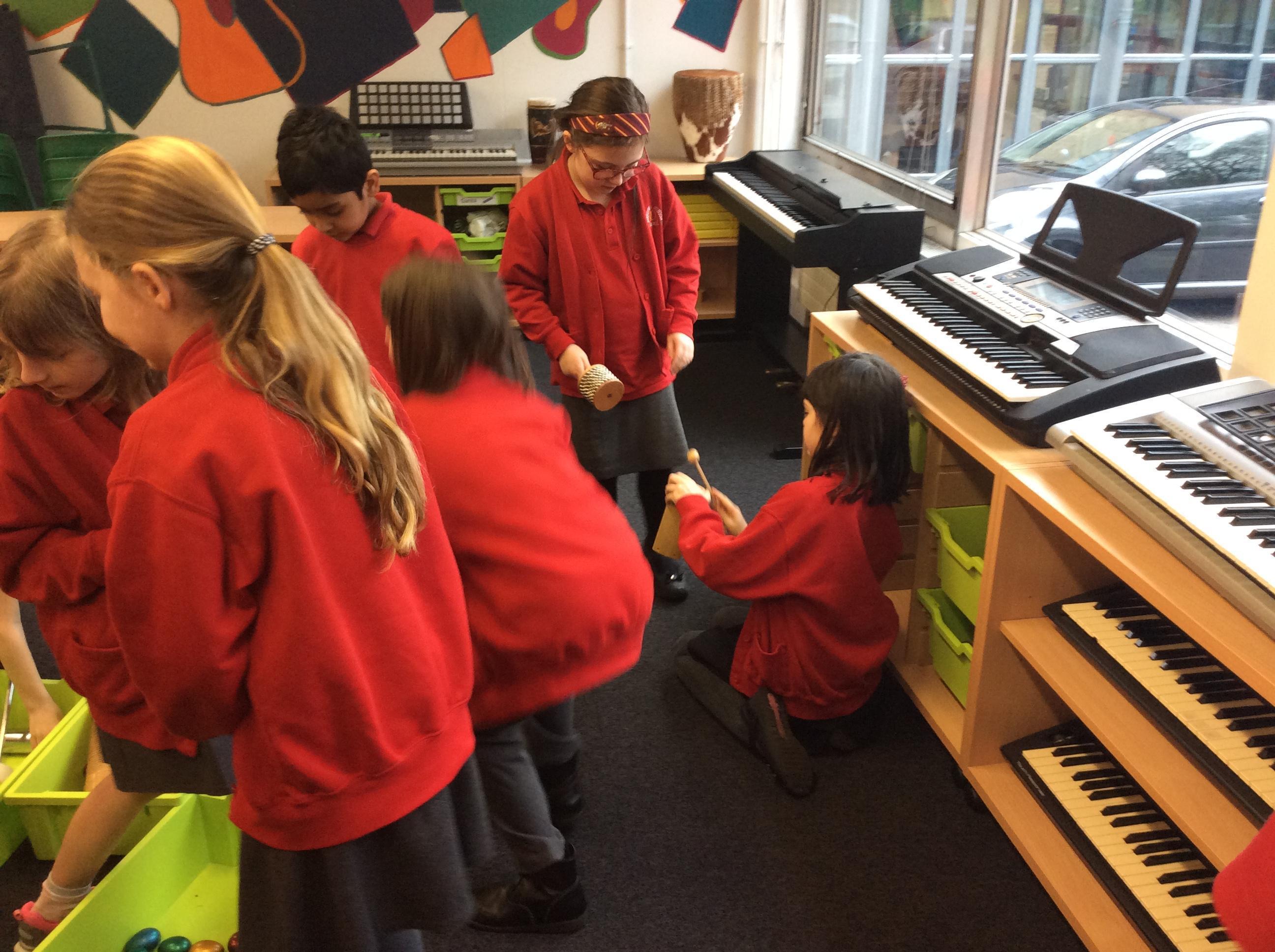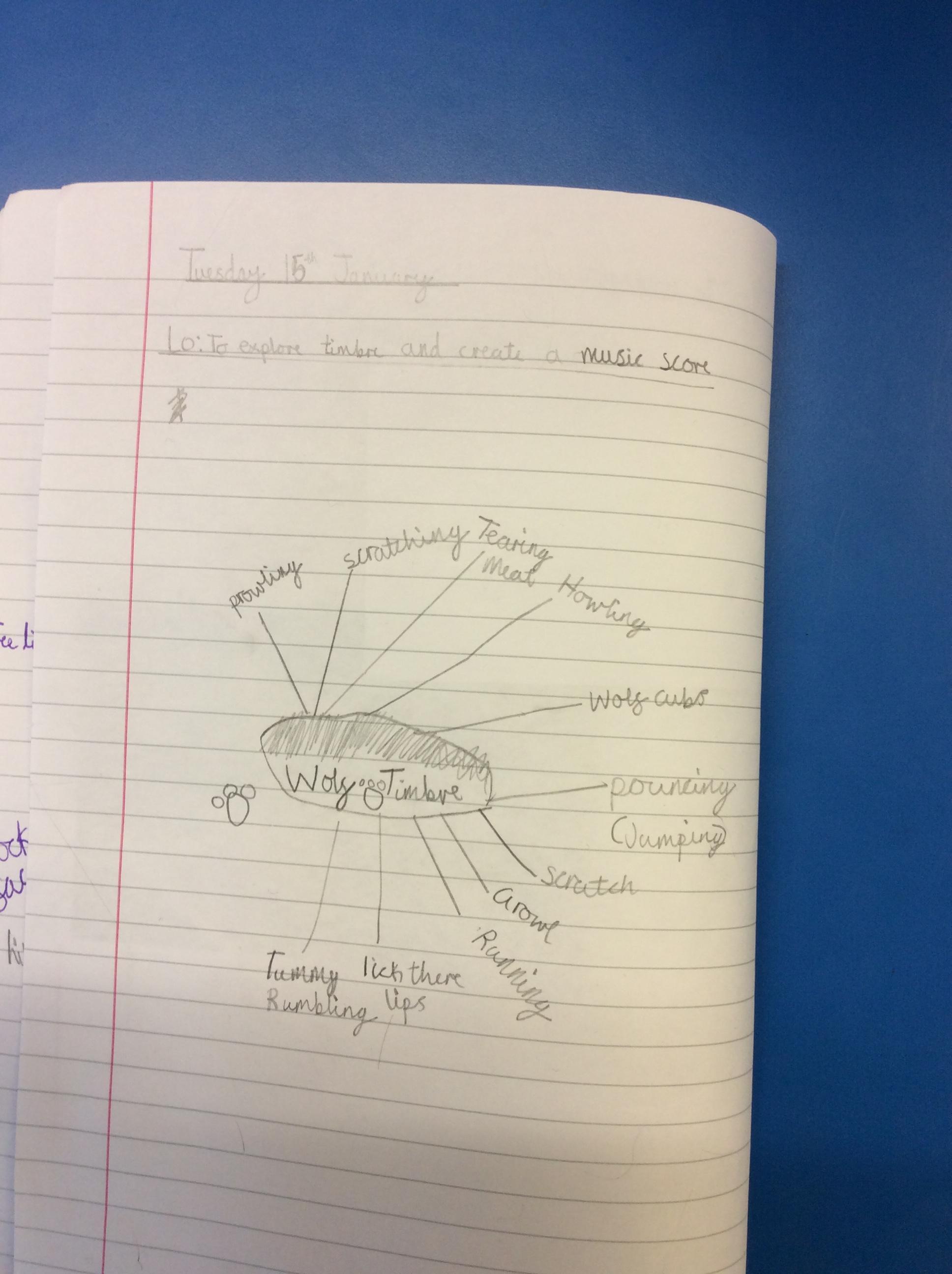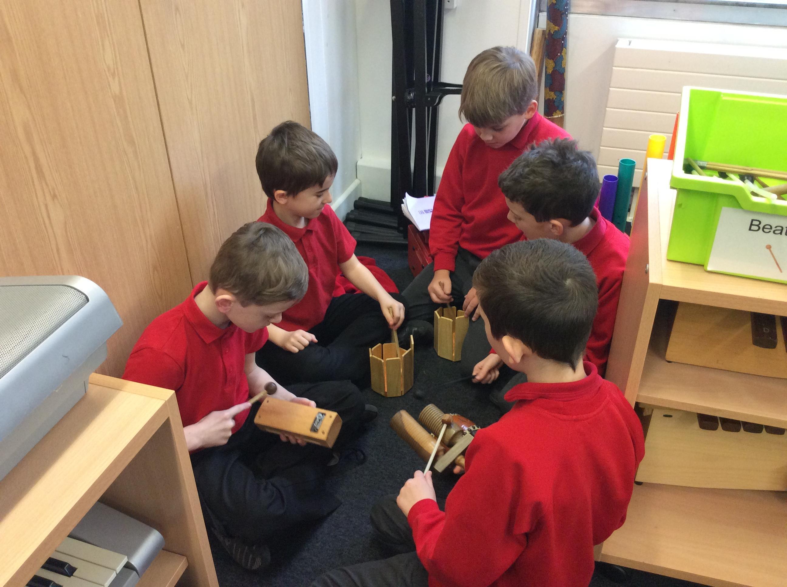 Creating our "wolves" composition using teamwork, rhythm and timbre.