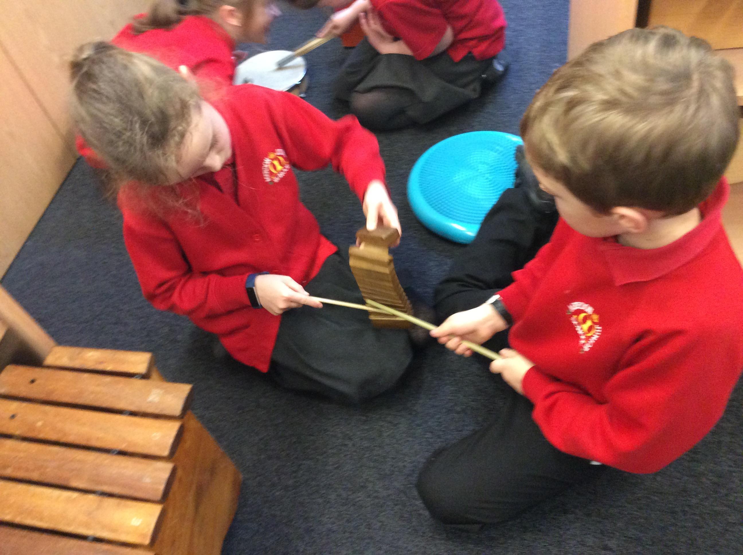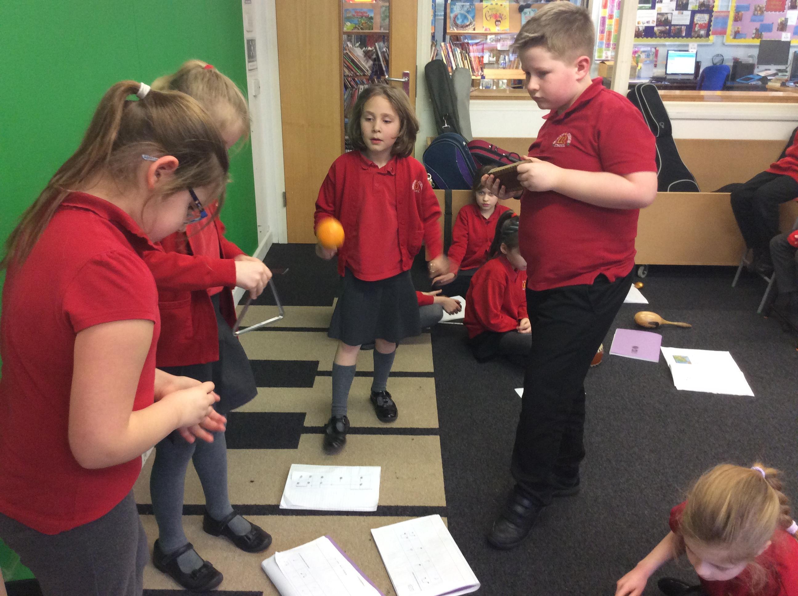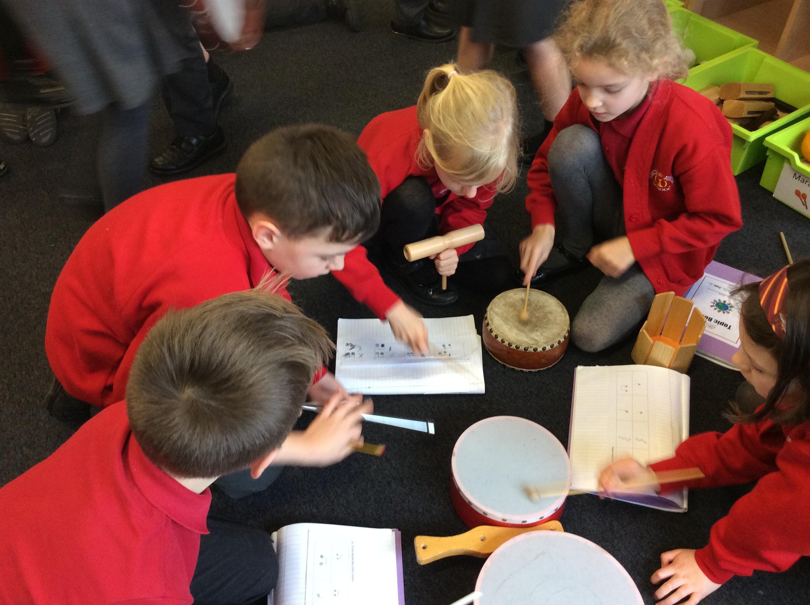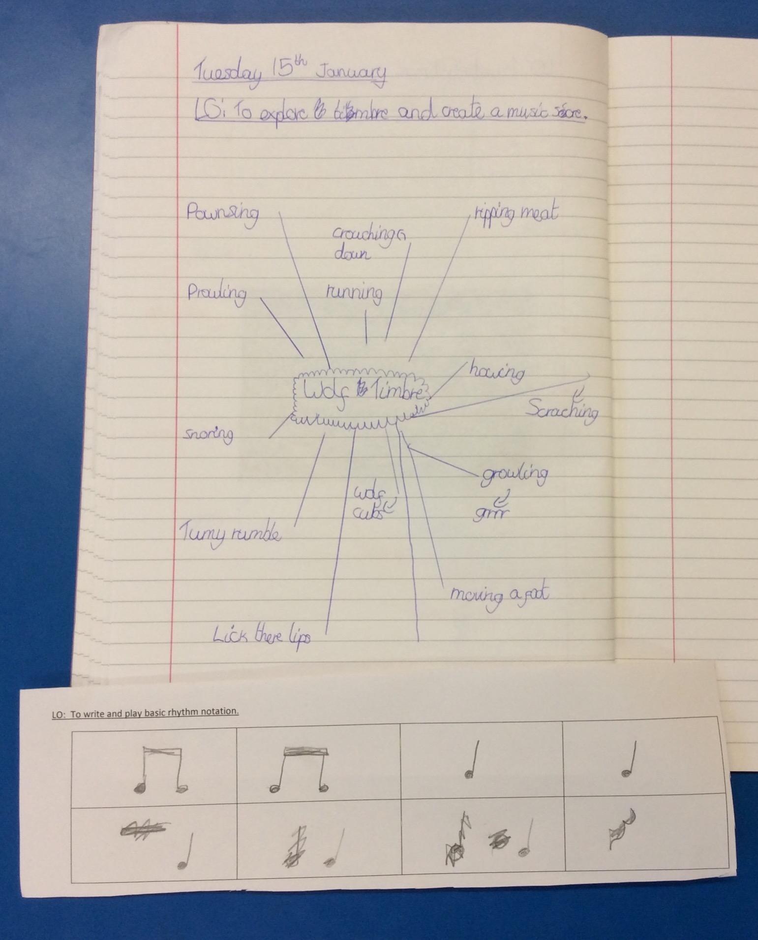 Creating our "wolves" composition using teamwork, rhythm and timbre.