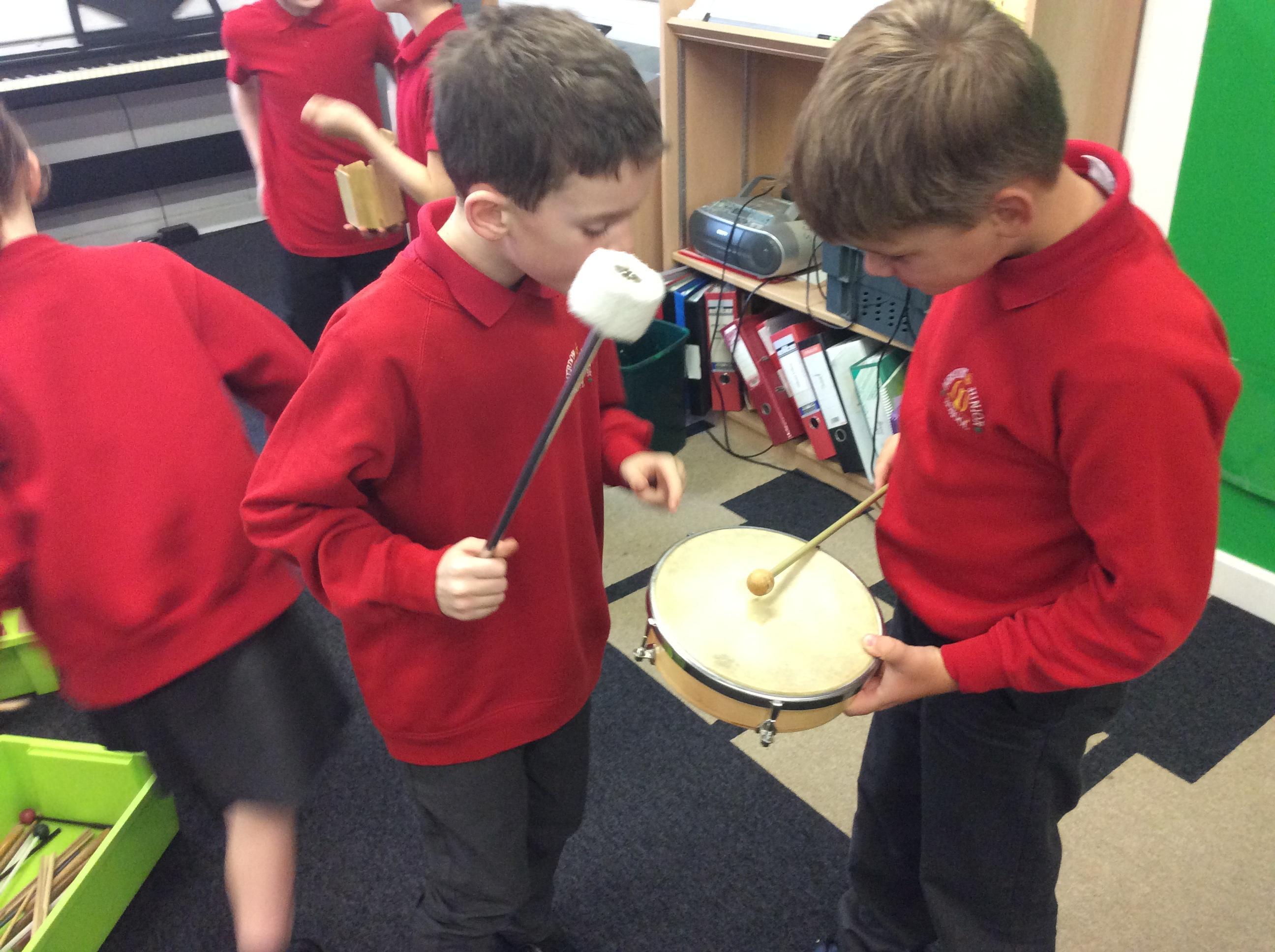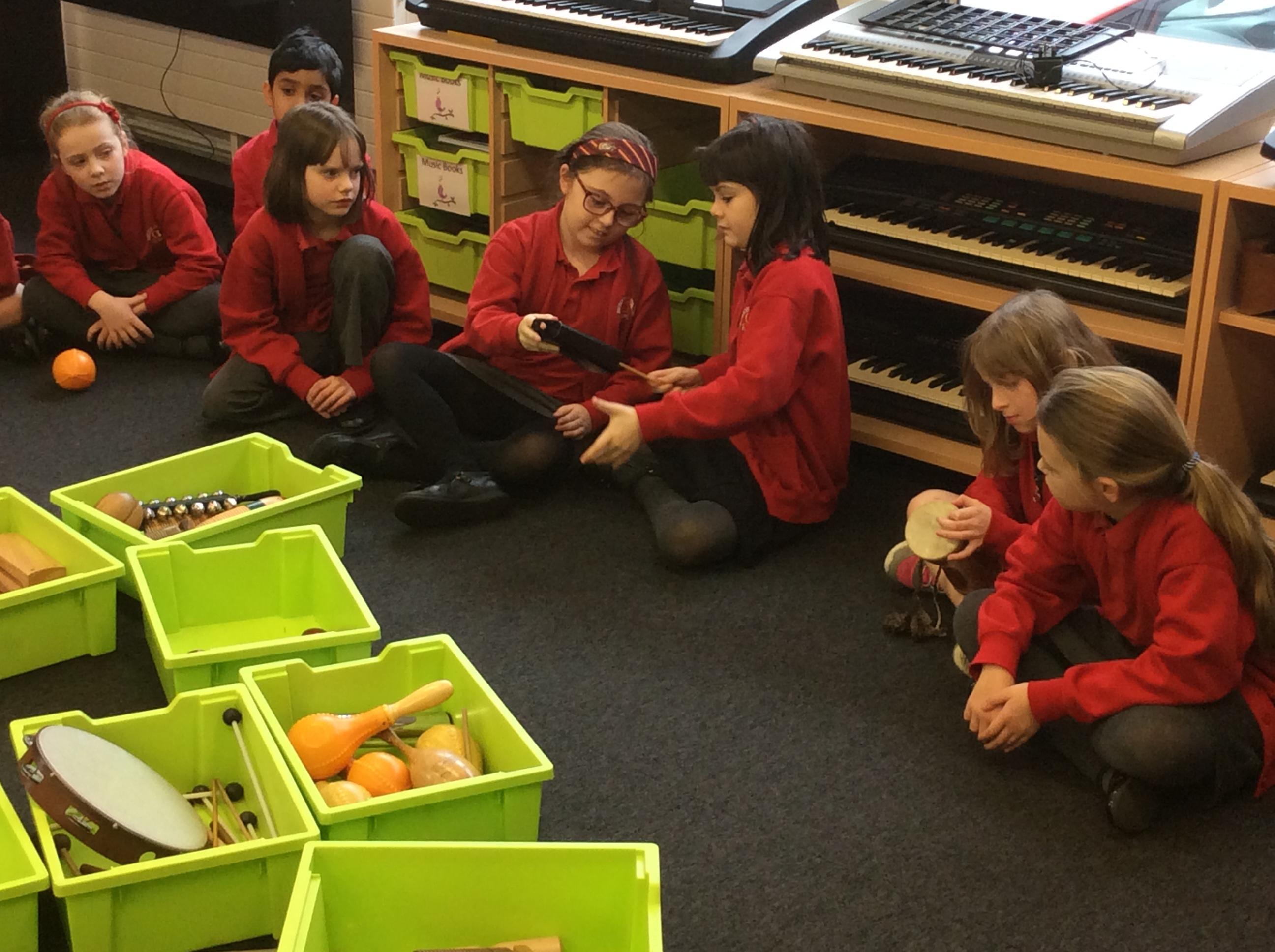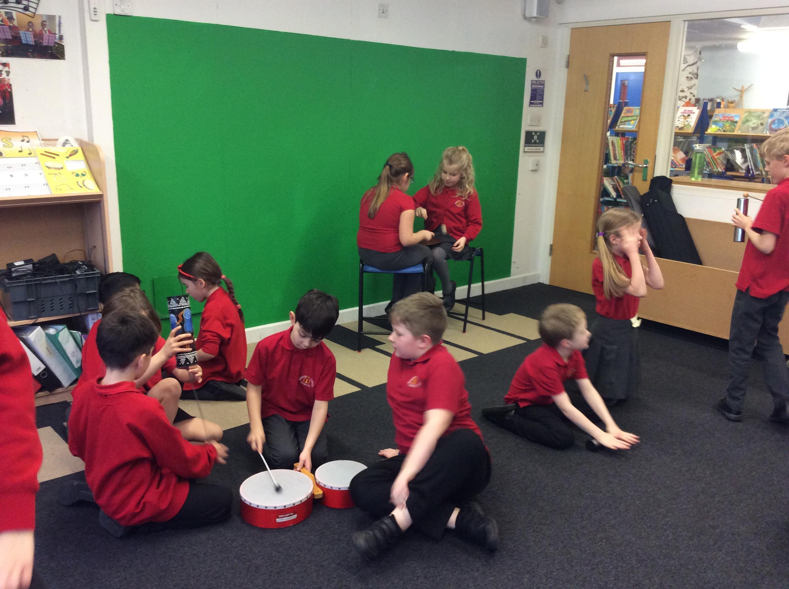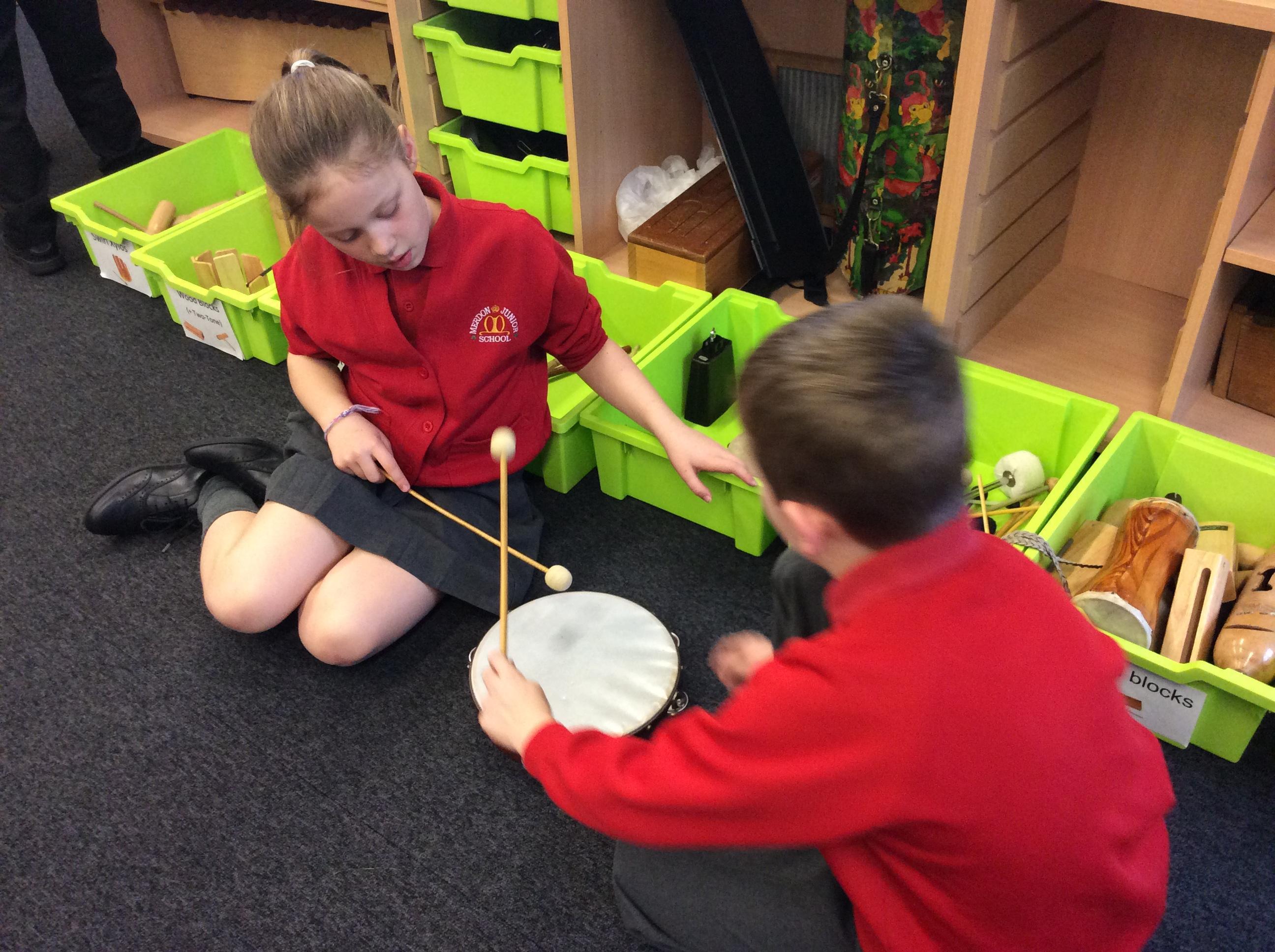 Creating our "wolves" composition using teamwork, rhythm and timbre.
