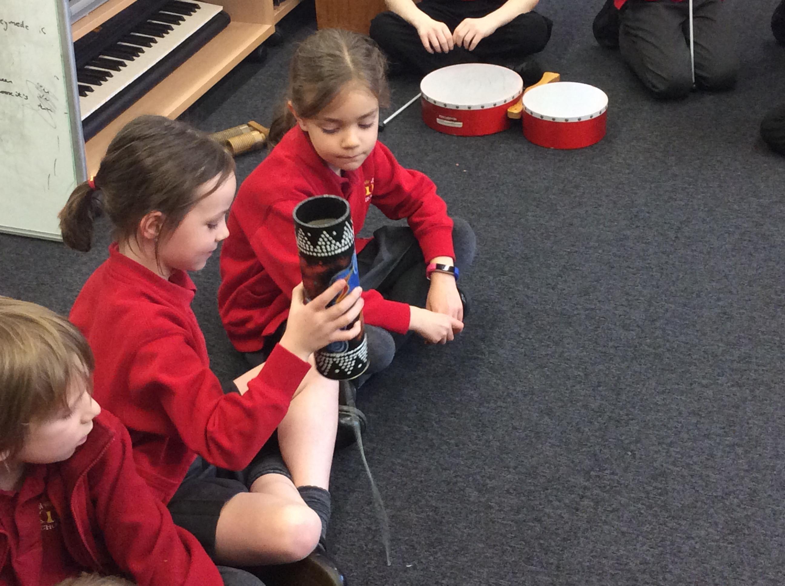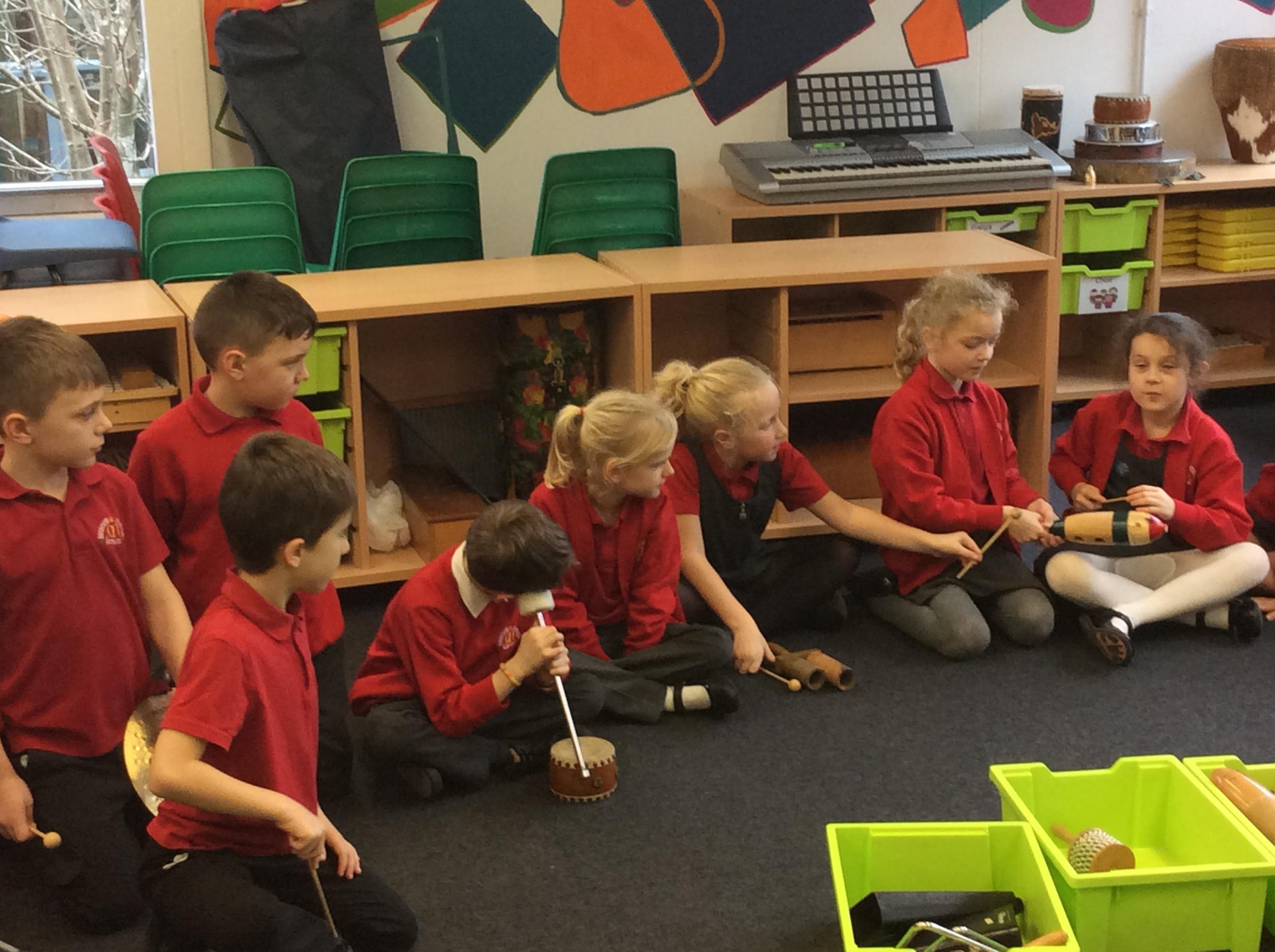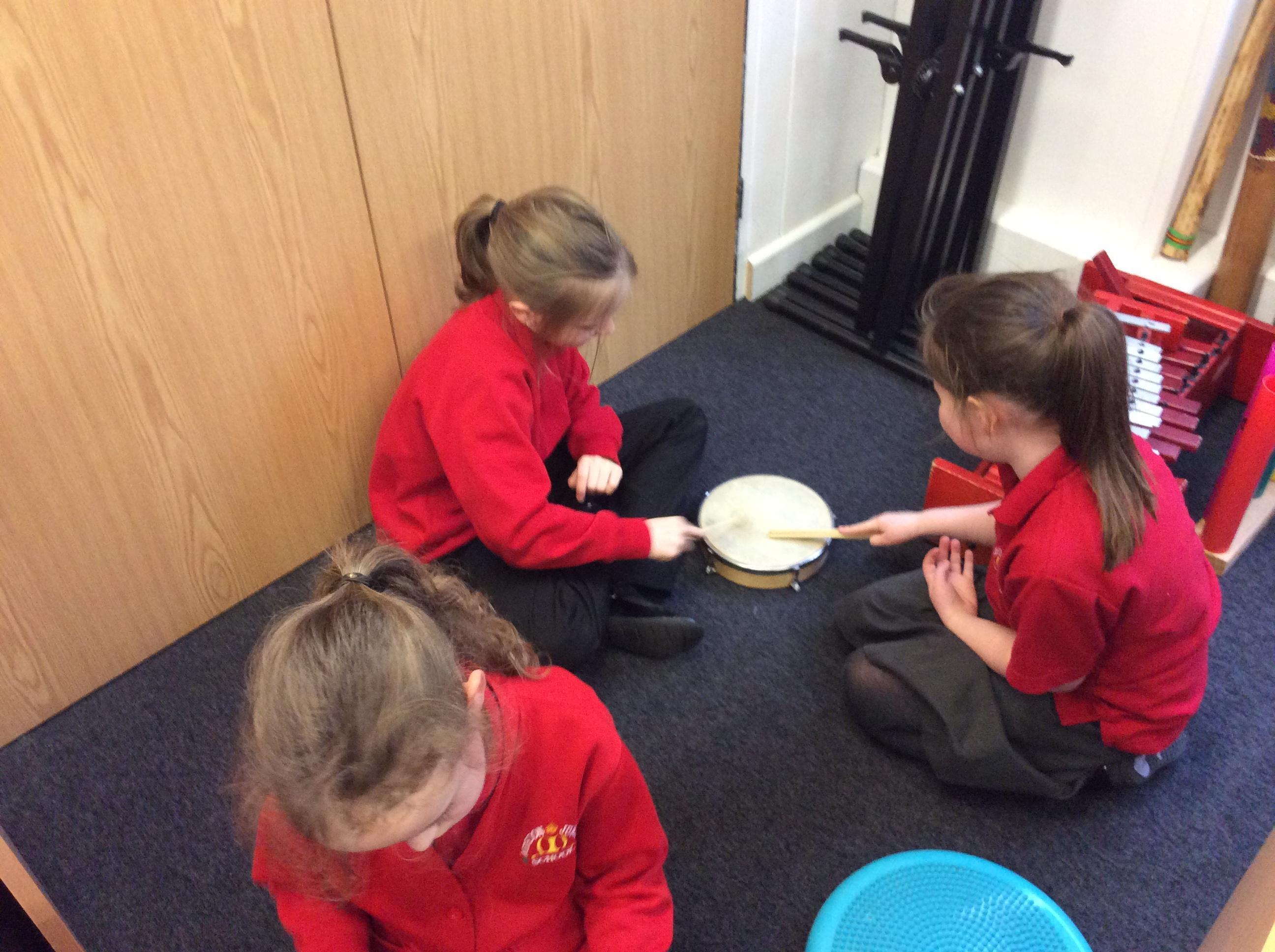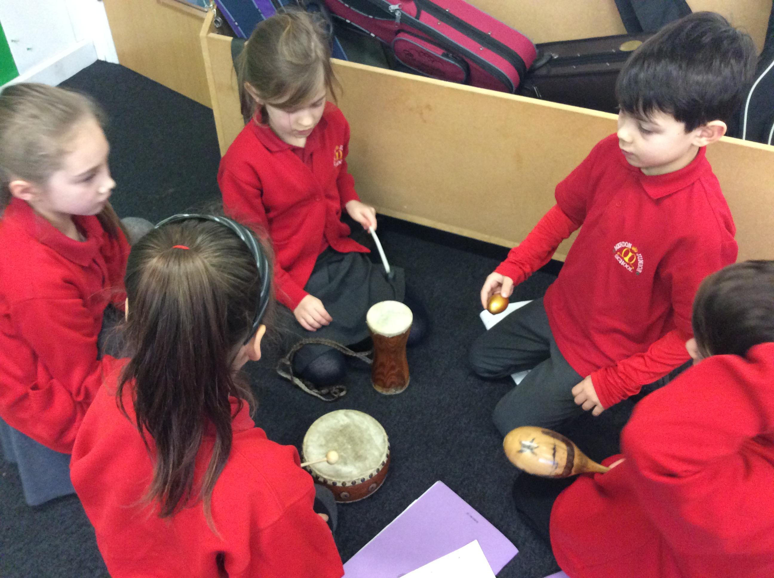 Creating our "wolves" composition using teamwork, rhythm and timbre.