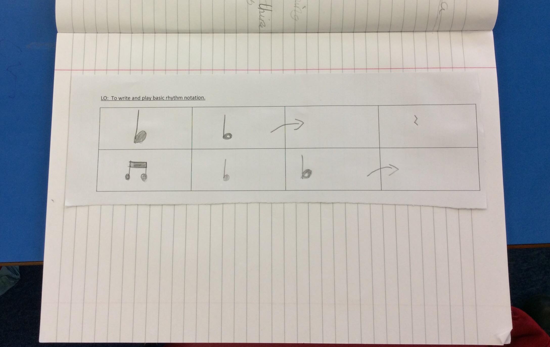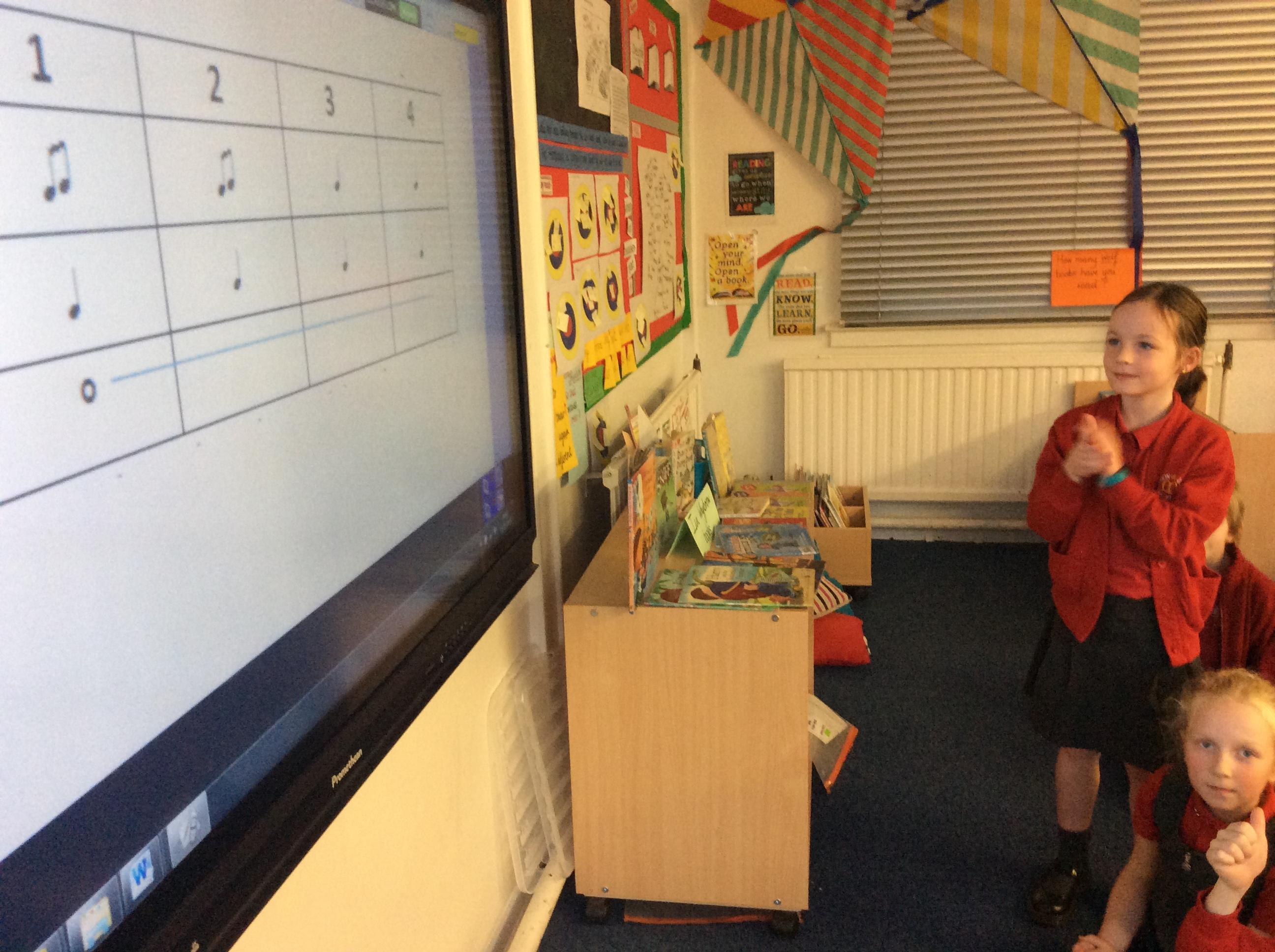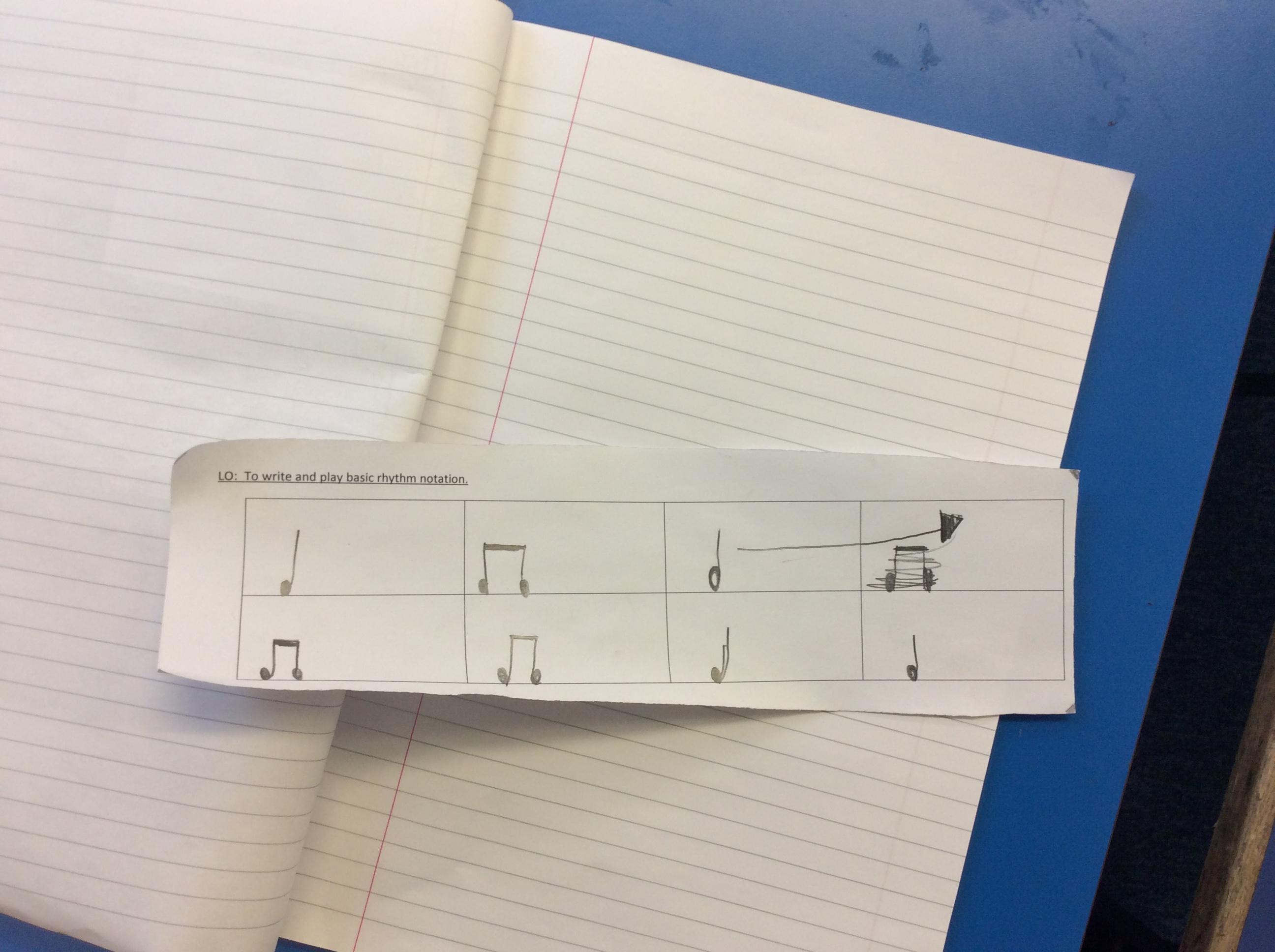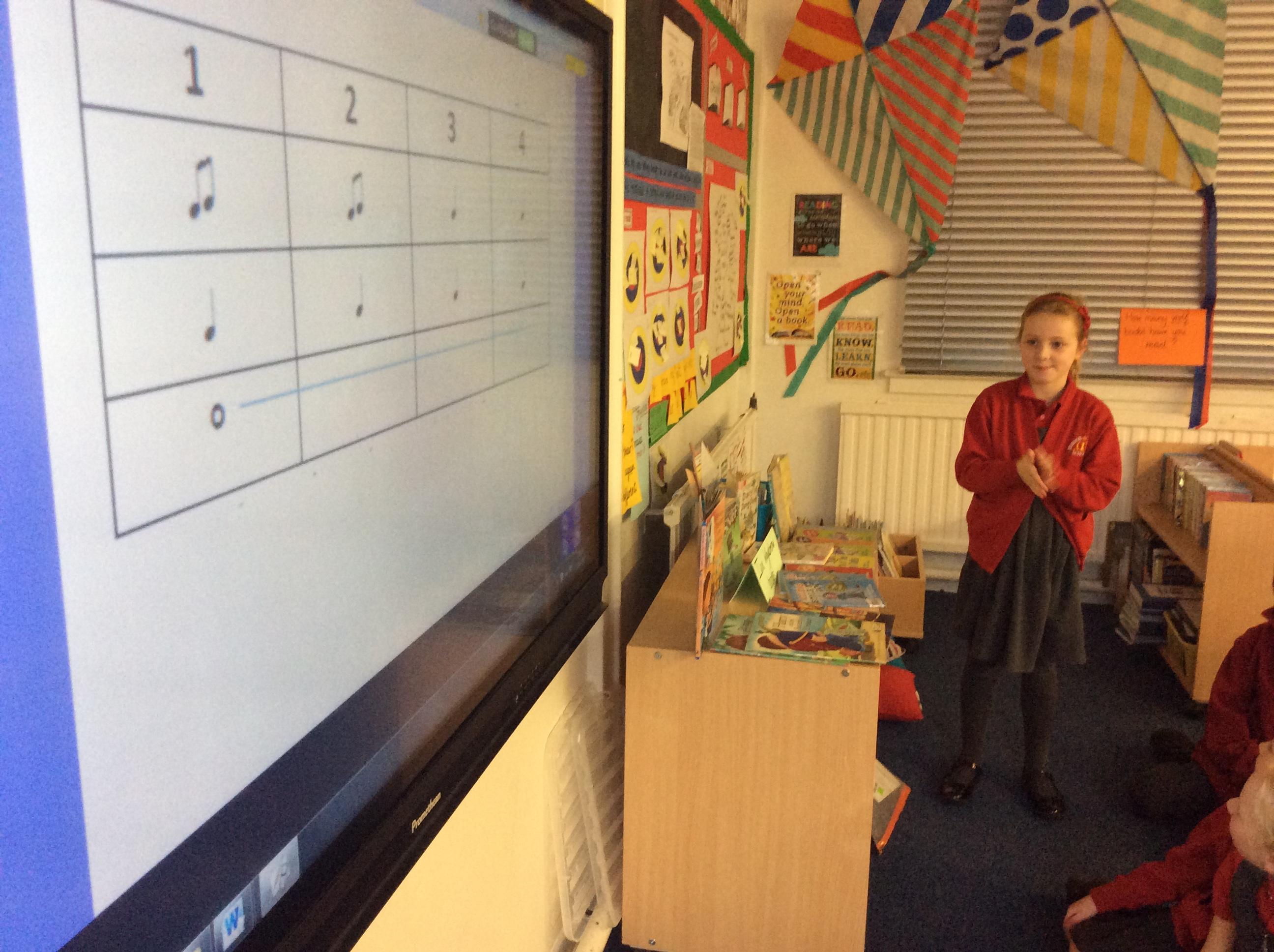 We created 8 beat rhythms using crotchets, quavers, minims and crotchet rests.