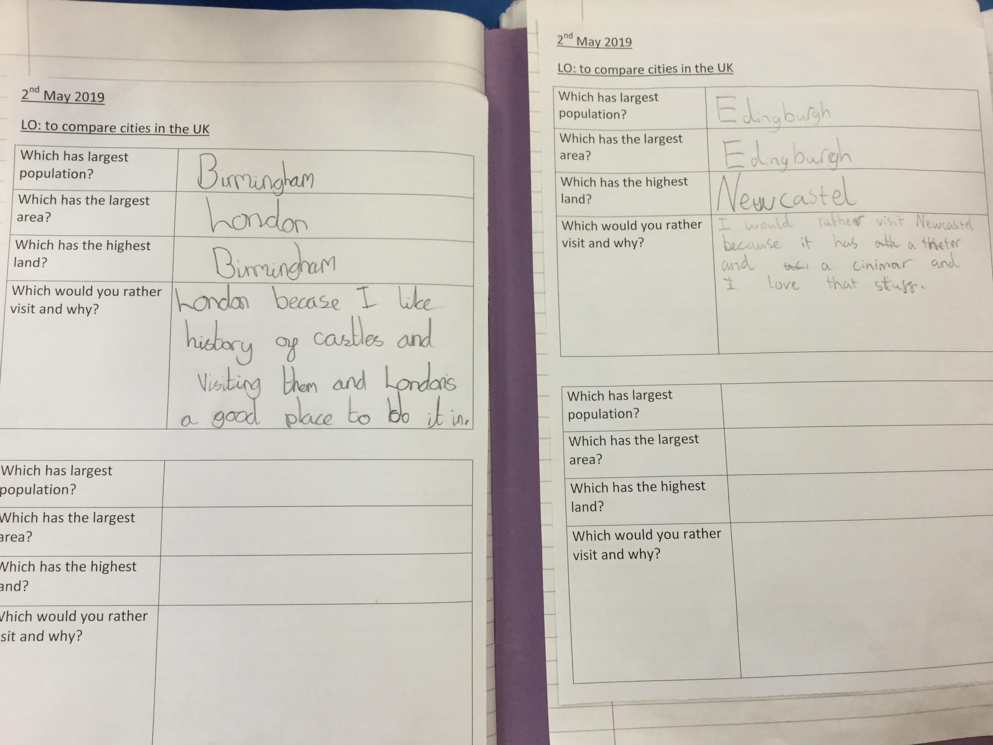 We learnt what makes a city a city! Then, each group was assigned a city to find out geographical information about. We were able to use atlases and ICT.