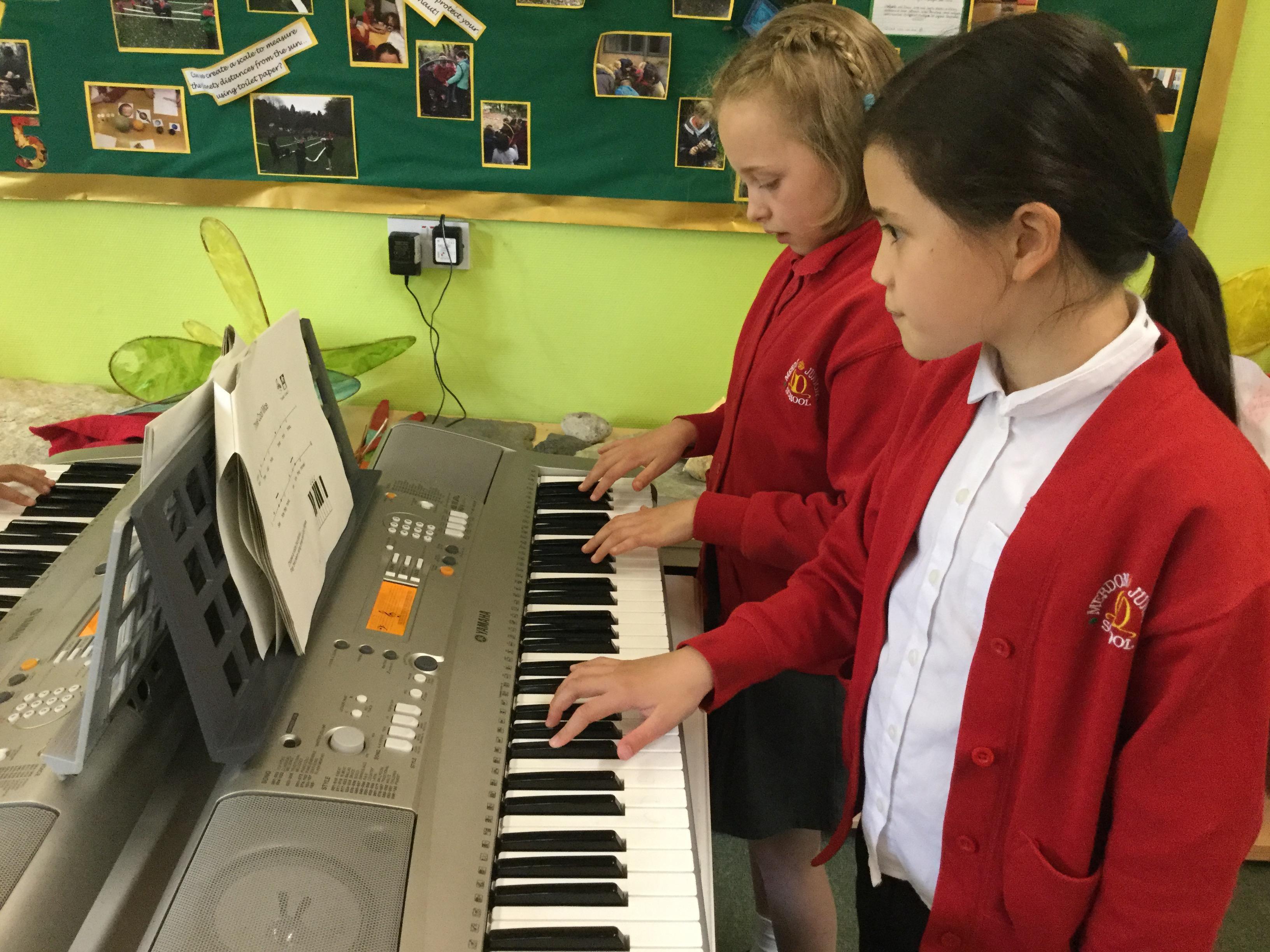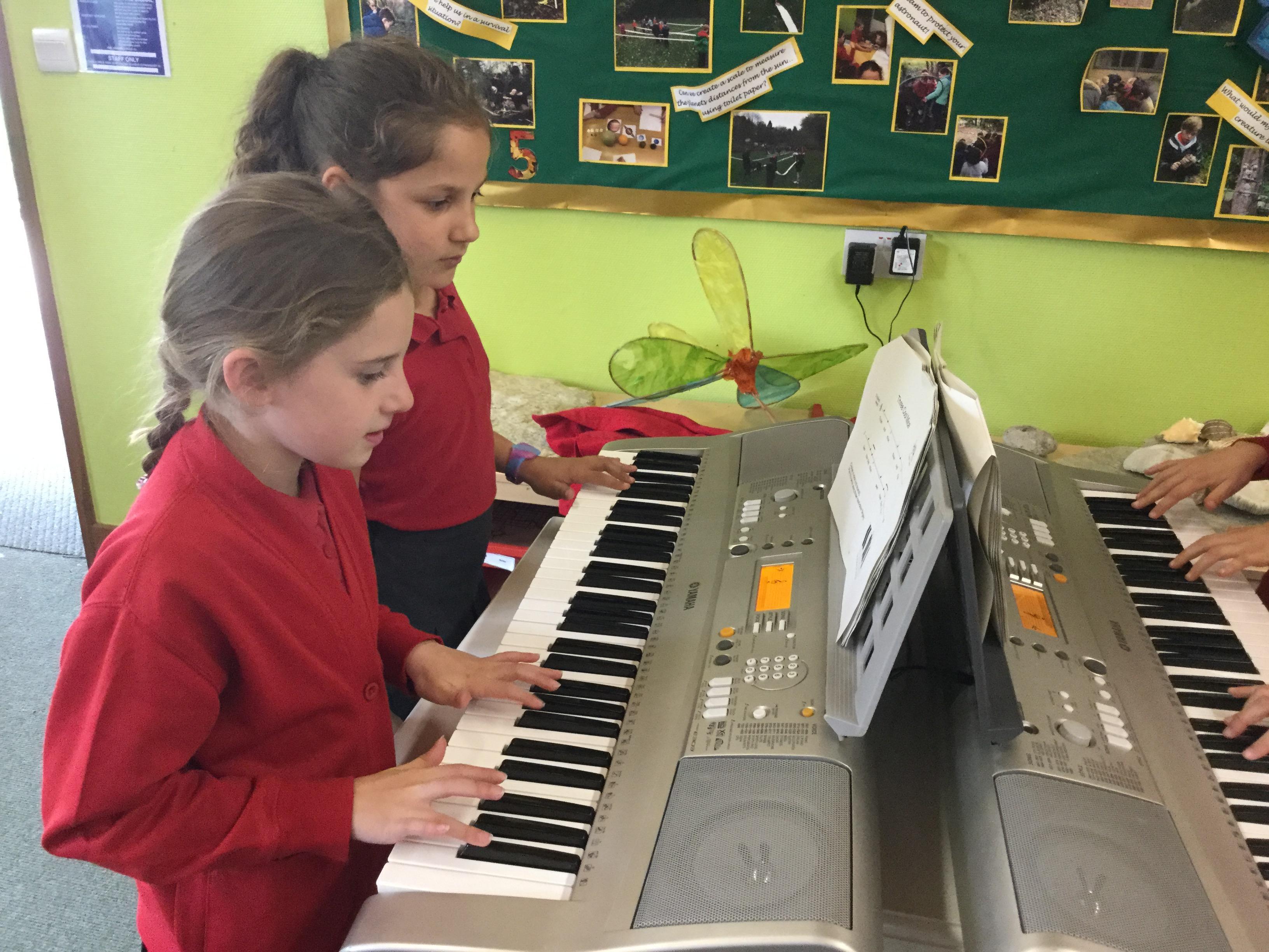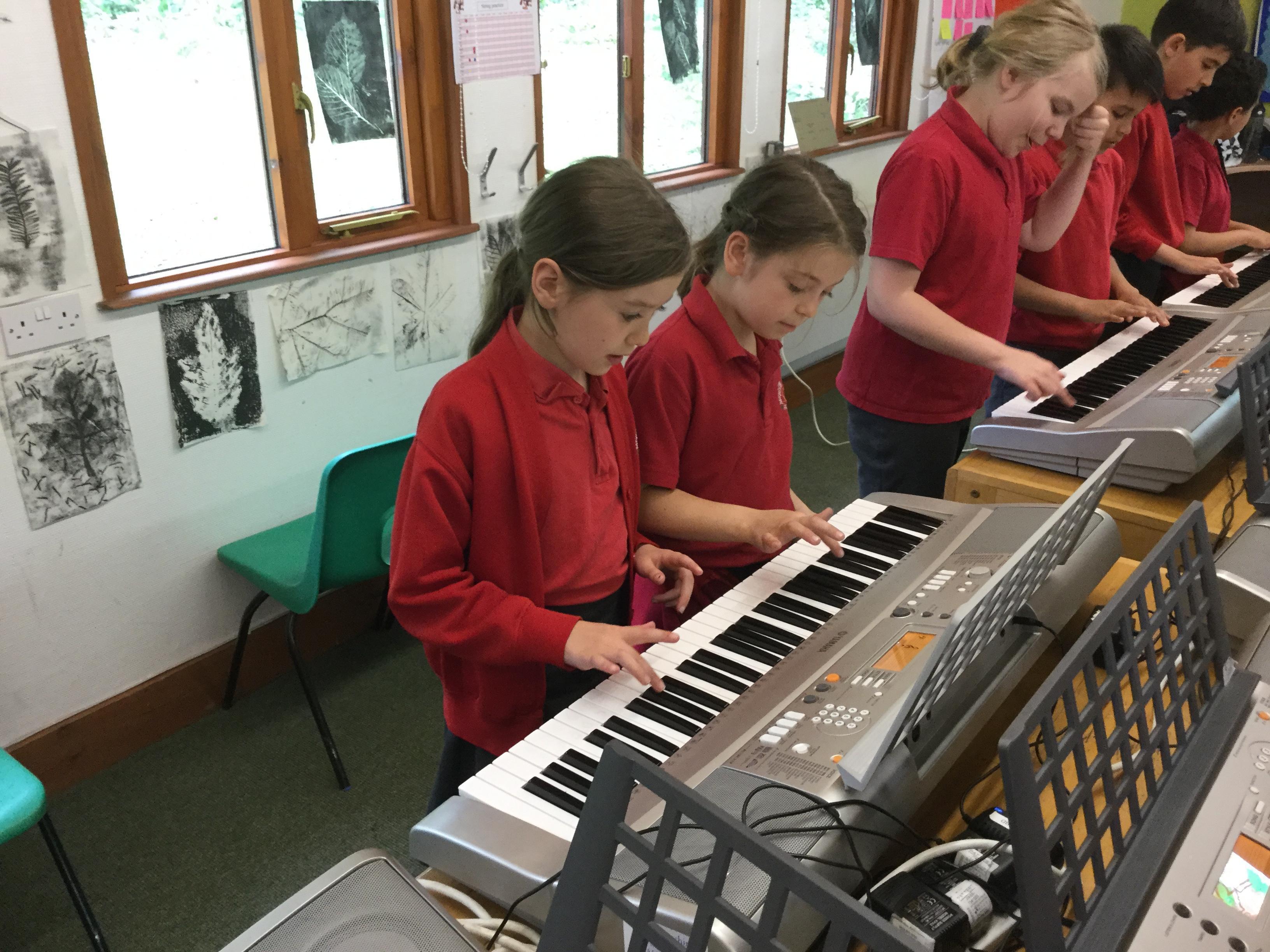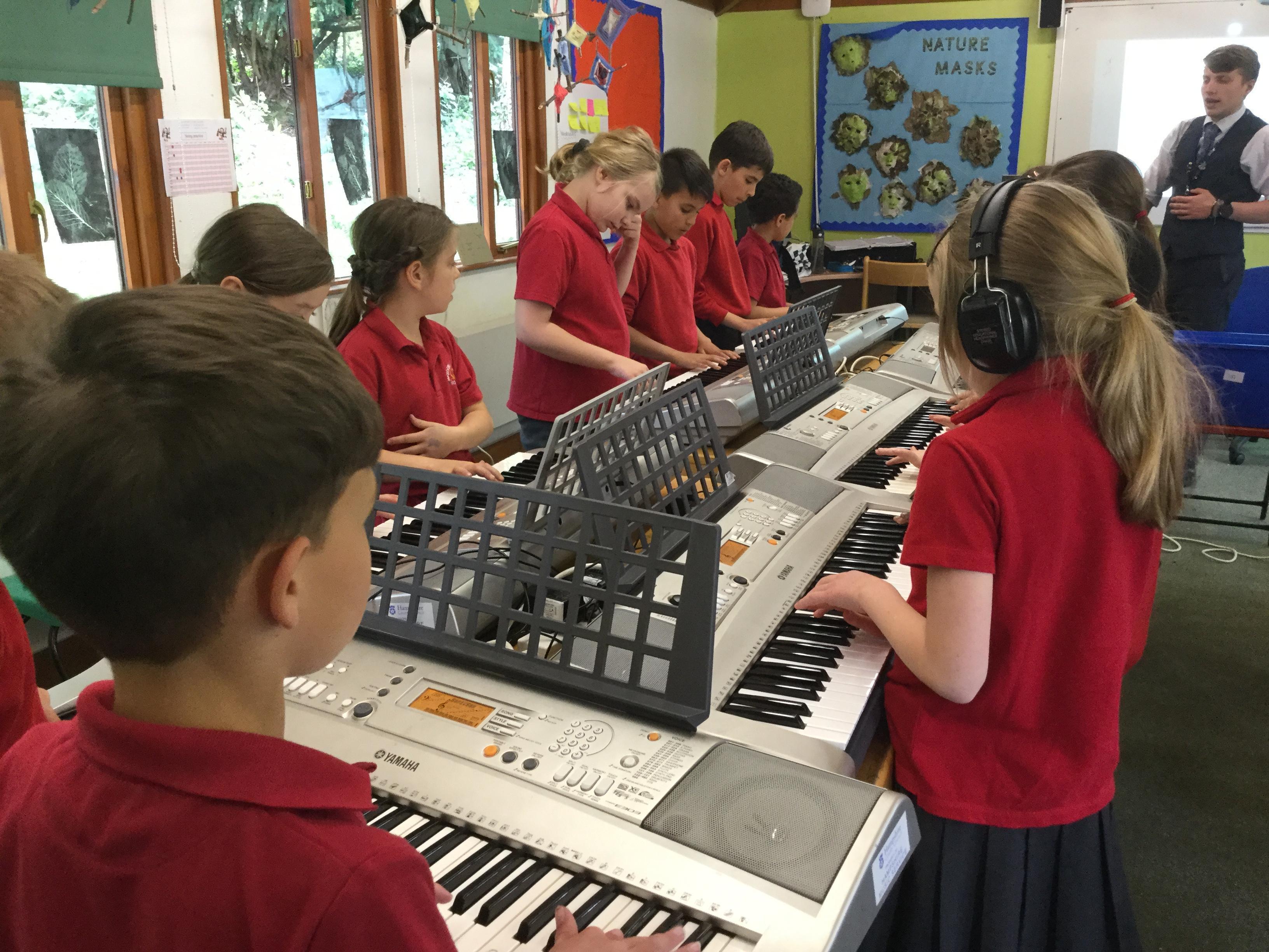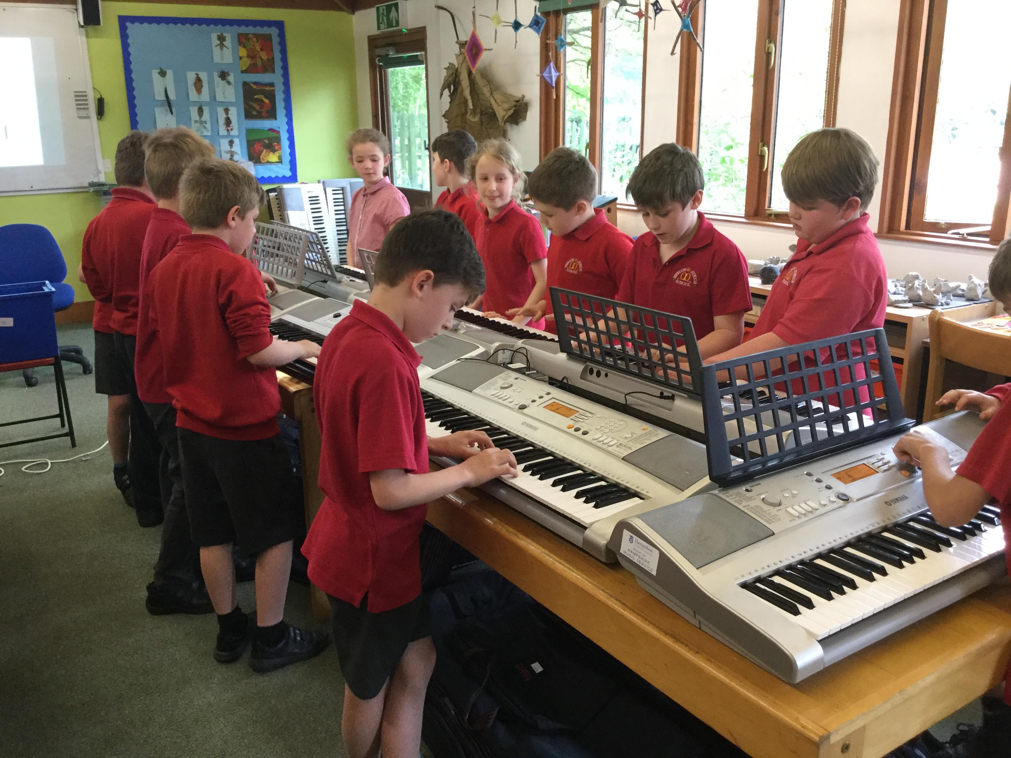 This term, we are learning to play the keyboard in Listen 2 Me. We have an hour lesson each week in which our specialist music teacher from Hampshire County Council teaches us how to play the instrument and how to read music. We learn songs, rhythms and patterns.