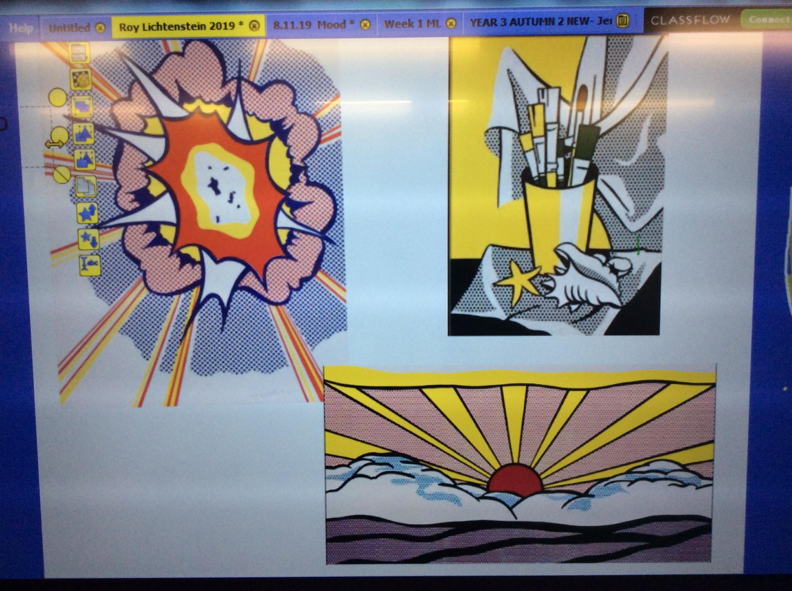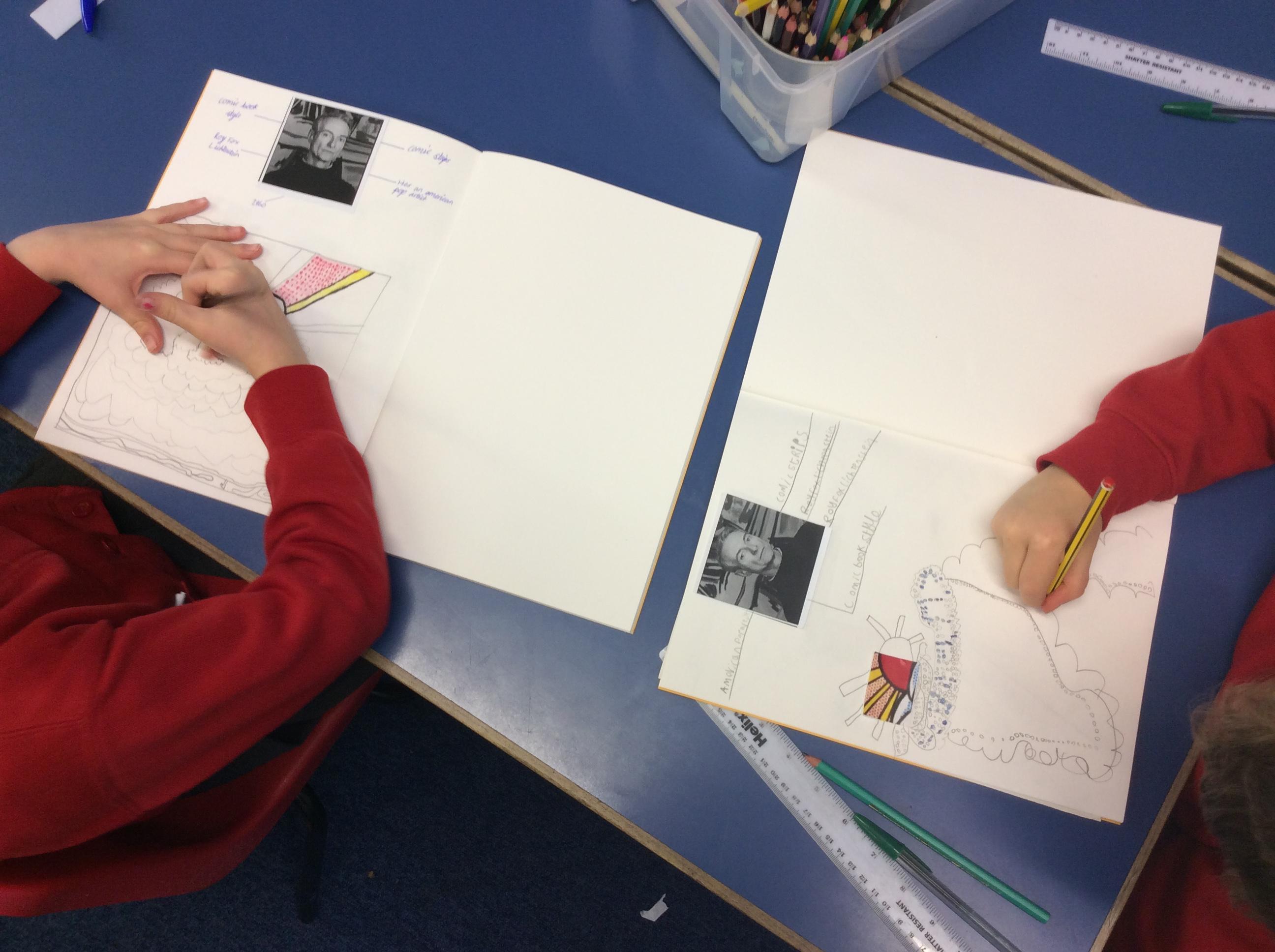 After looking at the art of Roy Lichtenstein, we tried to complete some small pieces of his pictures. They are looking FAB!