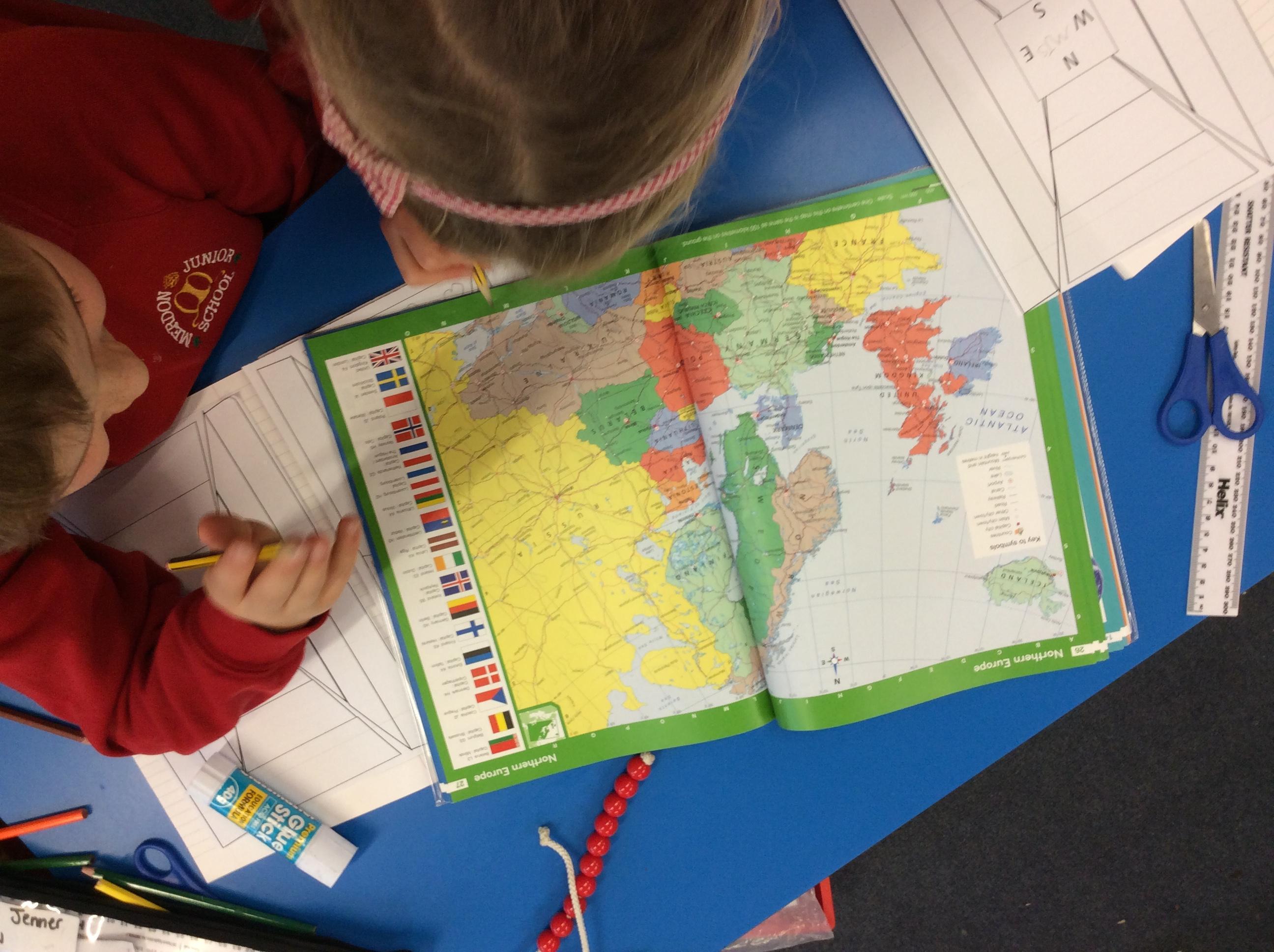Europe North have been busy Geographers, using atlases to improve their locational knowledge.  We looked at what places you would discover if you travelled in each of the 4 compass directions from our school.