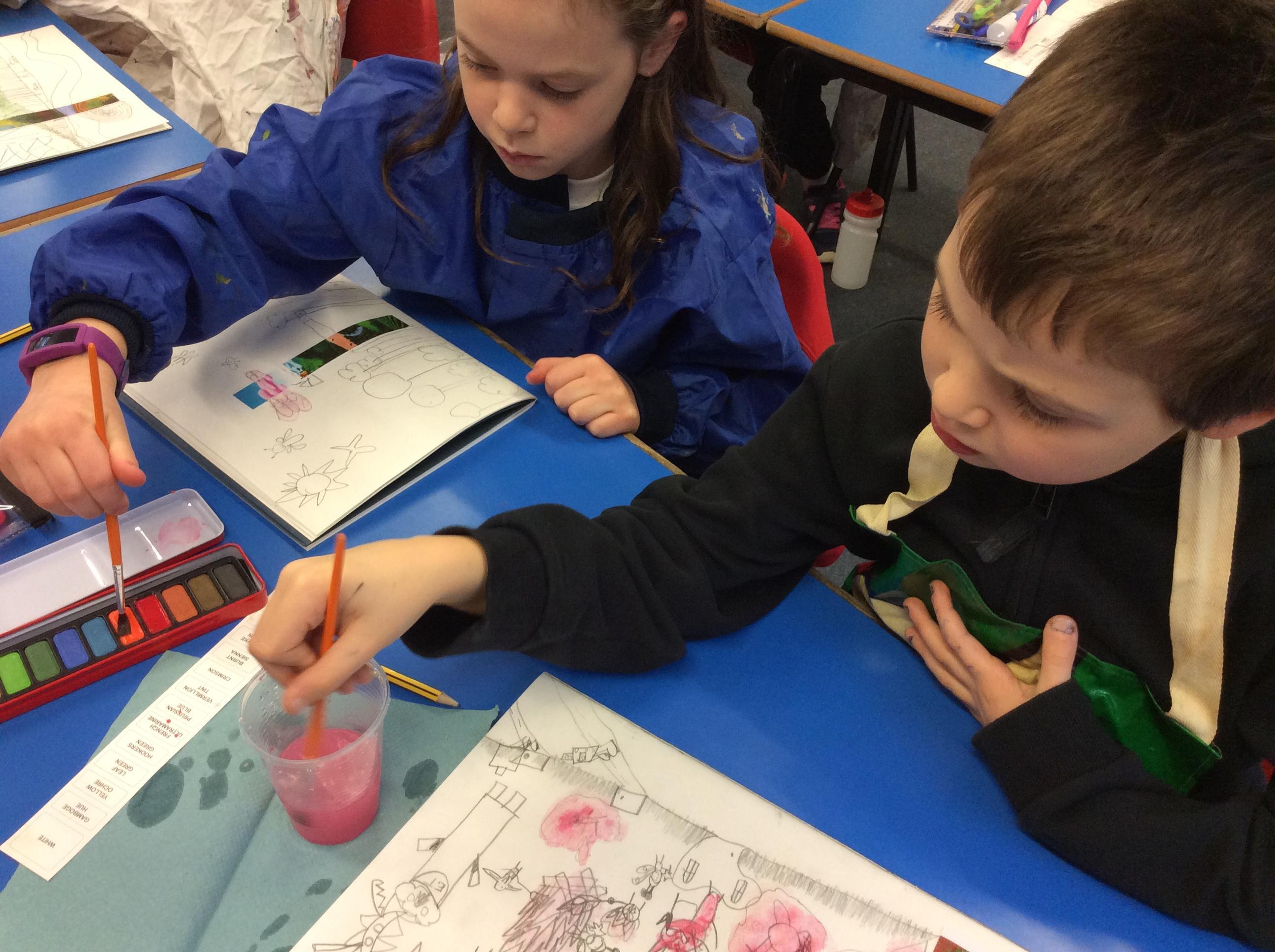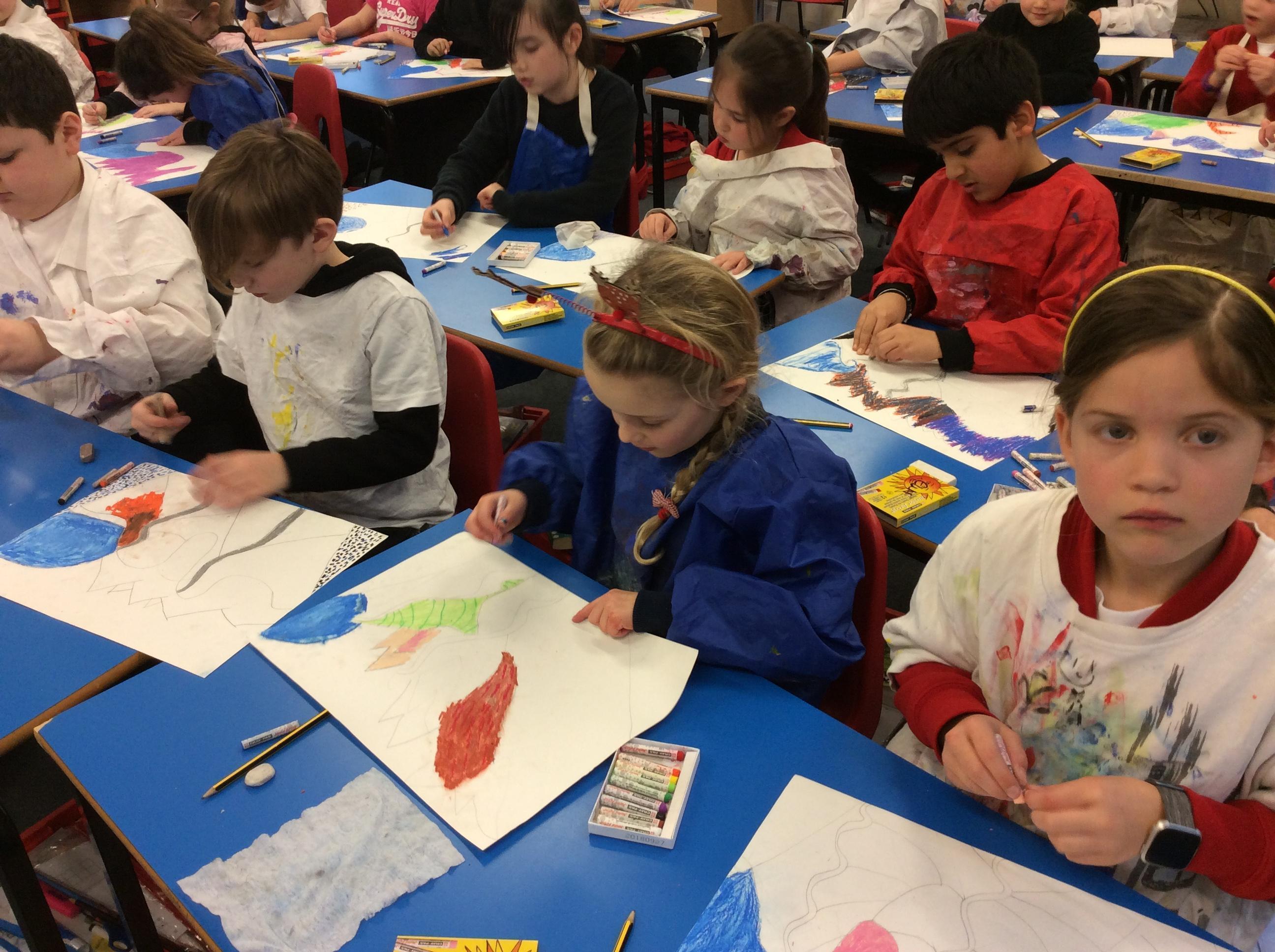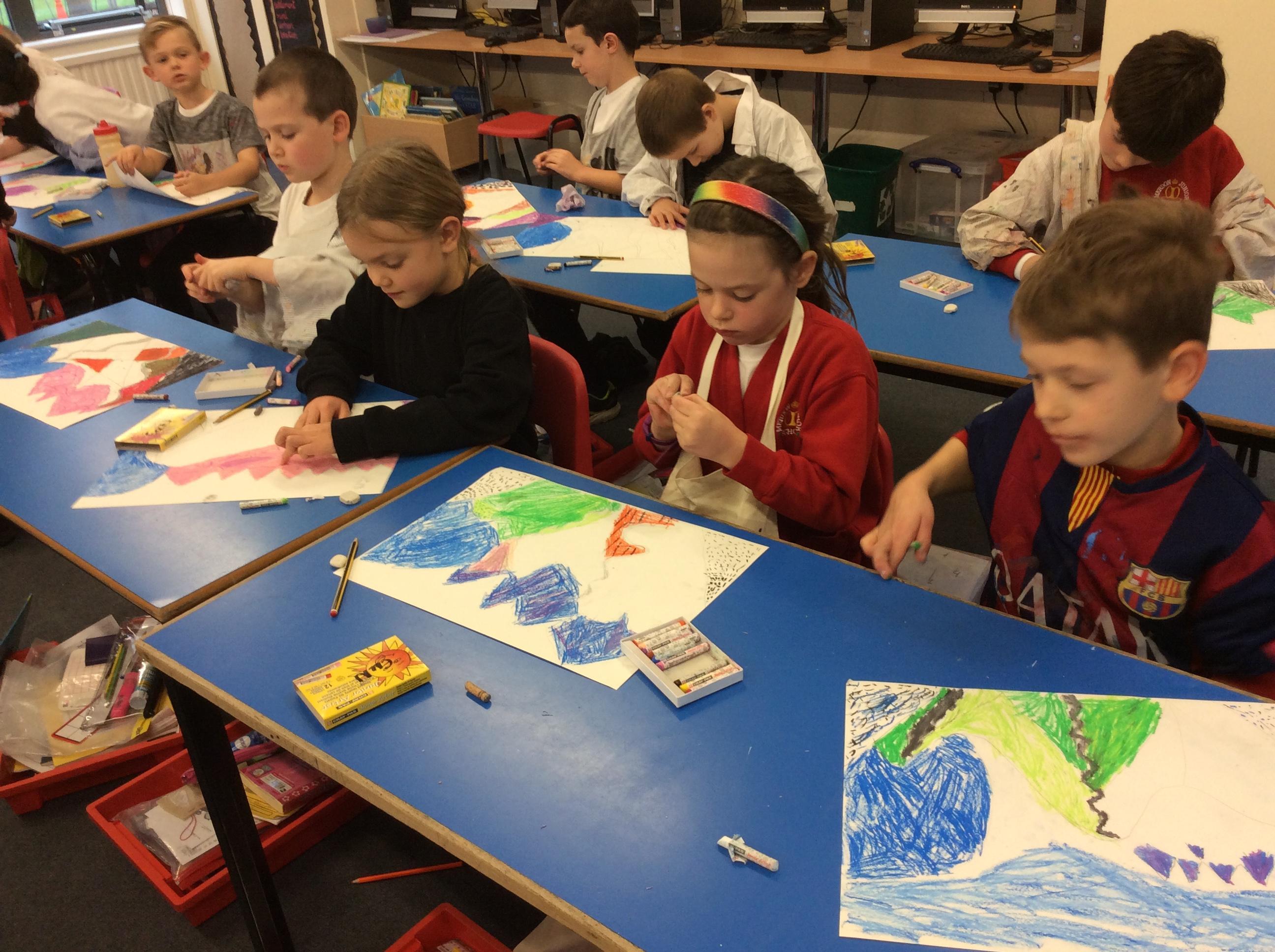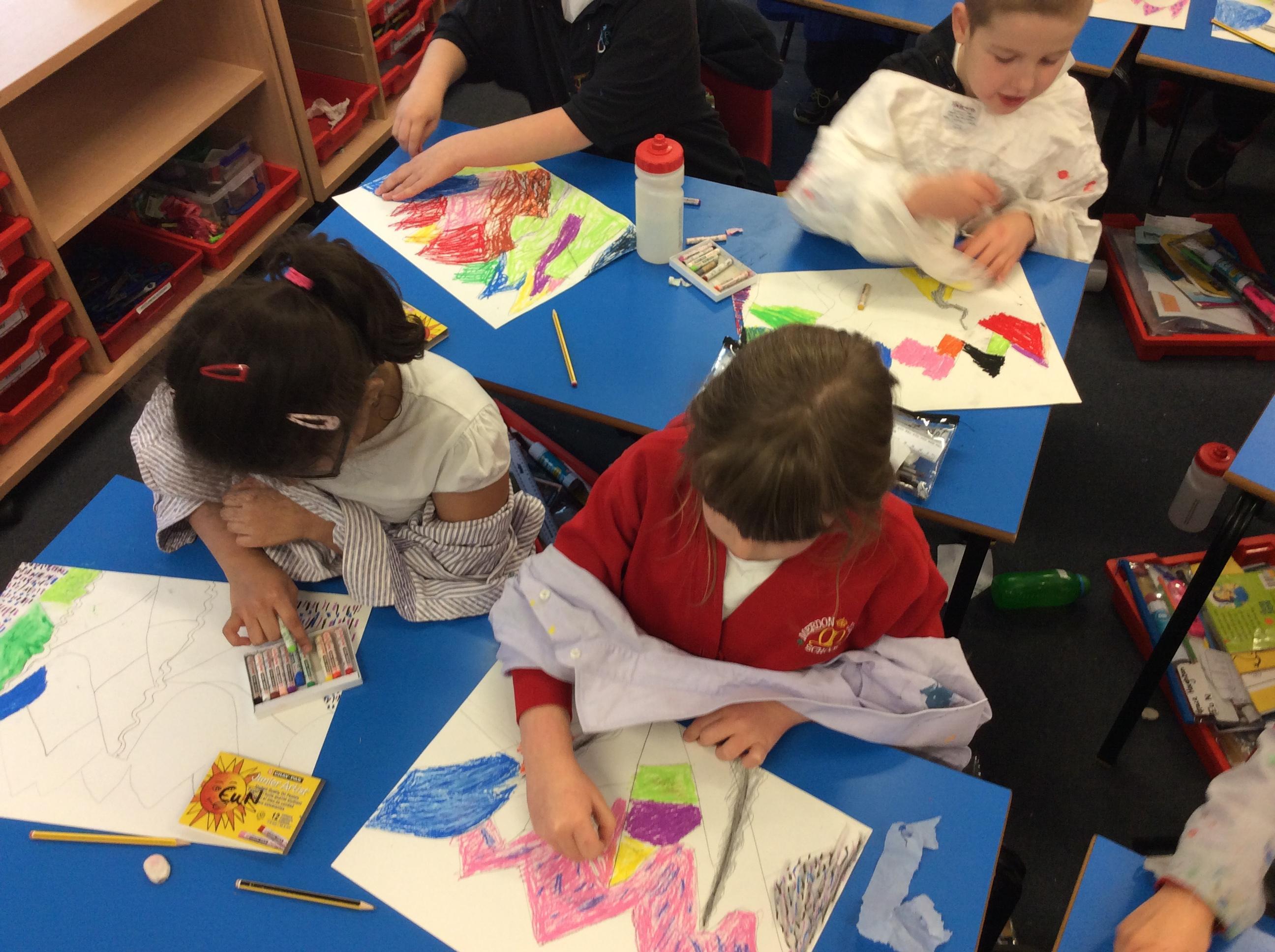 We have been learning about the artist David Hockney. We had a section of one of his paintings and we imagined how it would continue...