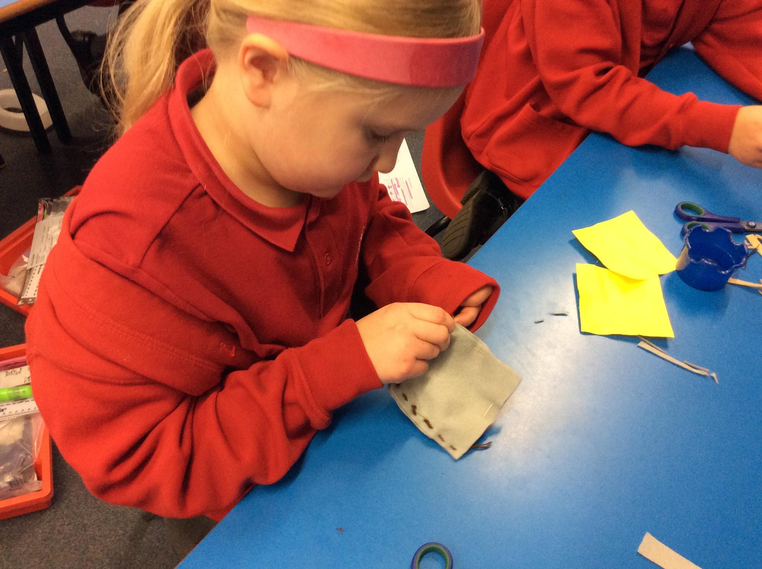 We have started practising our pinning, cutting and sewing skills ready to make our soft toys for Ug.  We showed super perseverance skills.
