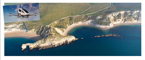 I flew over the Jurassic Coast looking down at Durdle Door.